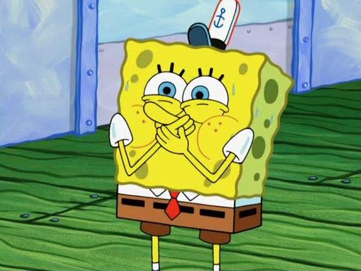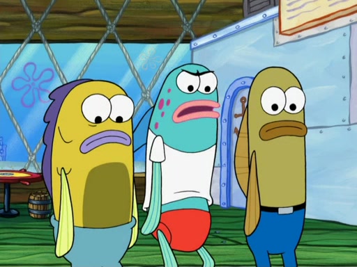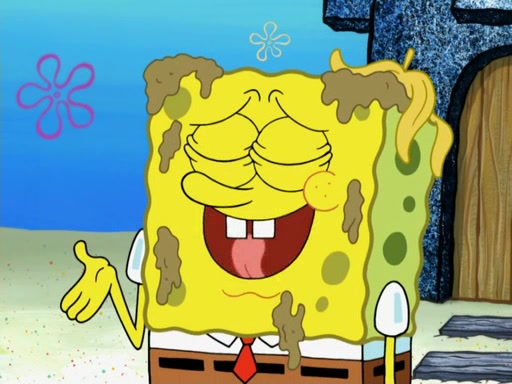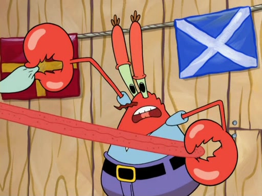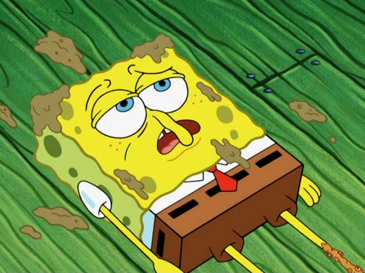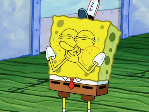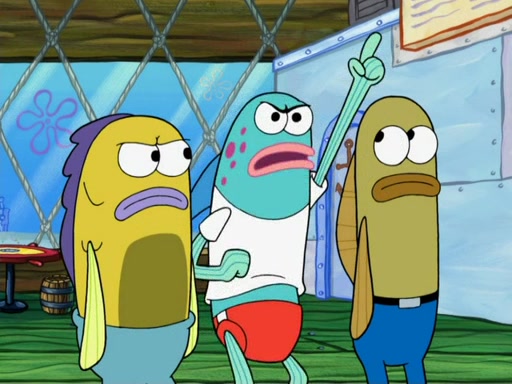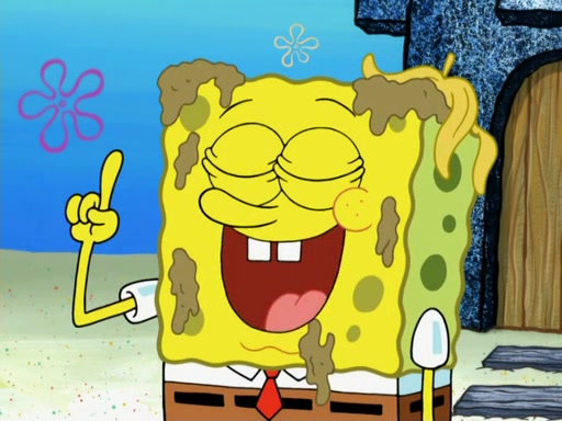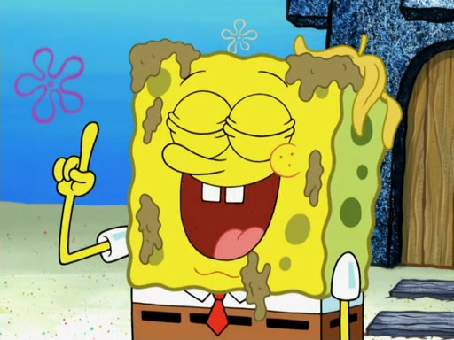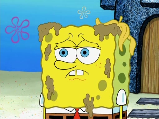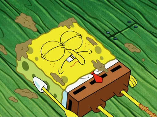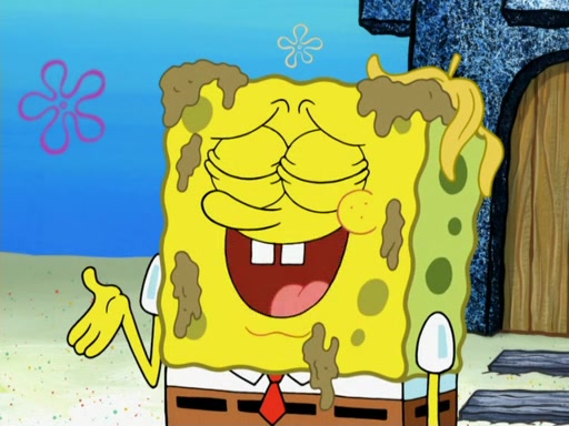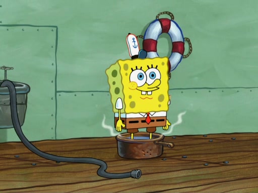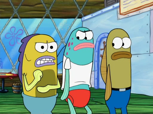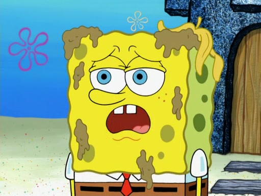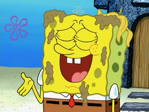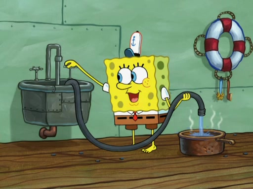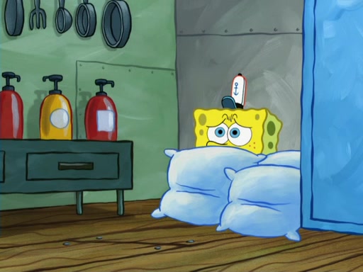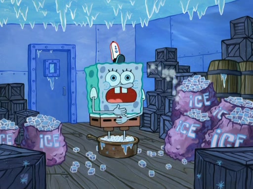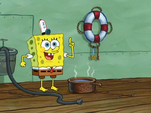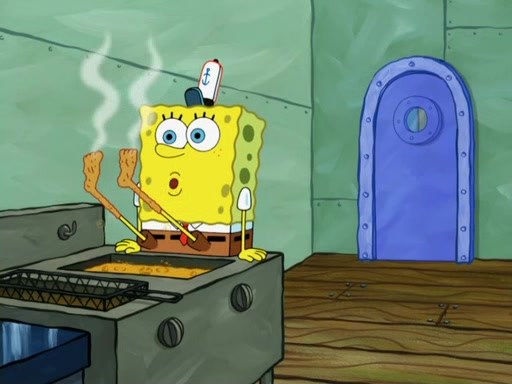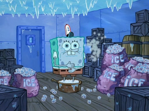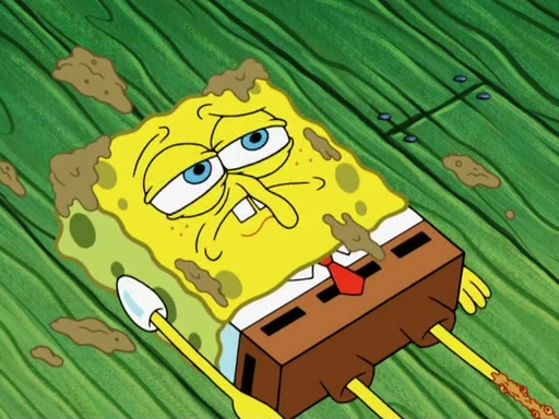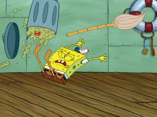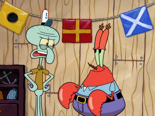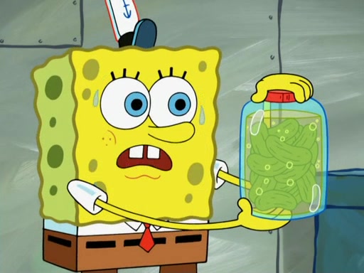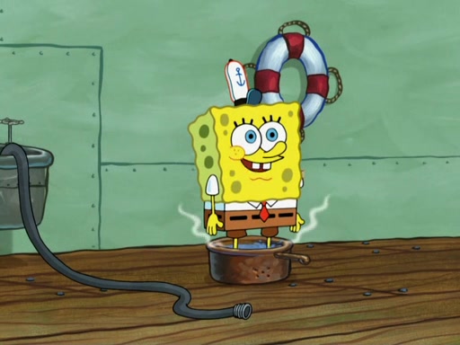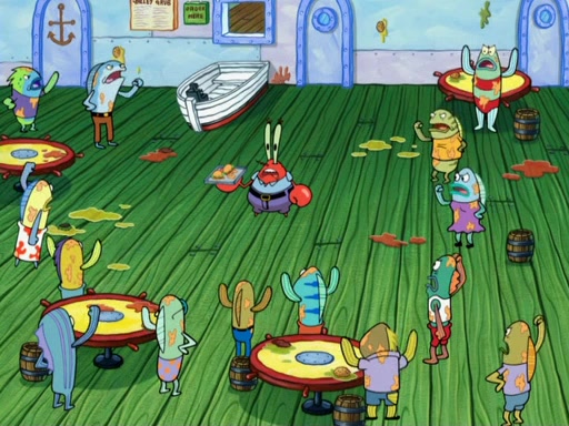When SpongeBob prepares to deliver an order, Squidward notices him wearing a gas mask. Squidward coughs into it, so SpongeBob panics. He goes to Mr. Krabs to tell him Squidward is sick, but Mr. Krabs is not convinced. He notices SpongeBob is acting odd, which is affecting business. He learns it's because he thinks Squidward is ill and is afraid to catch it. Then he suggests Squidward "make him scarce." Squidward mirthfully leaves, and SpongeBob is relieved...until he notices his eye itches, his throat feels scratchy, and his mouth is dry. Using home remedies, SpongeBob soaks his feet in hot water, then freezing ice water, then boiling oil. Then he smears hot mustard onto his fried legs, which hurts. He plans to put cucumbers on his wounded legs, but only sees pickles. Concluding they are cucumbers, he dumps the pickles and their vinegar onto his legs. The vinegar burns his legs and he falls all over the place, into a pile of garbage. SpongeBob delivers an order while covered in garbage. The customers are turned off by sickly employees and leave, prompting Mr. Krabs to tell SpongeBob to go home until he feels better. SpongeBob asks who will work while he's away, and Mr. Krabs boasts that he can do all the work with one claw tied behind his back.