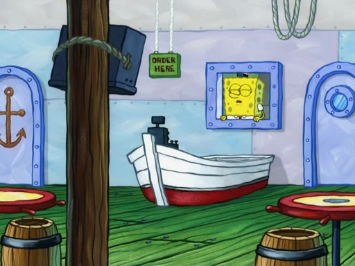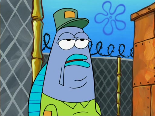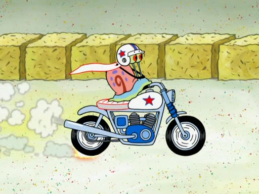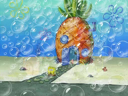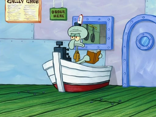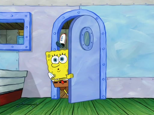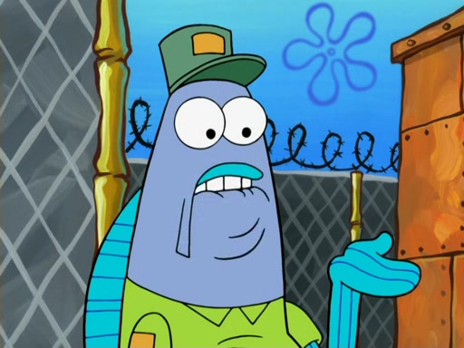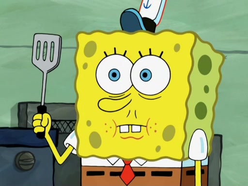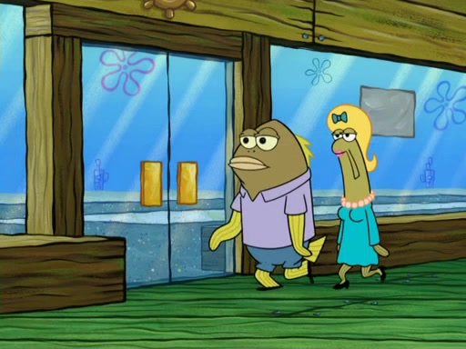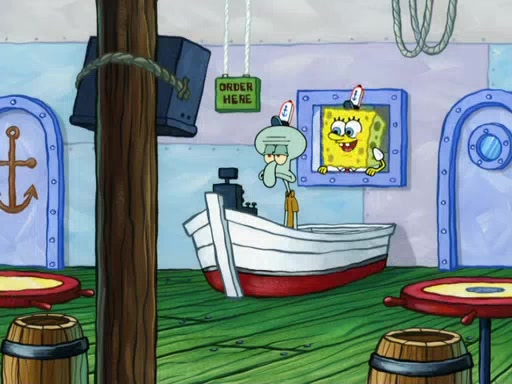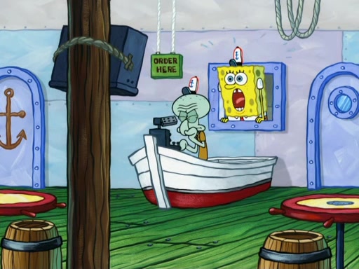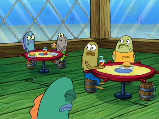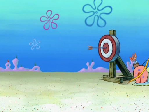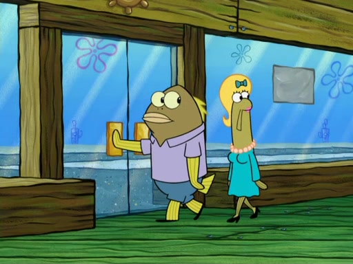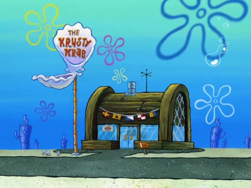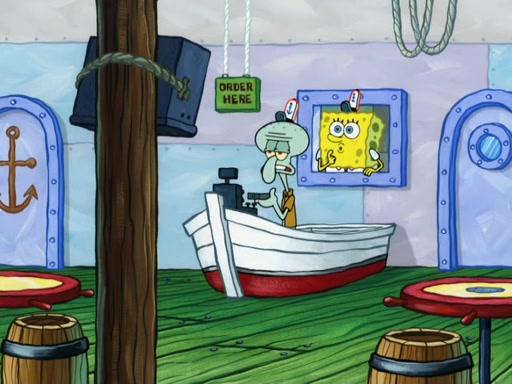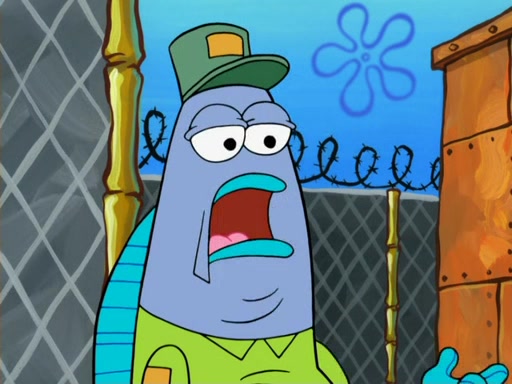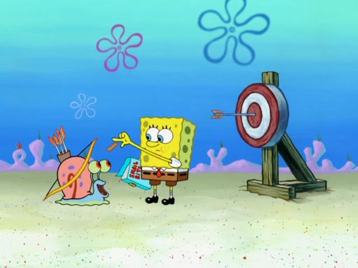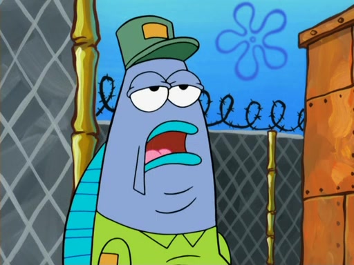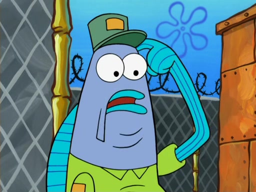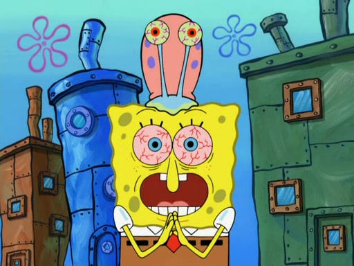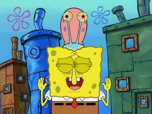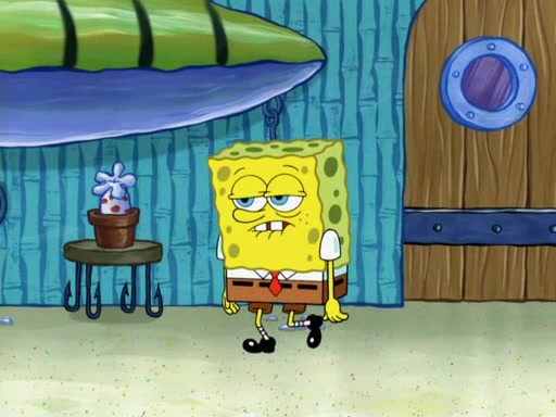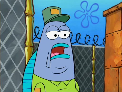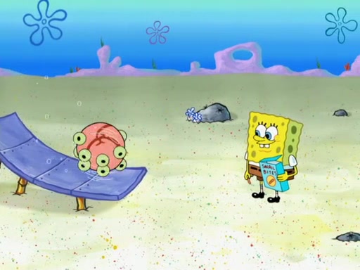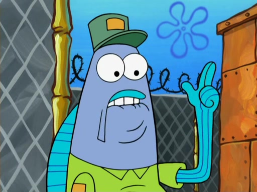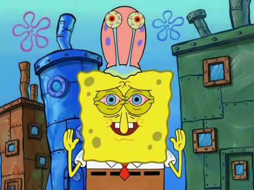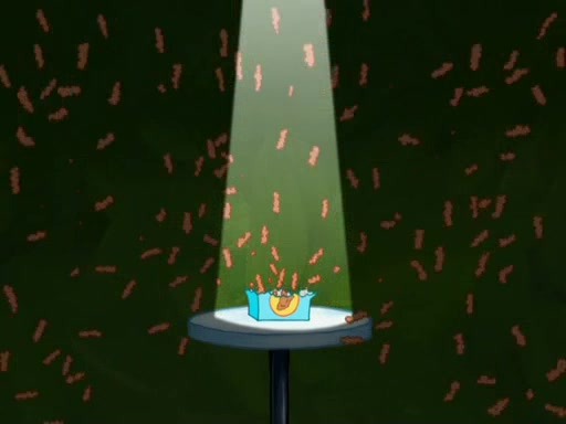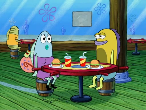 When SpongeBob goes to work, he is making patties. Gary enters the Krusty Krab, tracking slime all over the customers. SpongeBob is surprised (and a little angry) and yells at him. Gary meows at him, telling him that he wants more Snail Bites. A customer makes a suggestion to SpongeBob, that if he wants Snail Bites, he should go to the factory where they make them. SpongeBob thinks that is a great idea, so he and Gary go to the factory.