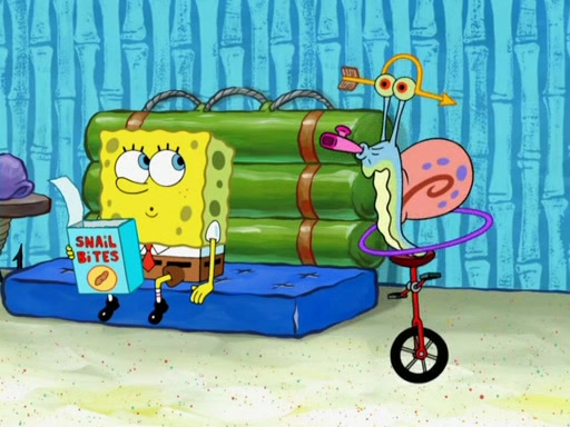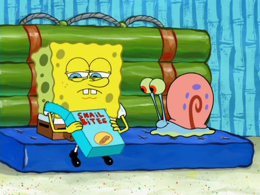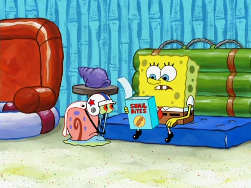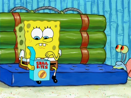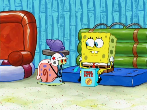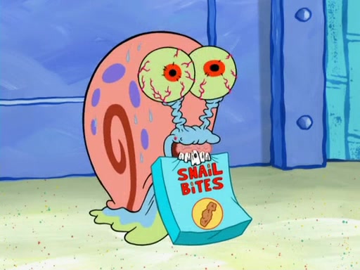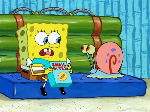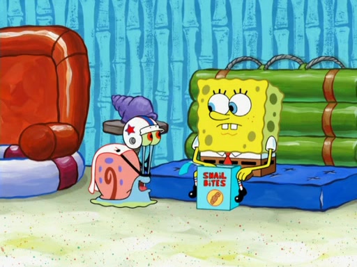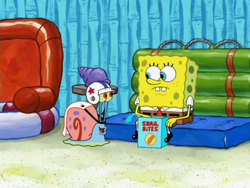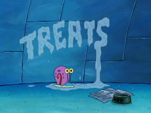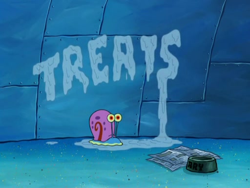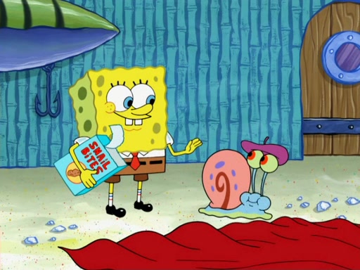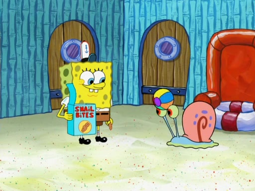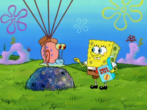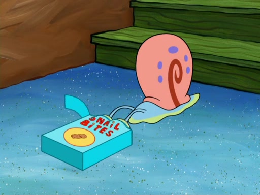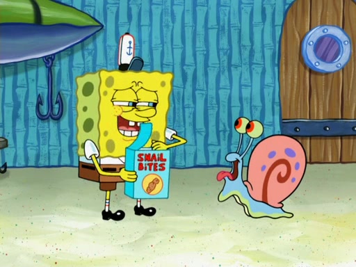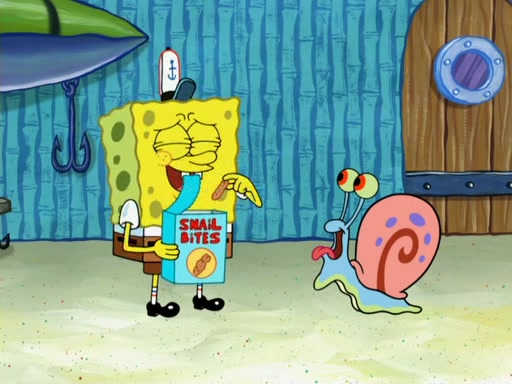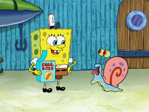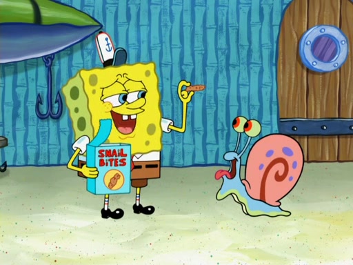 After SpongeBob watches a TV ad at the Krusty Krab about Snail Bites, a new snail treat, he goes to the store to buy some for his pet snail, Gary. At his pineapple house, SpongeBob gives Gary a Snail Bite. Gary likes the treat, so each time he does a trick, SpongeBob gives him a Snail Bite. Lots and lots of Snail Bites later, SpongeBob runs out of treats and Gary wants more.