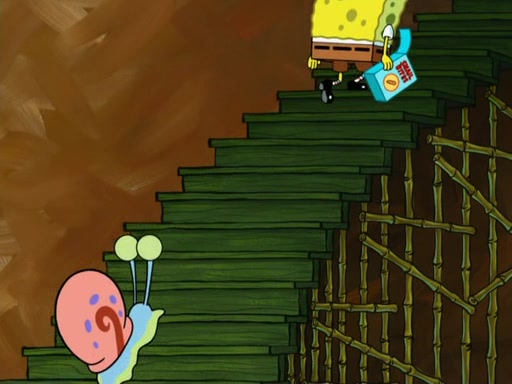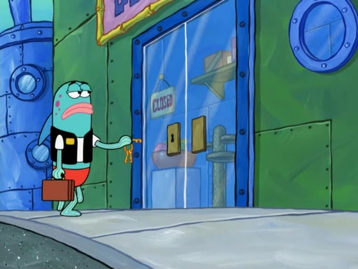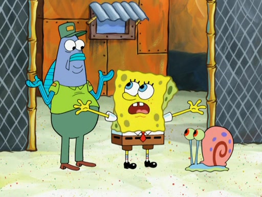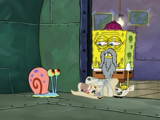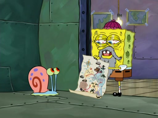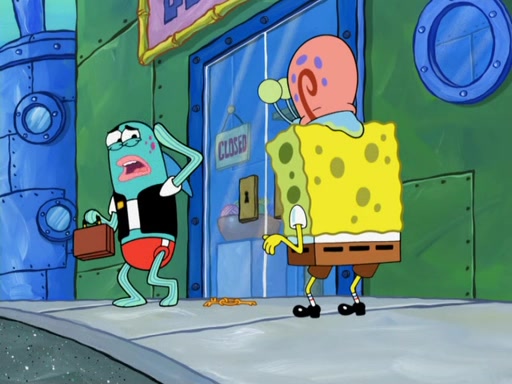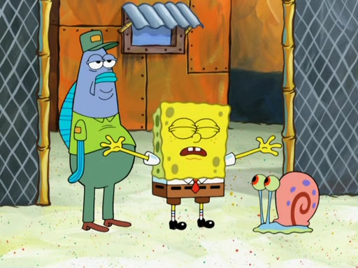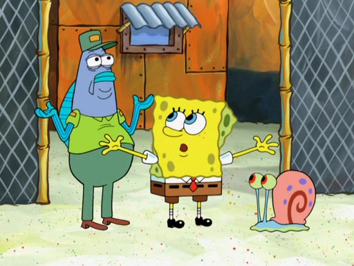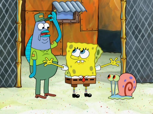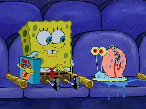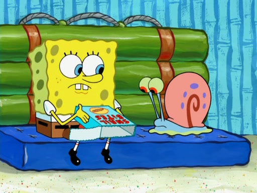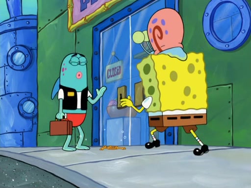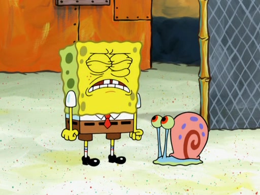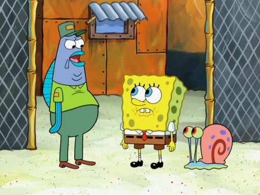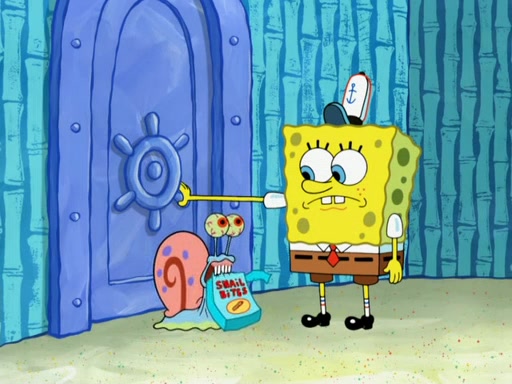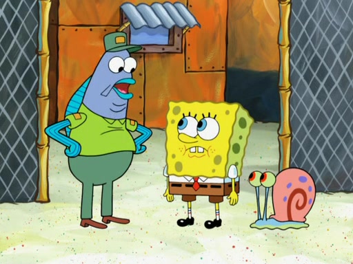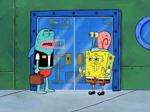 A worker tells SpongeBob and Gary that they are closed, the last box of Snail Bites shipped out days ago, they ran out of ingredients to make them, and the owner quit the business completely, because he had a lot of money. Gary then tells SpongeBob (in snail talk) that they should look all around the world, to see if they have any more Snail Bites. SpongeBob is now furious that he is still meowing.