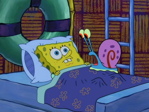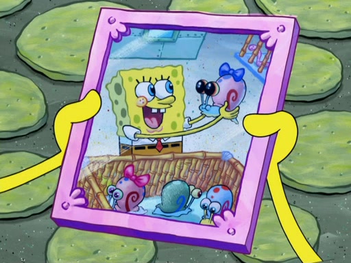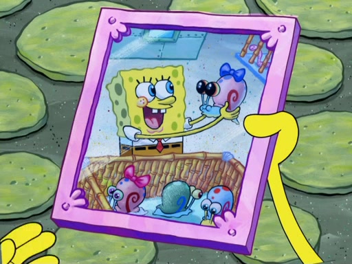He tries to say no to Gary, but Gary distracts him with photos of when he was adopted by SpongeBob, which he says it is like yesterday. But he is trying to stop him from saying "no."