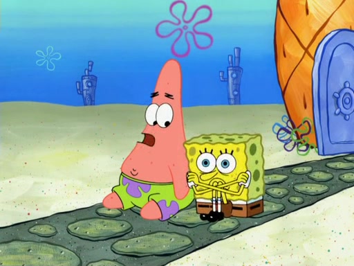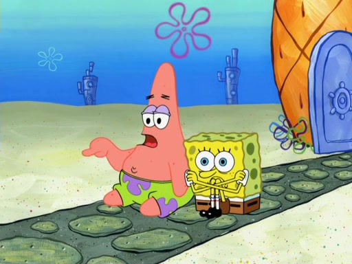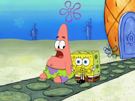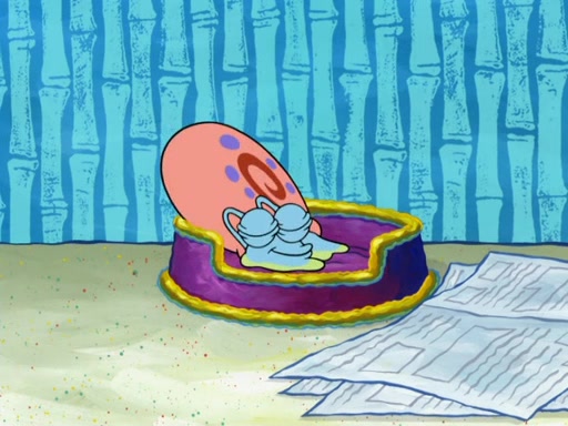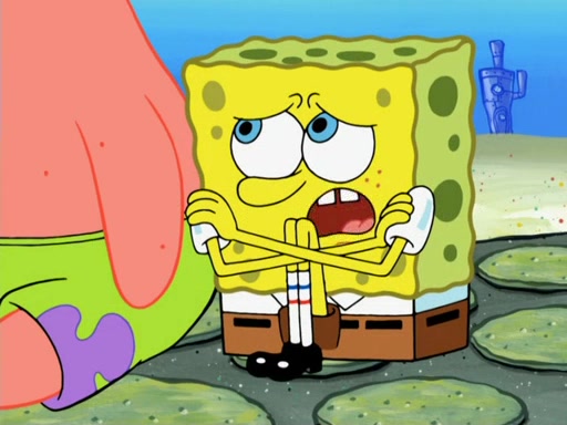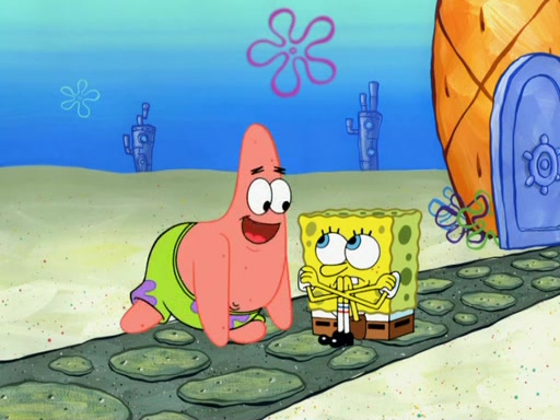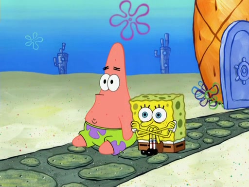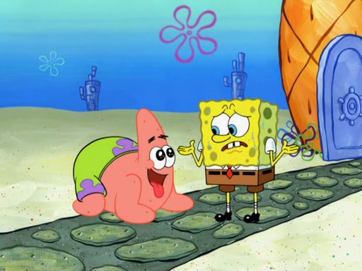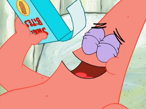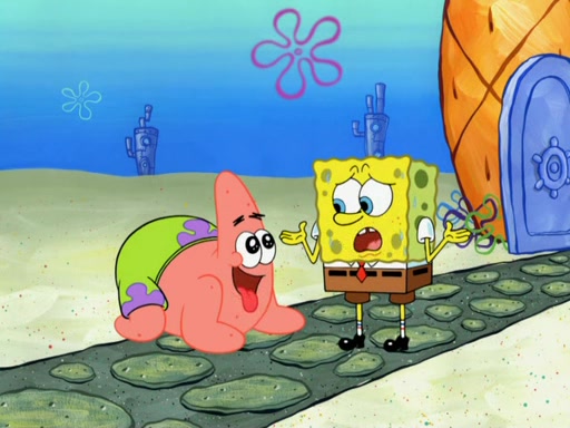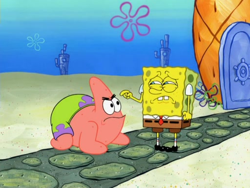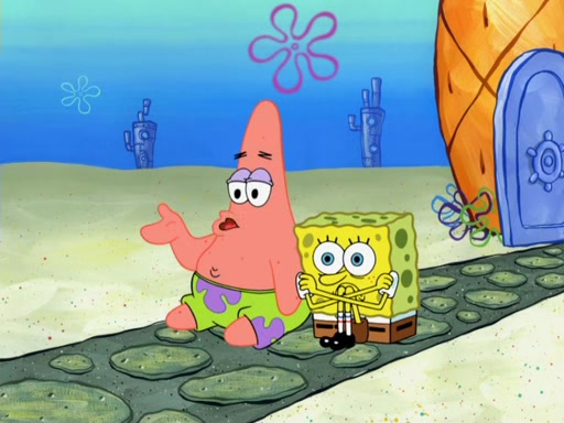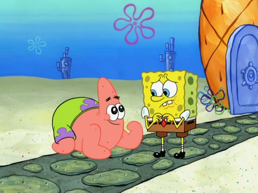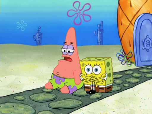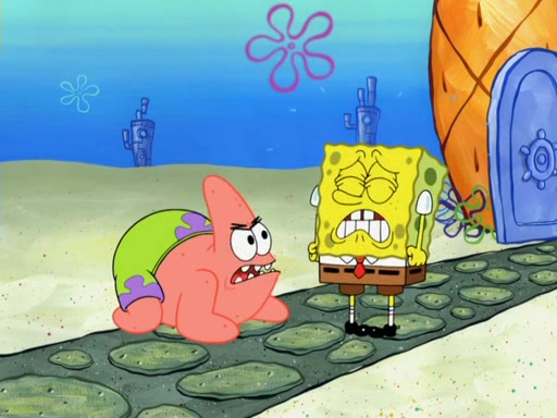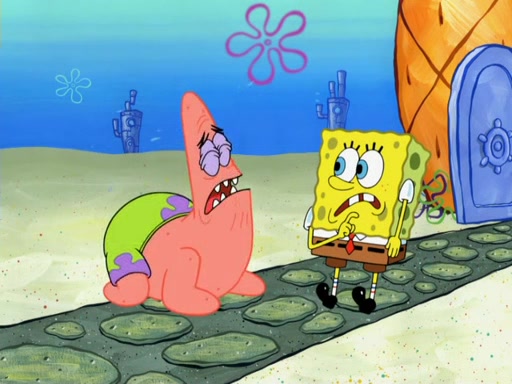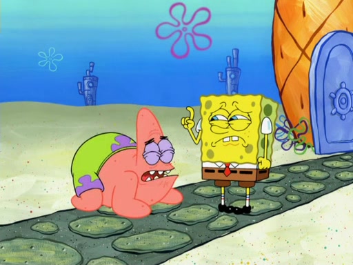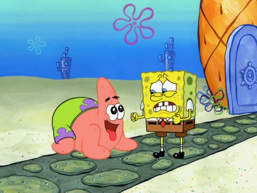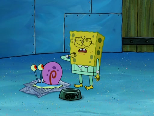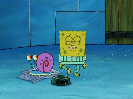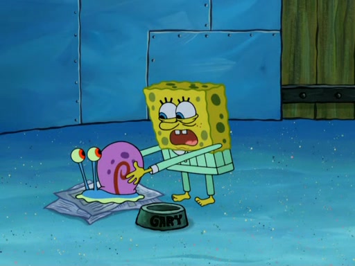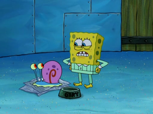 SpongeBob has nothing to do now for Gary's meowing. Patrick then comes and asks SpongeBob why Gary keeps on meowing. SpongeBob explains that Gary wants more treats and they are are not any more. Patrick tells SpongeBob that he should tell Gary "no" in a firm voice. SpongeBob doesn't want to "say no to his widdle Gare-bear." But to have a lot of confidence, Patrick acts like a dog, and SpongeBob says "no" firmly. This causes Patrick to act sad and run away to his house.