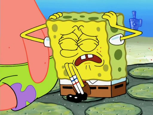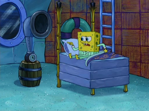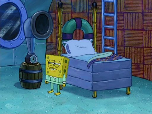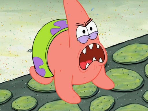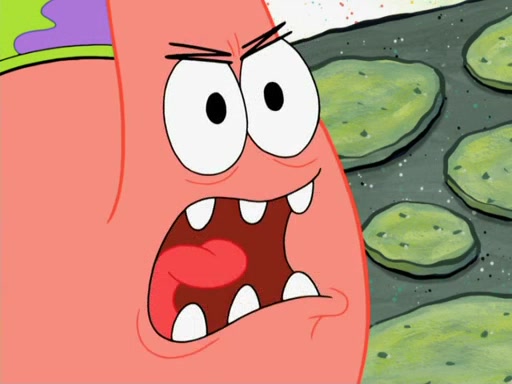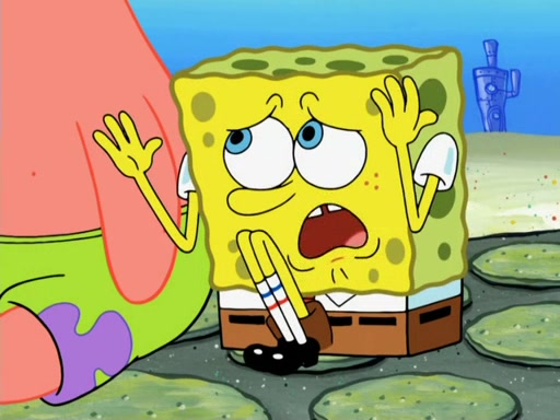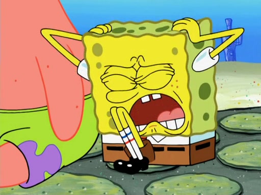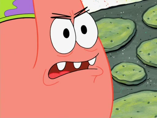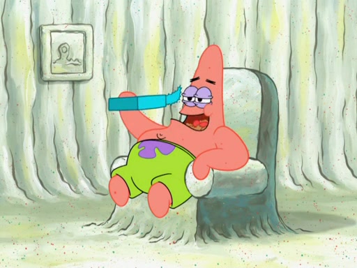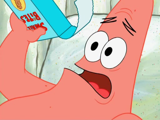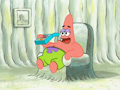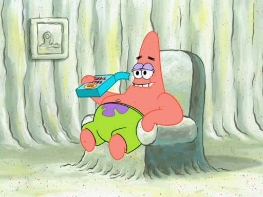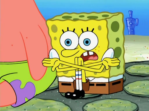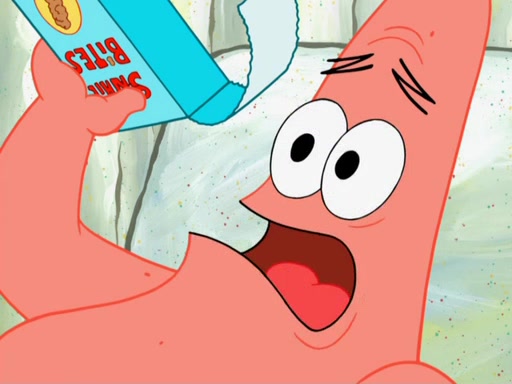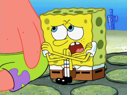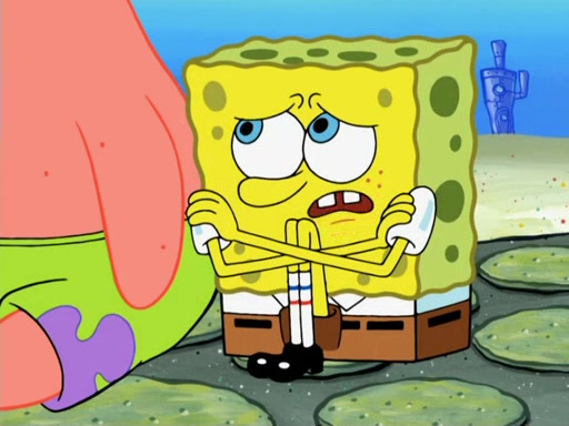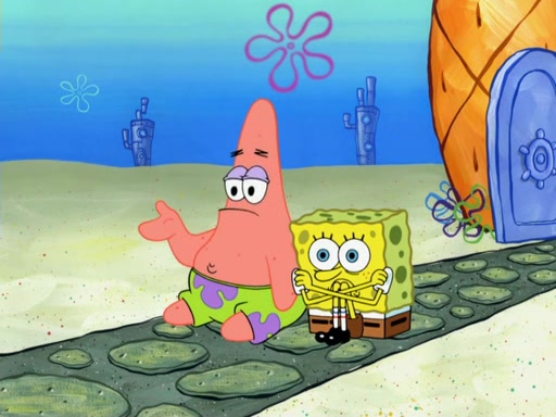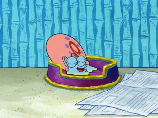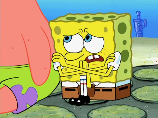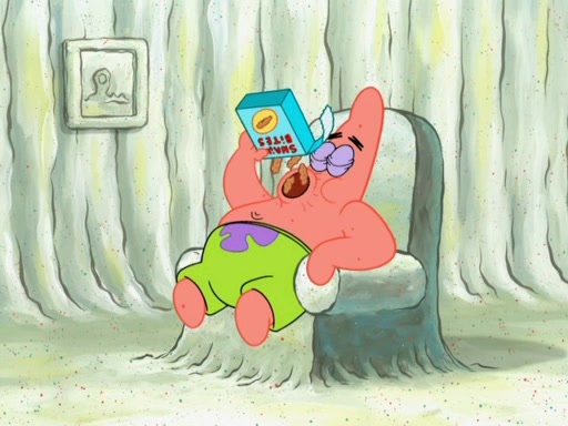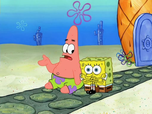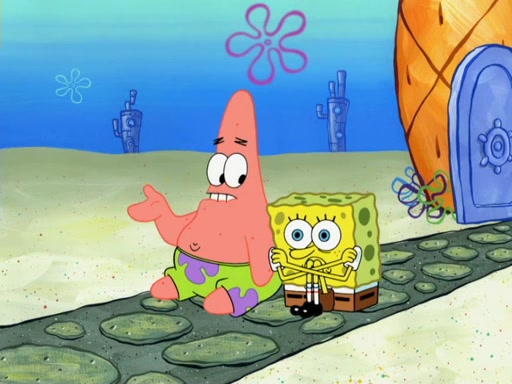 SpongeBob has nothing to do now for Gary's meowing. Patrick then comes and asks SpongeBob why Gary keeps on meowing. SpongeBob explains that Gary wants more treats and they are are not any more. Patrick tells SpongeBob that he should tell Gary "no" in a firm voice. SpongeBob doesn't want to "say no to his widdle Gare-bear." But to have a lot of confidence, Patrick acts like a dog, and SpongeBob says "no" firmly. This causes Patrick to act sad and run away to his house.