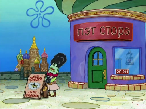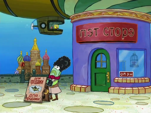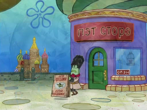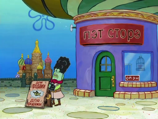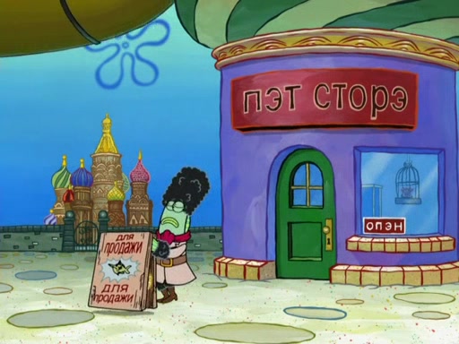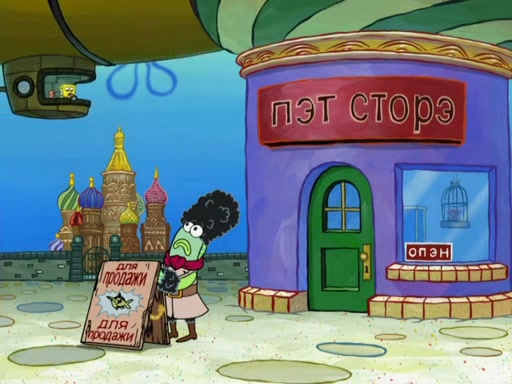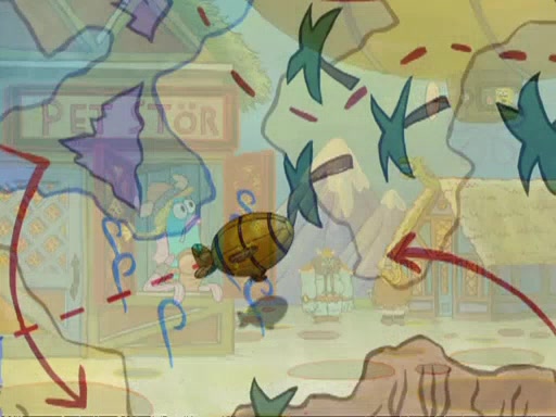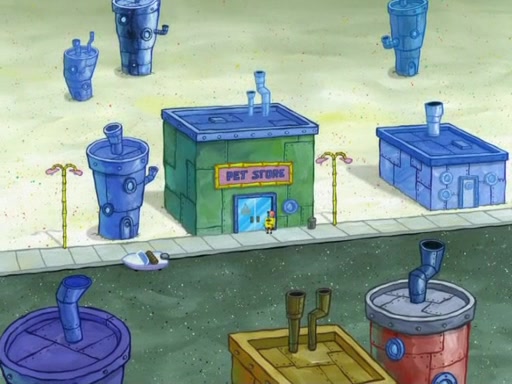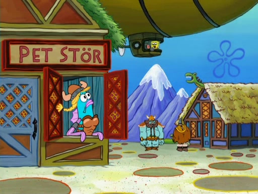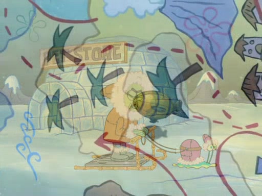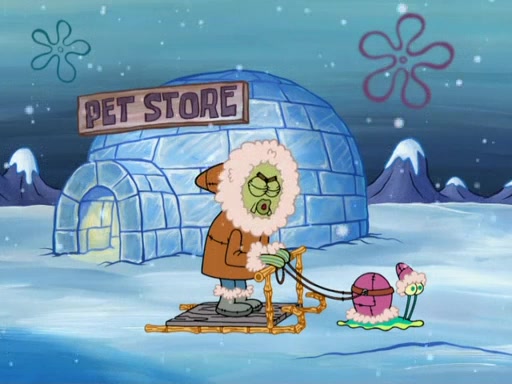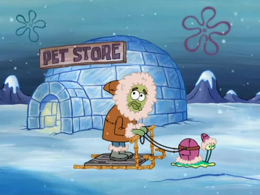 The next scene shows SpongeBob and Gary driving all around the world and looking at all of the pet shops. However, everybody says no because there are not any more Snail Bites anywhere in the world. After looking around, SpongeBob gives up, leaving Gary still meowing for Snail Bites.