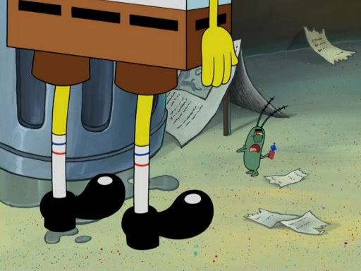 SpongeBob is walking down a sidewalk and singing on his way to work when suddenly he hears a crying sound. He looks down an alley and Plankton was sitting there, crying. Plankton then says that he was crying because one of his inventions backfired again. SpongeBob then asks what the device was, and Plankton said it was a doomsday device. However, it did nothing but spark and fall apart. SpongeBob suggested hiring a friend to fix it, so Plankton looked in the phone book and found Man Ray. But it was under "fiends" instead of "friends". But Plankton didn't care, so he met Man Ray and explained the plan.