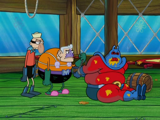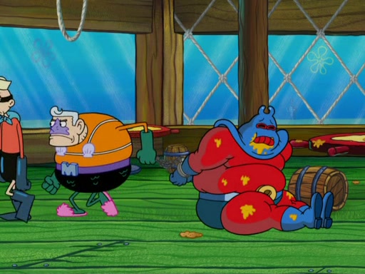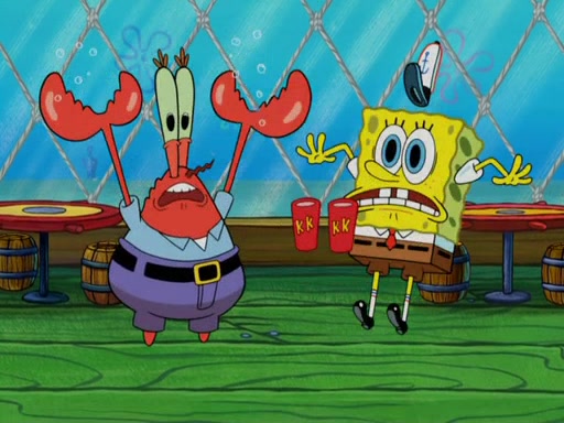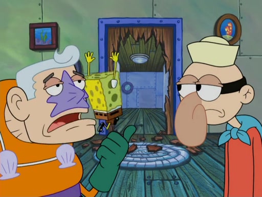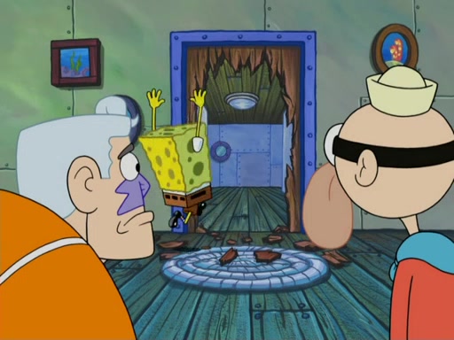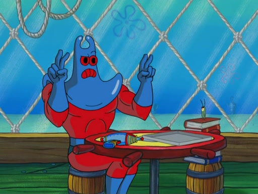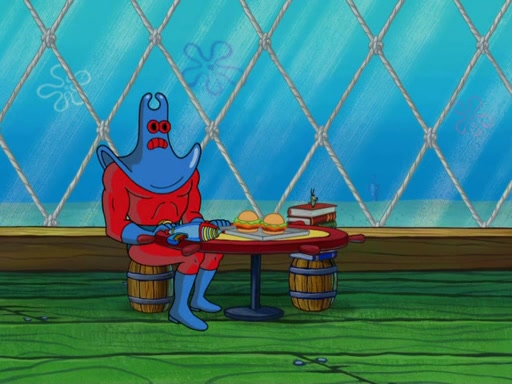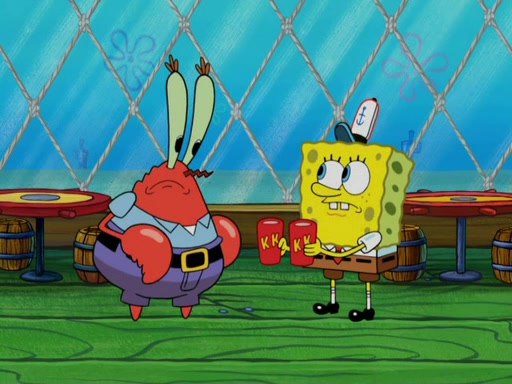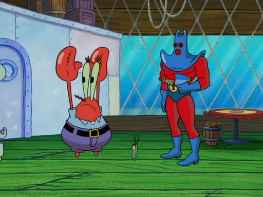 They then went to the Krusty Krab and demanded the Secret formula. When Mr. Krabs said that they'll never get the formula of making Krabby Patties, Man Ray said that he thought it was a formula for world domination, but Plankton explained that if "you control the fast food chain, you can control the world". Plankton then has Man Ray try a Krabby Patty to prove it, but Man Ray became addicted to them and demands more Krabby Patties without letting Plankton eat a single one. Meanwhile, SpongeBob tried to get Mermaid Man and Barnacle Boy for help, but fails many times. He finally got to them and tells them but they told him they can't, leaving SpongeBob to be his own hero. SpongeBob then came back to work to assist the tired Squidward and to "be his own hero". He made more Krabby Patties, in which, Man Ray got fat from. Mermaid Man and Barnacle Boy then came and arrested him thus leaving Plankton to pay the bill for the Krabby Patties.