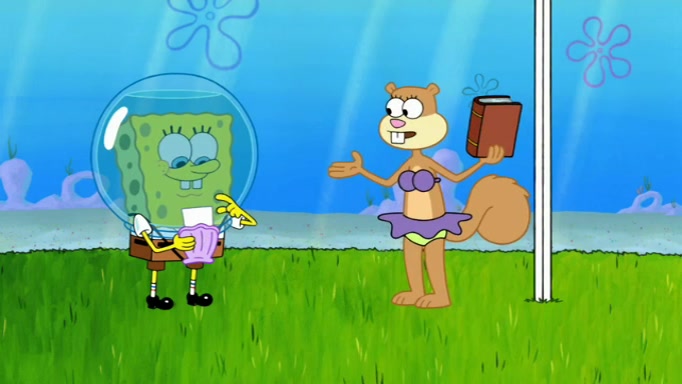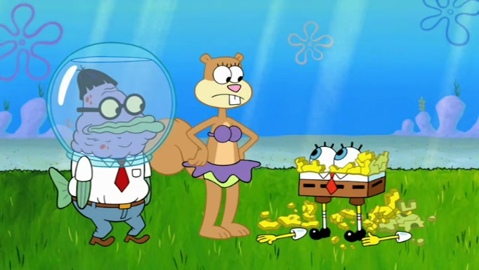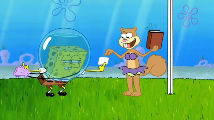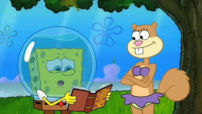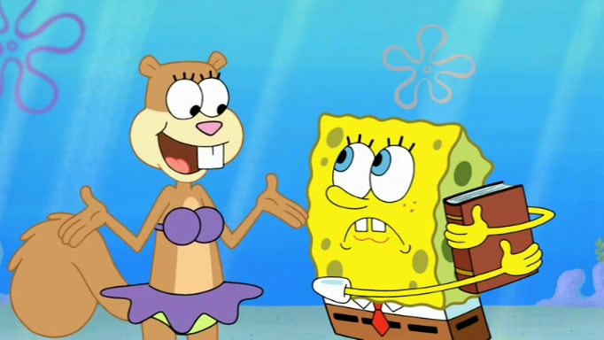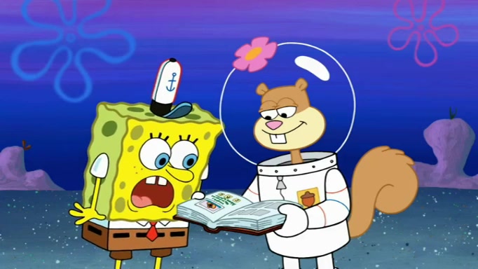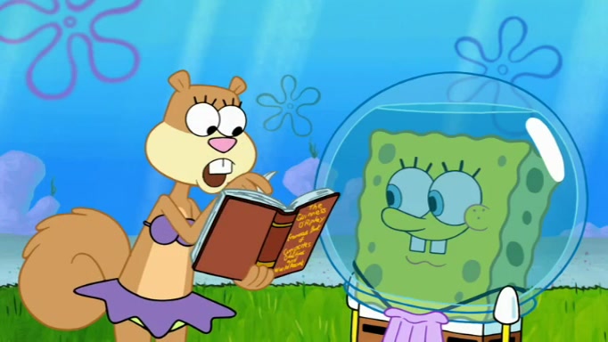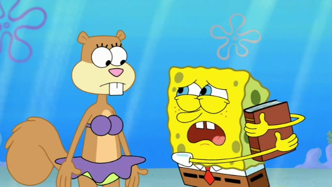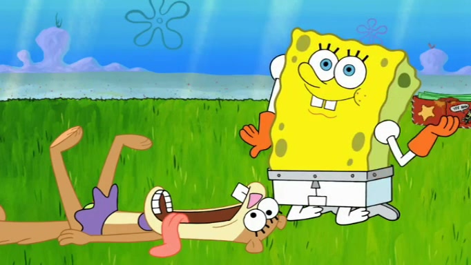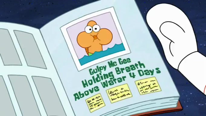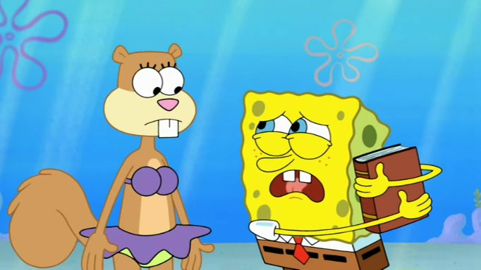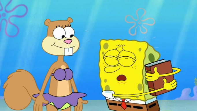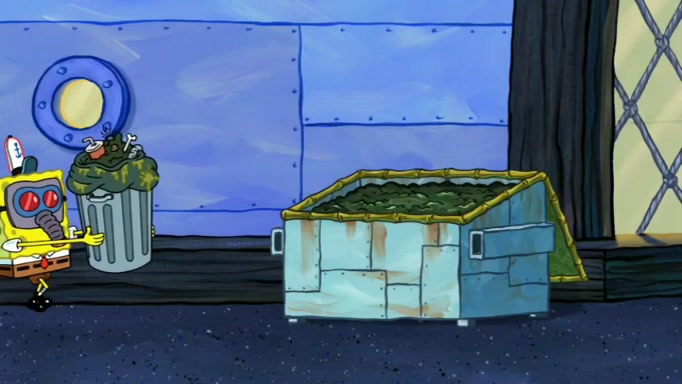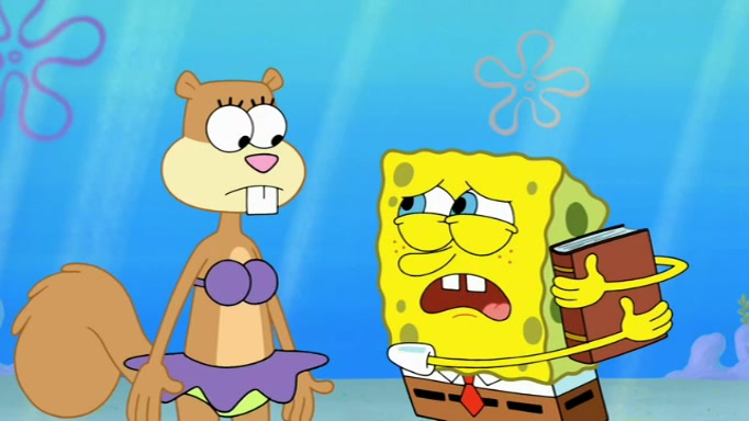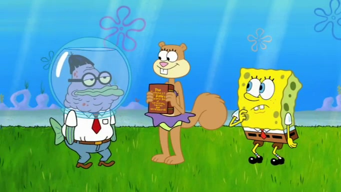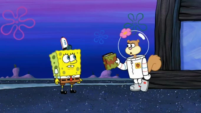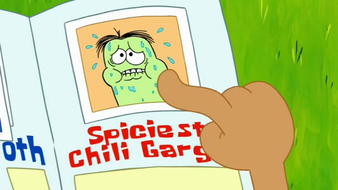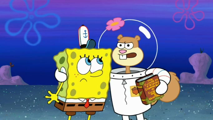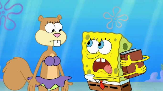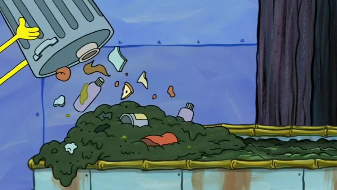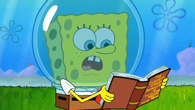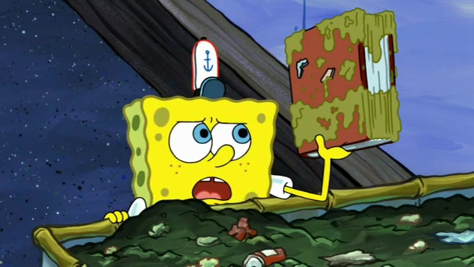At the beginning, the episode starts off at the Krusty Krab where Squidward is sleeping at the cash register, until Squidward's clock starts ringing which causes him to wake up and stop the clock ringing with his hand. Squidward then pokes his head in the kitchen and yells at SpongeBob to go home since it's quitting time. SpongeBob is obliviously not paying attention. A minute later, SpongeBob's watch beeps and notices that it's quitting time. He asks Squidward why he is still there. Squidward is frustrated by this and runs out of the Krusty Krab yelling angrily. Still in the kitchen, SpongeBob doesn't want to throw away a cooked patty, so he puts the patty in his wallet for later. SpongeBob then smells garbage and decides to take out the trash. While dumping the trash into the Dumpster, SpongeBob notices a book covered in garbage and claims "You shouldn't throw away books." Suddenly, SpongeBob sees a big green slimy monster emerging from the dumpster. SpongeBob then throws the book at it, causing it to fall over. The slime dissolves to reveal that it was actually Sandy. Sandy claims that she is not a trash monster and was just trying to break the record for rooting around in a trash bin. Sandy shows SpongeBob the book he was holding is called "Guinness O'Ripley Enormous Book of Curiousities, Oddities and World Records." She then shows SpongeBob some of the world records in the book and claims she wants to beat every record in that book.