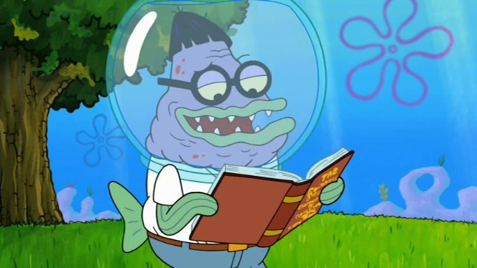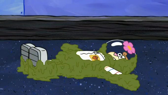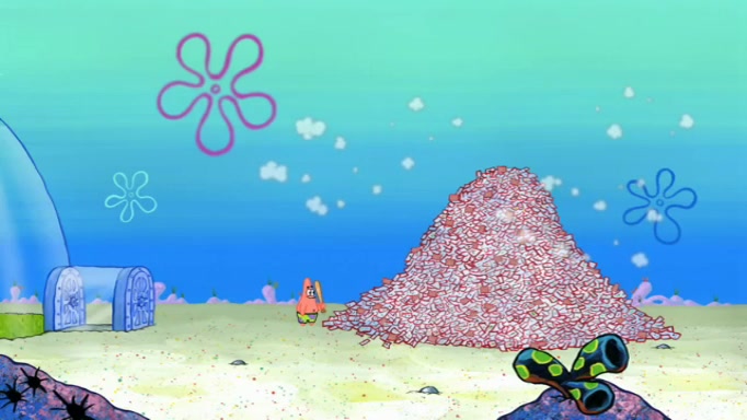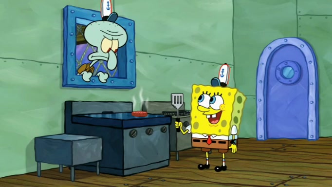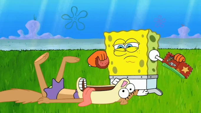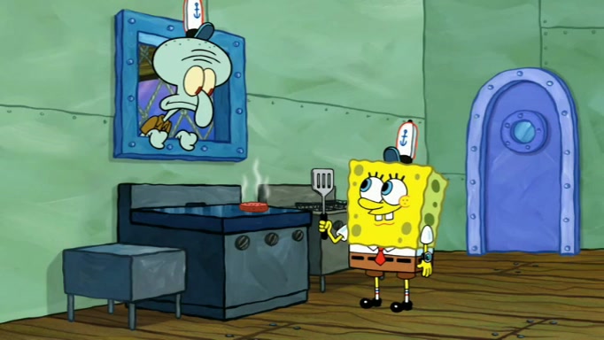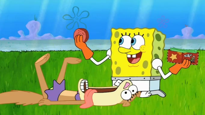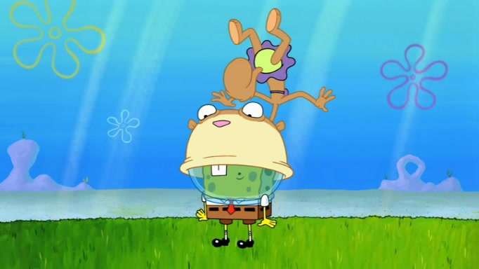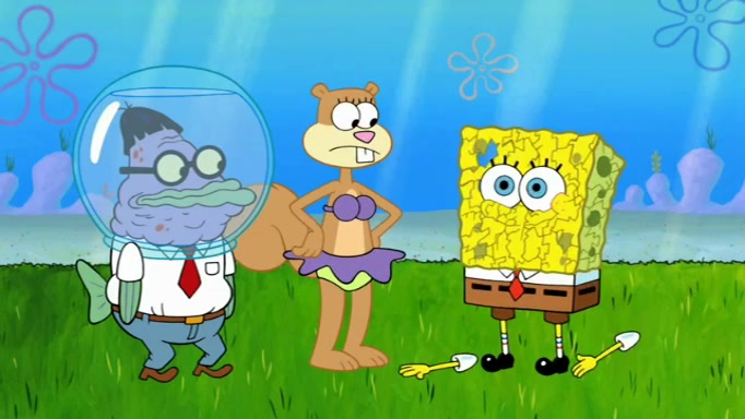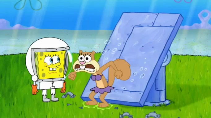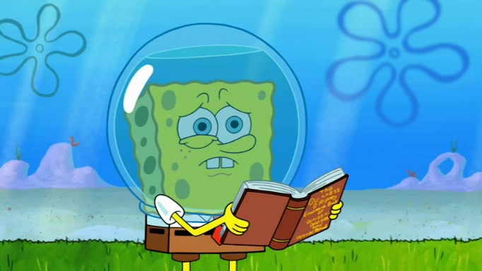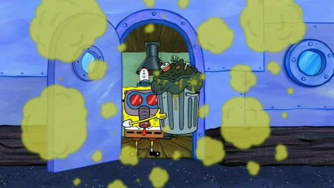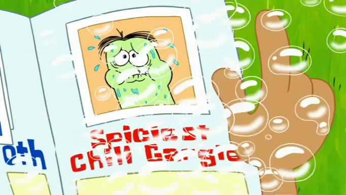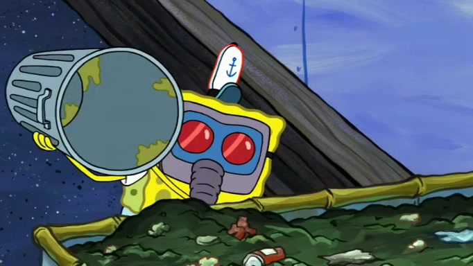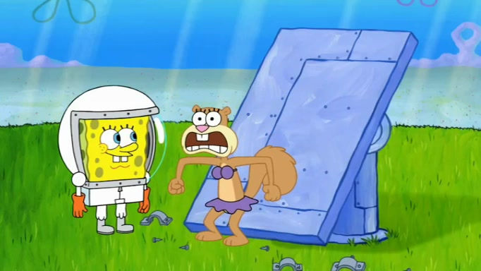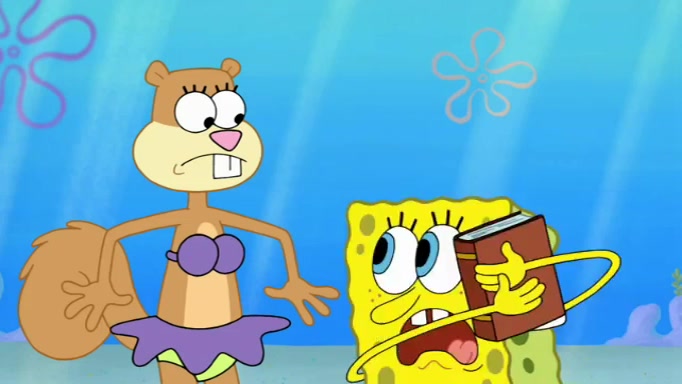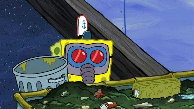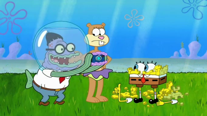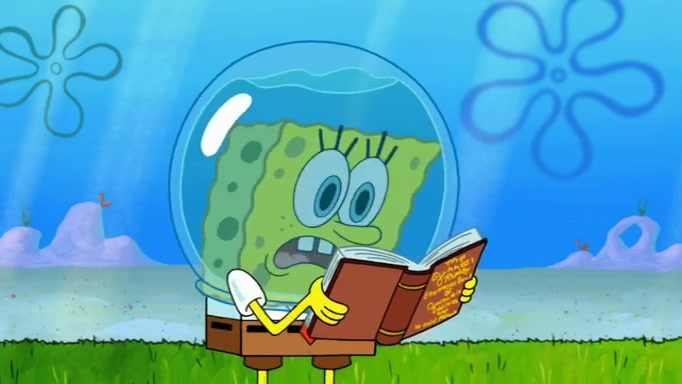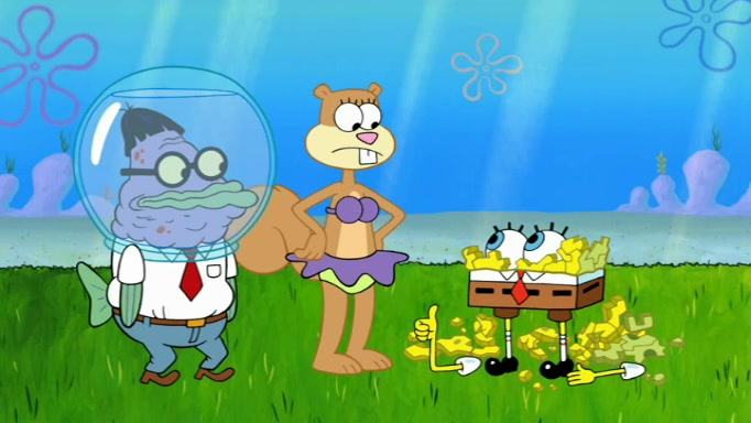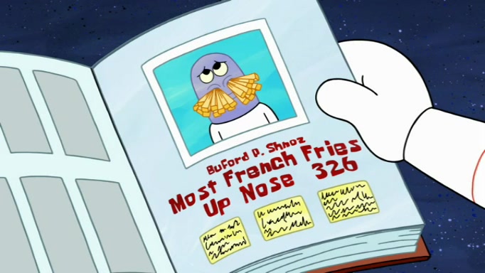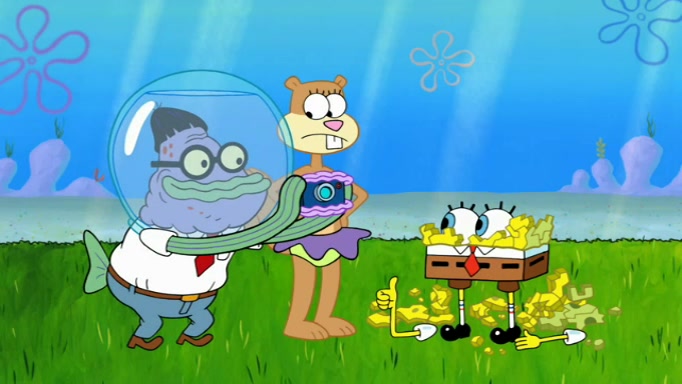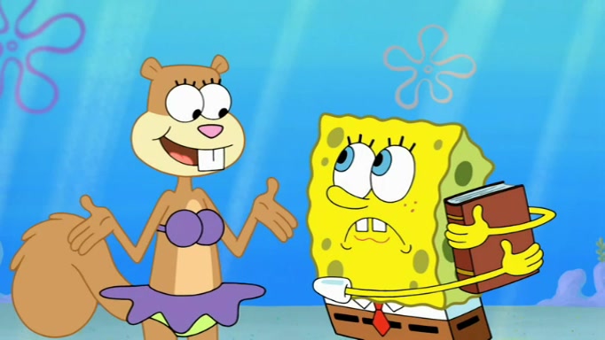 At the beginning, the episode starts off at the Krusty Krab where Squidward is sleeping at the cash register, until Squidward's clock starts ringing which causes him to wake up and stop the clock ringing with his hand. Squidward then pokes his head in the kitchen and yells at SpongeBob to go home since it's quitting time. SpongeBob is obliviously not paying attention. A minute later, SpongeBob's watch beeps and notices that it's quitting time. He asks Squidward why he is still there. Squidward is frustrated by this and runs out of the Krusty Krab yelling angrily. Still in the kitchen, SpongeBob doesn't want to throw away a cooked patty, so he puts the patty in his wallet for later. SpongeBob then smells garbage and decides to take out the trash. While dumping the trash into the Dumpster, SpongeBob notices a book covered in garbage and claims "You shouldn't throw away books." Suddenly, SpongeBob sees a big green slimy monster emerging from the dumpster. SpongeBob then throws the book at it, causing it to fall over. The slime dissolves to reveal that it was actually Sandy. Sandy claims that she is not a trash monster and was just trying to break the record for rooting around in a trash bin. Sandy shows SpongeBob the book he was holding is called "Guinness O'Ripley Enormous Book of Curiousities, Oddities and World Records." She then shows SpongeBob some of the world records in the book and claims she wants to beat every record in that book.