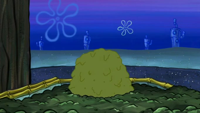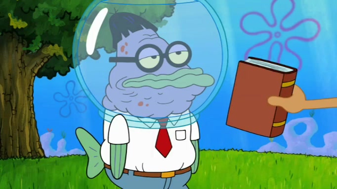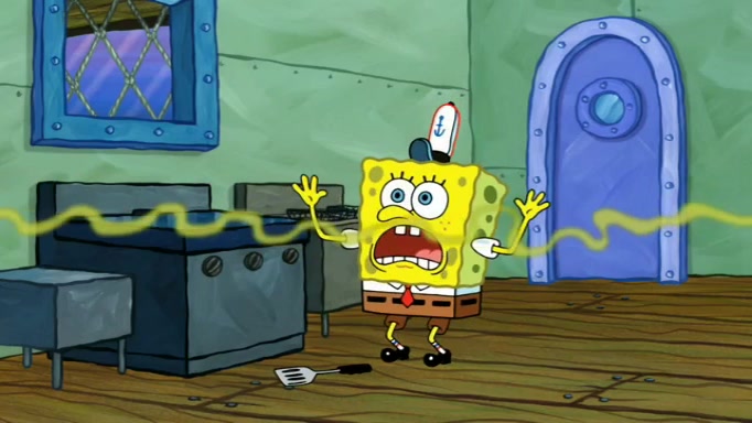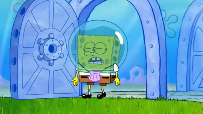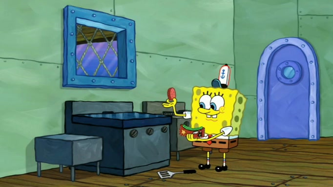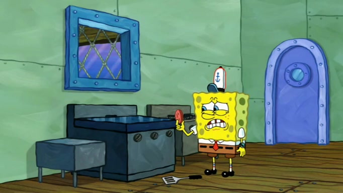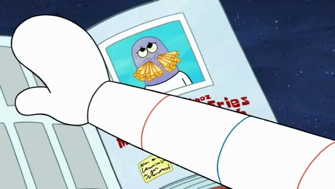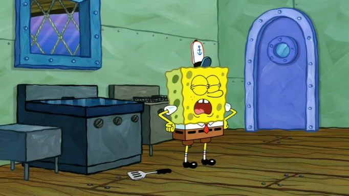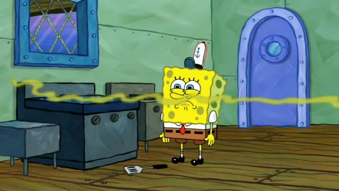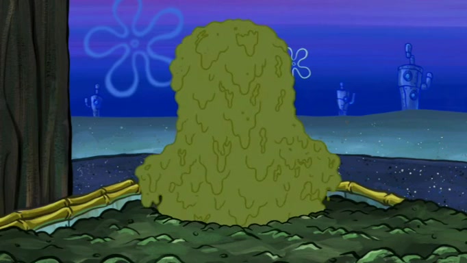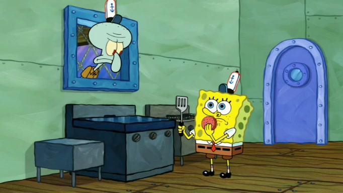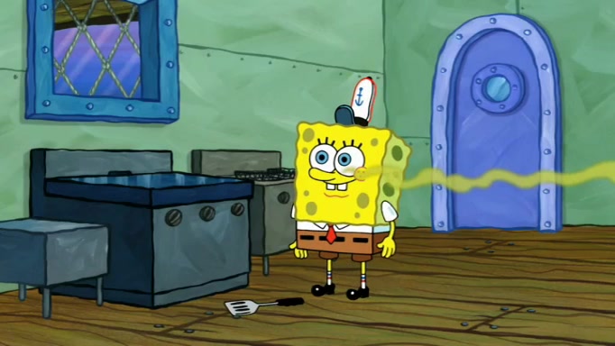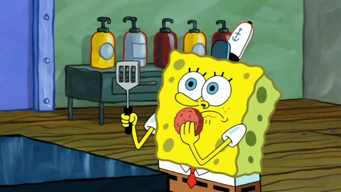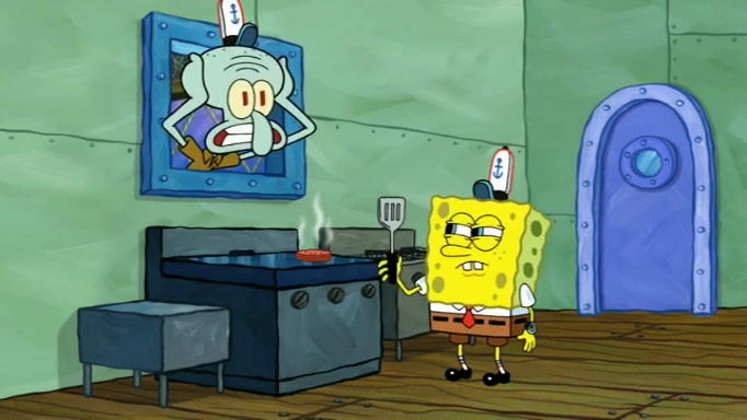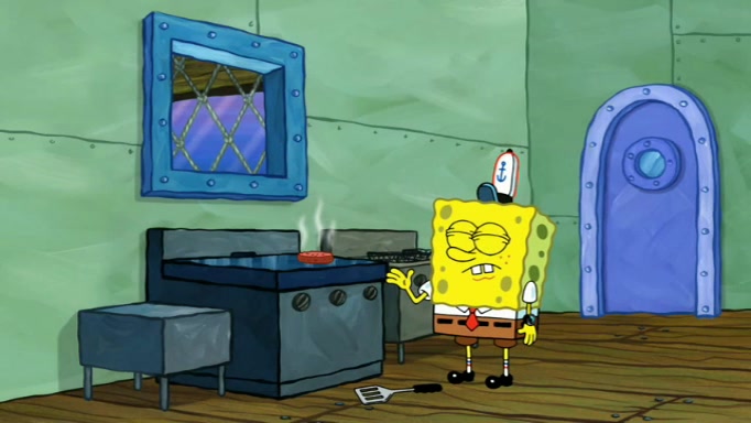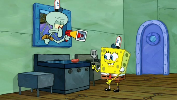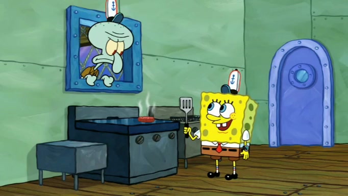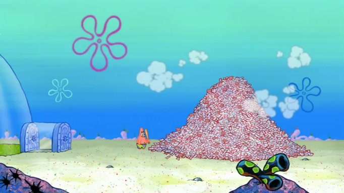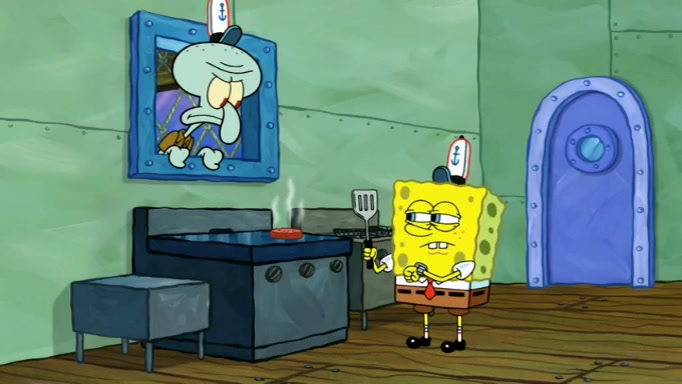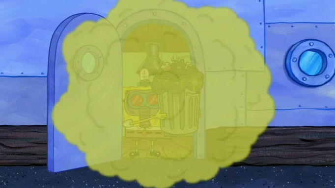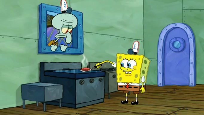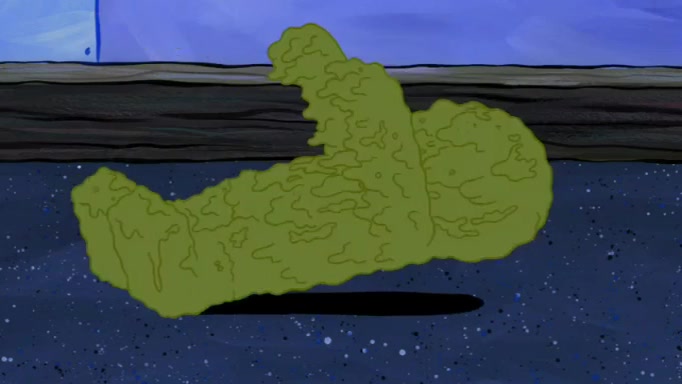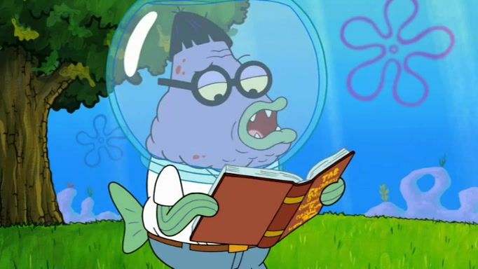 At the beginning, the episode starts off at the Krusty Krab where Squidward is sleeping at the cash register, until Squidward's clock starts ringing which causes him to wake up and stop the clock ringing with his hand. Squidward then pokes his head in the kitchen and yells at SpongeBob to go home since it's quitting time. SpongeBob is obliviously not paying attention. A minute later, SpongeBob's watch beeps and notices that it's quitting time. He asks Squidward why he is still there. Squidward is frustrated by this and runs out of the Krusty Krab yelling angrily. Still in the kitchen, SpongeBob doesn't want to throw away a cooked patty, so he puts the patty in his wallet for later. SpongeBob then smells garbage and decides to take out the trash. While dumping the trash into the Dumpster, SpongeBob notices a book covered in garbage and claims "You shouldn't throw away books." Suddenly, SpongeBob sees a big green slimy monster emerging from the dumpster. SpongeBob then throws the book at it, causing it to fall over. The slime dissolves to reveal that it was actually Sandy. Sandy claims that she is not a trash monster and was just trying to break the record for rooting around in a trash bin. Sandy shows SpongeBob the book he was holding is called "Guinness O'Ripley Enormous Book of Curiousities, Oddities and World Records." She then shows SpongeBob some of the world records in the book and claims she wants to beat every record in that book.