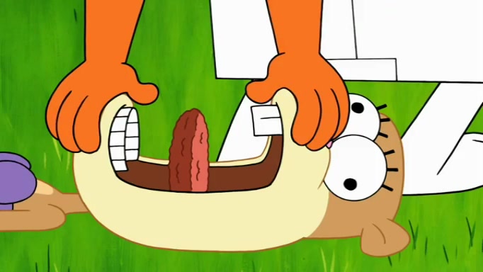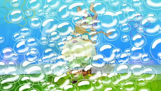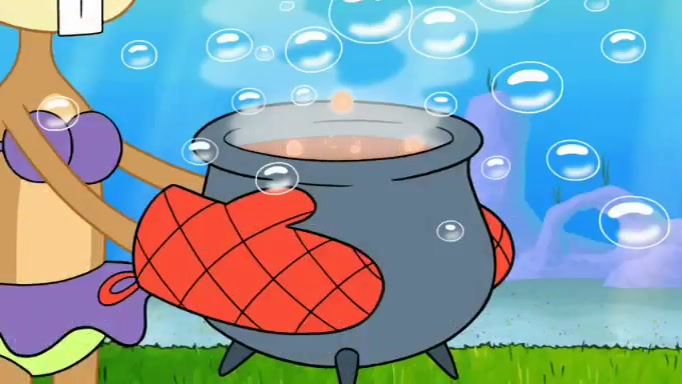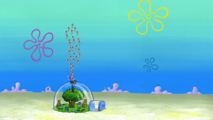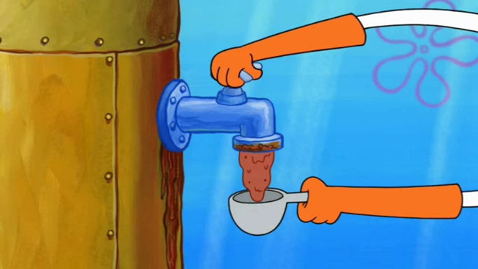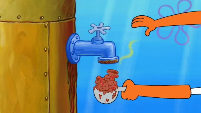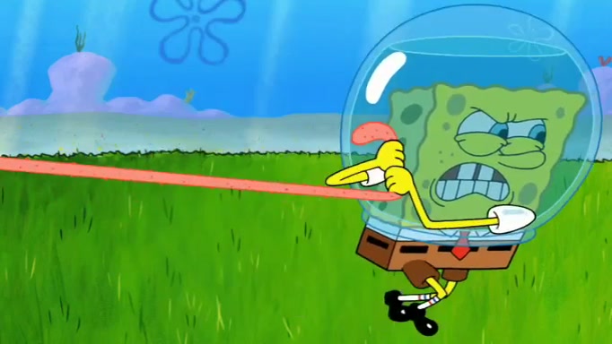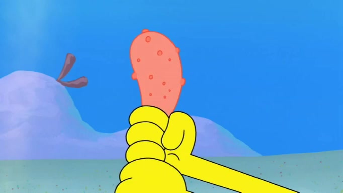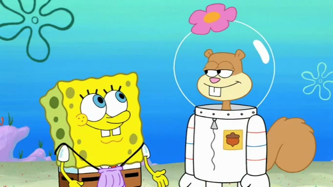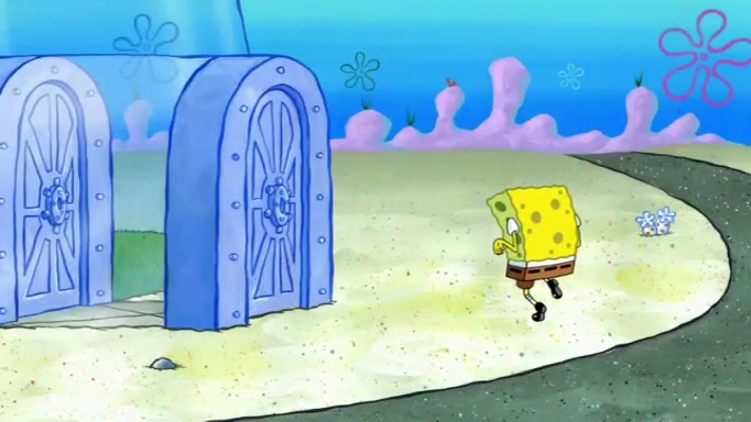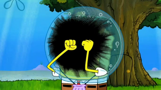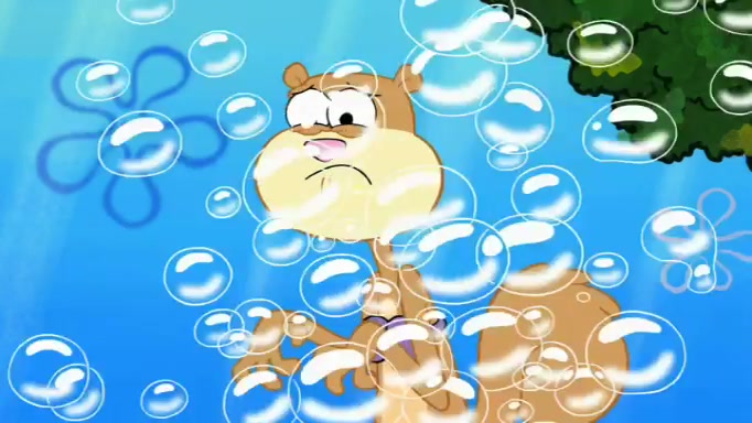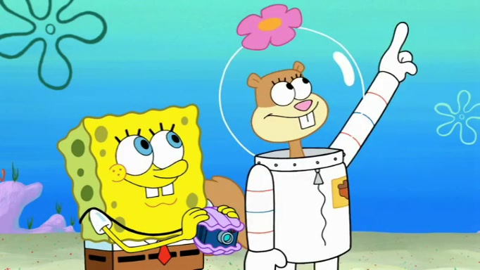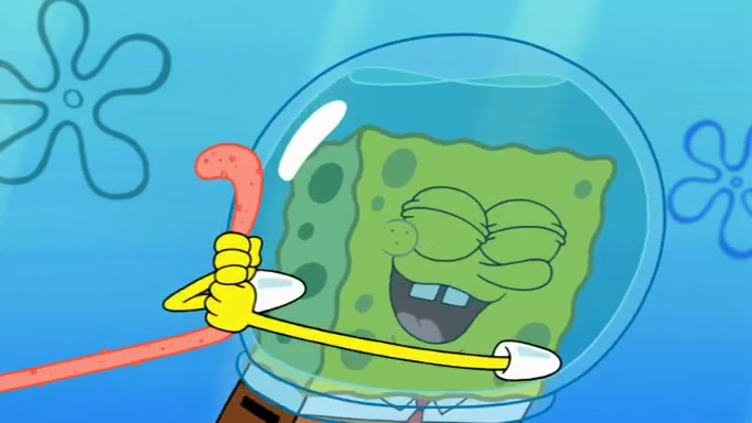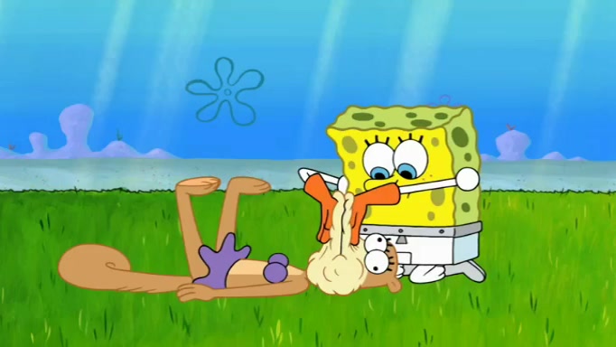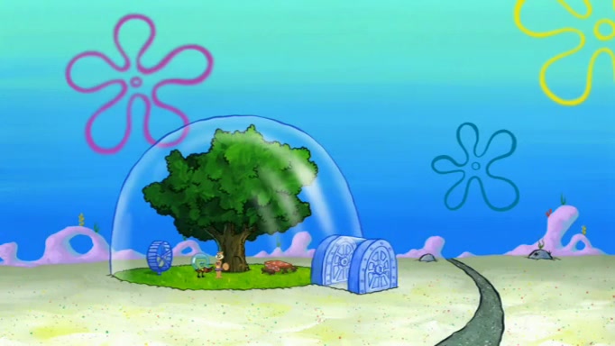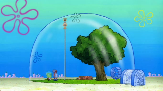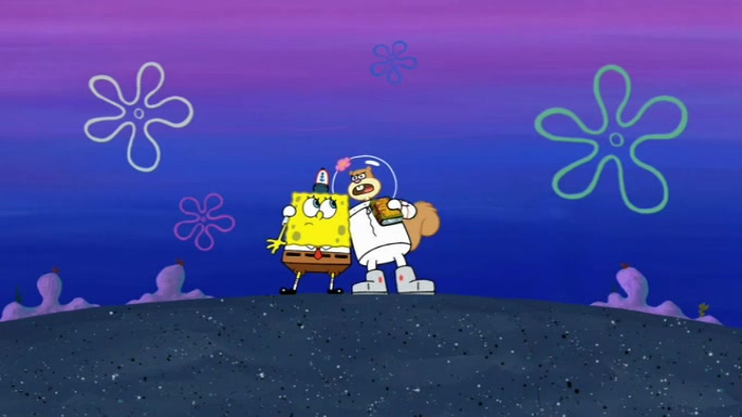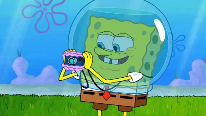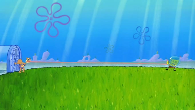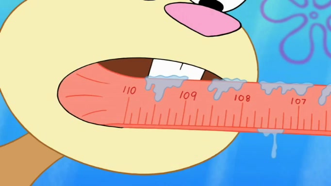 The scene cuts to Sandy's Treedome where SpongeBob and Sandy try to break the record for world's longest tongue. Sandy holds her hand on her door while SpongeBob pulls on Sandy's tongue. The record is broken after SpongeBob stretches her tongue up to 110 inches. The next record is to eat raw chum, so SpongeBob and Sandy go to the Chum Bucket and ask Plankton to give them raw chum. Plankton, however, warns them that no one can injest raw chum and survive, but SpongeBob and Sandy don't care. Later in Sandy's Treedome, SpongeBob wears a special germ suit and gives Sandy a spoon of raw chum. Sandy then swallows it and freaks out. SpongeBob tells Sandy that she survived and broke the record. However, Sandy suddenly becomes subconscious from eating the raw chum. SpongeBob then takes off his water helmet and feeds Sandy the patty he saved from work. Sandy recovers from her subconscious and says "I can't wait to show them experts the pictures of my record breaking feats." SpongeBob then realizes he forgot his camera and goes home to get it.