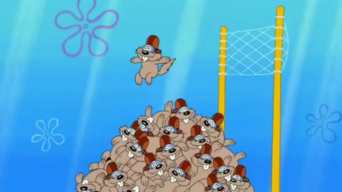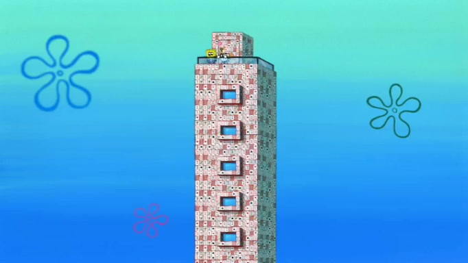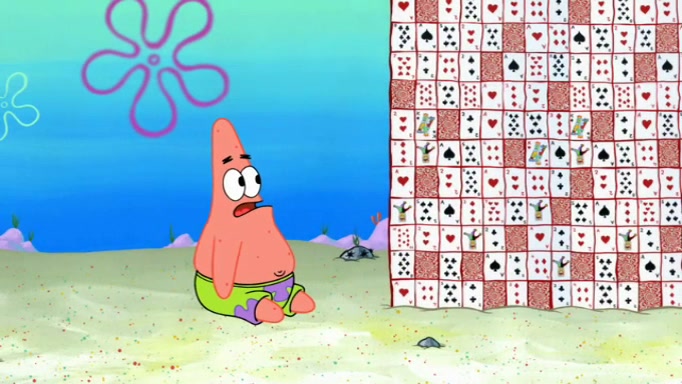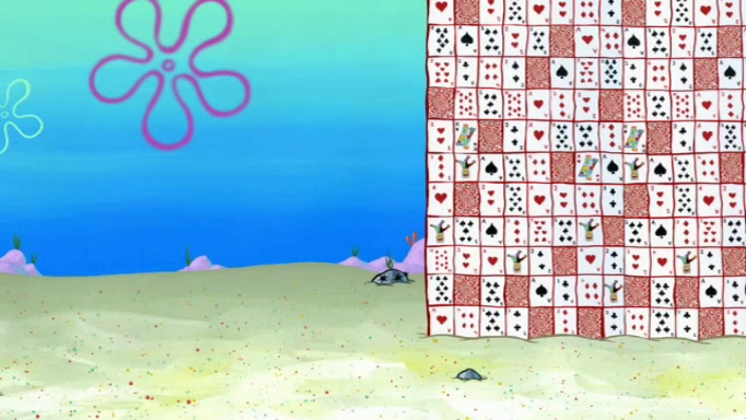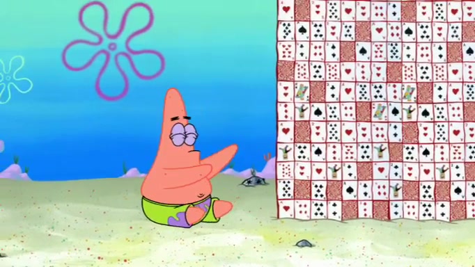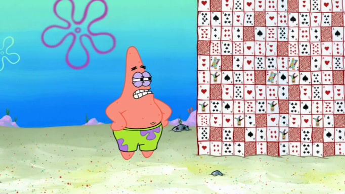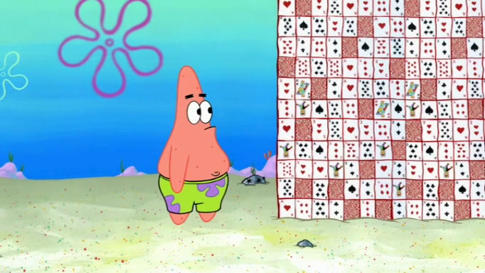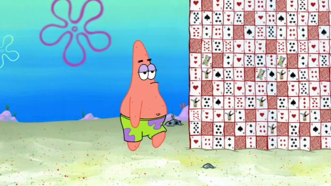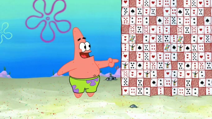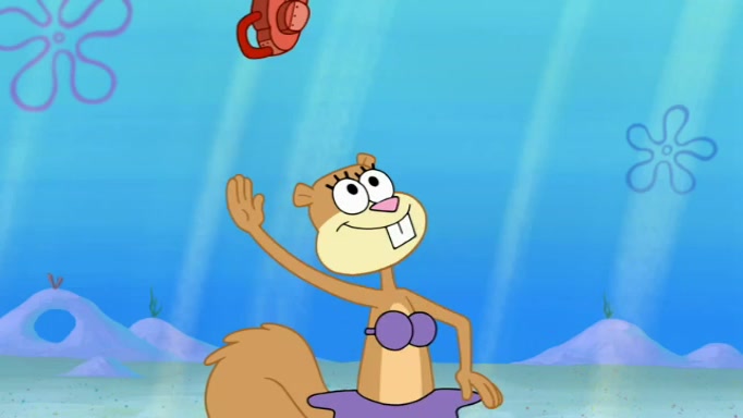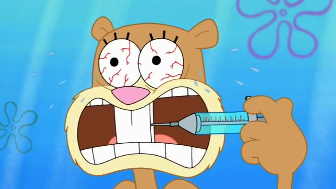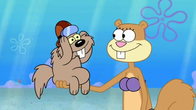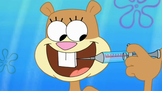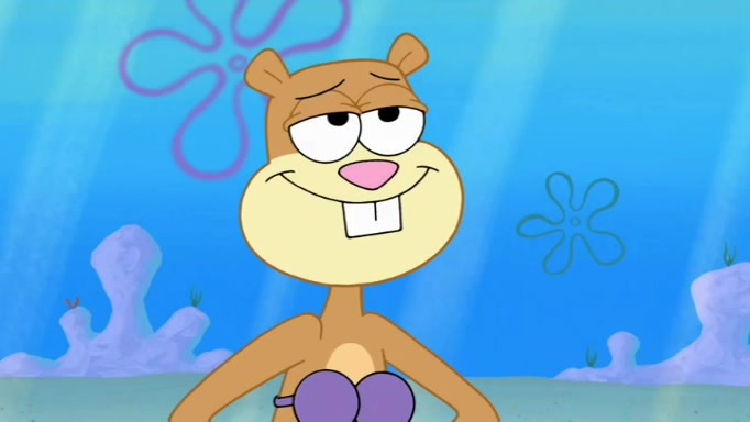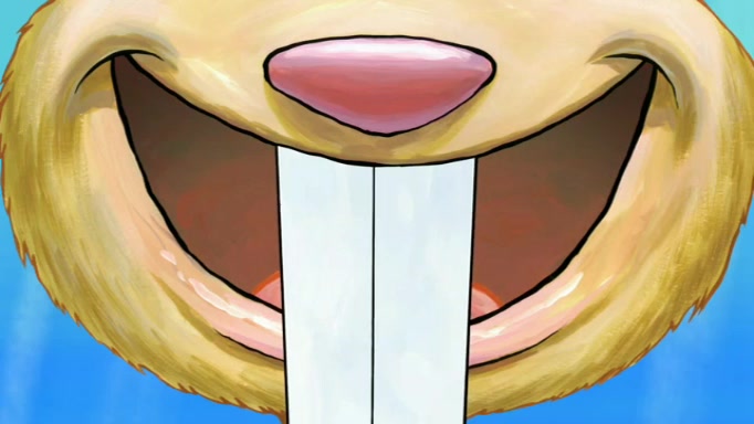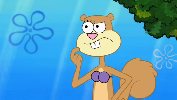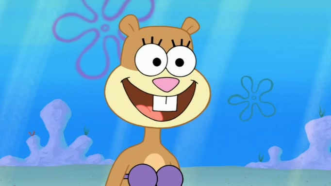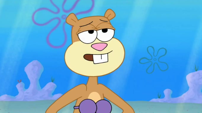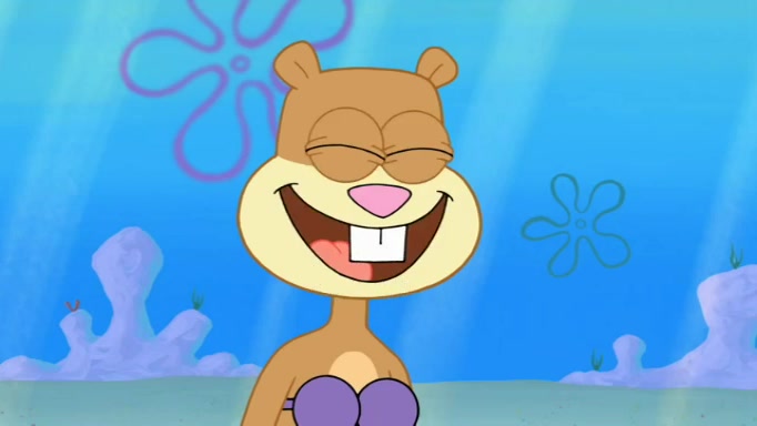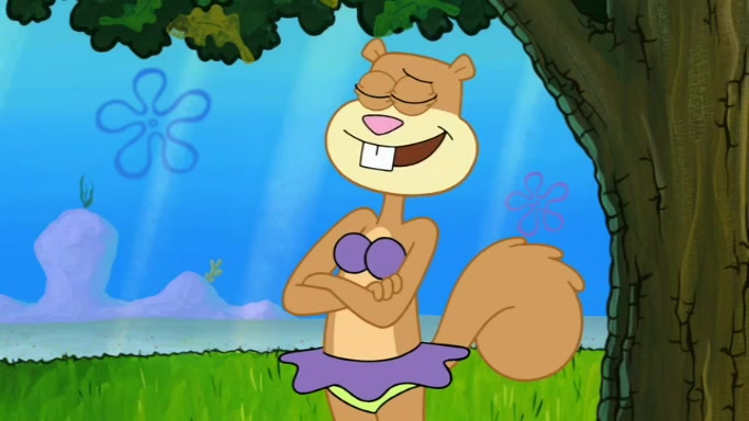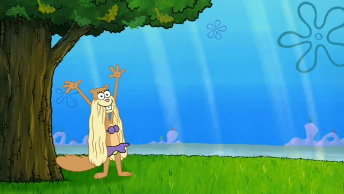 When SpongeBob returns, he sees Sandy's Treedome filled with a bunch of robots. Sandy comes up to SpongeBob and asks him to take a picture of her throwing a woodchuck to break the woodchuck chuckin' world record. SpongeBob takes the photo of Sandy throwing a woodchuck and she breaks the record. Sandy at that occasion sends the woodchucks back to where they belong. Afterwards, SpongeBob asks Sandy "What is all this?" Sandy explains that she had constructed many robots to help keep track of her records and with careful planning and precise delication of appropriate tasks so that she can manage the successful completion of the maximum number of records broken in the least amount of time. Sandy takes the picture of her throwing a woodchuck from SpongeBob and places it in the book. Sandy flips the page of the world records book to see what's next. The next record is the world's longest tooth. Sandy then asks one of the robots how the calcium fusion is going. The robot replies, "It is ready, Miss Cheeks." Sandy administers the shot and her tooth grows. It continues to grow until she hits her head on the ceiling of the treedome. The robot uses a tape measure and reaches 35 feet which breaks the record. SpongeBob takes a picture and tells Sandy to say "Cheese!" Sandy saws a giant part of the tooth off her top tooth and slides down. The next record is, spiciest chili gargle. So, Sandy gargles on chili as SpongeBob takes a picture. Sandy gulps the spicy chilly and breathes out fire at SpongeBob. The next record is largest rubber band ball. SpongeBob takes a picture of the large rubber band ball as Sandy lets go of it and SpongeBob gets crushed. The record after that is most cobras milked. SpongeBob takes a picture of Sandy milking the cobras. After that, the next record is most walnuts in mouth. Sandy gets a lot of walnuts in her mouth, SpongeBob takes a photo and Sandy spits out the walnuts. After that record, the next one is most chainsaws juggled. The scene cuts to Sandy juggling chainsaws with robots giving her more to juggle. SpongeBob takes a picture of her juggling the chainsaws and asks "How do you stop?" To answer his question, Sandy stops juggling chainsaws and then runs like heck. However, SpongeBob accidentally gets cut into pieces by chainsaws because he ran the wrong way. SpongeBob puts himself back together and says "It is getting kinda dangerous." Sandy then takes SpongeBob and herself outside the treedome and shows SpongeBob the world's largest house of cards. Sandy and SpongeBob go up to the top of the house of cards so that they can take a picture. Meanwhile, Patrick is walking along and sees the house of cards is made with Solitaire cards. Patrick comes back with a baseball bat and hits the house of cards causing the world's largest house of cards to collapse as SpongeBob and Sandy scream when they fall from the top. Thereupon, SpongeBob tells Sandy that he can smell Gary's sandbox and goes home to clean it.