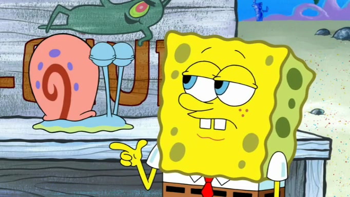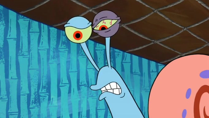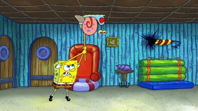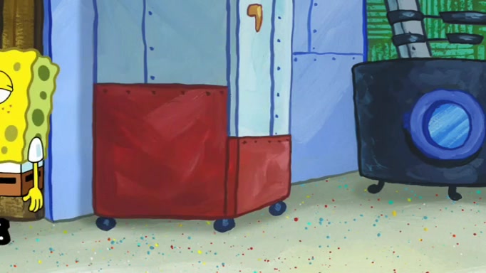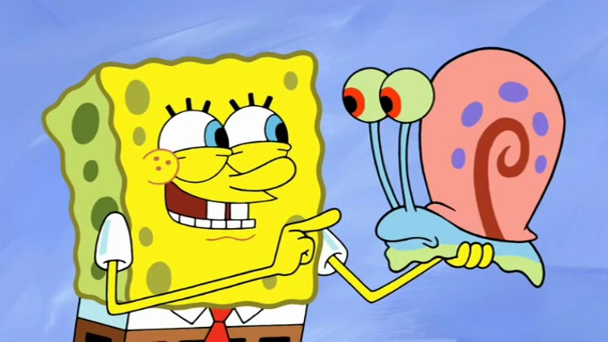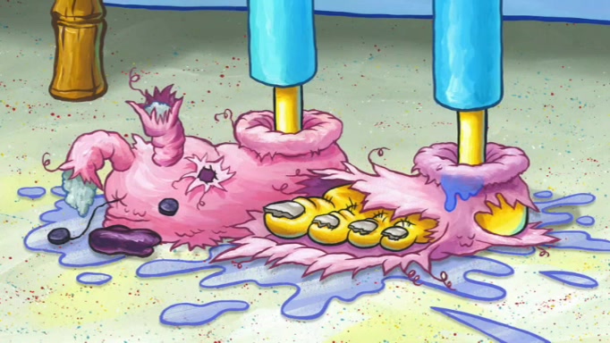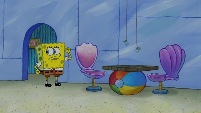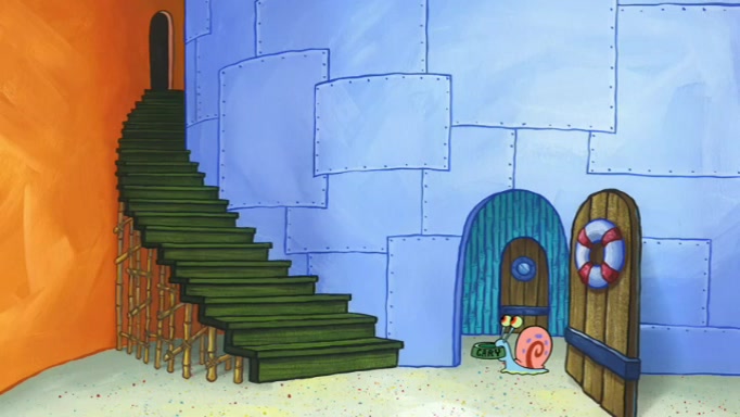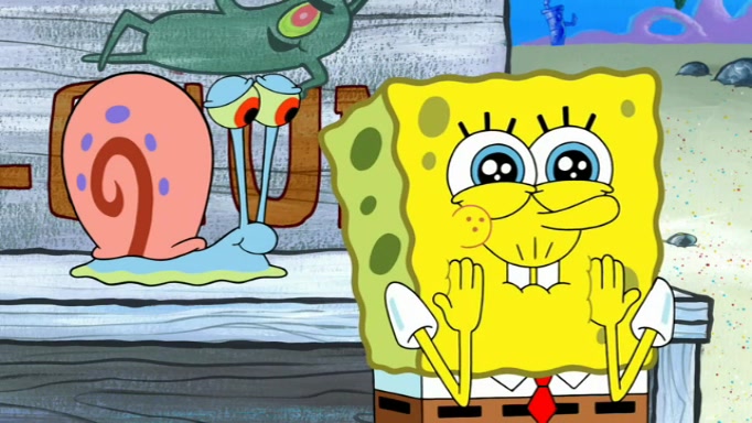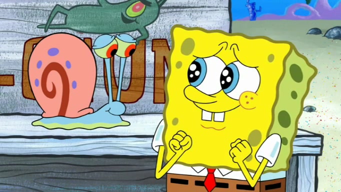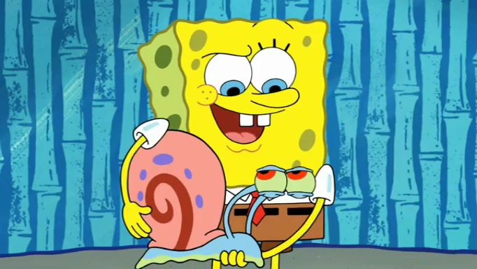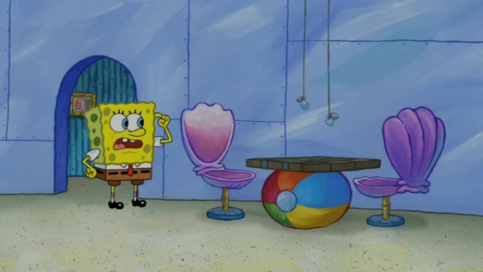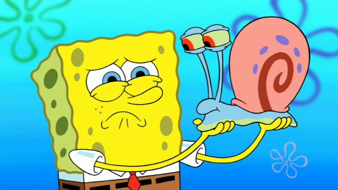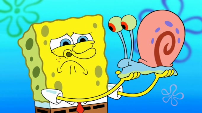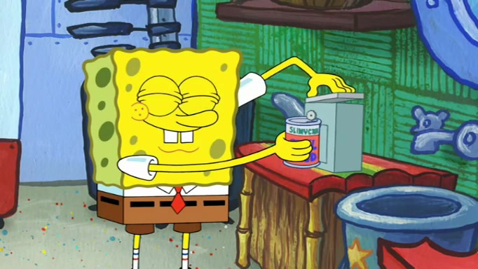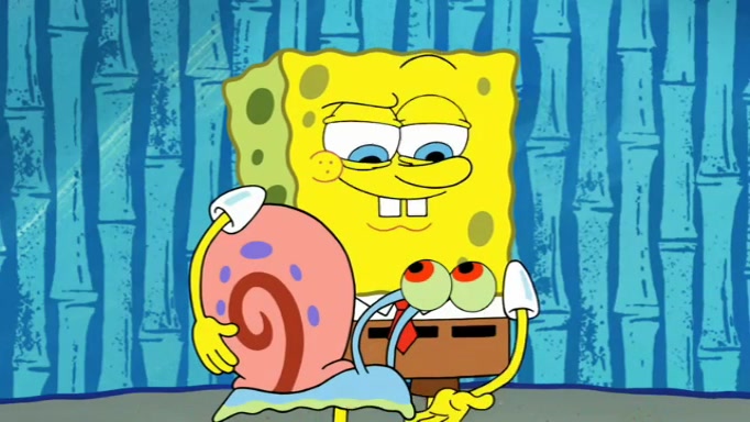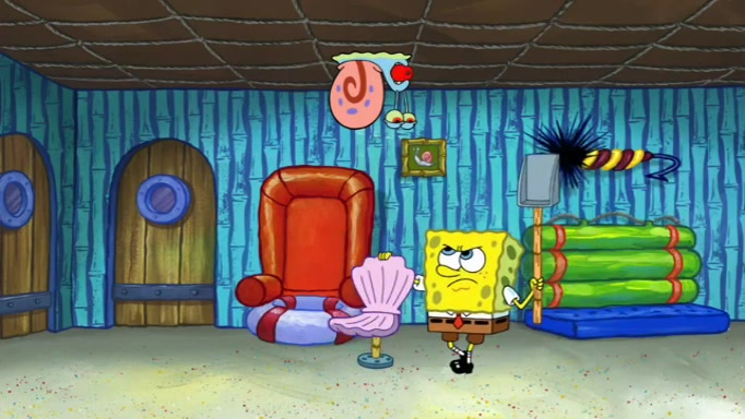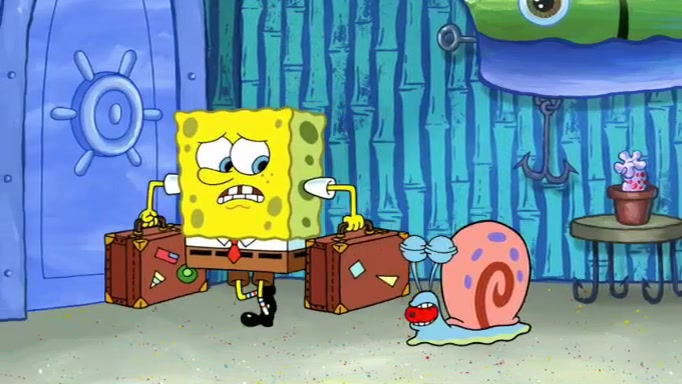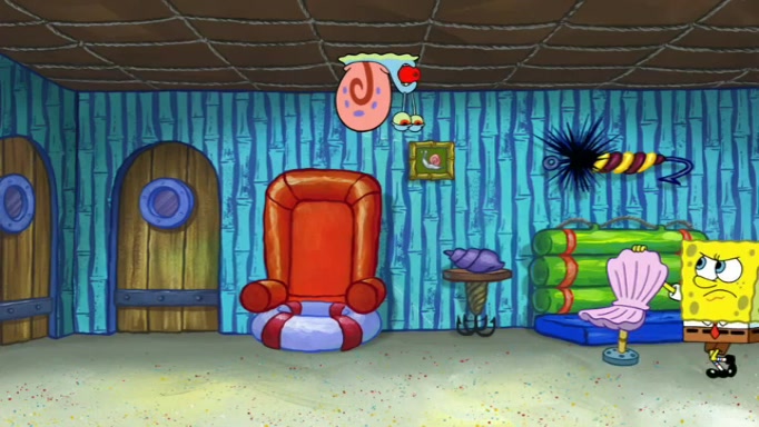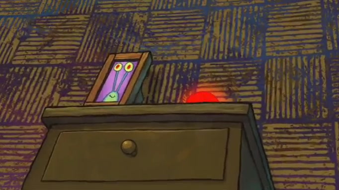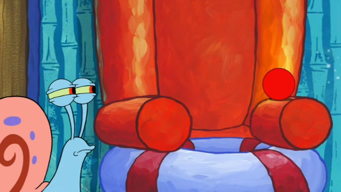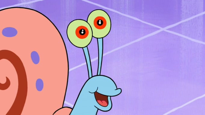 SpongeBob, thinking Gary loves the red ball more than him, decides to lure him out with snail food. He goes into the garage and notices Gary with lipstick, which he finds creepy, SpongeBob tells Gary that he needs to spend some time away from that ball, but Gary hits the garage door button, causing SpongeBob to be lifted up and crushed on the ceiling.