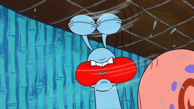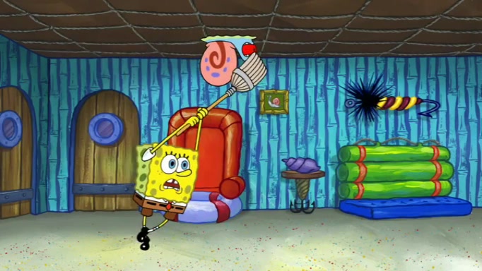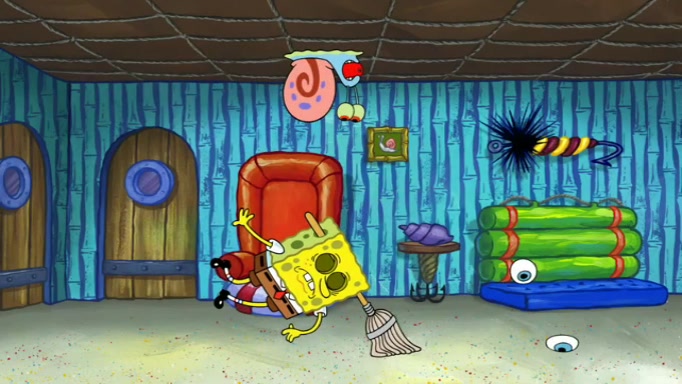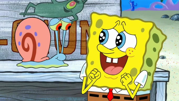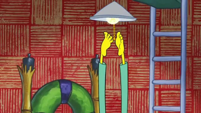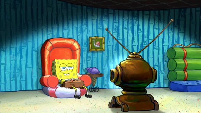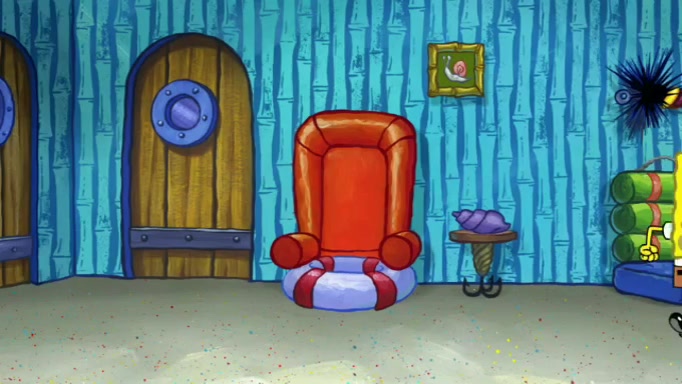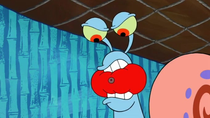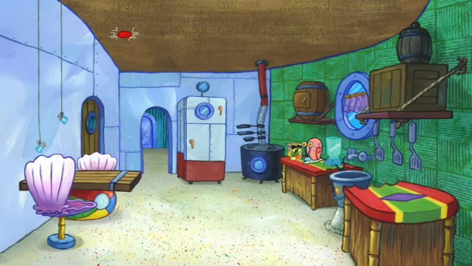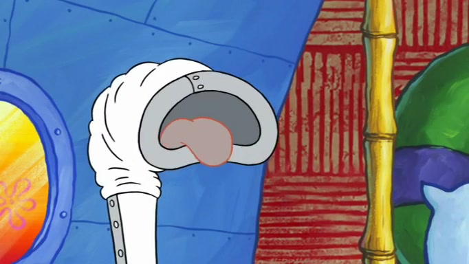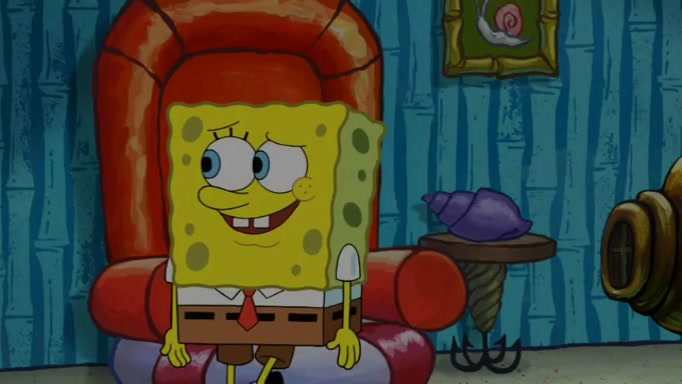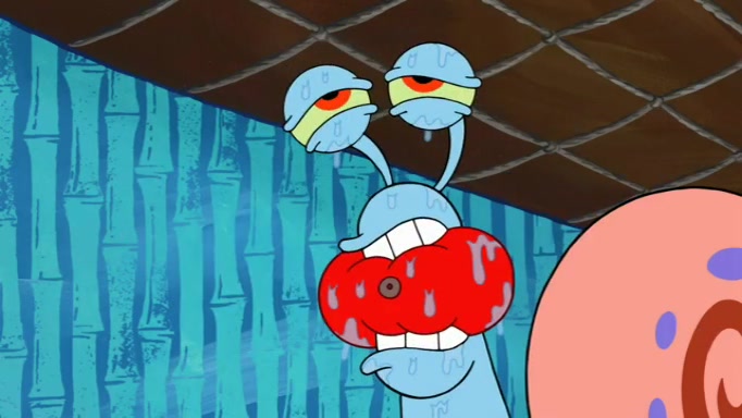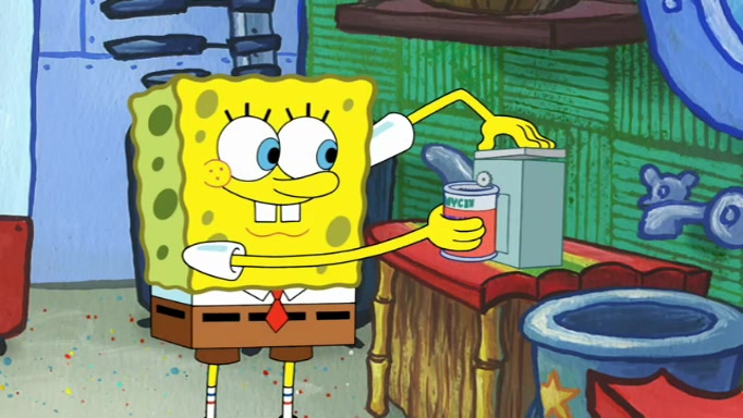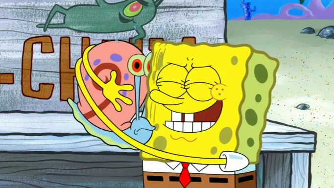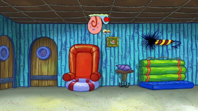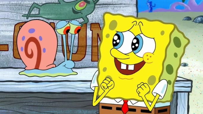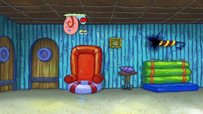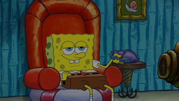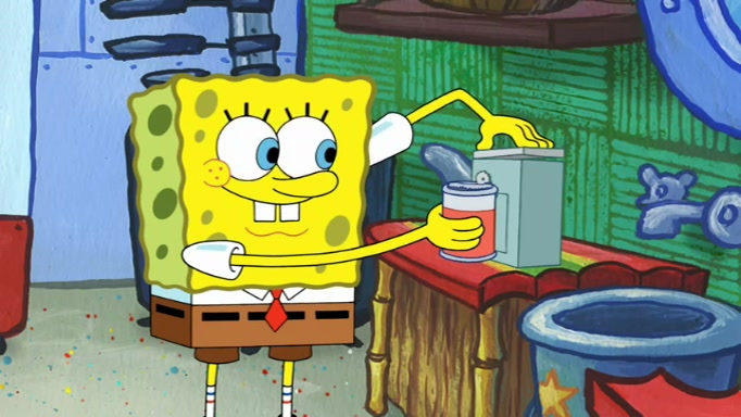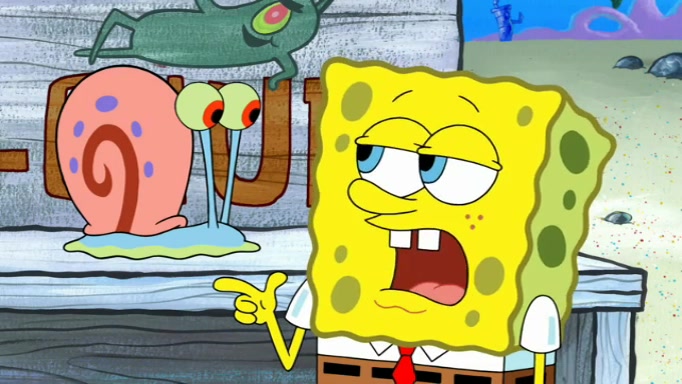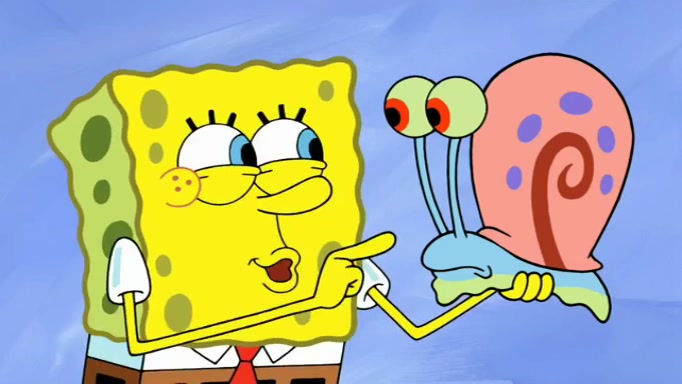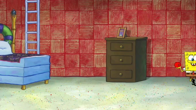 SpongeBob, thinking Gary loves the red ball more than him, decides to lure him out with snail food. He goes into the garage and notices Gary with lipstick, which he finds creepy, SpongeBob tells Gary that he needs to spend some time away from that ball, but Gary hits the garage door button, causing SpongeBob to be lifted up and crushed on the ceiling.