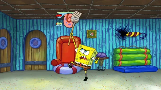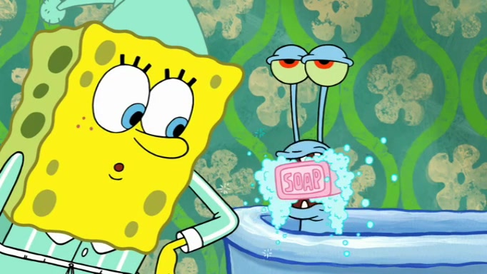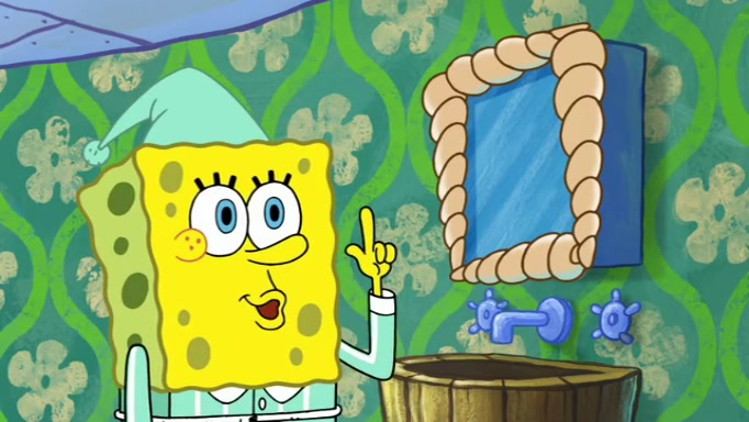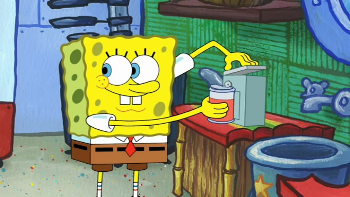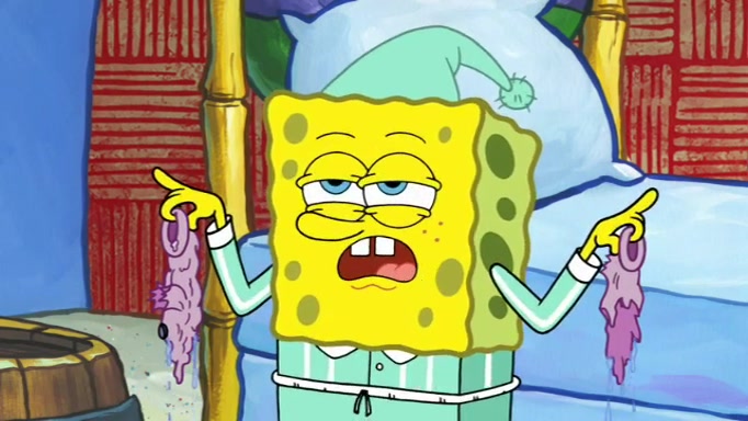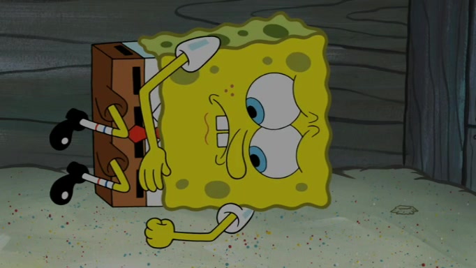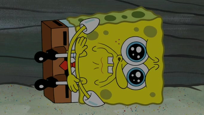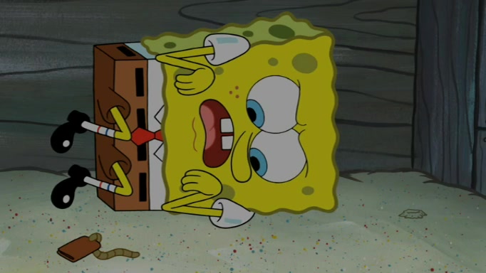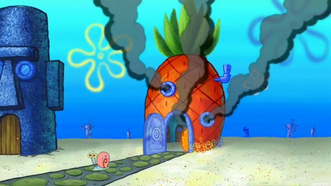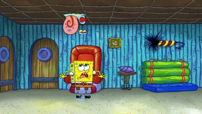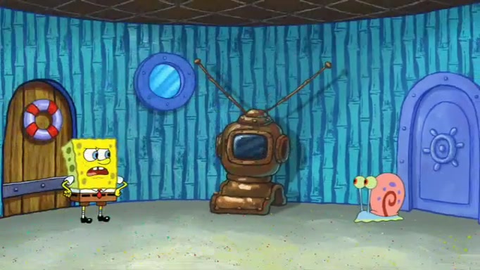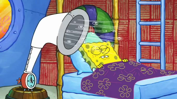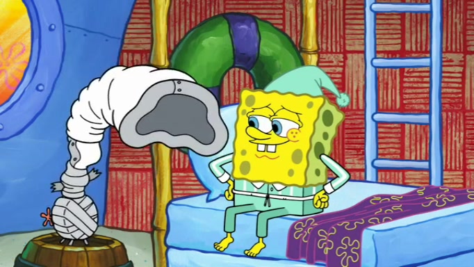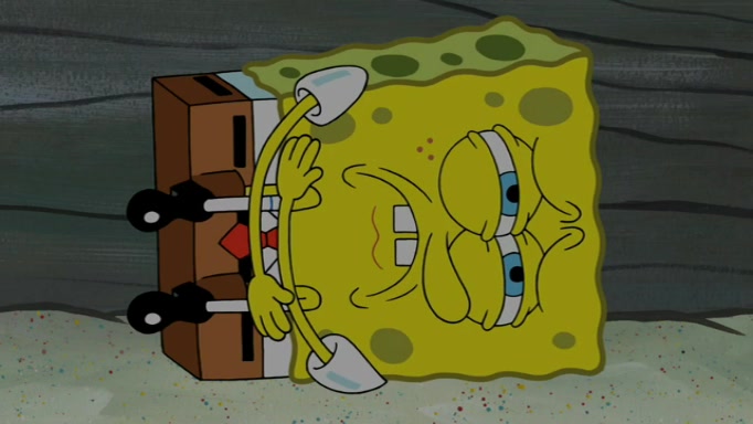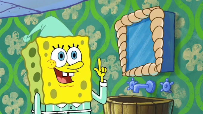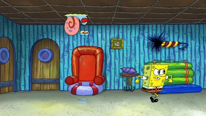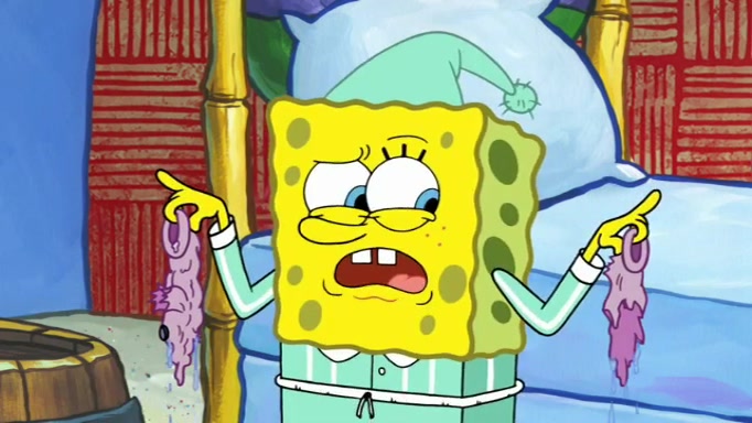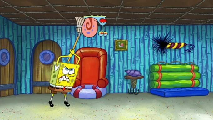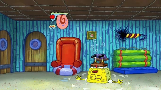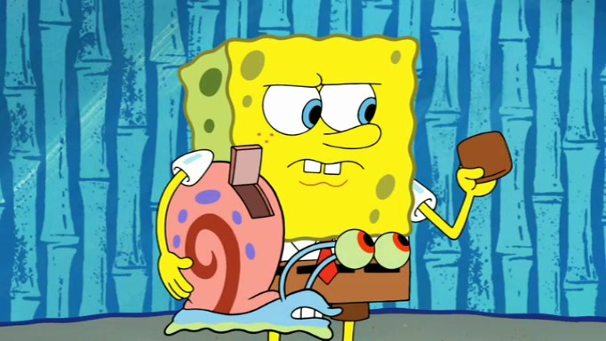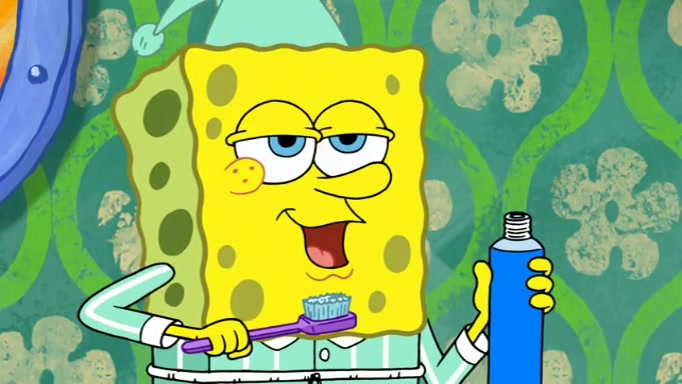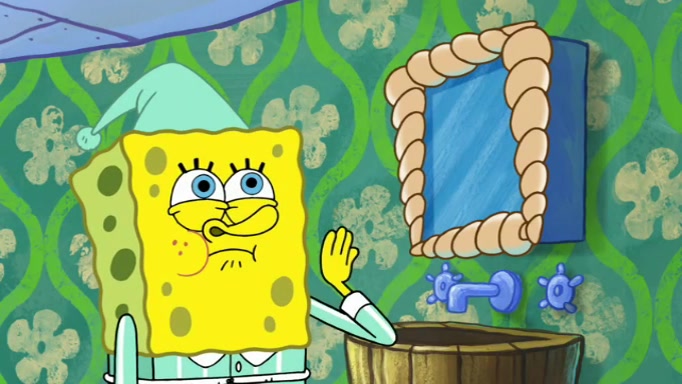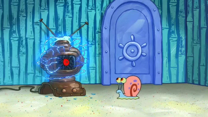 The morning starts off with SpongeBob waking up to his alarm clock acting strangely. It eventually breaks apart and SpongeBob notices the clock has been bitten off and assumes Gary is to blame. SpongeBob uses tape to fix his alarm clock (though it just falls backwards). SpongeBob jumps off his bed and into his slippers, but Gary has gotten to them as well. SpongeBob then goes to brush his teeth, but when he pulls out his toothbrush, Gary is on the other end biting on it.