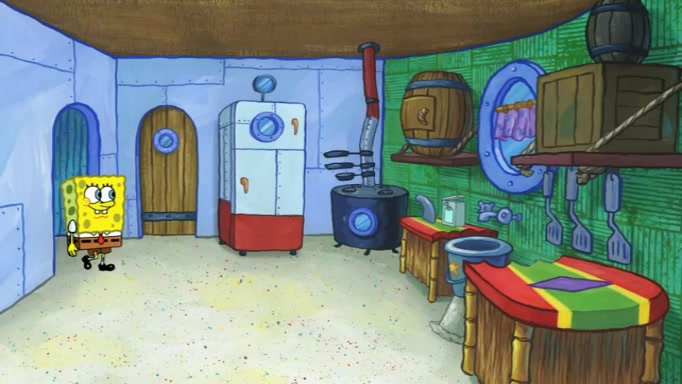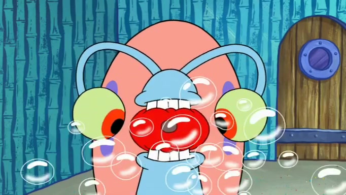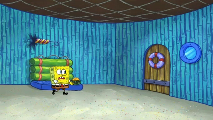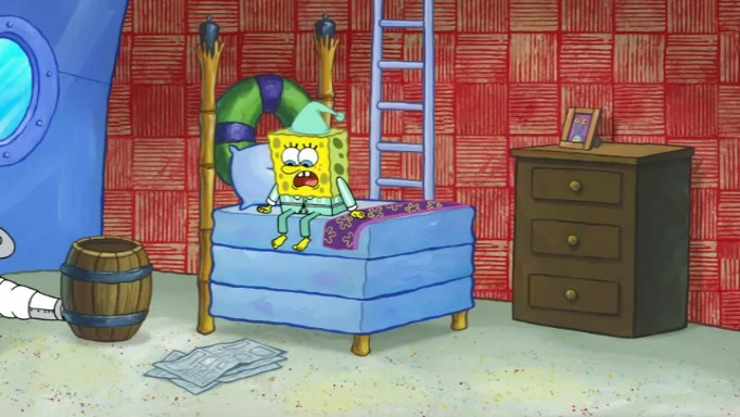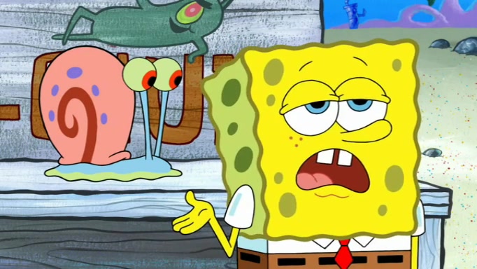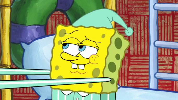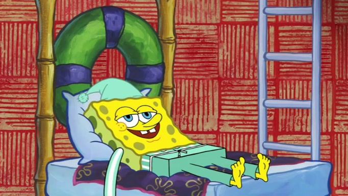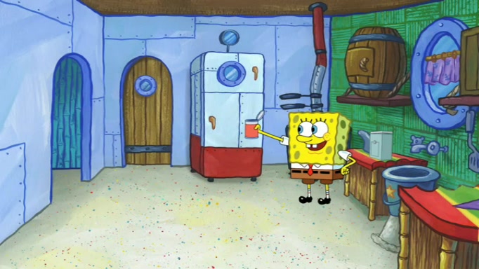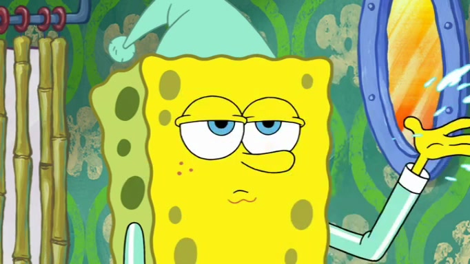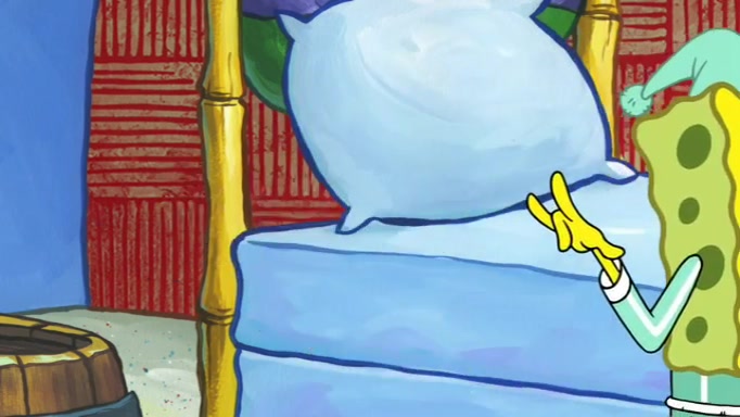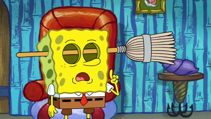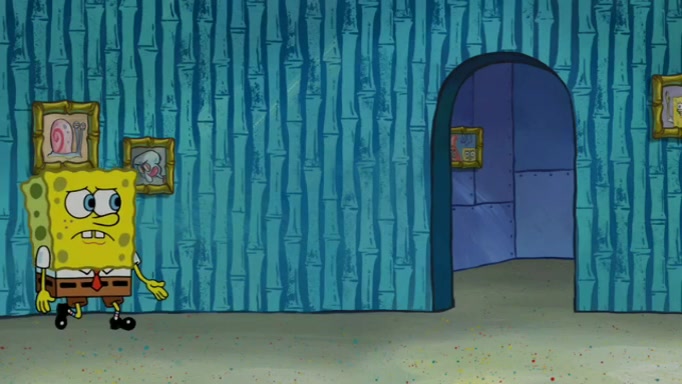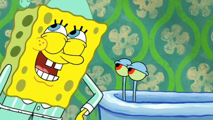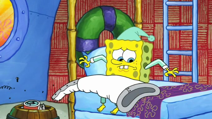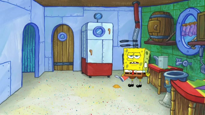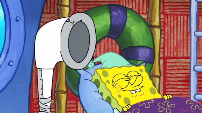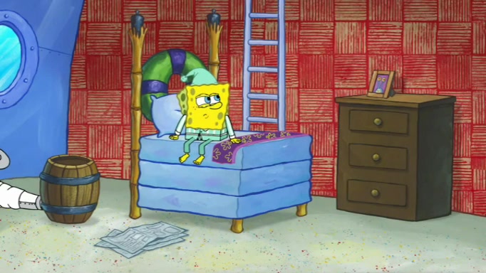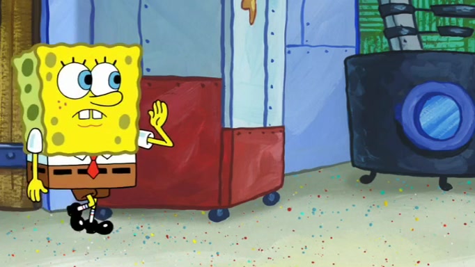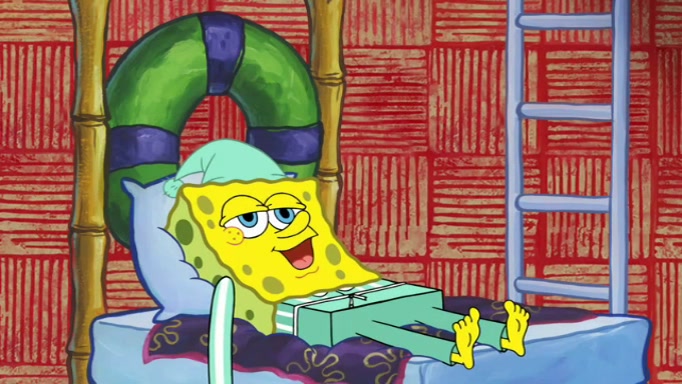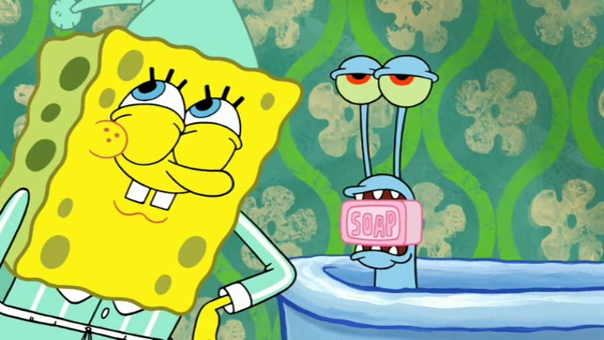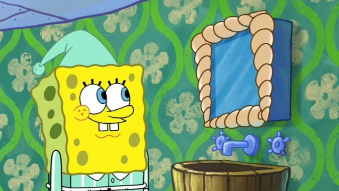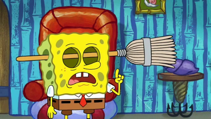 The morning starts off with SpongeBob waking up to his alarm clock acting strangely. It eventually breaks apart and SpongeBob notices the clock has been bitten off and assumes Gary is to blame. SpongeBob uses tape to fix his alarm clock (though it just falls backwards). SpongeBob jumps off his bed and into his slippers, but Gary has gotten to them as well. SpongeBob then goes to brush his teeth, but when he pulls out his toothbrush, Gary is on the other end biting on it.