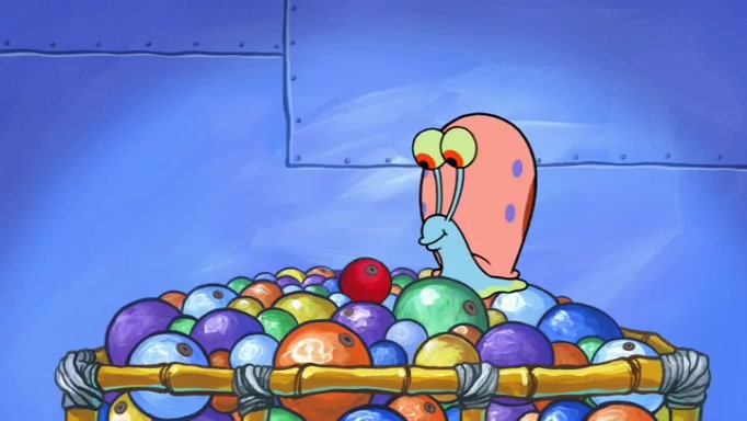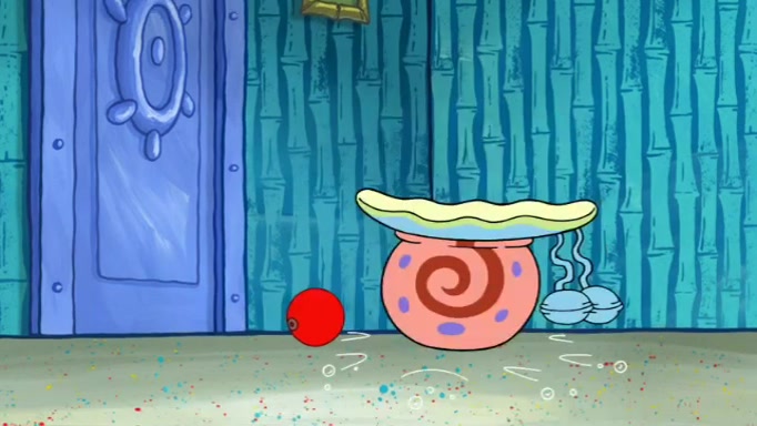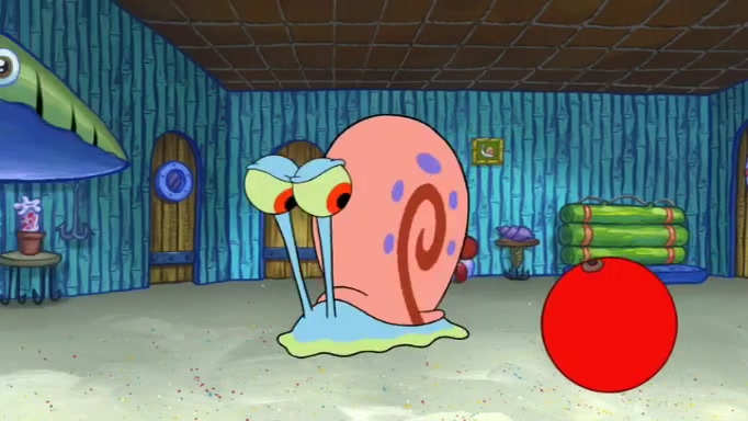 SpongeBob gets fed up with Gary's behavior lately and demands him to hand over the red ball. SpongeBob hears from Gary that he has hidden it, but SpongeBob is suspicious as Gary is crawling away. SpongeBob grabs Gary and opens up his shell to pull out three hairballs and his wallet. He reaches back into the shell and eventually finds the ball.