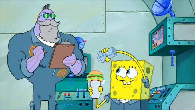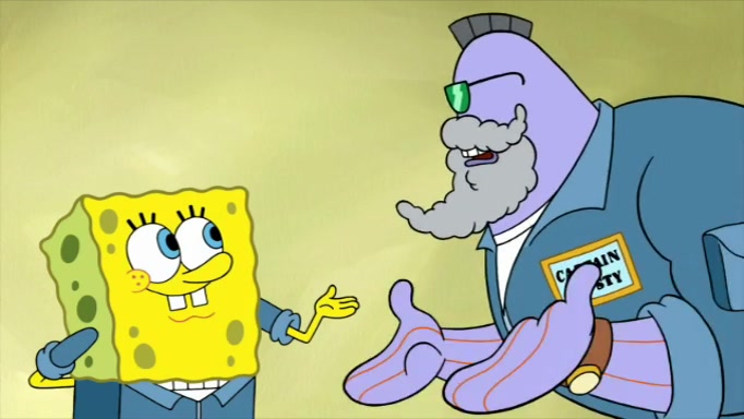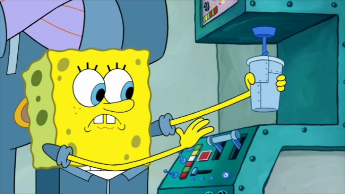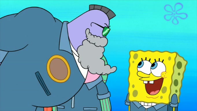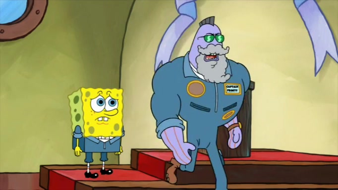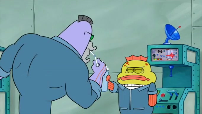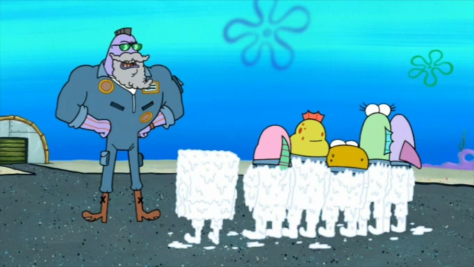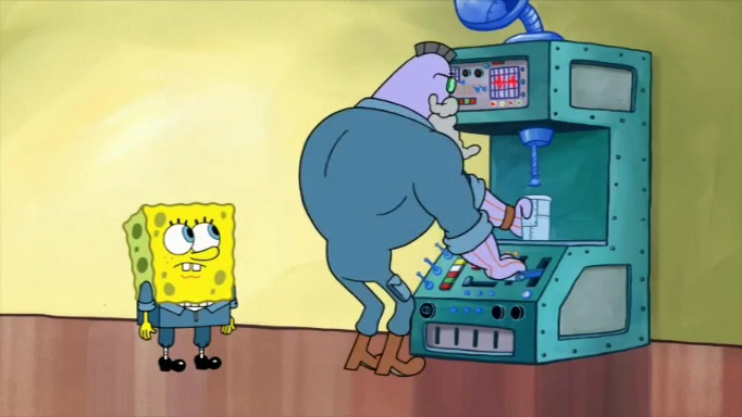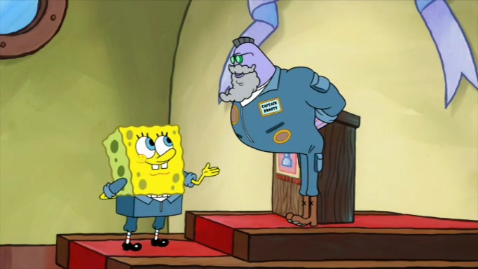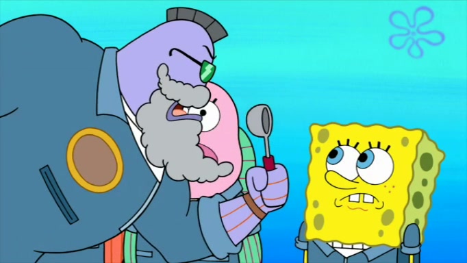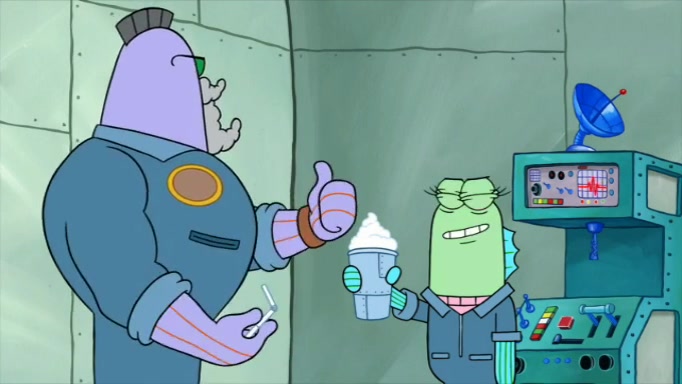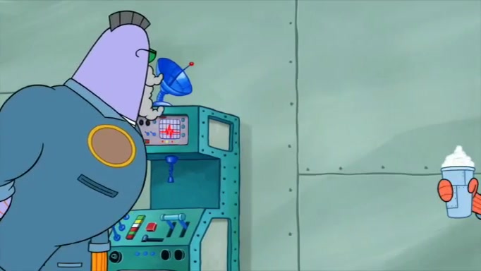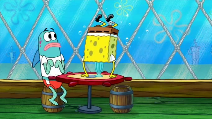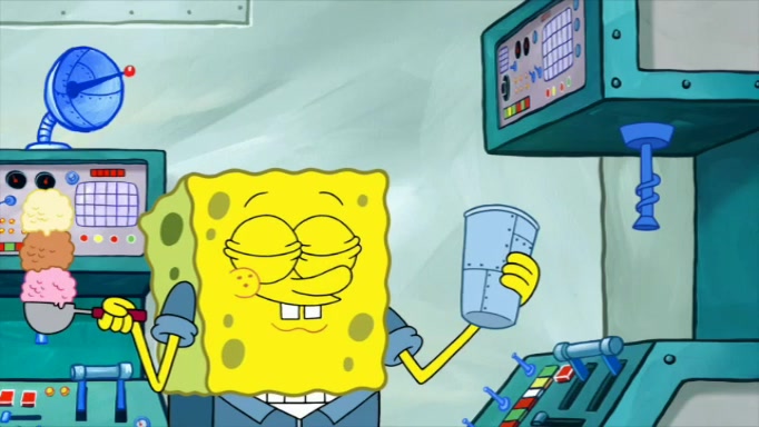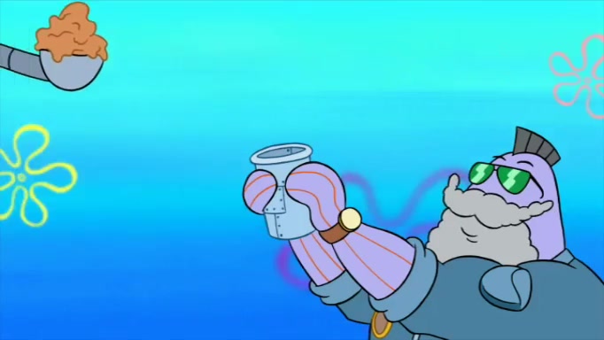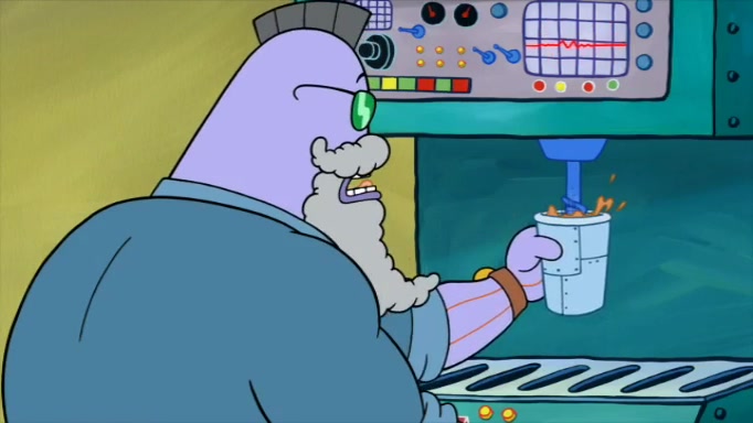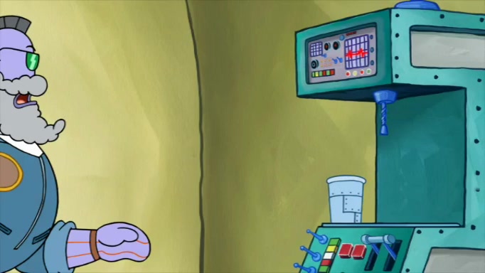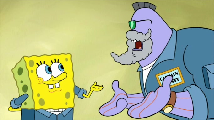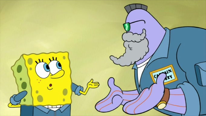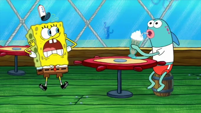 One day around lunchtime, while working and snogging the lips off his toy doll at the Krusty Krab, SpongeBob gets a last minute order to serve a milkshake which he has not made in years. SpongeBob decides to make a simple milkshake in a blender, and finishes it off by topping whipped cream and a cherry while walking out of the kitchen door. He serves it to Harold. But, Harold says it tastes horrible (and throws a temper tantrum, demanding a refund while angry). Mr. Krabs comes in and walks Harold out of the restaurant while telling him that SpongeBob will make a proper milkshake for him tomorrow. Mr. Krabs then puts SpongeBob in a a boatmobile and says he is taking him back to school. SpongeBob and Mr. Krabs later arrive at the Milkshake Academy and SpongeBob has to go here to learn how to make a proper milkshake again. Captain Frosty Mug tells the cadets to man their milkshake stations. When SpongeBob mans his station, he realizes that there are more buttons and contraptions than he's used to, but thinks he still can make a milkshake with no problem. But when he tries to mix the milkshake, he repeatedly pushes the wrong button. Frosty Mug comes over and has to inform SpongeBob that the controls are different and he has to push the button on the lower control panel. When SpongeBob manages to finally mix his milkshake, he lets Frosty Mug try it. However, when Frosty Mug tries it, the milkshake is frozen and it ends up in Frosty Mug's eye. Frosty Mug suggests they need to get back to the basics. He tells SpongeBob before he makes a milkshake, he needs to know what it feels like to be a milkshake. He makes him go in the Shake Simulator, which makes cadets who enter it into a milkshake-shaped blob. Frosty Mug sets the Simulator on "Obliterate," which makes the students gasp. A cadet reminds Frosty Mug that no one has ever survived Obliterate, to which he responds that he needs to learn. The simulator shakes, rattles, and rolls SpongeBob. Captain Frosty Mug decides to see how SpongeBob turned out and gets angry when he sees that he both survived and actually found it fun. Angry, Frosty Mug says that he's never had such an "unteachable moron" in 30 years. He asks his students to tell him how he could teach SpongeBob how to make a milkshake (with one student replying, "You'd be better off teaching a piece of coral, sir!," to which the students laugh at). SpongeBob replies that he'll show the students that he can make a milkshake. However, during the courses of making a milkshake, SpongeBob fails doing them all. During graduation, SpongeBob expects to get his milkshake license at this event. However, Captain Frosty Mug gives everyone milkshake licenses except for SpongeBob, because he couldn't even get past Step #1 of making a milkshake. SpongeBob tells Frosty Mug that he will keep trying. Captain Frostymug tells him he needs to put the milkshake up to the spinney thing. Then, he stops, flashing back to 20 years ago.