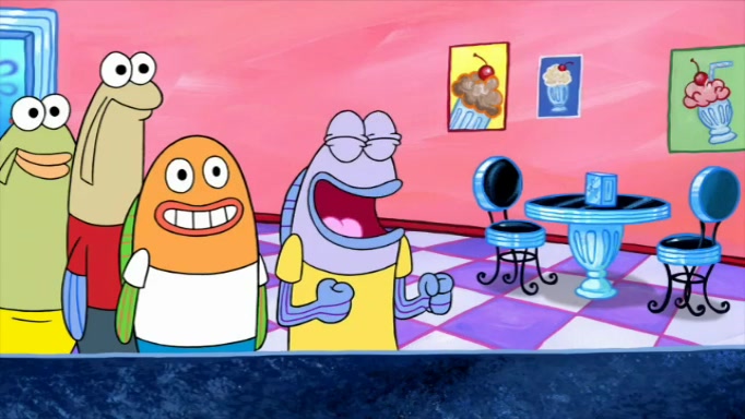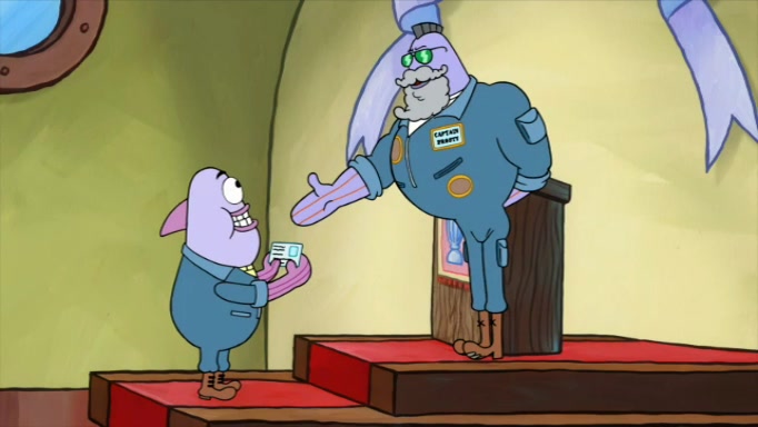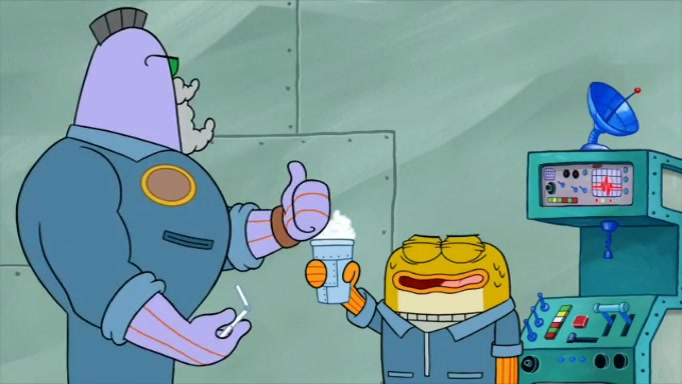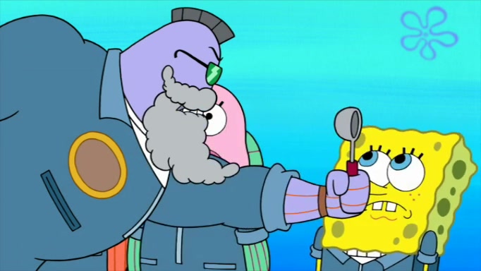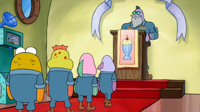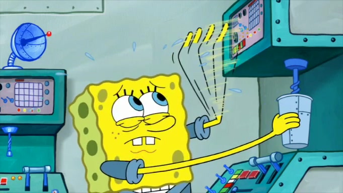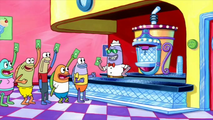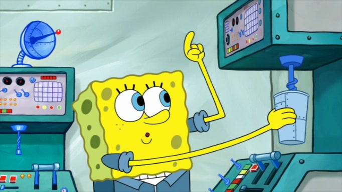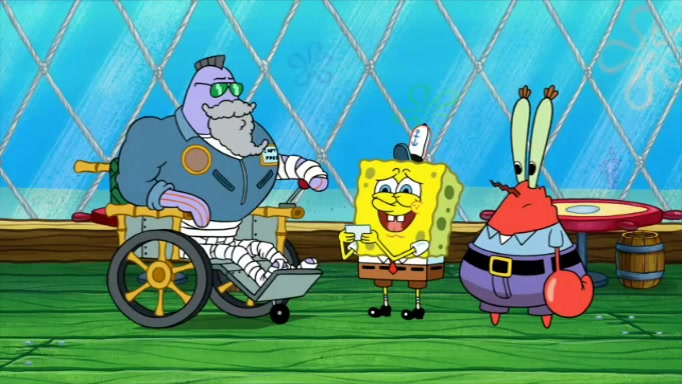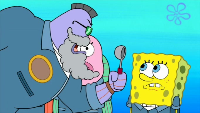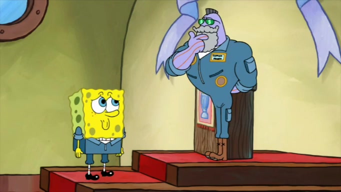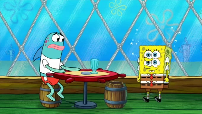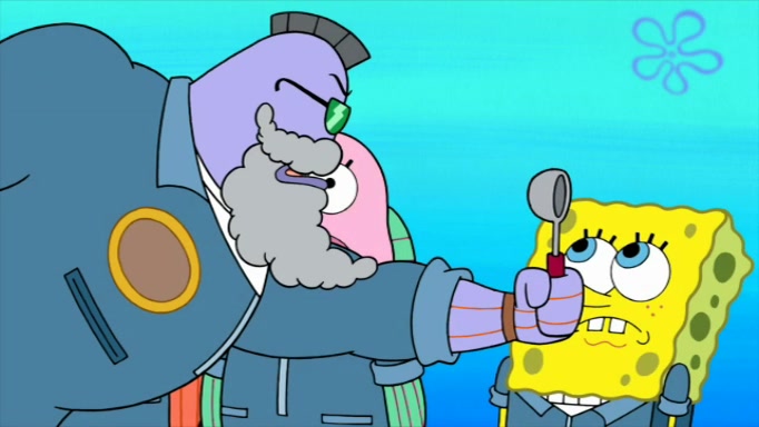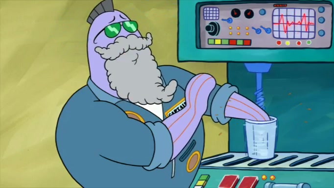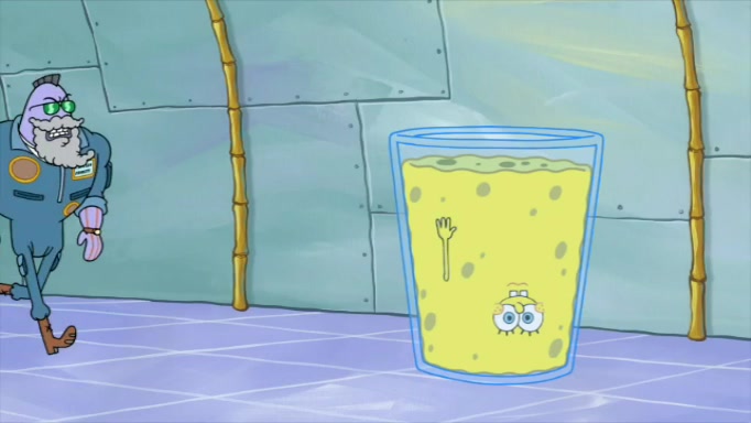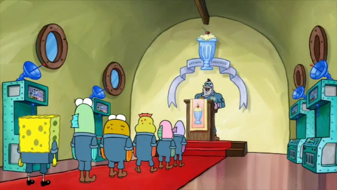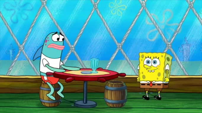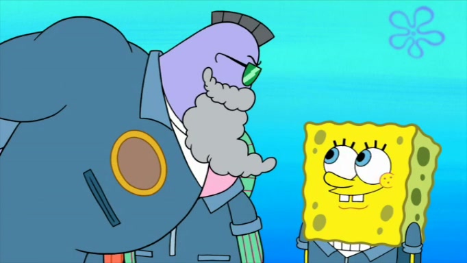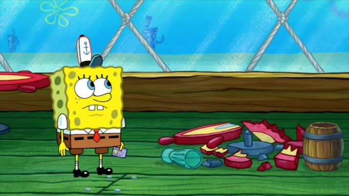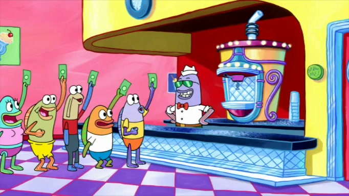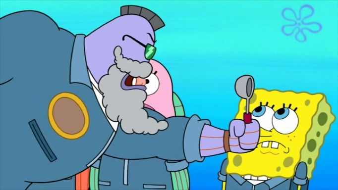 One day around lunchtime, while working and snogging the lips off his toy doll at the Krusty Krab, SpongeBob gets a last minute order to serve a milkshake which he has not made in years. SpongeBob decides to make a simple milkshake in a blender, and finishes it off by topping whipped cream and a cherry while walking out of the kitchen door. He serves it to Harold. But, Harold says it tastes horrible (and throws a temper tantrum, demanding a refund while angry). Mr. Krabs comes in and walks Harold out of the restaurant while telling him that SpongeBob will make a proper milkshake for him tomorrow. Mr. Krabs then puts SpongeBob in a a boatmobile and says he is taking him back to school. SpongeBob and Mr. Krabs later arrive at the Milkshake Academy and SpongeBob has to go here to learn how to make a proper milkshake again. Captain Frosty Mug tells the cadets to man their milkshake stations. When SpongeBob mans his station, he realizes that there are more buttons and contraptions than he's used to, but thinks he still can make a milkshake with no problem. But when he tries to mix the milkshake, he repeatedly pushes the wrong button. Frosty Mug comes over and has to inform SpongeBob that the controls are different and he has to push the button on the lower control panel. When SpongeBob manages to finally mix his milkshake, he lets Frosty Mug try it. However, when Frosty Mug tries it, the milkshake is frozen and it ends up in Frosty Mug's eye. Frosty Mug suggests they need to get back to the basics. He tells SpongeBob before he makes a milkshake, he needs to know what it feels like to be a milkshake. He makes him go in the Shake Simulator, which makes cadets who enter it into a milkshake-shaped blob. Frosty Mug sets the Simulator on "Obliterate," which makes the students gasp. A cadet reminds Frosty Mug that no one has ever survived Obliterate, to which he responds that he needs to learn. The simulator shakes, rattles, and rolls SpongeBob. Captain Frosty Mug decides to see how SpongeBob turned out and gets angry when he sees that he both survived and actually found it fun. Angry, Frosty Mug says that he's never had such an "unteachable moron" in 30 years. He asks his students to tell him how he could teach SpongeBob how to make a milkshake (with one student replying, "You'd be better off teaching a piece of coral, sir!," to which the students laugh at). SpongeBob replies that he'll show the students that he can make a milkshake. However, during the courses of making a milkshake, SpongeBob fails doing them all. During graduation, SpongeBob expects to get his milkshake license at this event. However, Captain Frosty Mug gives everyone milkshake licenses except for SpongeBob, because he couldn't even get past Step #1 of making a milkshake. SpongeBob tells Frosty Mug that he will keep trying. Captain Frostymug tells him he needs to put the milkshake up to the spinney thing. Then, he stops, flashing back to 20 years ago.