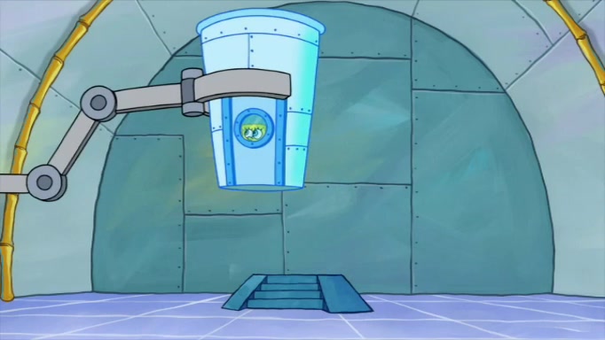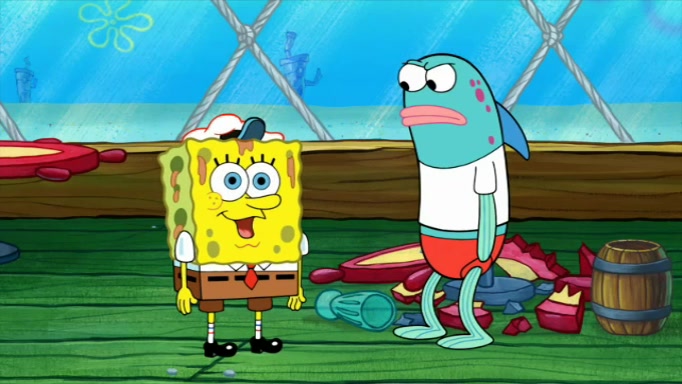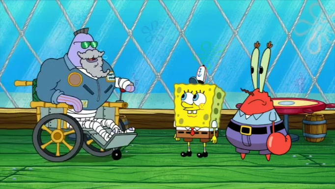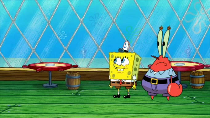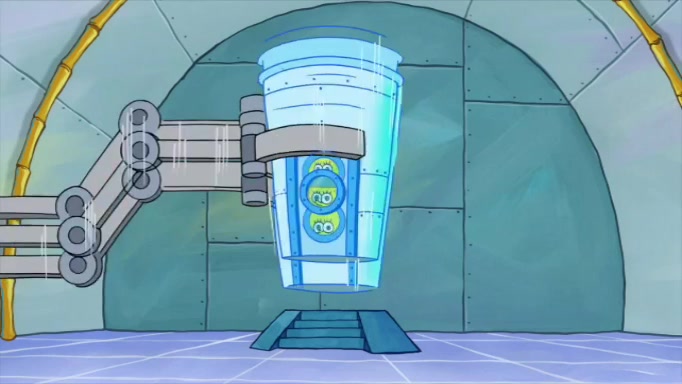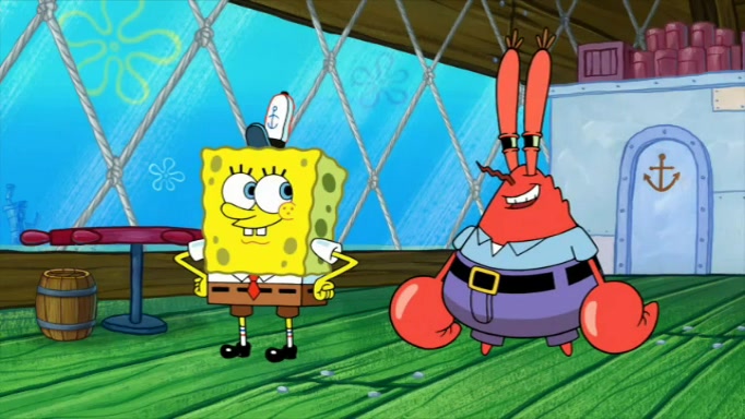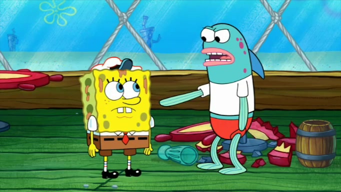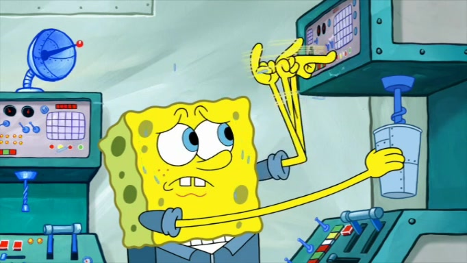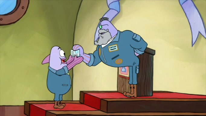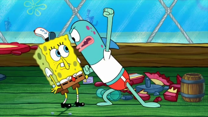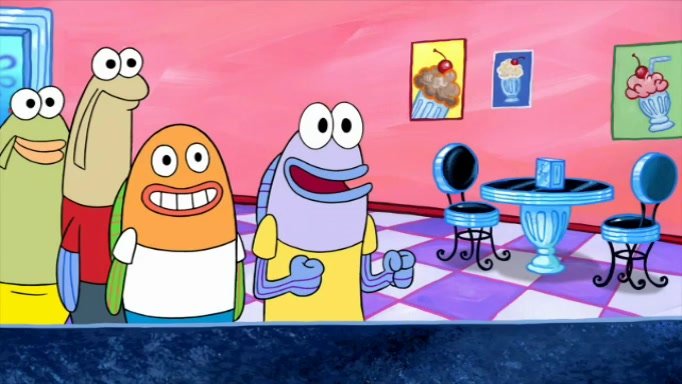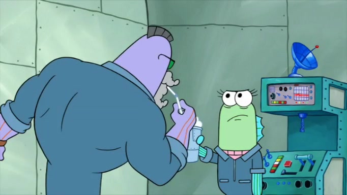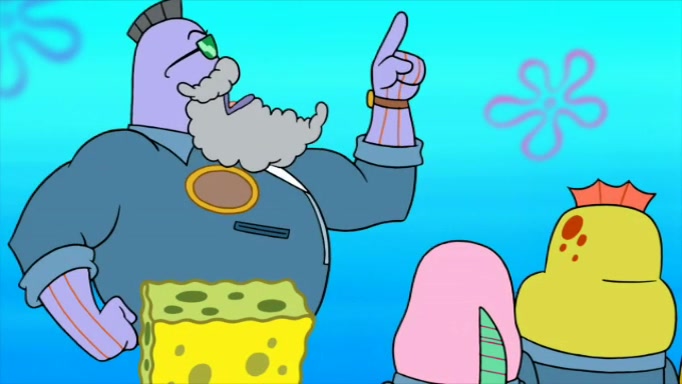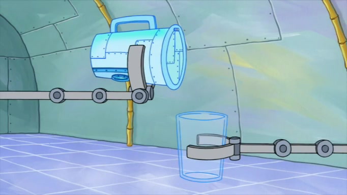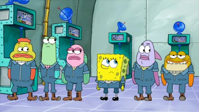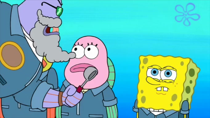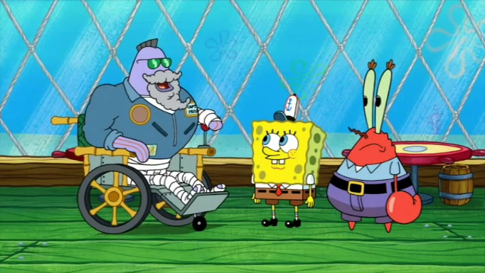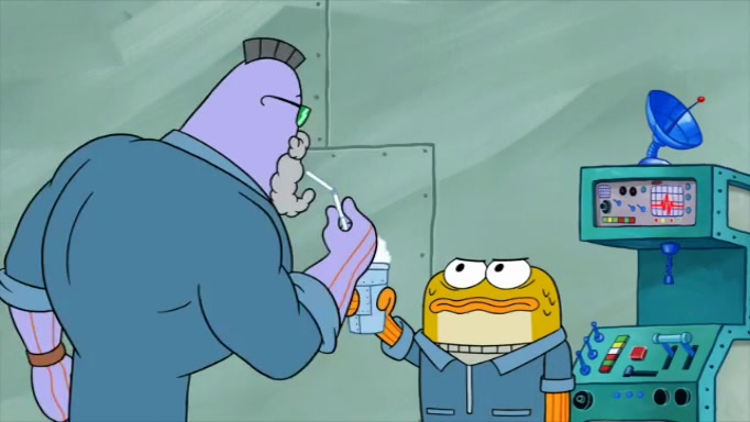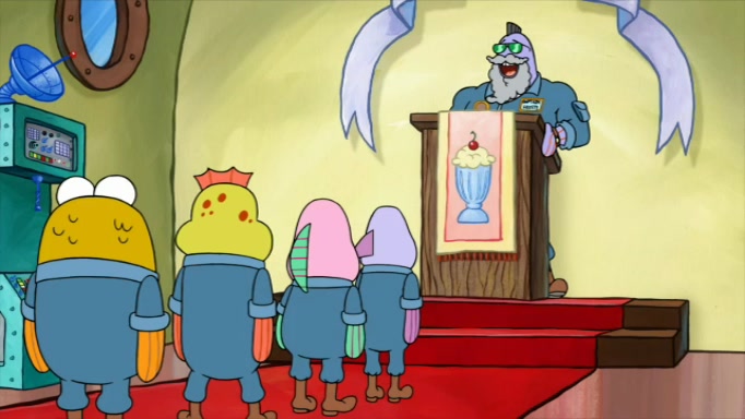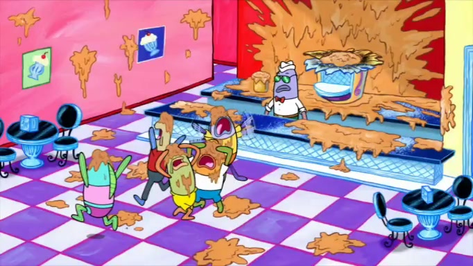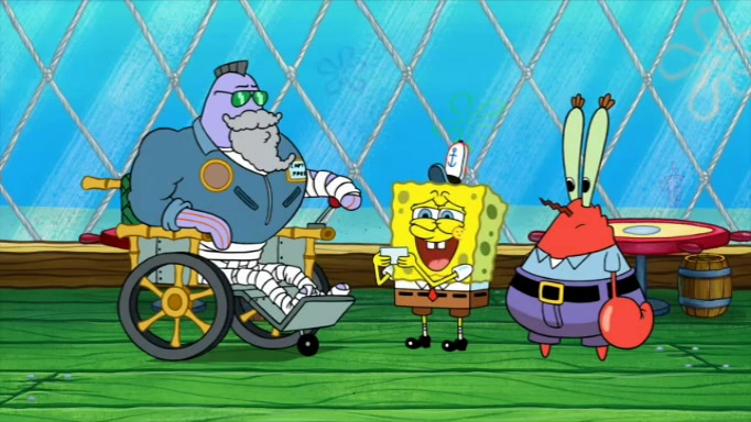 One day around lunchtime, while working and snogging the lips off his toy doll at the Krusty Krab, SpongeBob gets a last minute order to serve a milkshake which he has not made in years. SpongeBob decides to make a simple milkshake in a blender, and finishes it off by topping whipped cream and a cherry while walking out of the kitchen door. He serves it to Harold. But, Harold says it tastes horrible (and throws a temper tantrum, demanding a refund while angry). Mr. Krabs comes in and walks Harold out of the restaurant while telling him that SpongeBob will make a proper milkshake for him tomorrow. Mr. Krabs then puts SpongeBob in a a boatmobile and says he is taking him back to school. SpongeBob and Mr. Krabs later arrive at the Milkshake Academy and SpongeBob has to go here to learn how to make a proper milkshake again. Captain Frosty Mug tells the cadets to man their milkshake stations. When SpongeBob mans his station, he realizes that there are more buttons and contraptions than he's used to, but thinks he still can make a milkshake with no problem. But when he tries to mix the milkshake, he repeatedly pushes the wrong button. Frosty Mug comes over and has to inform SpongeBob that the controls are different and he has to push the button on the lower control panel. When SpongeBob manages to finally mix his milkshake, he lets Frosty Mug try it. However, when Frosty Mug tries it, the milkshake is frozen and it ends up in Frosty Mug's eye. Frosty Mug suggests they need to get back to the basics. He tells SpongeBob before he makes a milkshake, he needs to know what it feels like to be a milkshake. He makes him go in the Shake Simulator, which makes cadets who enter it into a milkshake-shaped blob. Frosty Mug sets the Simulator on "Obliterate," which makes the students gasp. A cadet reminds Frosty Mug that no one has ever survived Obliterate, to which he responds that he needs to learn. The simulator shakes, rattles, and rolls SpongeBob. Captain Frosty Mug decides to see how SpongeBob turned out and gets angry when he sees that he both survived and actually found it fun. Angry, Frosty Mug says that he's never had such an "unteachable moron" in 30 years. He asks his students to tell him how he could teach SpongeBob how to make a milkshake (with one student replying, "You'd be better off teaching a piece of coral, sir!," to which the students laugh at). SpongeBob replies that he'll show the students that he can make a milkshake. However, during the courses of making a milkshake, SpongeBob fails doing them all. During graduation, SpongeBob expects to get his milkshake license at this event. However, Captain Frosty Mug gives everyone milkshake licenses except for SpongeBob, because he couldn't even get past Step #1 of making a milkshake. SpongeBob tells Frosty Mug that he will keep trying. Captain Frostymug tells him he needs to put the milkshake up to the spinney thing. Then, he stops, flashing back to 20 years ago.