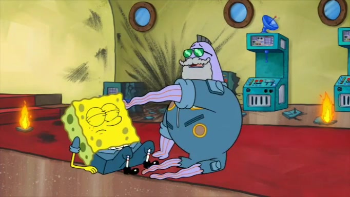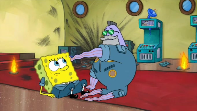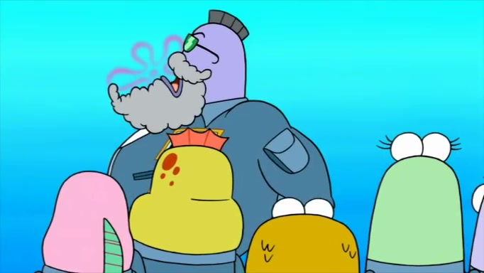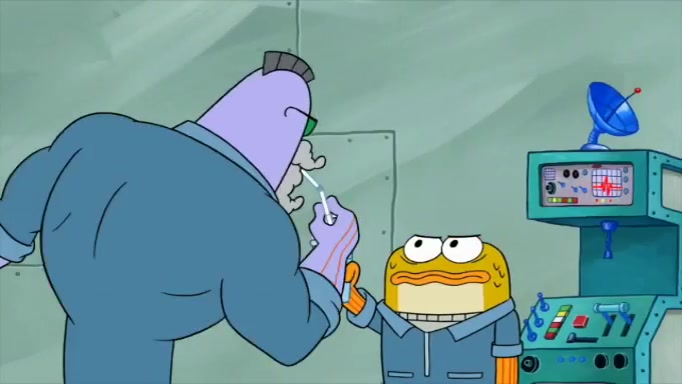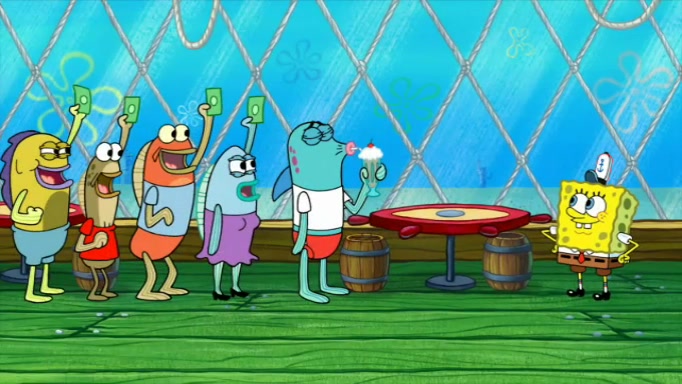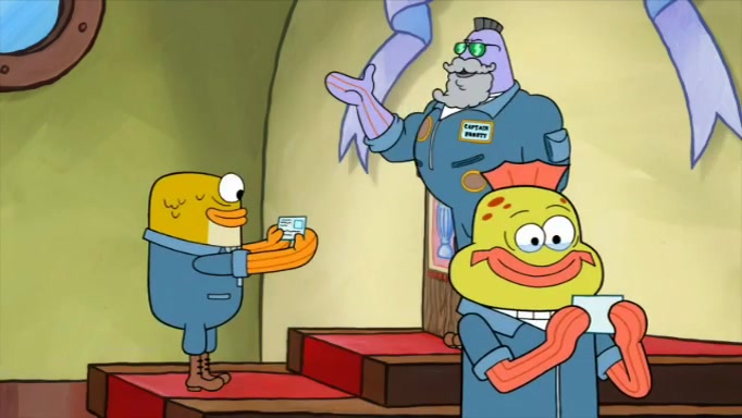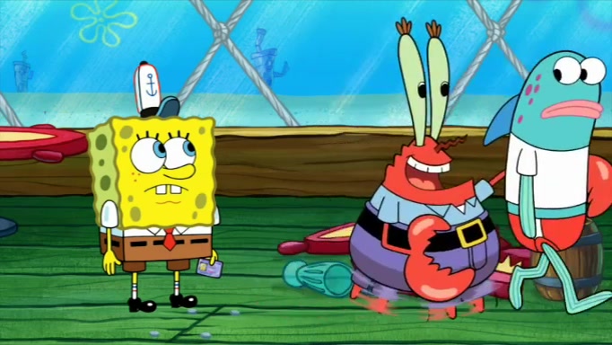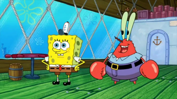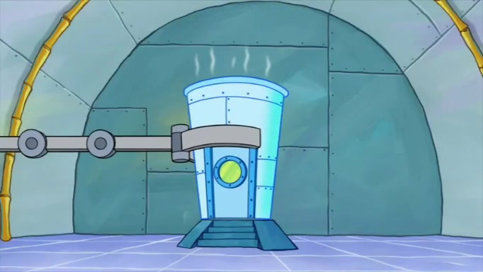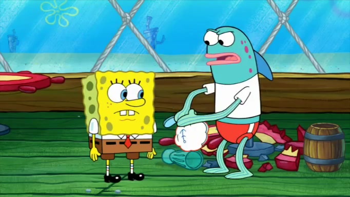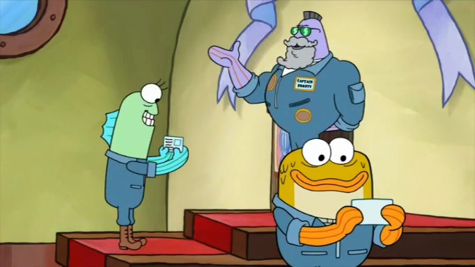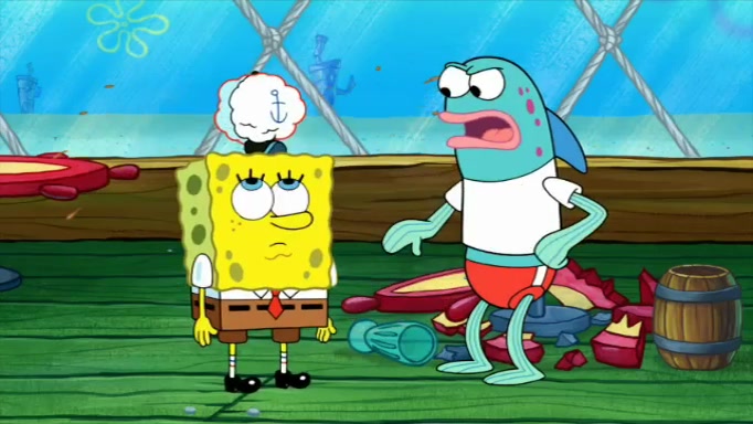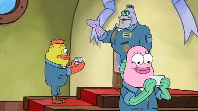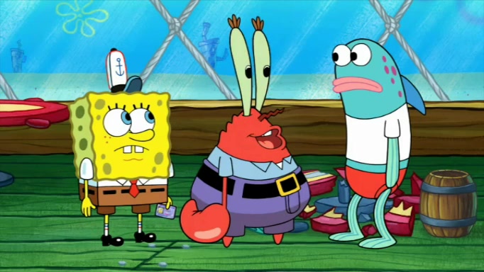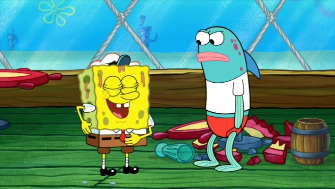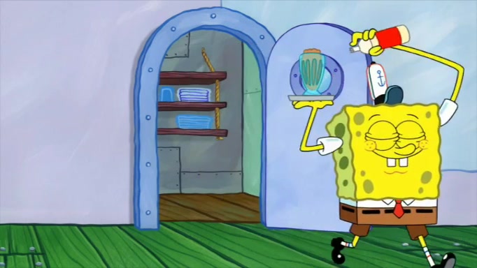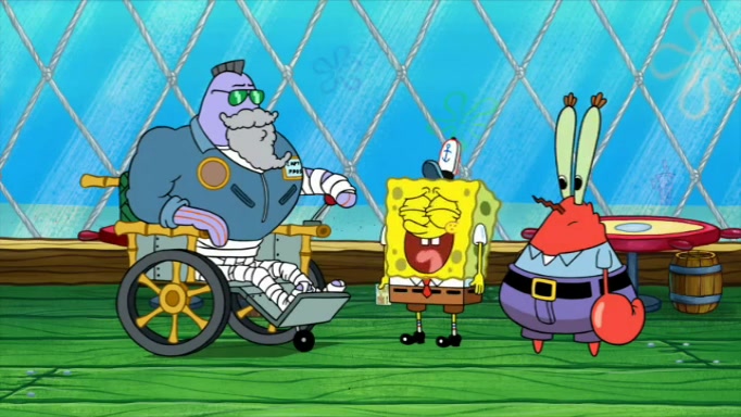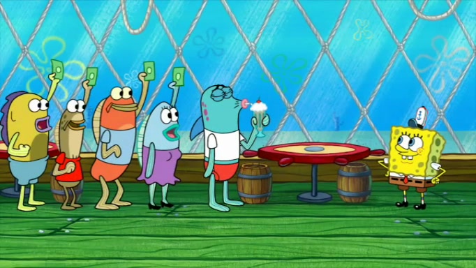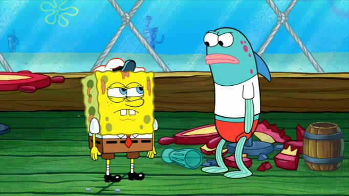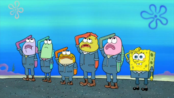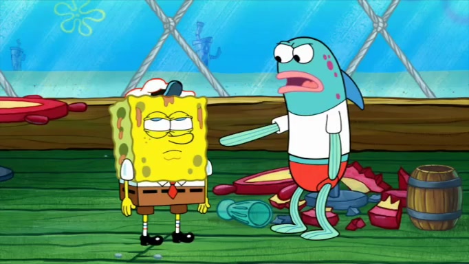 One day around lunchtime, while working and snogging the lips off his toy doll at the Krusty Krab, SpongeBob gets a last minute order to serve a milkshake which he has not made in years. SpongeBob decides to make a simple milkshake in a blender, and finishes it off by topping whipped cream and a cherry while walking out of the kitchen door. He serves it to Harold. But, Harold says it tastes horrible (and throws a temper tantrum, demanding a refund while angry). Mr. Krabs comes in and walks Harold out of the restaurant while telling him that SpongeBob will make a proper milkshake for him tomorrow. Mr. Krabs then puts SpongeBob in a a boatmobile and says he is taking him back to school. SpongeBob and Mr. Krabs later arrive at the Milkshake Academy and SpongeBob has to go here to learn how to make a proper milkshake again. Captain Frosty Mug tells the cadets to man their milkshake stations. When SpongeBob mans his station, he realizes that there are more buttons and contraptions than he's used to, but thinks he still can make a milkshake with no problem. But when he tries to mix the milkshake, he repeatedly pushes the wrong button. Frosty Mug comes over and has to inform SpongeBob that the controls are different and he has to push the button on the lower control panel. When SpongeBob manages to finally mix his milkshake, he lets Frosty Mug try it. However, when Frosty Mug tries it, the milkshake is frozen and it ends up in Frosty Mug's eye. Frosty Mug suggests they need to get back to the basics. He tells SpongeBob before he makes a milkshake, he needs to know what it feels like to be a milkshake. He makes him go in the Shake Simulator, which makes cadets who enter it into a milkshake-shaped blob. Frosty Mug sets the Simulator on "Obliterate," which makes the students gasp. A cadet reminds Frosty Mug that no one has ever survived Obliterate, to which he responds that he needs to learn. The simulator shakes, rattles, and rolls SpongeBob. Captain Frosty Mug decides to see how SpongeBob turned out and gets angry when he sees that he both survived and actually found it fun. Angry, Frosty Mug says that he's never had such an "unteachable moron" in 30 years. He asks his students to tell him how he could teach SpongeBob how to make a milkshake (with one student replying, "You'd be better off teaching a piece of coral, sir!," to which the students laugh at). SpongeBob replies that he'll show the students that he can make a milkshake. However, during the courses of making a milkshake, SpongeBob fails doing them all. During graduation, SpongeBob expects to get his milkshake license at this event. However, Captain Frosty Mug gives everyone milkshake licenses except for SpongeBob, because he couldn't even get past Step #1 of making a milkshake. SpongeBob tells Frosty Mug that he will keep trying. Captain Frostymug tells him he needs to put the milkshake up to the spinney thing. Then, he stops, flashing back to 20 years ago.