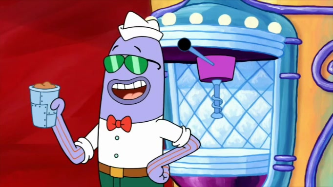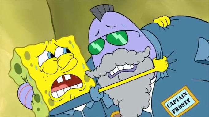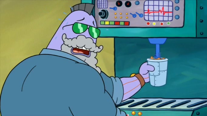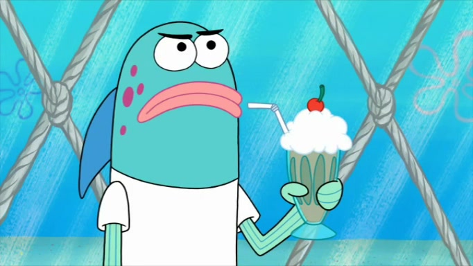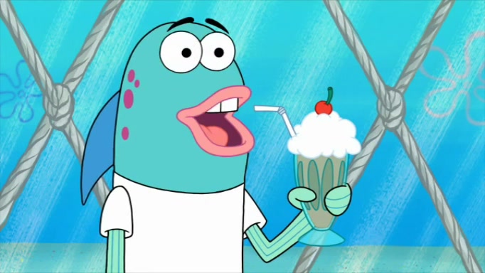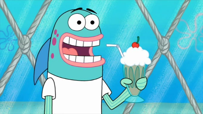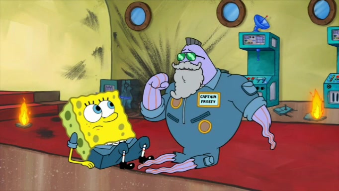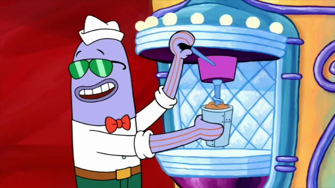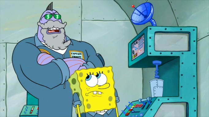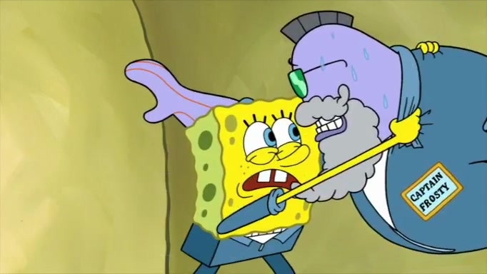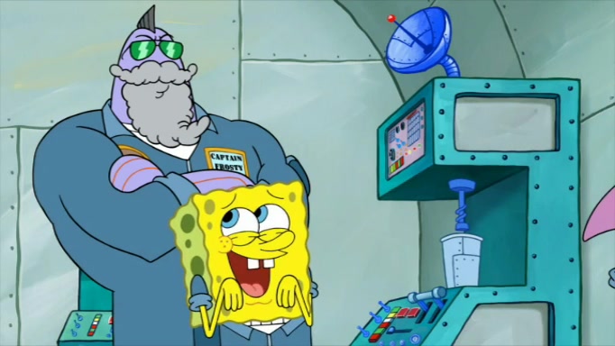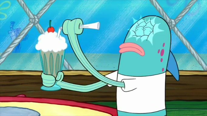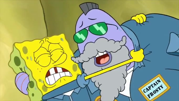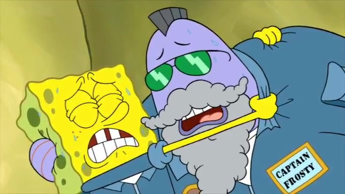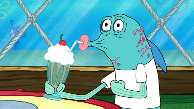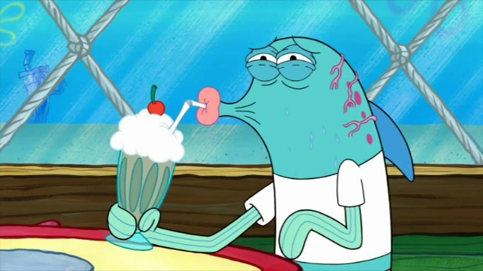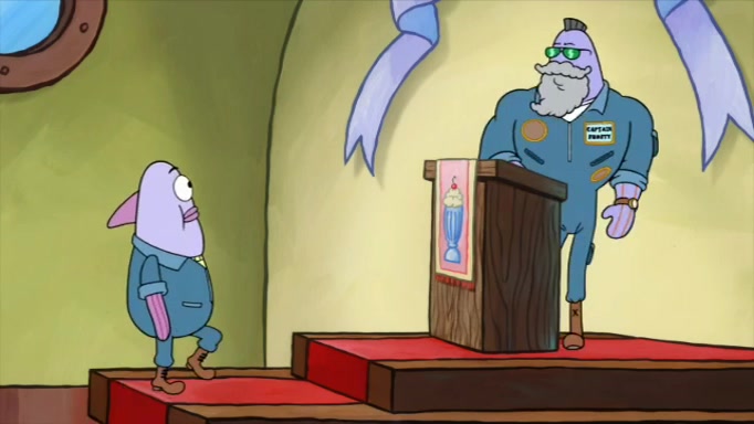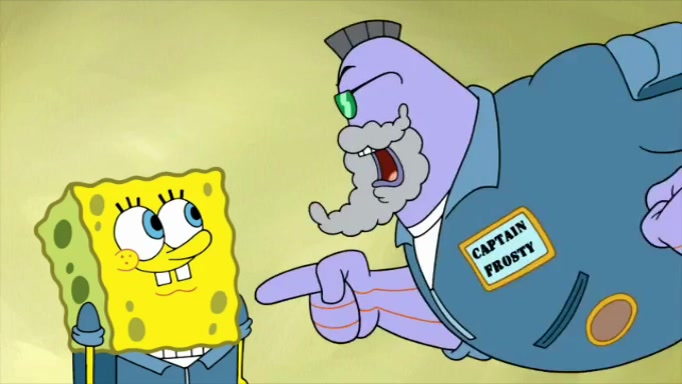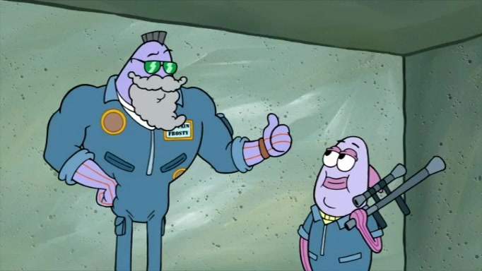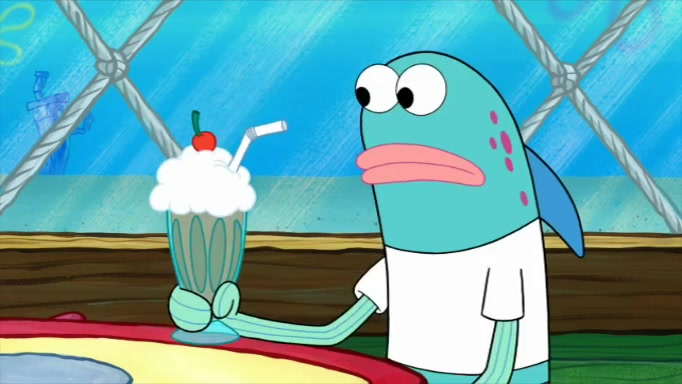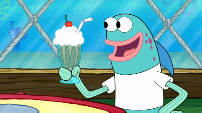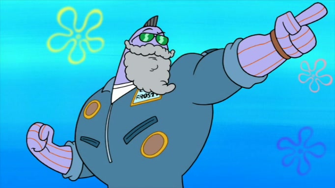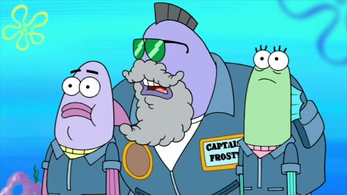 He was the owner of a milkshake cafe called Milk Shake. Many customers were excited to have Frosty Mug's milkshakes. However, when he tried to make a milkshake for an eager customer, he ended up splattering the milkshake all over the store. A stain of milkshake got on the power lines that connect to the milkshake machine, destroying it. The milkshake machine squirted out milkshake stains onto the customers, frightening them and ruining Frostymug's career. He informs SpongeBob that he has not touched the milkshake machine in 20 years. He gets his hand stuck in the machine. He is about to get his arm and all of him sucked into the machine, but SpongeBob is able to grab and save him just before the machine can suck him in. The machine ends up exploding, but Frosty Mug thanks SpongeBob for saving him. Thanks to the machine incident, Frostymug's arm is hurt. He realizes that he doesn't need a machine to make a milkshake and tells SpongeBob that a milkshake comes from within the heart. The next day, at the Krusty Krab, SpongeBob serves Harold a milkshake, which he replies is the best he's ever had. Everyone now wants to buy SpongeBob's milkshake. Captain Frosty Mug comes in, requesting a milkshake and gives SpongeBob his new milkshake license to which SpongeBob replies, "If only it were this easy to get a boating license" and laughs, ending the episode.