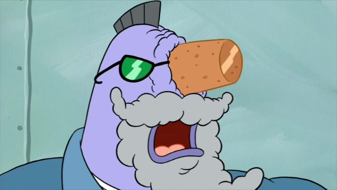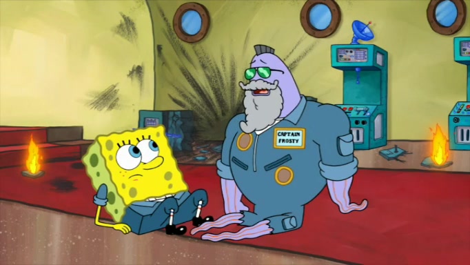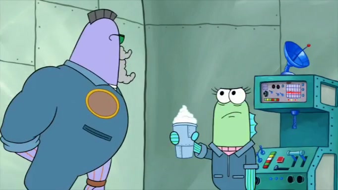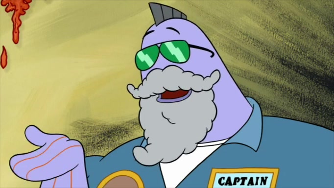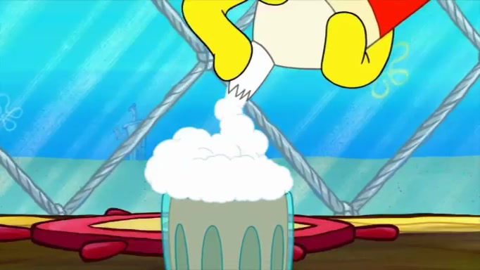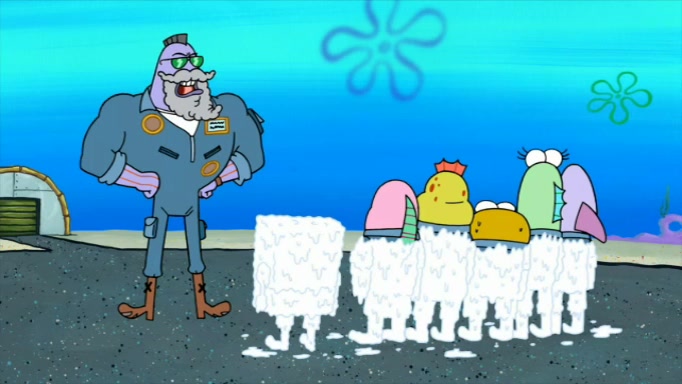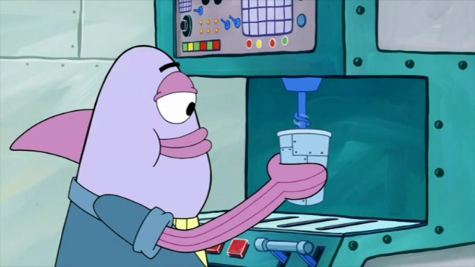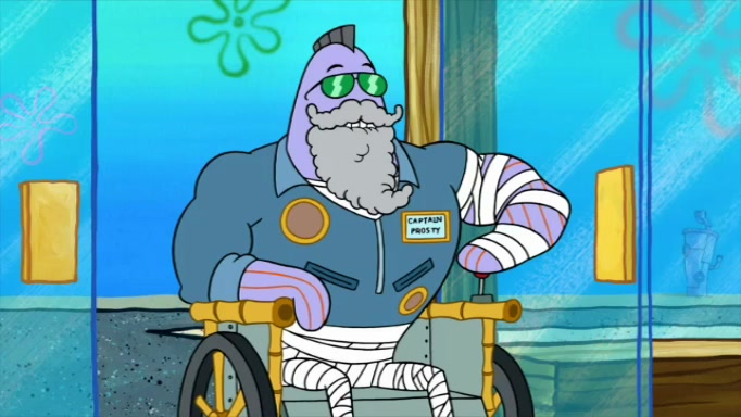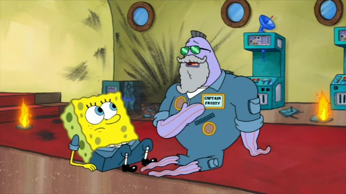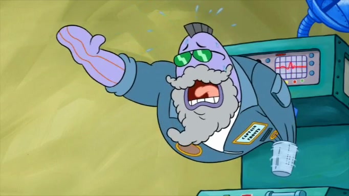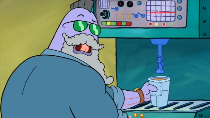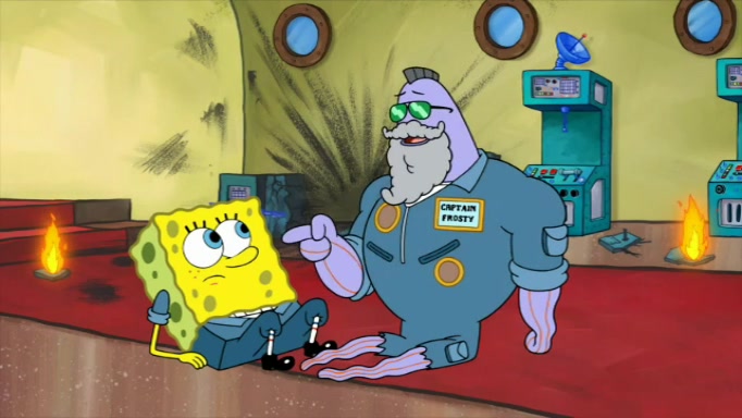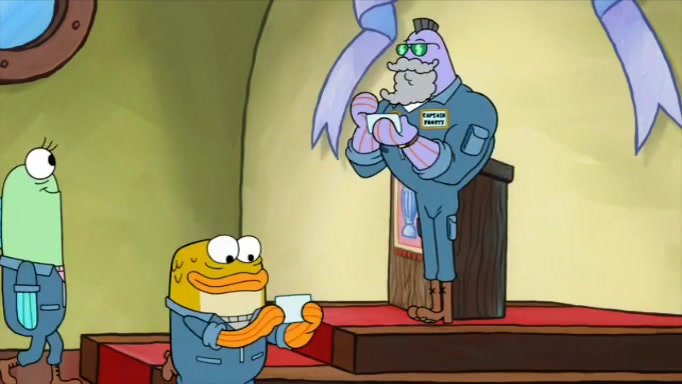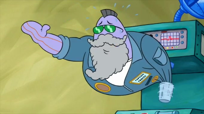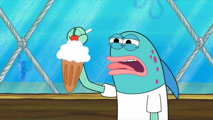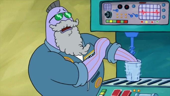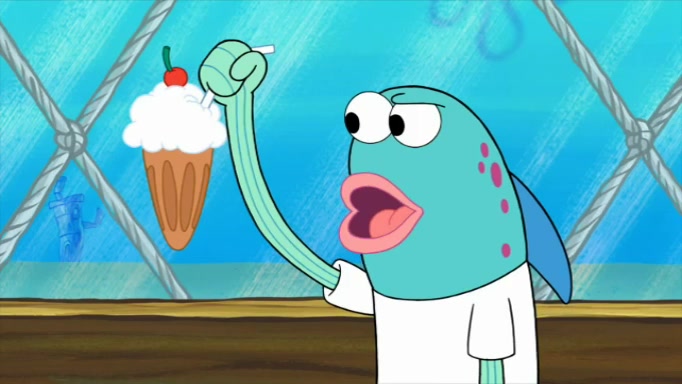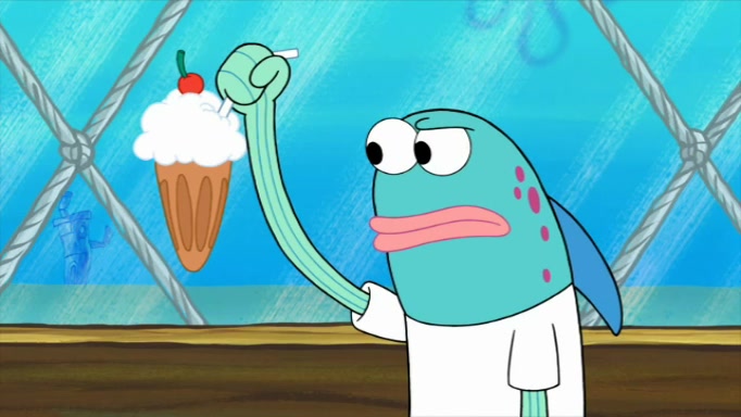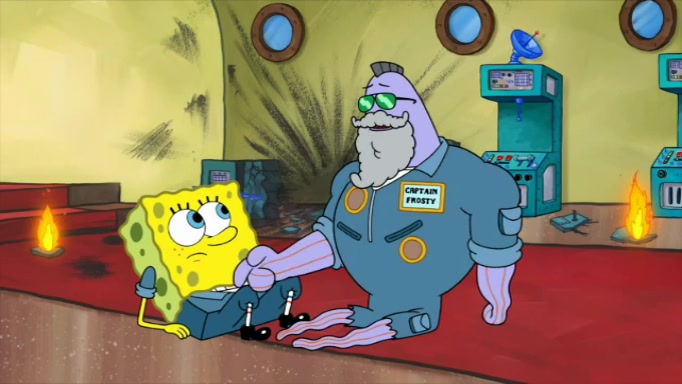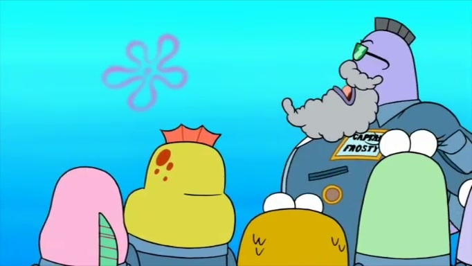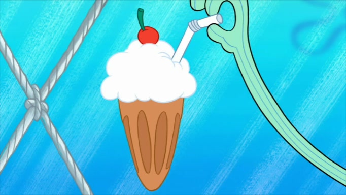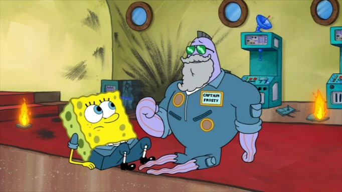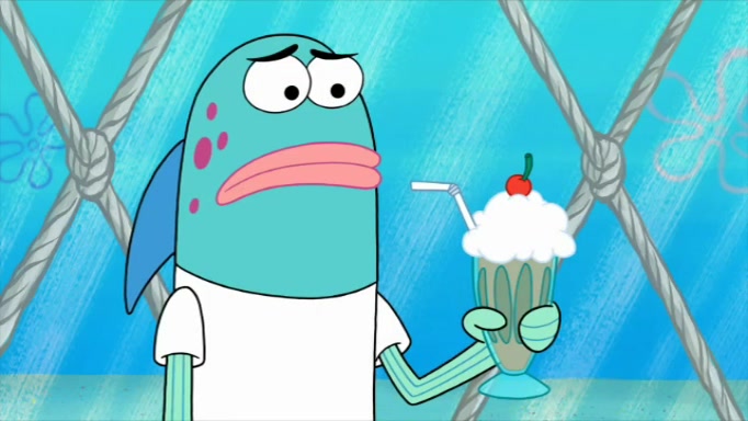 He was the owner of a milkshake cafe called Milk Shake. Many customers were excited to have Frosty Mug's milkshakes. However, when he tried to make a milkshake for an eager customer, he ended up splattering the milkshake all over the store. A stain of milkshake got on the power lines that connect to the milkshake machine, destroying it. The milkshake machine squirted out milkshake stains onto the customers, frightening them and ruining Frostymug's career. He informs SpongeBob that he has not touched the milkshake machine in 20 years. He gets his hand stuck in the machine. He is about to get his arm and all of him sucked into the machine, but SpongeBob is able to grab and save him just before the machine can suck him in. The machine ends up exploding, but Frosty Mug thanks SpongeBob for saving him. Thanks to the machine incident, Frostymug's arm is hurt. He realizes that he doesn't need a machine to make a milkshake and tells SpongeBob that a milkshake comes from within the heart. The next day, at the Krusty Krab, SpongeBob serves Harold a milkshake, which he replies is the best he's ever had. Everyone now wants to buy SpongeBob's milkshake. Captain Frosty Mug comes in, requesting a milkshake and gives SpongeBob his new milkshake license to which SpongeBob replies, "If only it were this easy to get a boating license" and laughs, ending the episode.