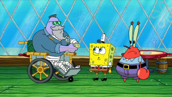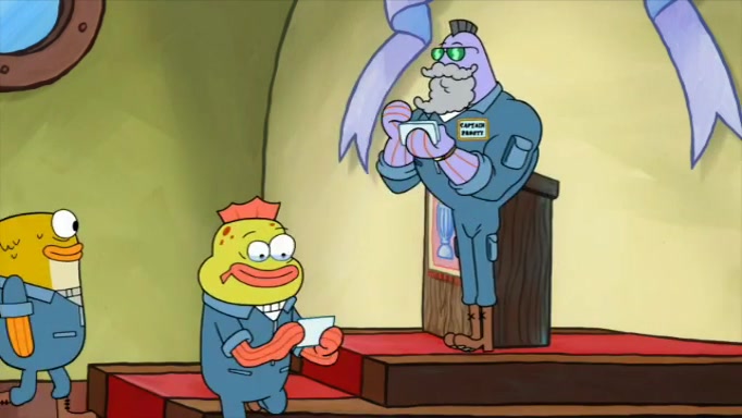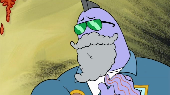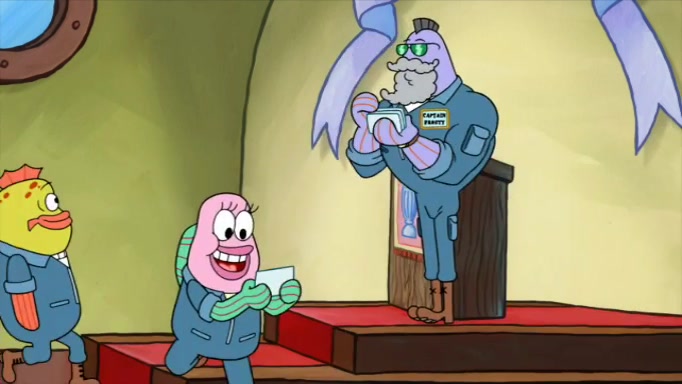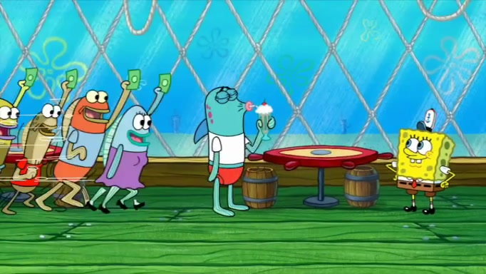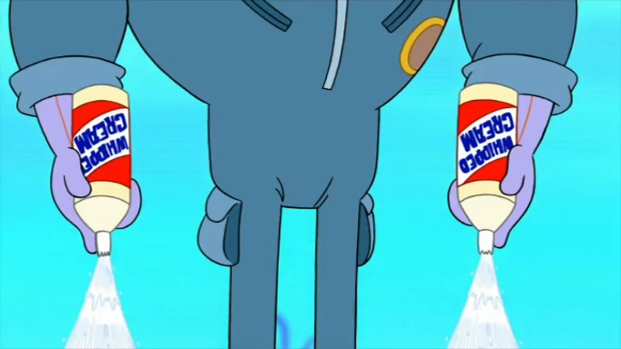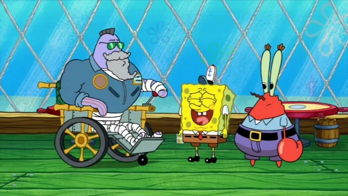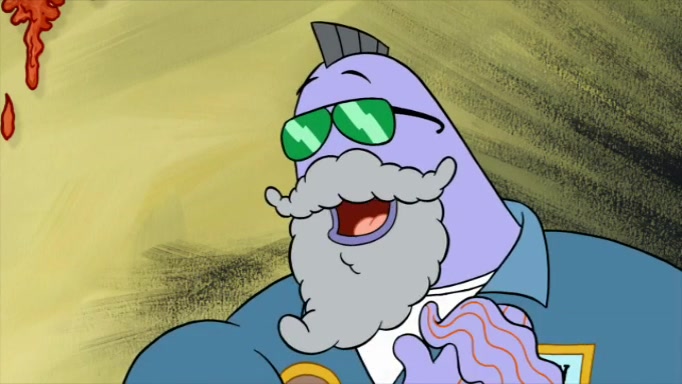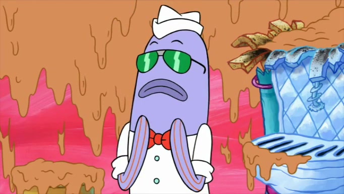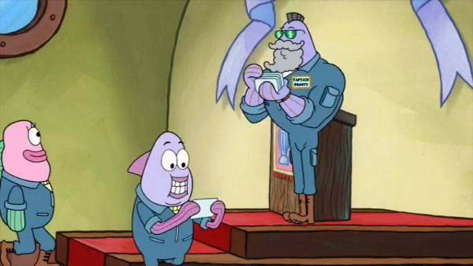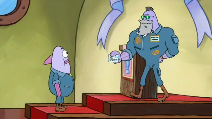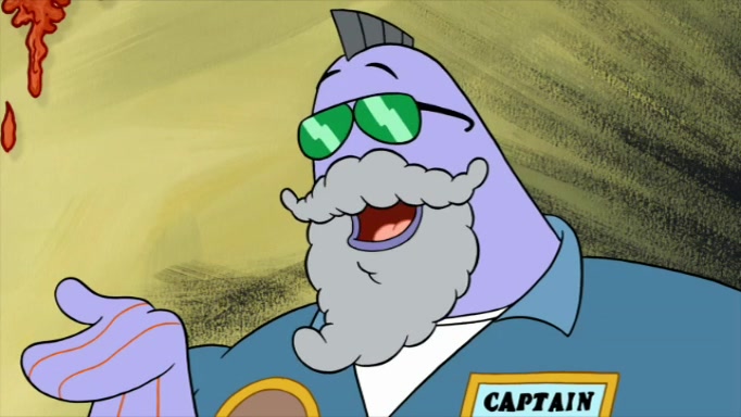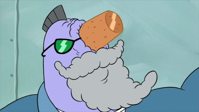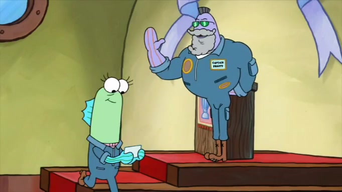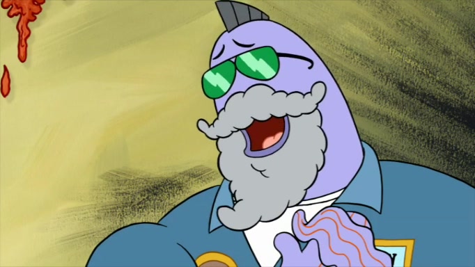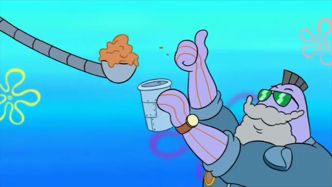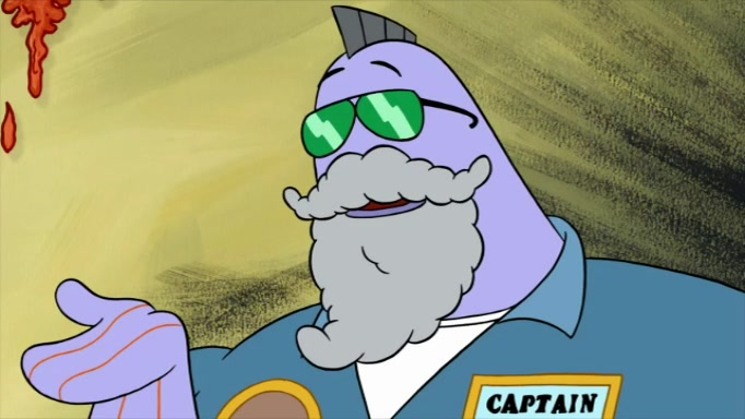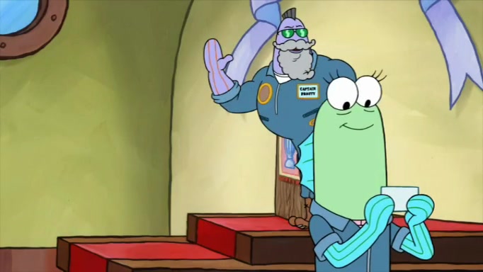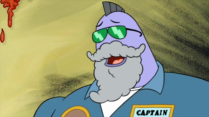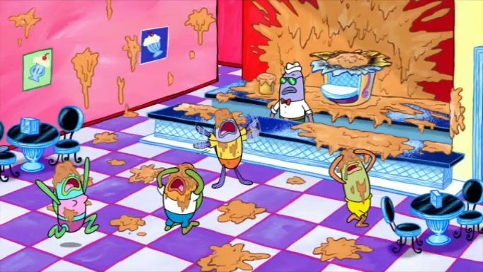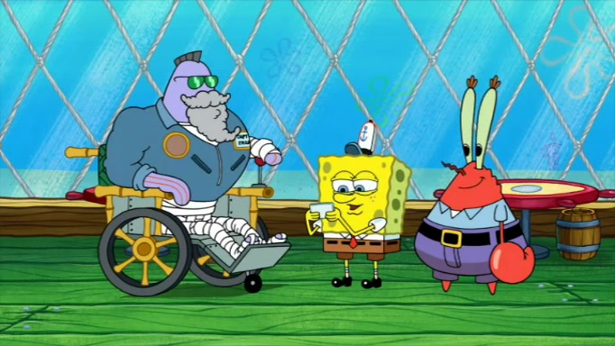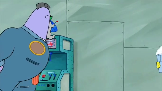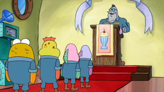 He was the owner of a milkshake cafe called Milk Shake. Many customers were excited to have Frosty Mug's milkshakes. However, when he tried to make a milkshake for an eager customer, he ended up splattering the milkshake all over the store. A stain of milkshake got on the power lines that connect to the milkshake machine, destroying it. The milkshake machine squirted out milkshake stains onto the customers, frightening them and ruining Frostymug's career. He informs SpongeBob that he has not touched the milkshake machine in 20 years. He gets his hand stuck in the machine. He is about to get his arm and all of him sucked into the machine, but SpongeBob is able to grab and save him just before the machine can suck him in. The machine ends up exploding, but Frosty Mug thanks SpongeBob for saving him. Thanks to the machine incident, Frostymug's arm is hurt. He realizes that he doesn't need a machine to make a milkshake and tells SpongeBob that a milkshake comes from within the heart. The next day, at the Krusty Krab, SpongeBob serves Harold a milkshake, which he replies is the best he's ever had. Everyone now wants to buy SpongeBob's milkshake. Captain Frosty Mug comes in, requesting a milkshake and gives SpongeBob his new milkshake license to which SpongeBob replies, "If only it were this easy to get a boating license" and laughs, ending the episode.