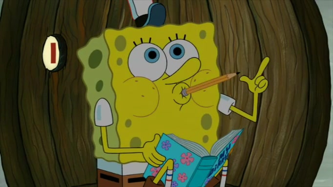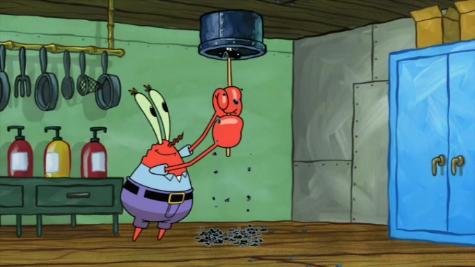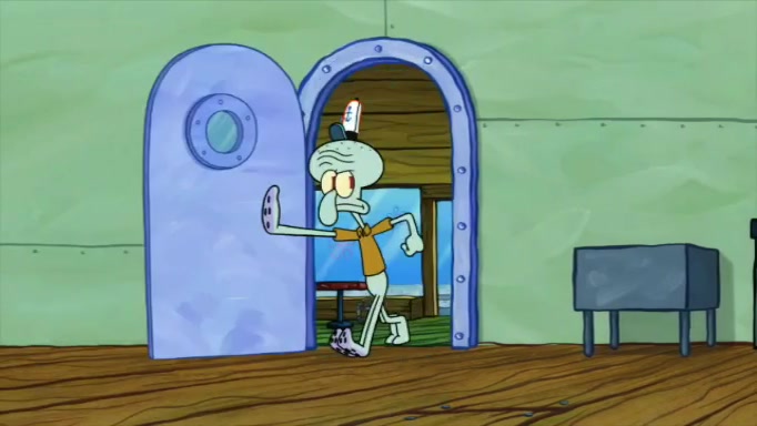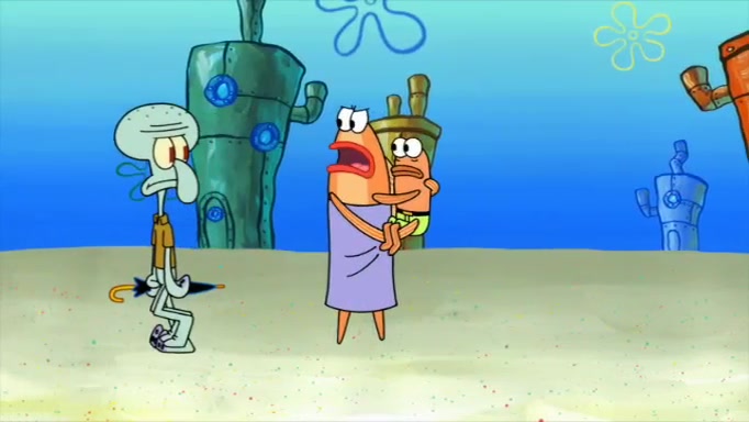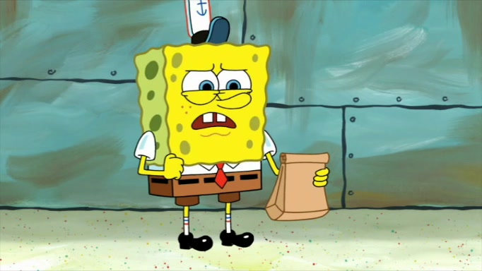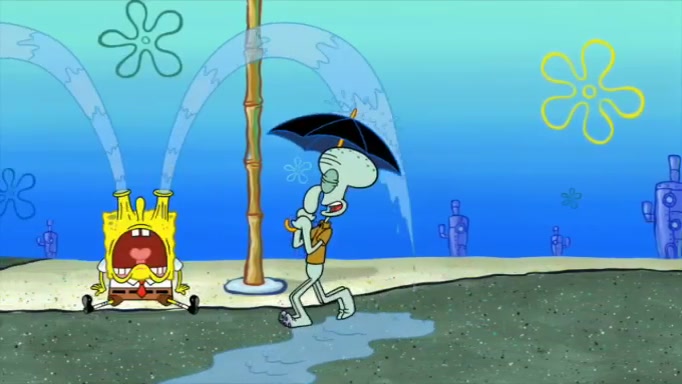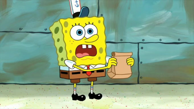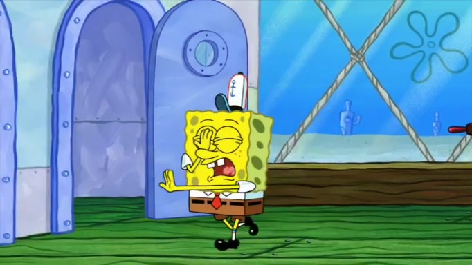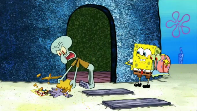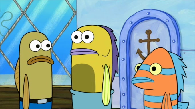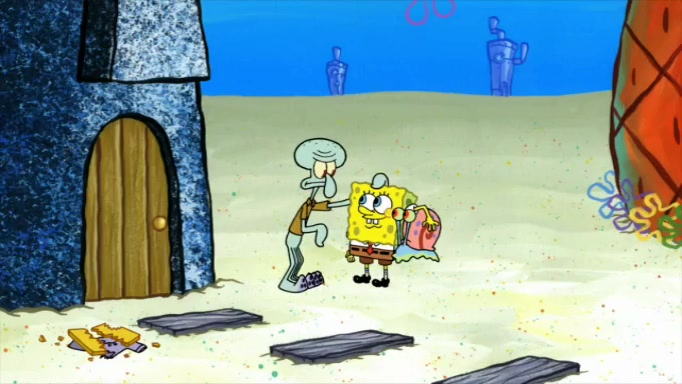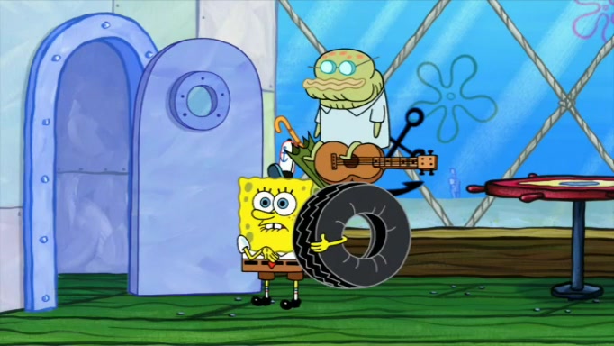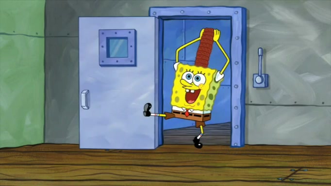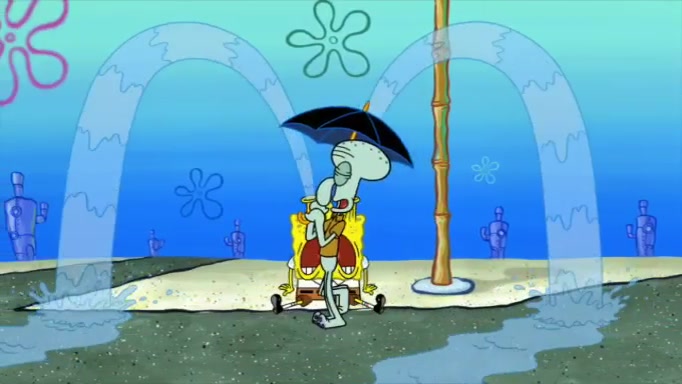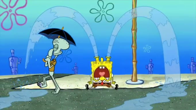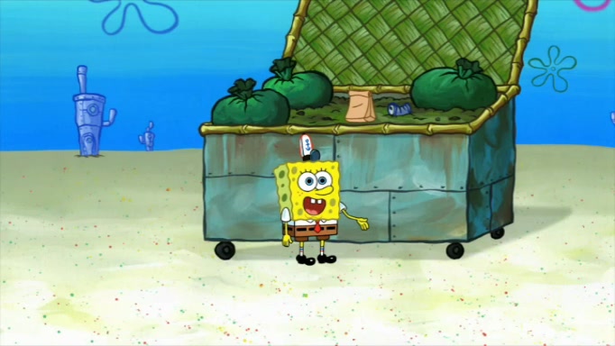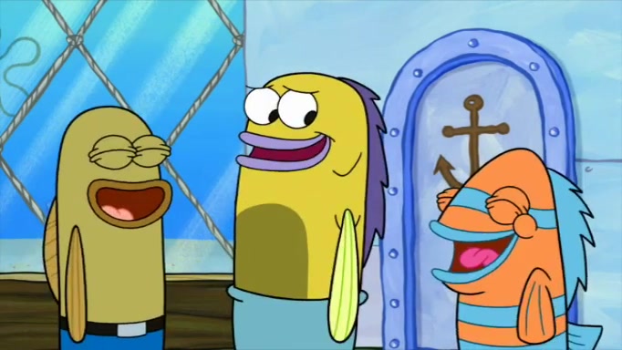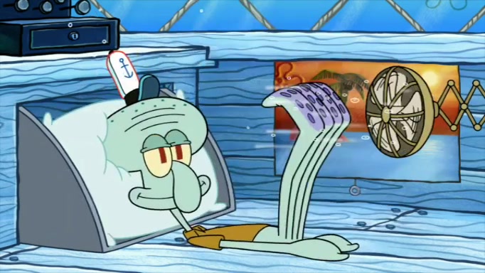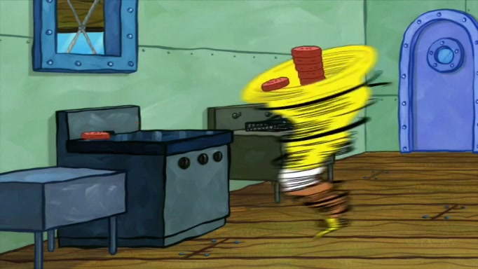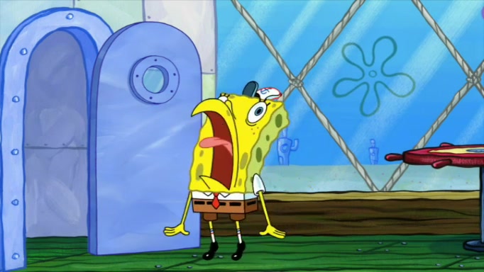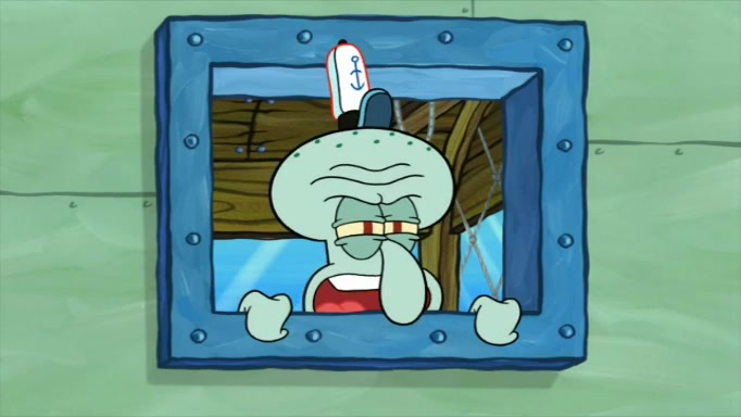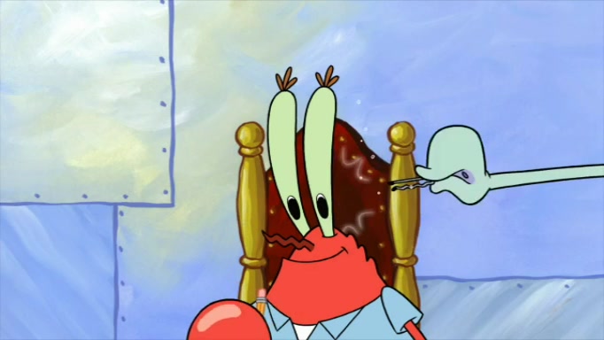 The episode starts off at the Krusty Krab, where business is slow. As a result, Squidward decides to rest. Before he even gets a chance to start relaxing, a whole bunch of fish come. Squidward freaks out when he realizes SpongeBob isn't making Krabby Patties. Squidward then finds SpongeBob in a barrel. He screams at him, resulting in SpongeBob melting out of the barrel. SpongeBob makes the food and serves everybody while Squidward finds a book in the barrel. Then, SpongeBob grabs it and puts it in between the two frying baskets.