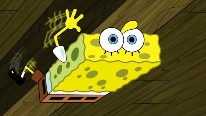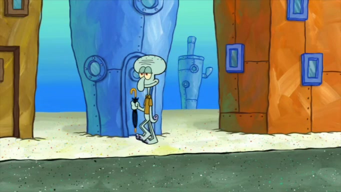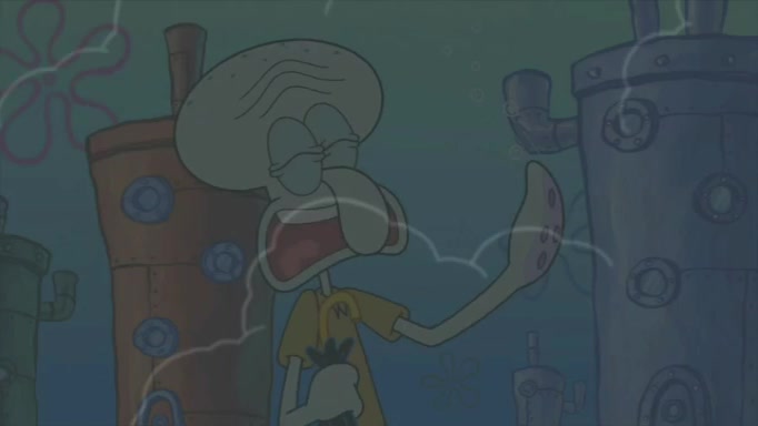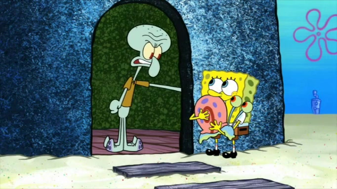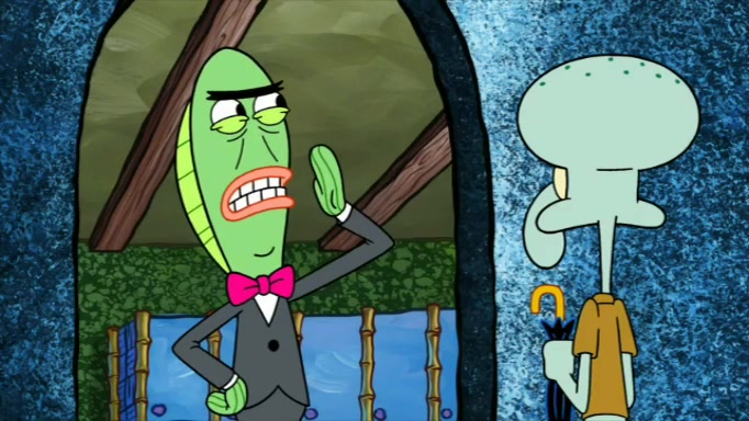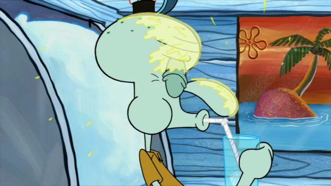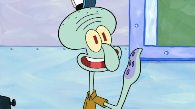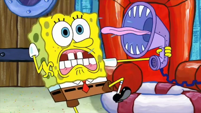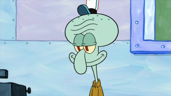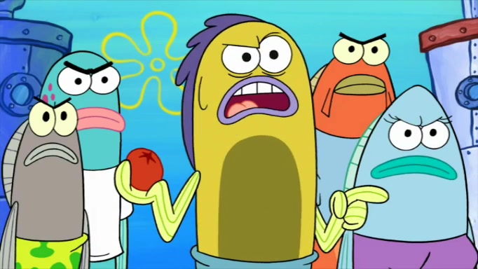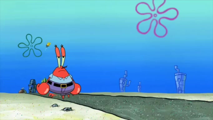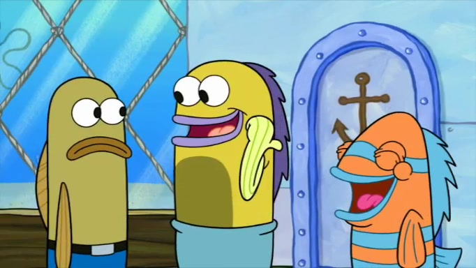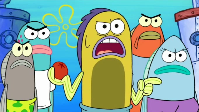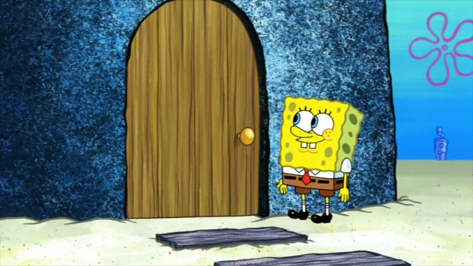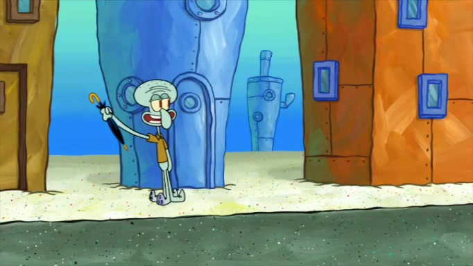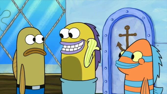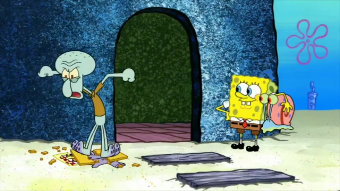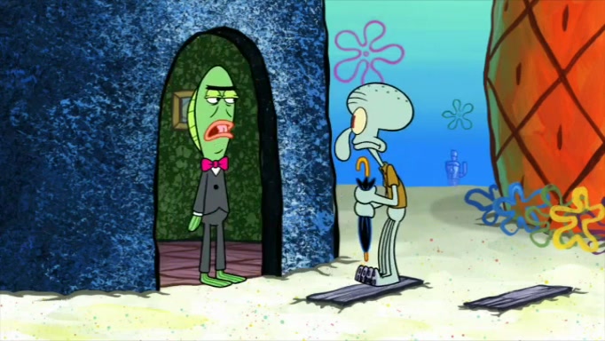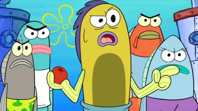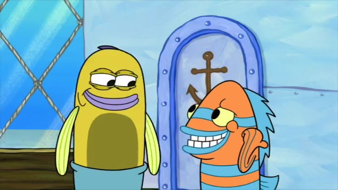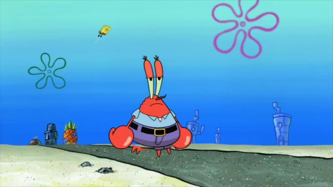 The episode starts off at the Krusty Krab, where business is slow. As a result, Squidward decides to rest. Before he even gets a chance to start relaxing, a whole bunch of fish come. Squidward freaks out when he realizes SpongeBob isn't making Krabby Patties. Squidward then finds SpongeBob in a barrel. He screams at him, resulting in SpongeBob melting out of the barrel. SpongeBob makes the food and serves everybody while Squidward finds a book in the barrel. Then, SpongeBob grabs it and puts it in between the two frying baskets.