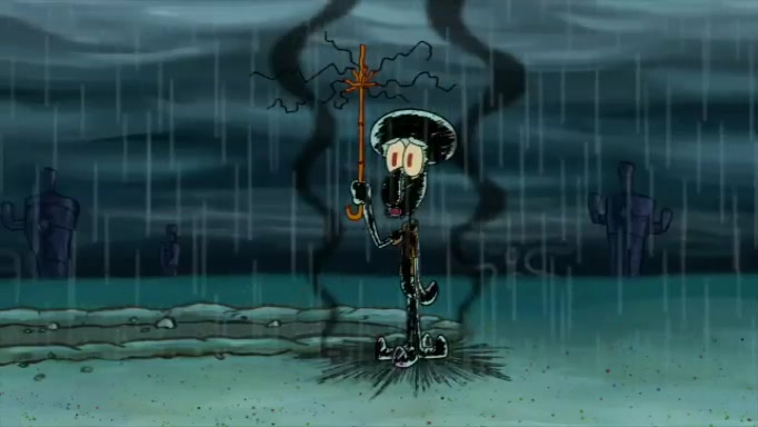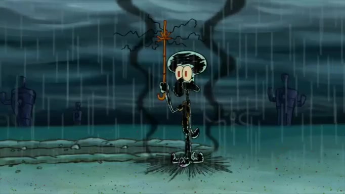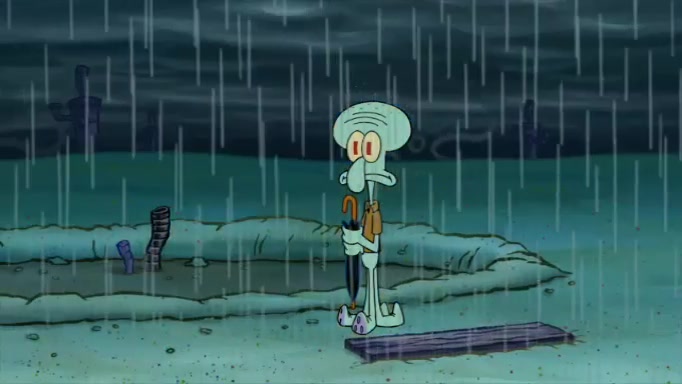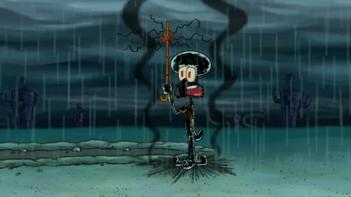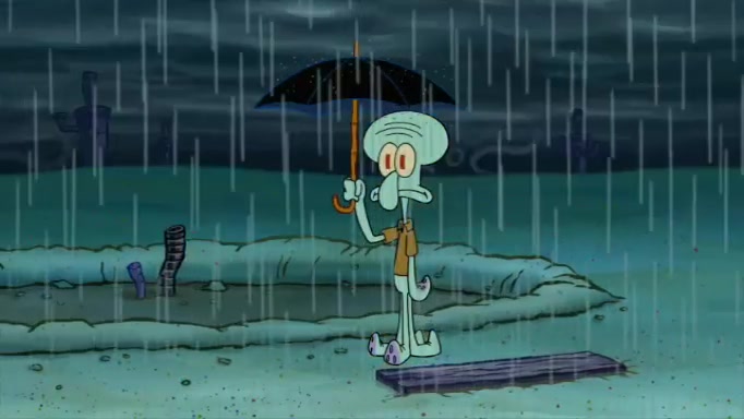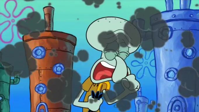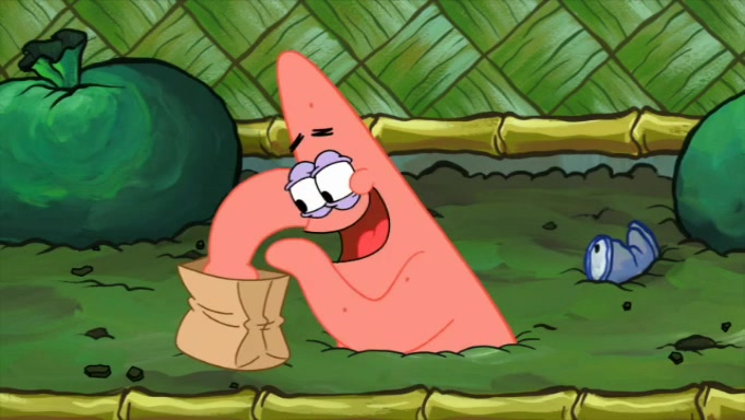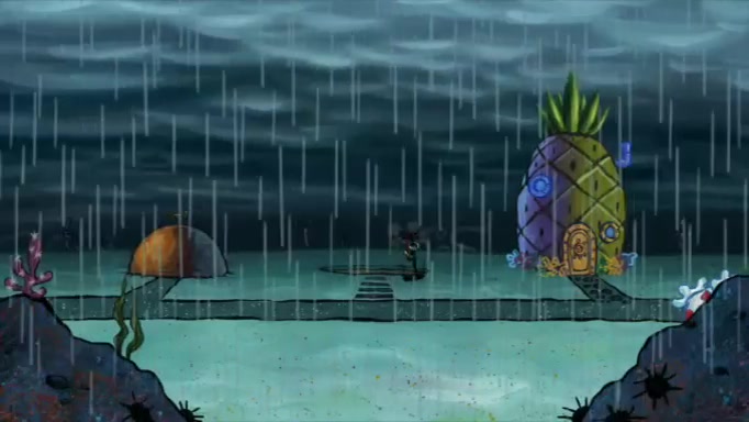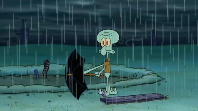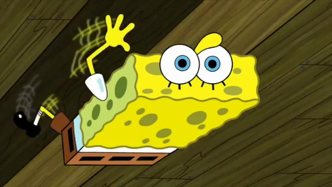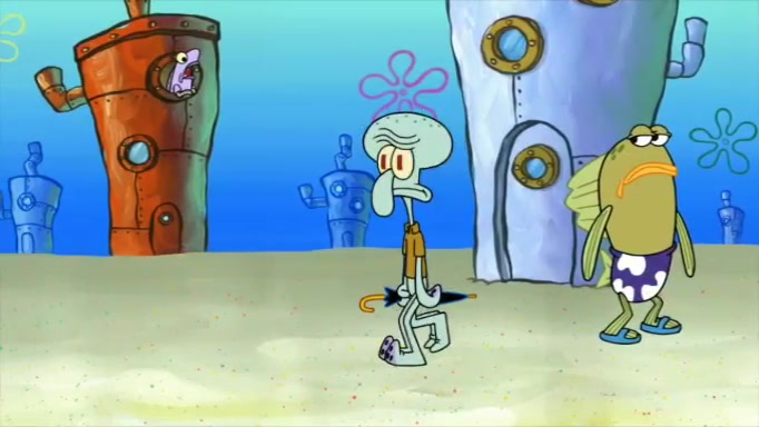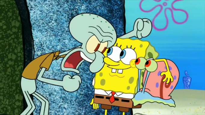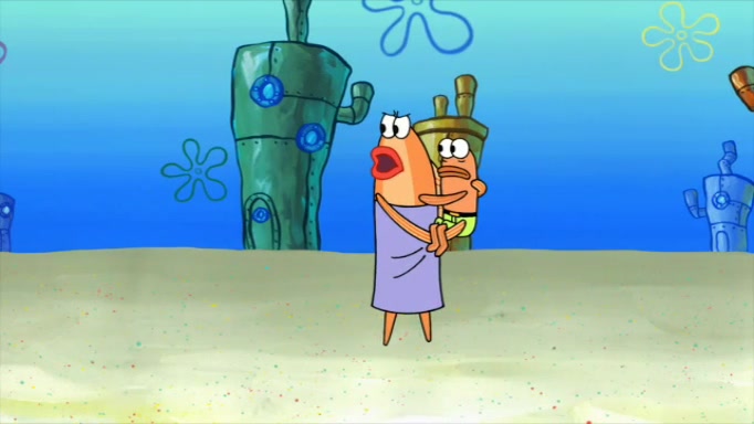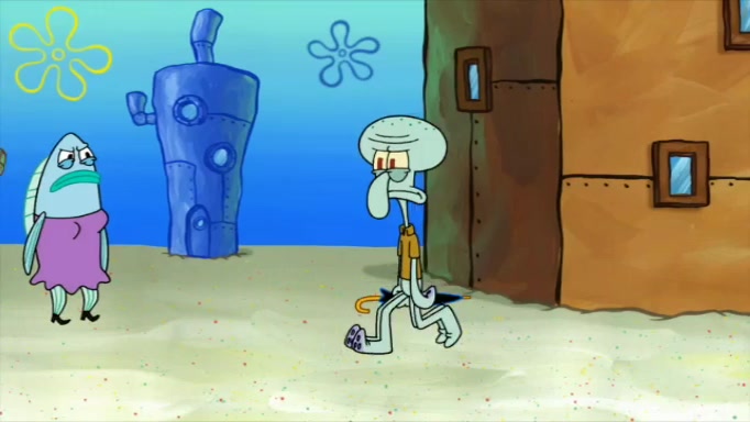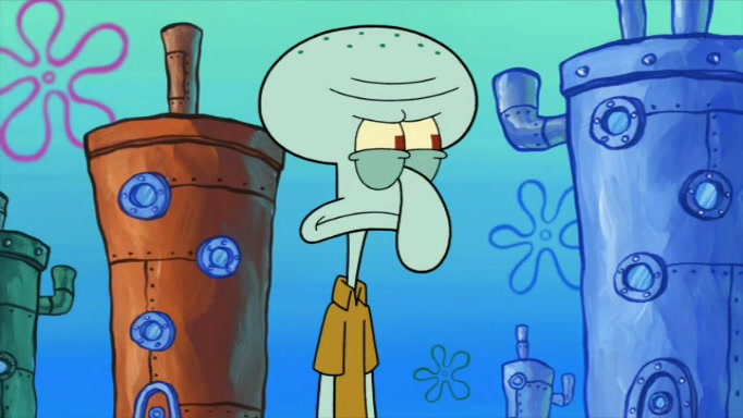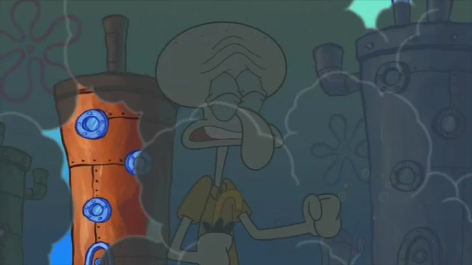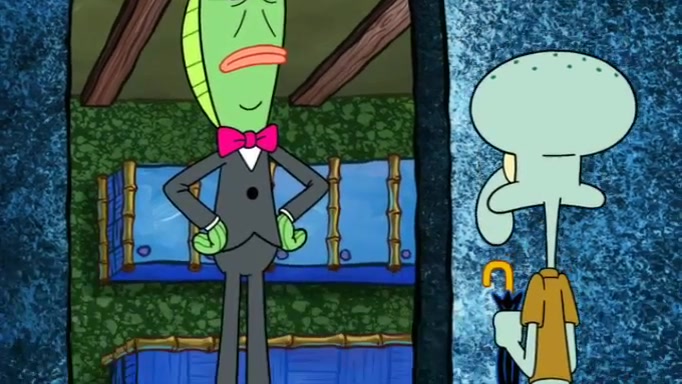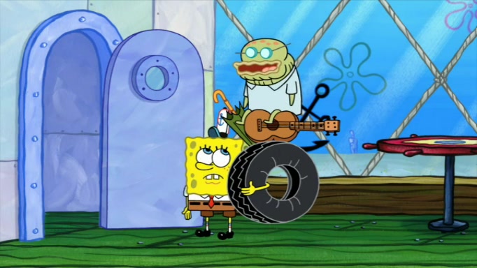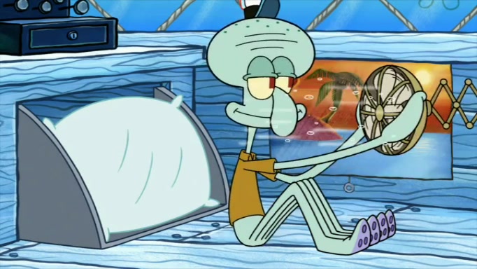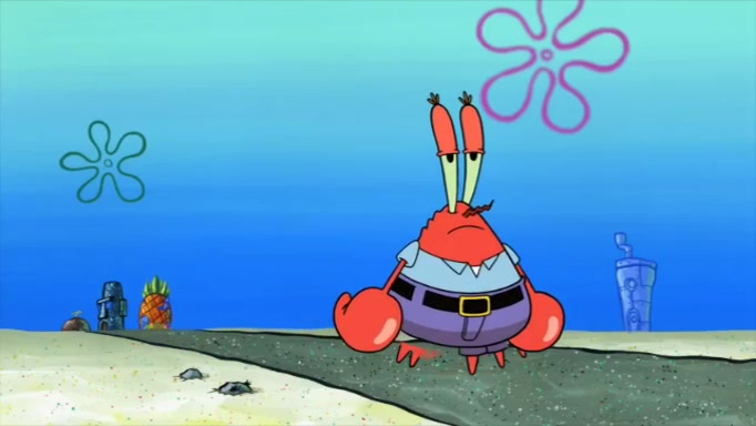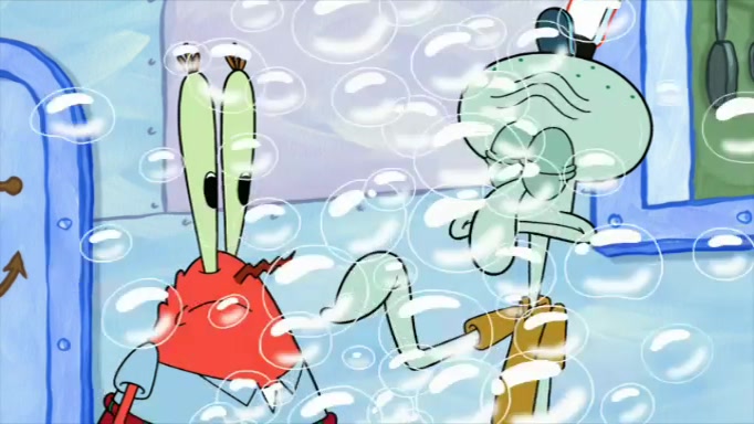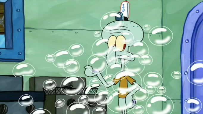 The episode starts off at the Krusty Krab, where business is slow. As a result, Squidward decides to rest. Before he even gets a chance to start relaxing, a whole bunch of fish come. Squidward freaks out when he realizes SpongeBob isn't making Krabby Patties. Squidward then finds SpongeBob in a barrel. He screams at him, resulting in SpongeBob melting out of the barrel. SpongeBob makes the food and serves everybody while Squidward finds a book in the barrel. Then, SpongeBob grabs it and puts it in between the two frying baskets.