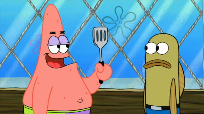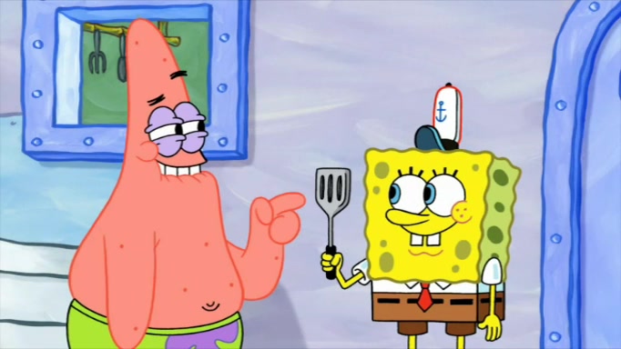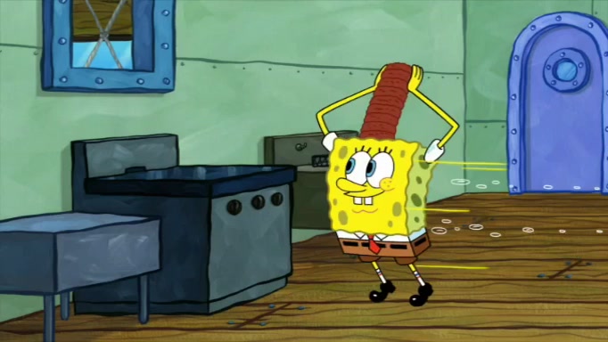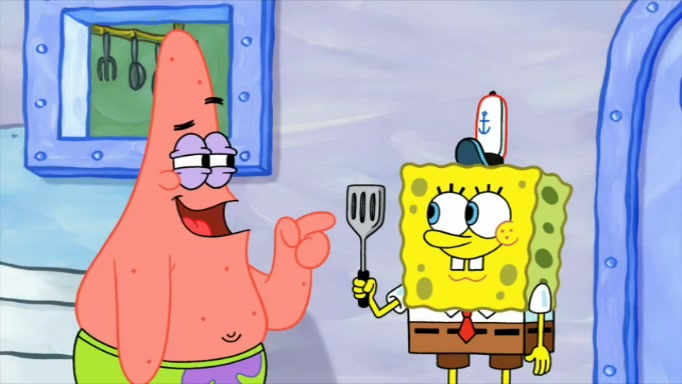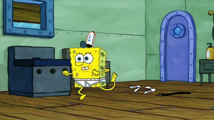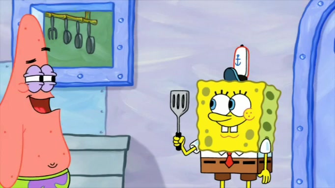 The second secret is that SpongeBob named his spatula, "Fifi". This amuses everyone and when SpongeBob comes back asking what's going on, Patrick teases him about him naming his spatula Fifi. Embarrassed, SpongeBob nervously excuses himself to the kitchen.The last secret is that whenever he hears the Bikini Bottom Municipal Anthem, he dances around in his underwear.