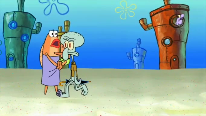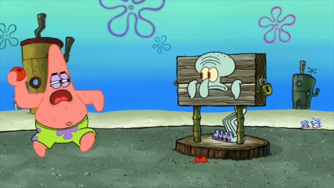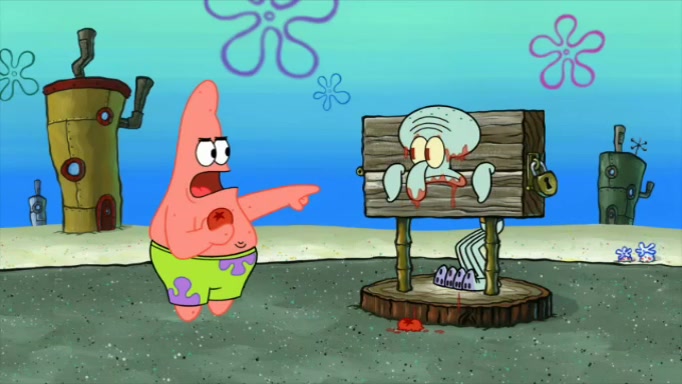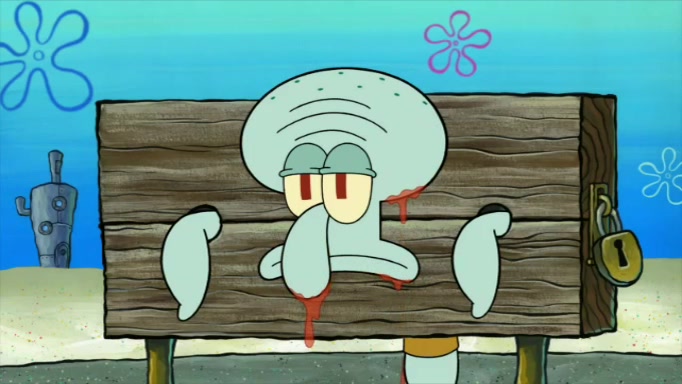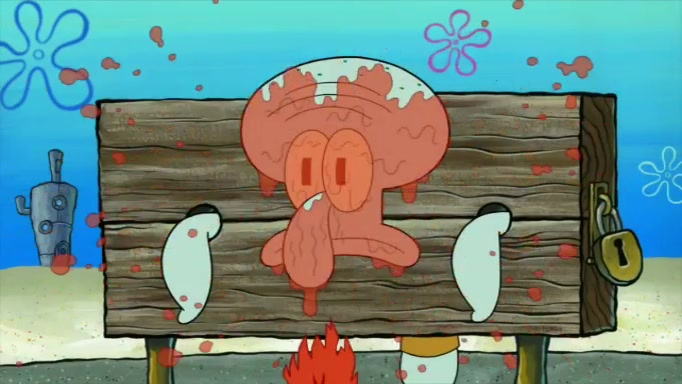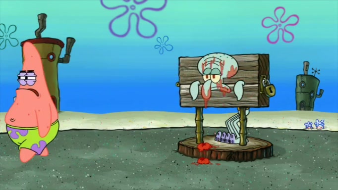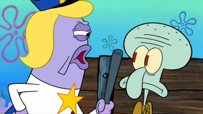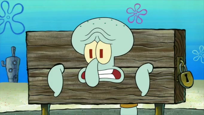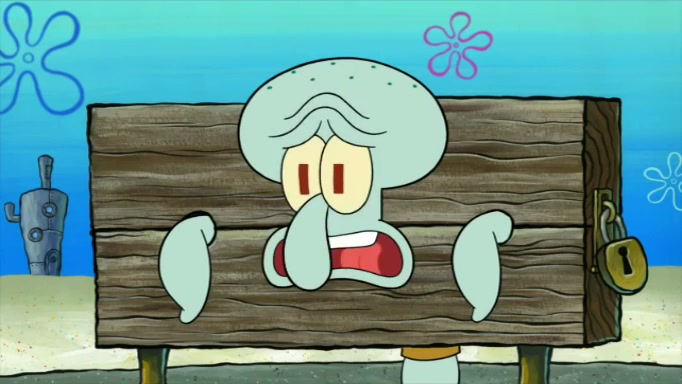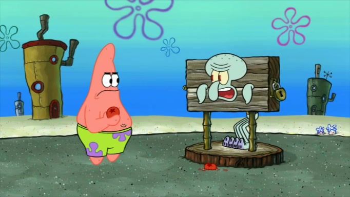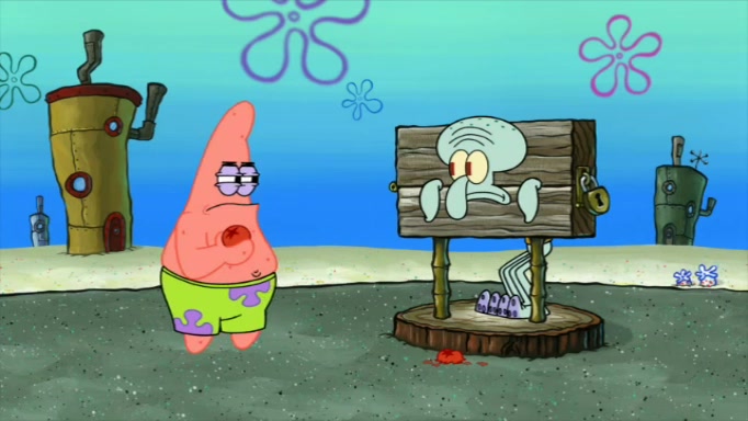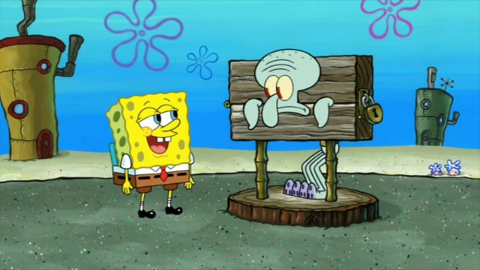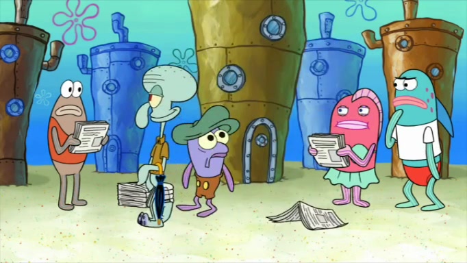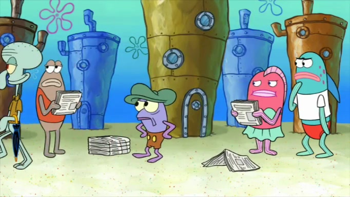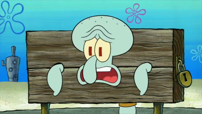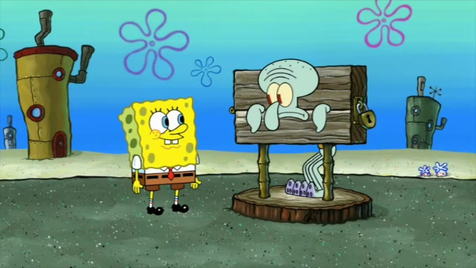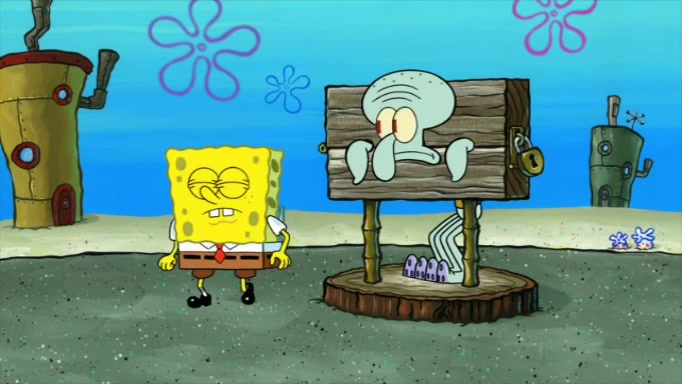 Now, when Squidward sleeps on a bench, a couple of police recognize him and lock him in the stocks. Then, Patrick throws tomatoes at him. Squidward then apologizes to SpongeBob and he learns that he only read SpongeBob's work diary, which got published. SpongeBob also tells him he never read his secret personal diary, which would be really embarrassing.