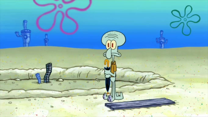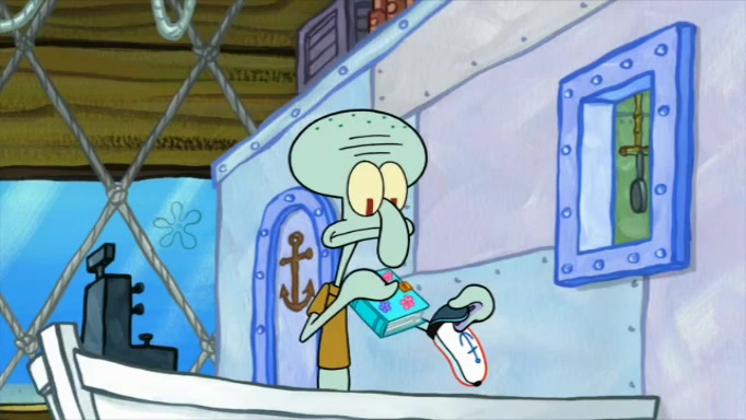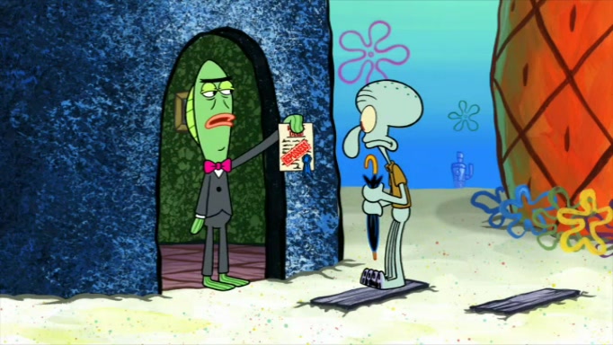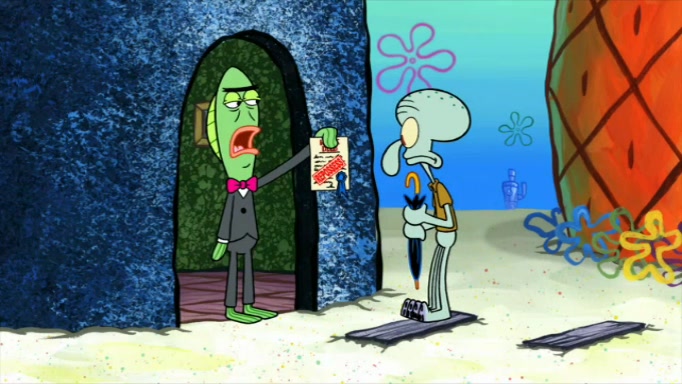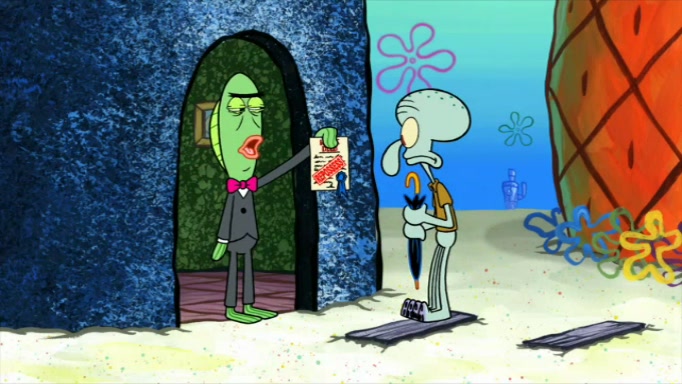 Mr. Krabs scolds at Squidward for reading SpongeBob's diary and demands that he apologize for what he did, but Squidward just scoffs at this saying that SpongeBob will get over it. Squidward then finds a newspaper that talks about "JERK READS DIARY! LOCAL FRY COOK DEVASTATED!" Squidward just laughs at the paper. Then he goes in a taxi but the taxi driver just drives away because Squidward is the jerk. Later on, he goes to his house, only to find out that his loan was taken away.