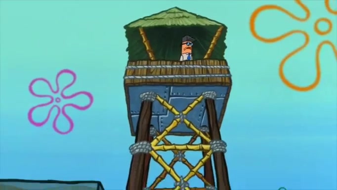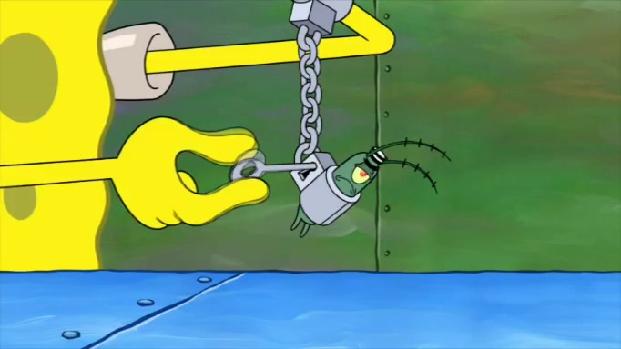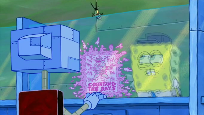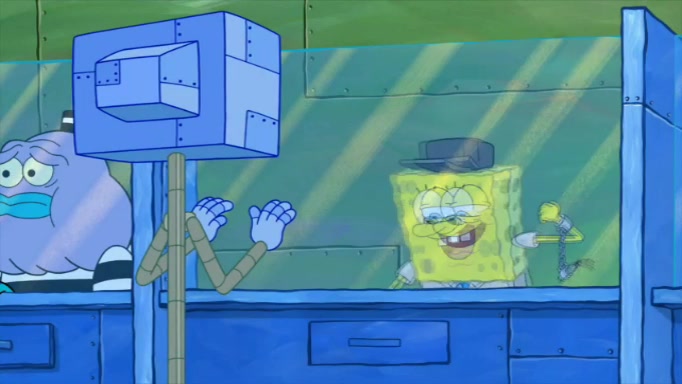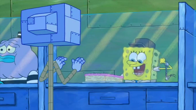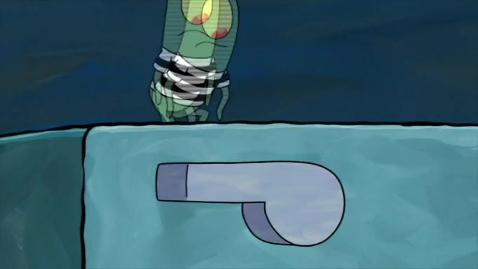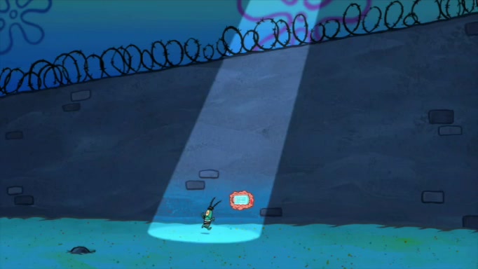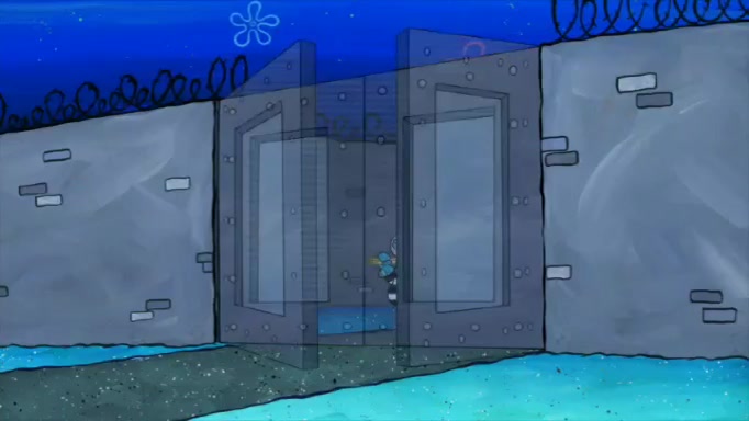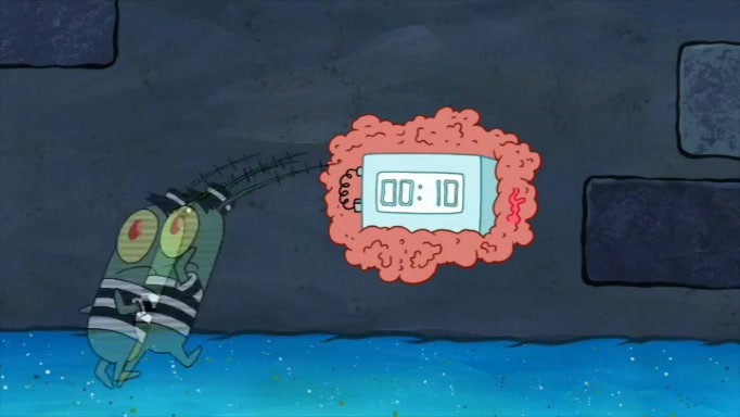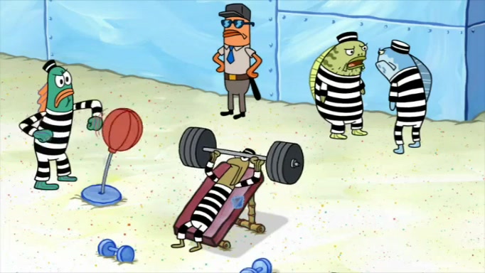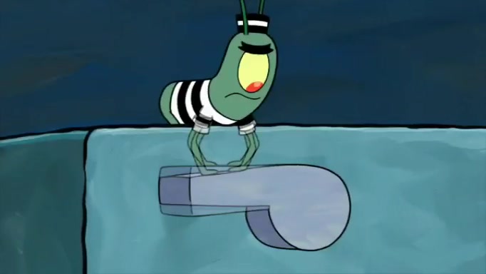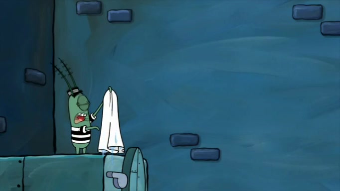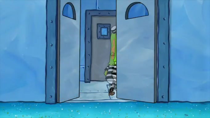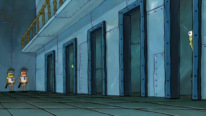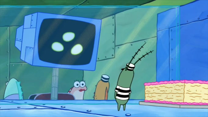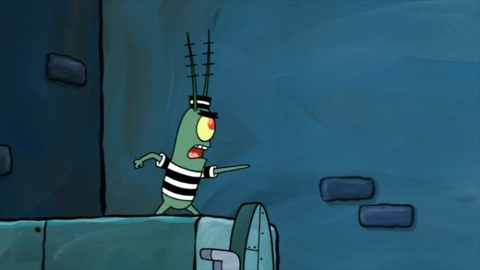 The episode opens with the Narrator explaining the Bikini Bottom Jail, mainly it's newest member, Plankton. The warden lets all of the prisoners out, including Plankton. Plankton hears SpongeBob calling out to him. Plankton wants to know what is SpongeBob doing there and SpongeBob says that Mr. Krabs told him to watch over Plankton. Plankton doesn't like the idea but the prison warden tells him to quiet down. The scene changes over to a room where Karen is about to send over a cake to SpongeBob which is for Plankton. Plankton asks if Karen had put the file in the cake but Karen just laughs for she thought he was joking (although plankton was expecting her to put a file in the cake). Plankton attempts to jump over the glass but SpongeBob grabs him.