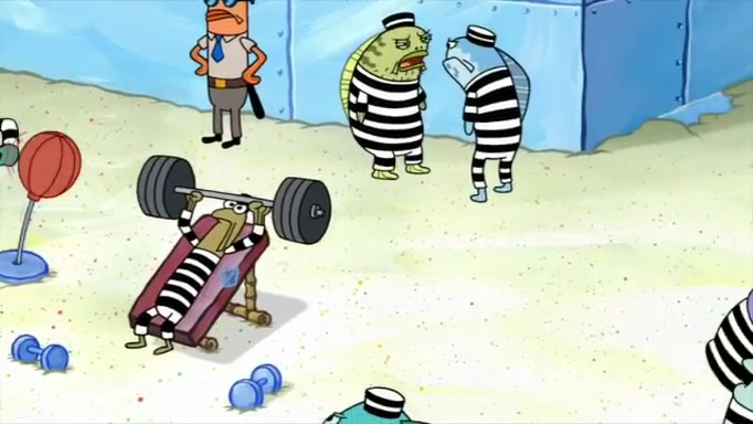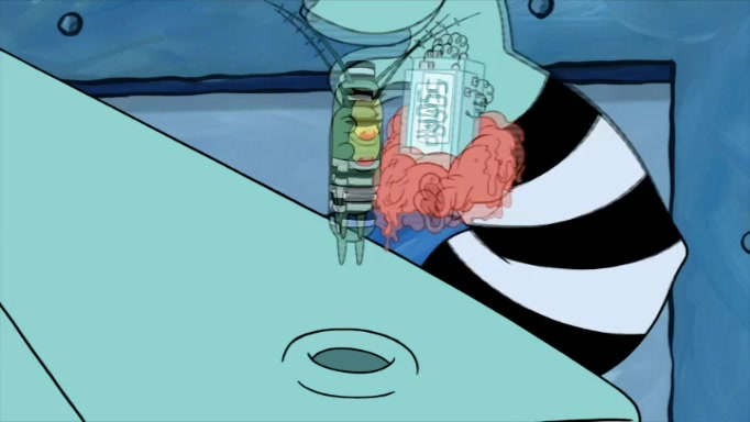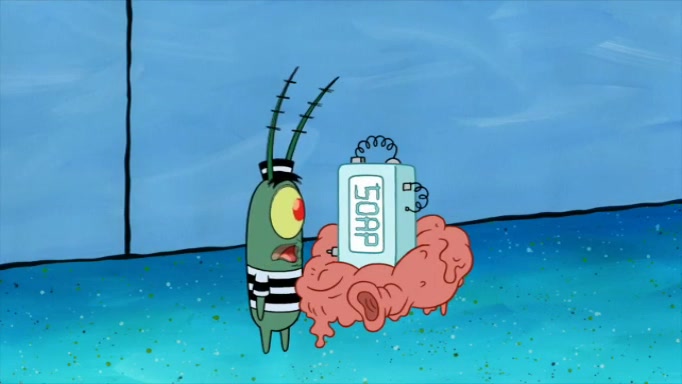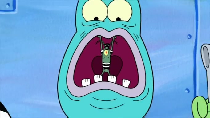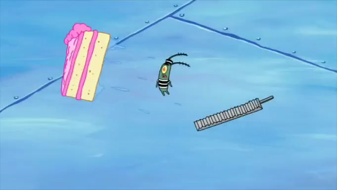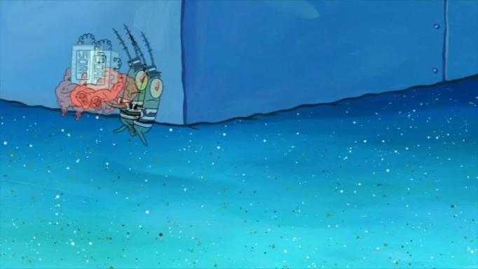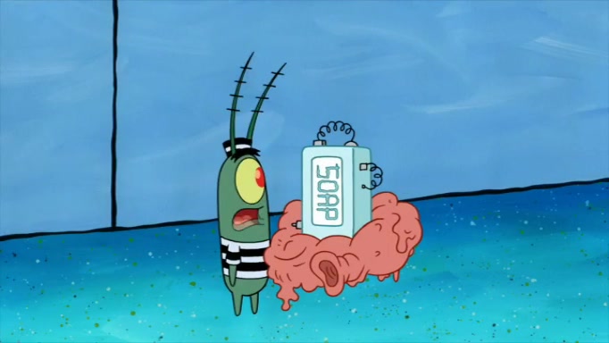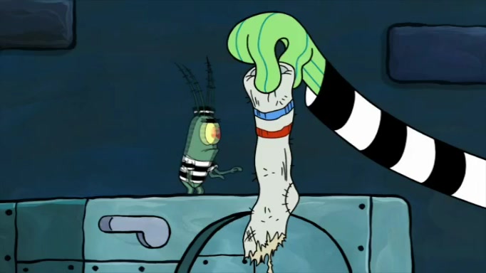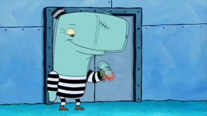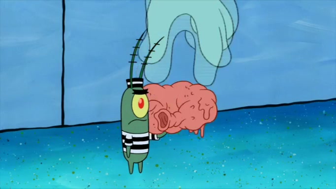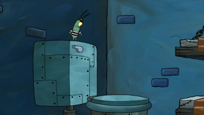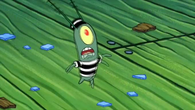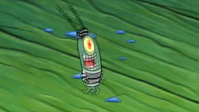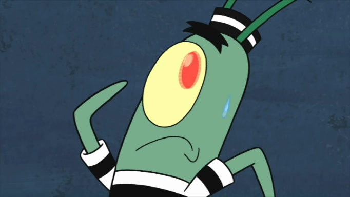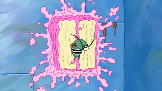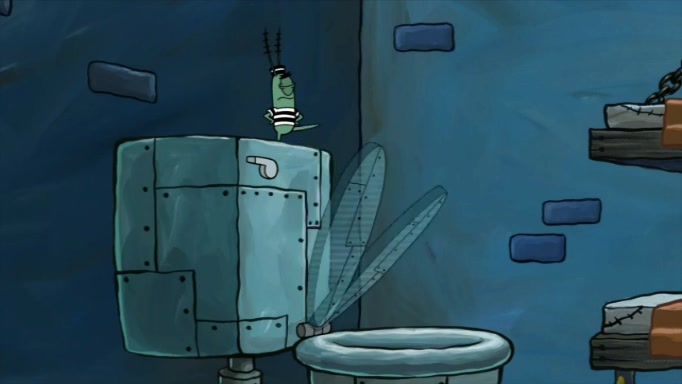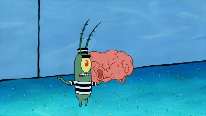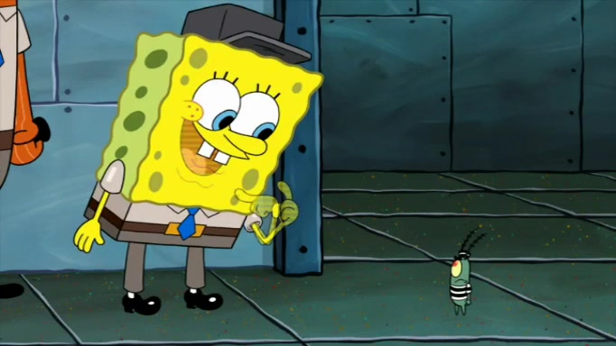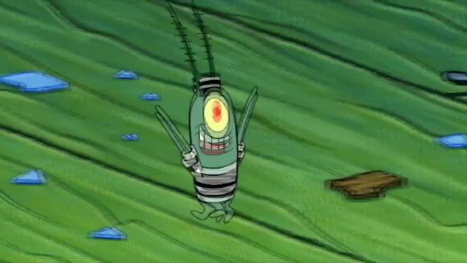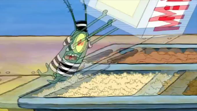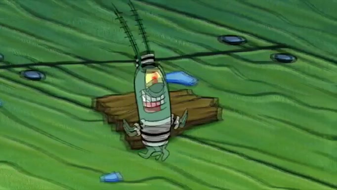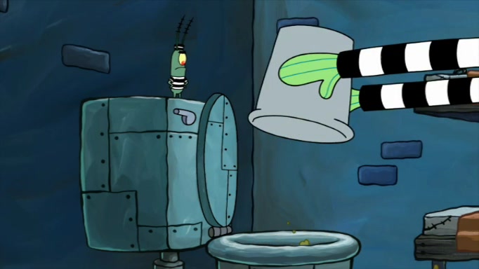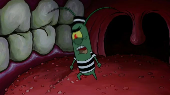In the cafeteria, Plankton attempts to eat his food but a purple cellmate eats some of his food. Another green cellmate drinks Plankton's milk and then Plankton gets eaten by a Light Blue Cellmate. Plankton yells out that he is the most evil genius and yells out his name. The Purple Cellmate, thinking the Light Blue Cellmate is talking, doesn't believe him, saying he and the others are fans of Plankton. Plankton calls out his name again and then the Purple Cellmate punches the Light Blue Cellmate in the stomach which causes Plankton to be punched out and crash into the wall. The Purple and Green Cellmates start to beat up the Light Blue Cellmate until Plankton breaks it up. Plankton introduces himself to the Cellmates and the Cellmates say how they are going to do everything that Plankton says. Plankton gets excited saying how easily he could get the Krabby Patty Secret Formula.
