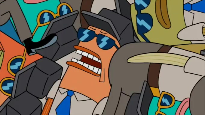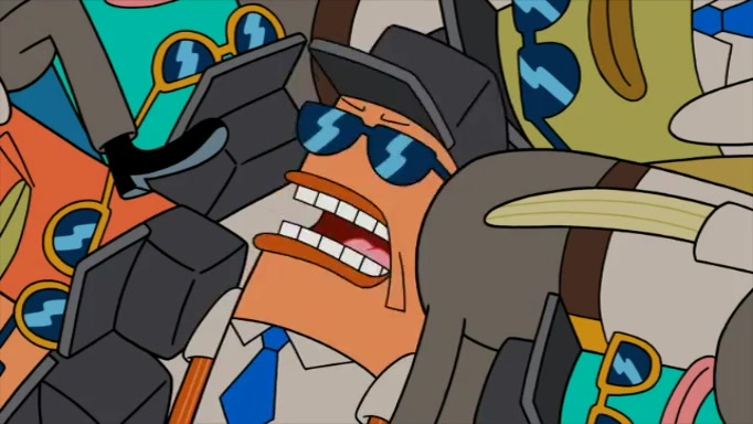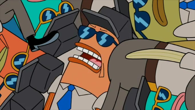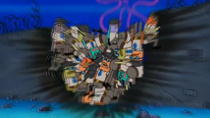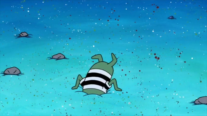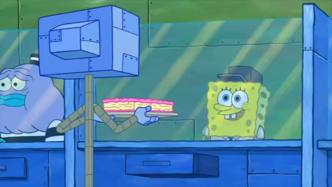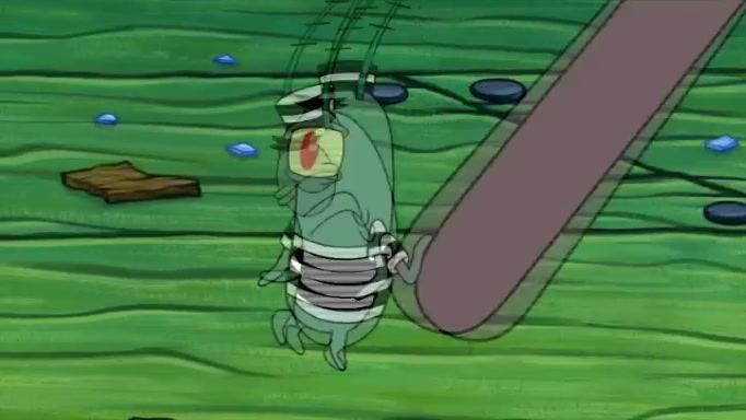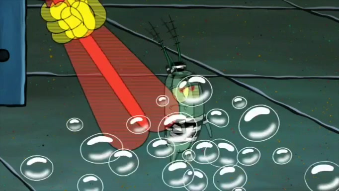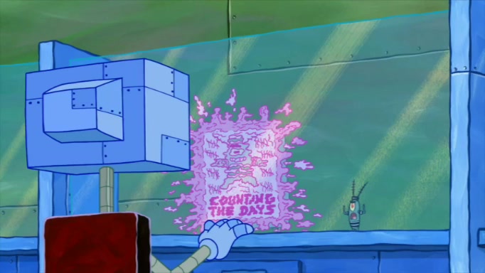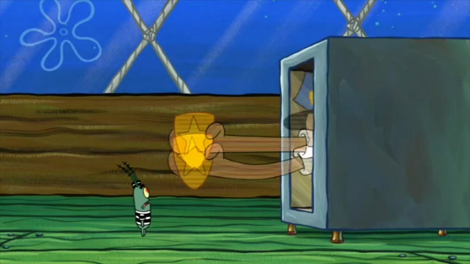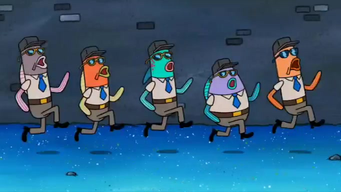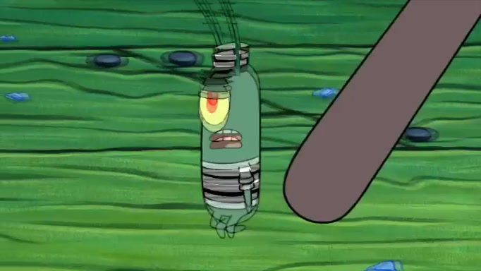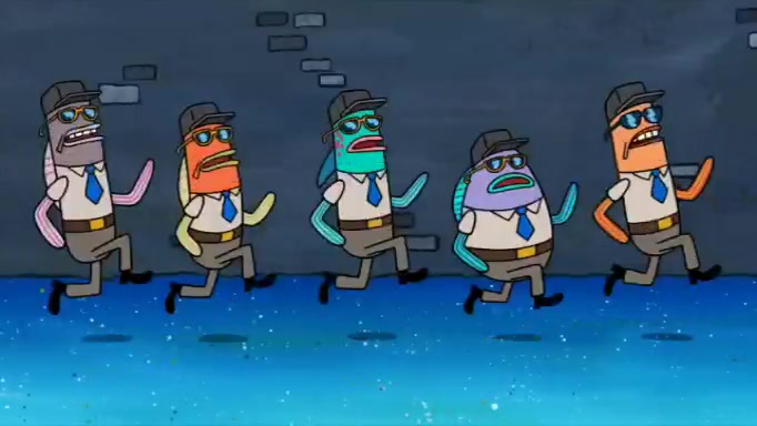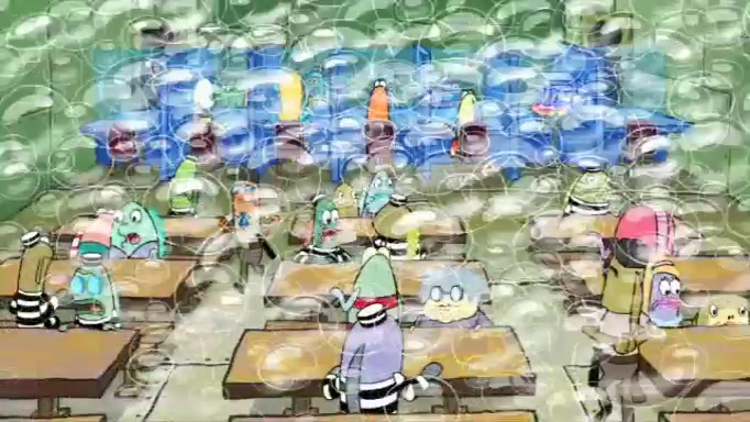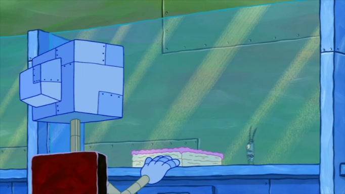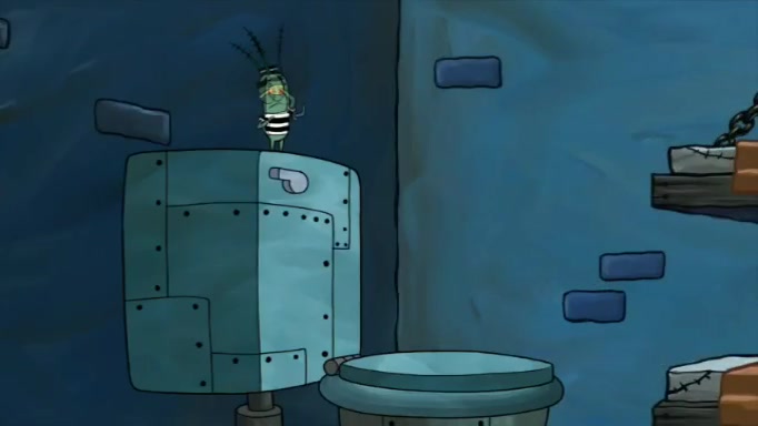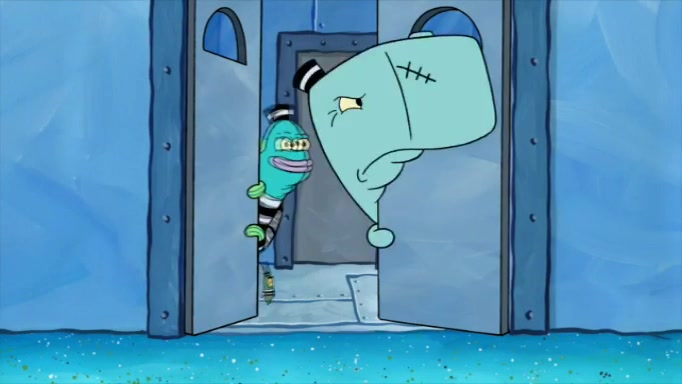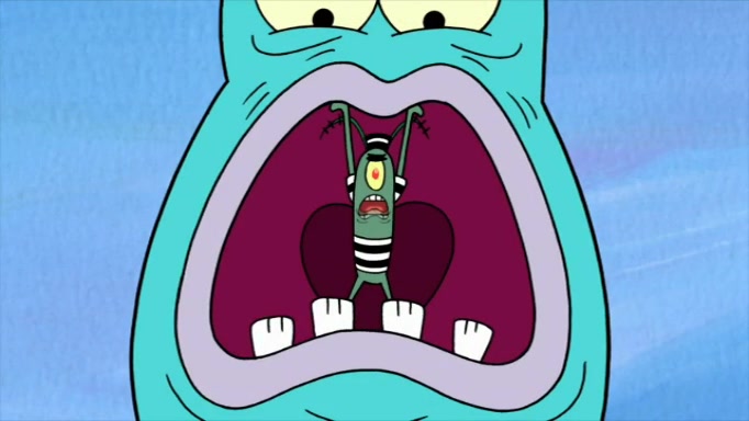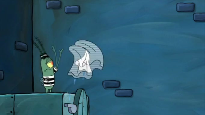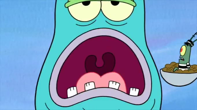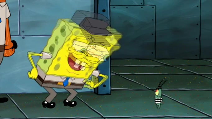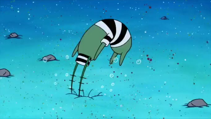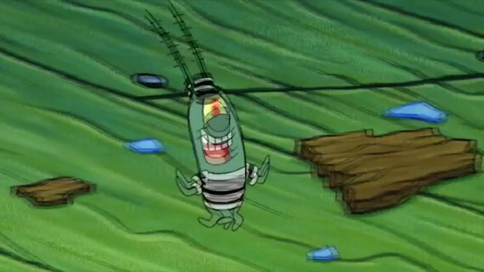 In the cafeteria, Plankton attempts to eat his food but a purple cellmate eats some of his food. Another green cellmate drinks Plankton's milk and then Plankton gets eaten by a Light Blue Cellmate. Plankton yells out that he is the most evil genius and yells out his name. The Purple Cellmate, thinking the Light Blue Cellmate is talking, doesn't believe him, saying he and the others are fans of Plankton. Plankton calls out his name again and then the Purple Cellmate punches the Light Blue Cellmate in the stomach which causes Plankton to be punched out and crash into the wall. The Purple and Green Cellmates start to beat up the Light Blue Cellmate until Plankton breaks it up. Plankton introduces himself to the Cellmates and the Cellmates say how they are going to do everything that Plankton says. Plankton gets excited saying how easily he could get the Krabby Patty Secret Formula.