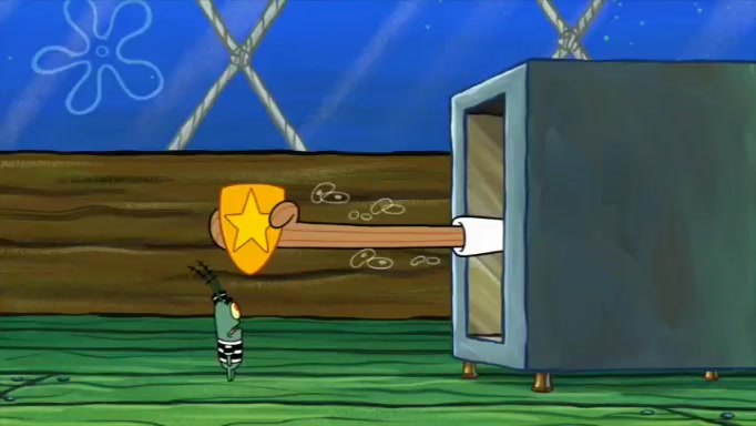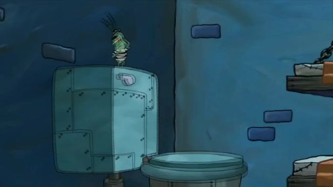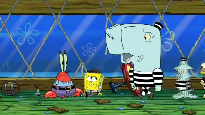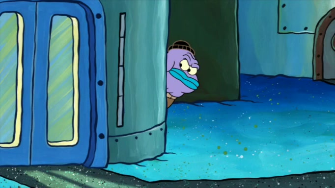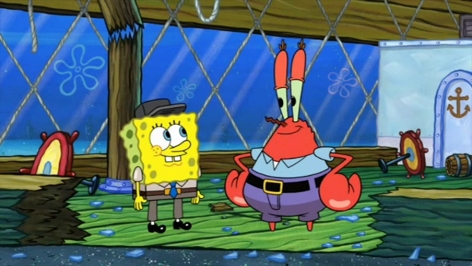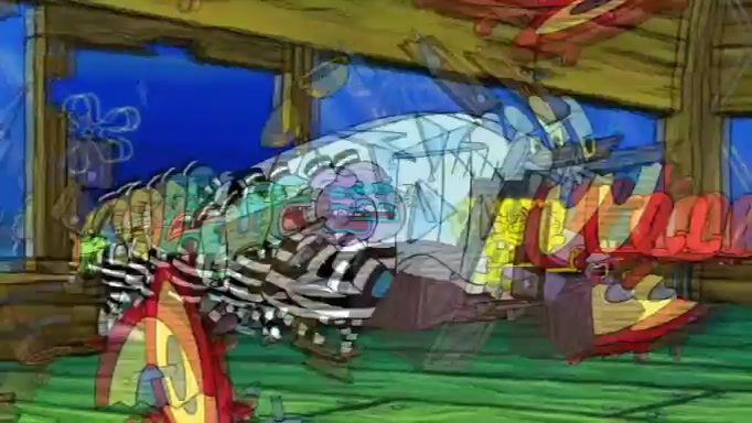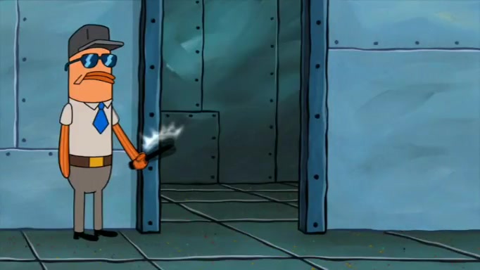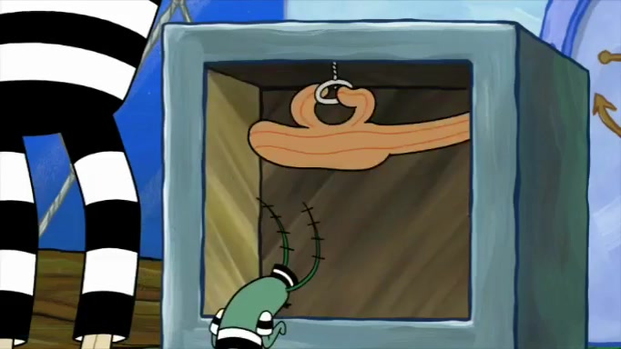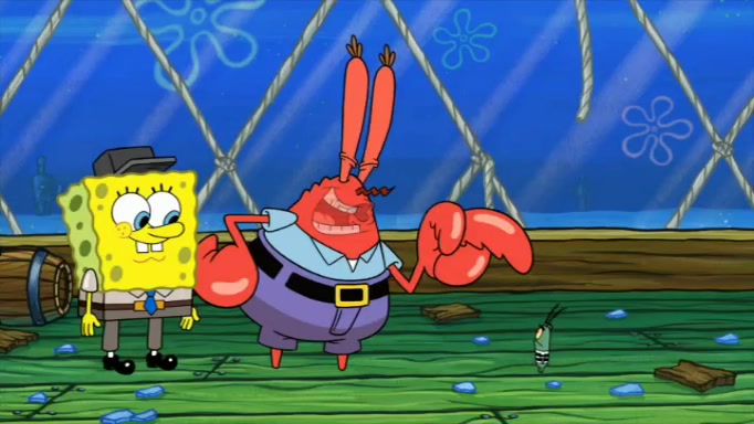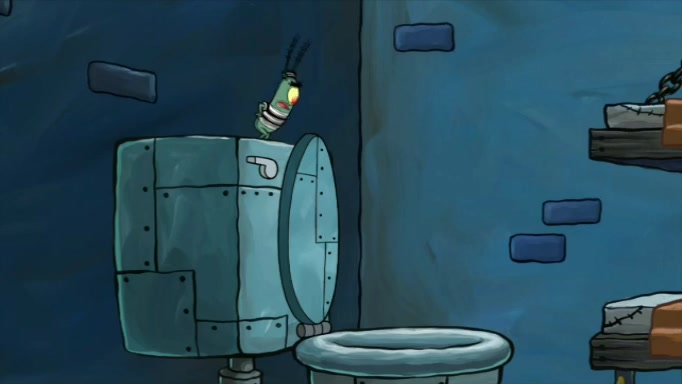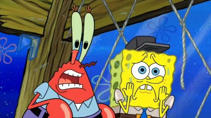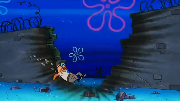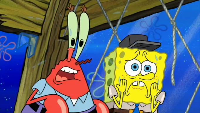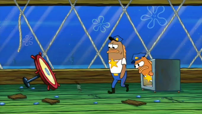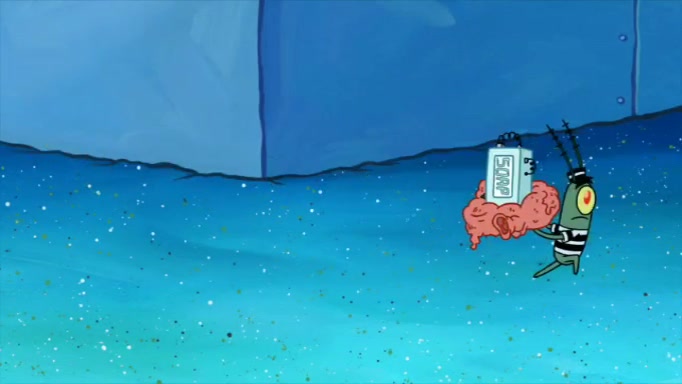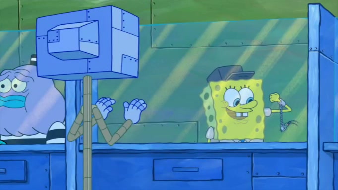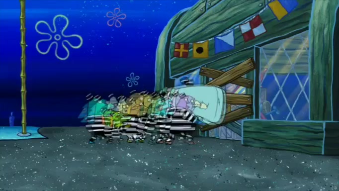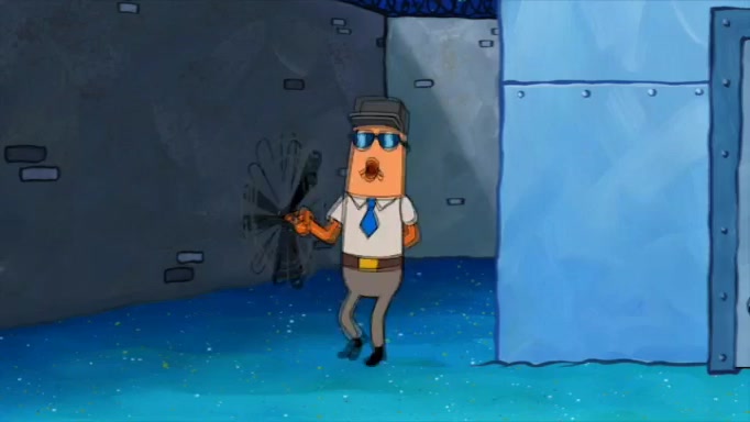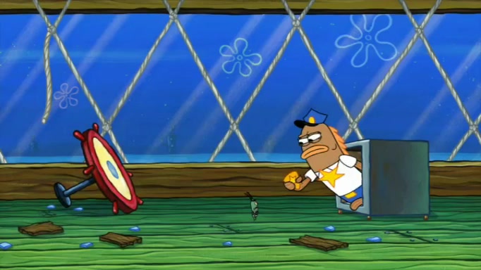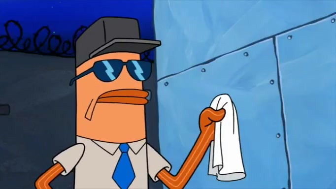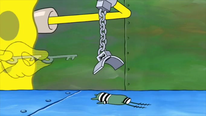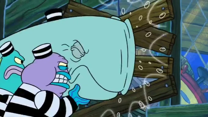 Outside, Plankton is explaining to his Cellmates how to escape from the Bikini Bottom Jail. The Cellmates have ideas but Plankton tells them they need better ones. The Whale Cellmate says they could break out only if they had chum and the other Cellmates agree. Plankton is surprised with the Cellmates saying how chum is great for committing crimes. Plankton asks if chum is great for eating but the Cellmates don't think so. Plankton then agrees to make chum for the Cellmates and they all cheer. Inside Plankton's jail cell, Plankton and his Cellmates are creating chum using different kinds of items. They successfully make the chum. SpongeBob overhears them and runs to the Krusty Krab to warn Mr. Krabs. At the Krusty Krab, SpongeBob tells Mr. Krabs that Plankton is planning to break into the Krusty Krab with his Cellmates. Mr. Krabs insures SpongeBob that he will handle the problem.