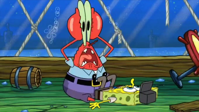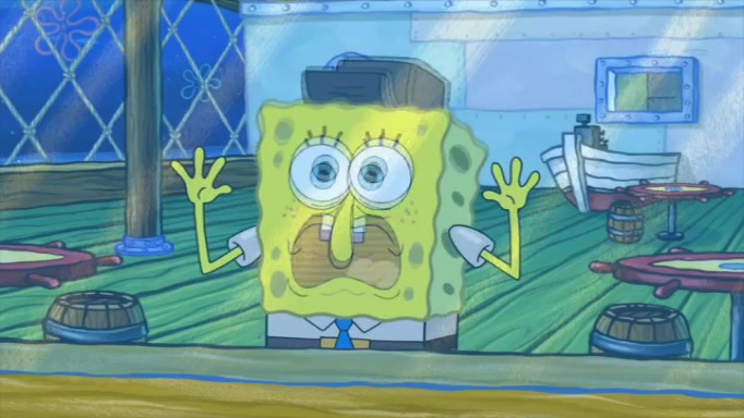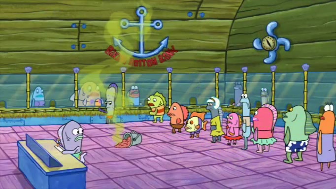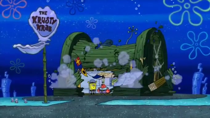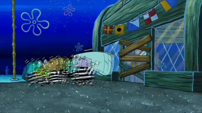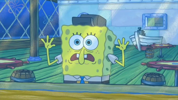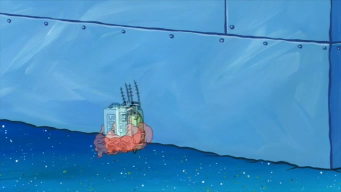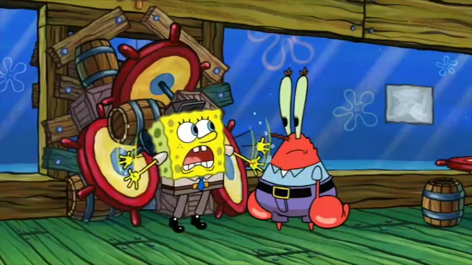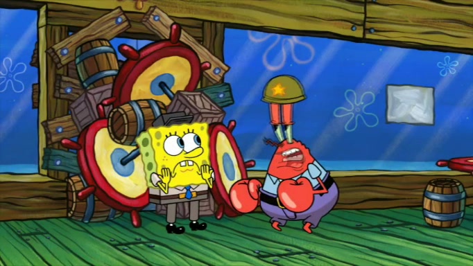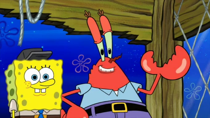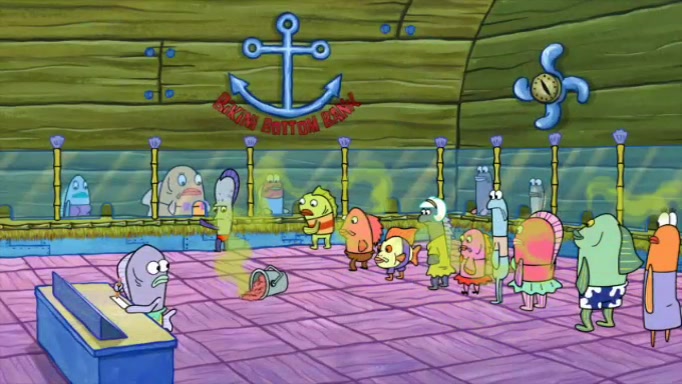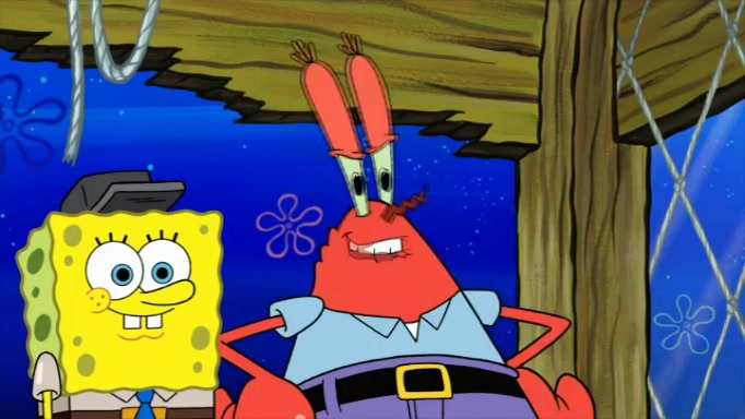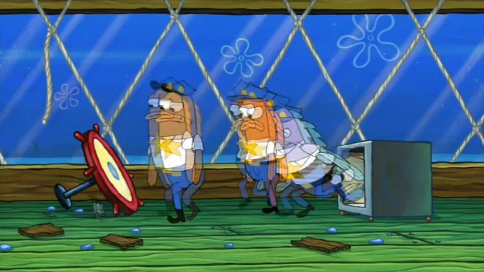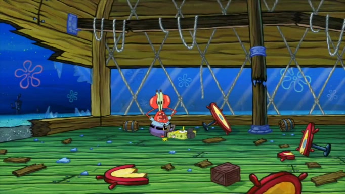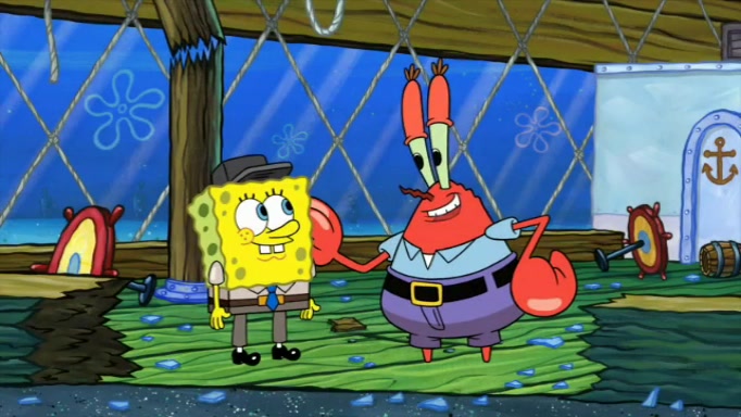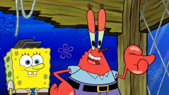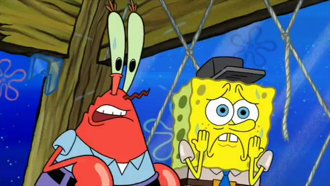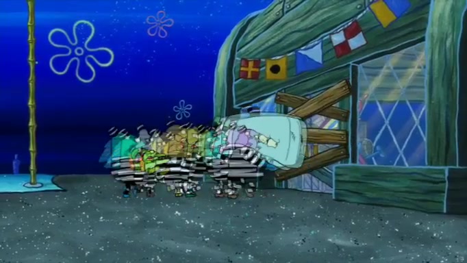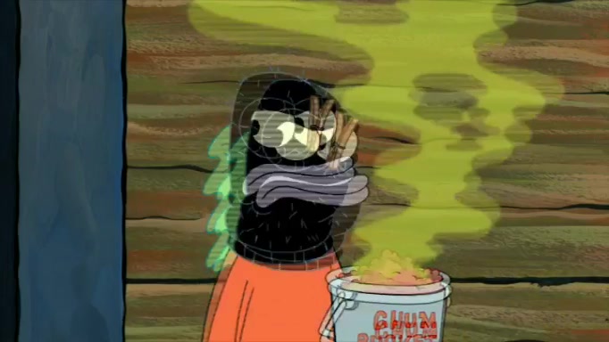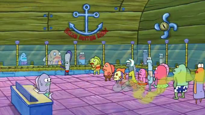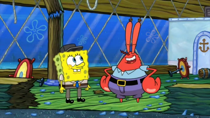 Outside, Plankton is explaining to his Cellmates how to escape from the Bikini Bottom Jail. The Cellmates have ideas but Plankton tells them they need better ones. The Whale Cellmate says they could break out only if they had chum and the other Cellmates agree. Plankton is surprised with the Cellmates saying how chum is great for committing crimes. Plankton asks if chum is great for eating but the Cellmates don't think so. Plankton then agrees to make chum for the Cellmates and they all cheer. Inside Plankton's jail cell, Plankton and his Cellmates are creating chum using different kinds of items. They successfully make the chum. SpongeBob overhears them and runs to the Krusty Krab to warn Mr. Krabs. At the Krusty Krab, SpongeBob tells Mr. Krabs that Plankton is planning to break into the Krusty Krab with his Cellmates. Mr. Krabs insures SpongeBob that he will handle the problem.