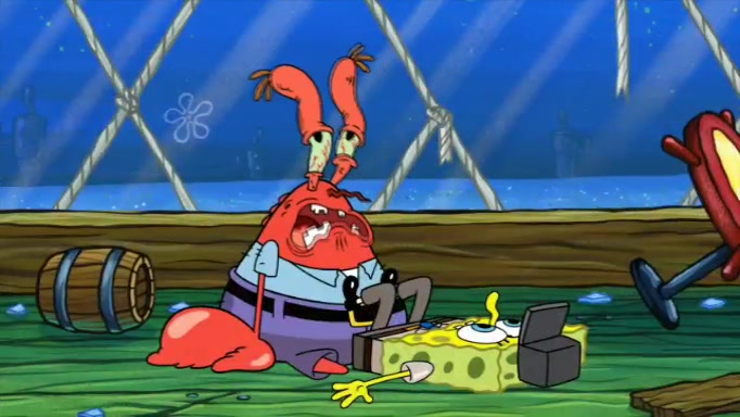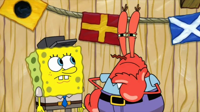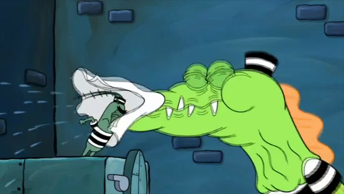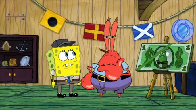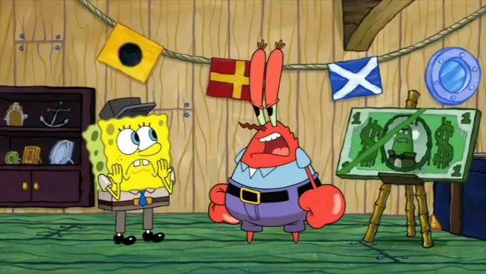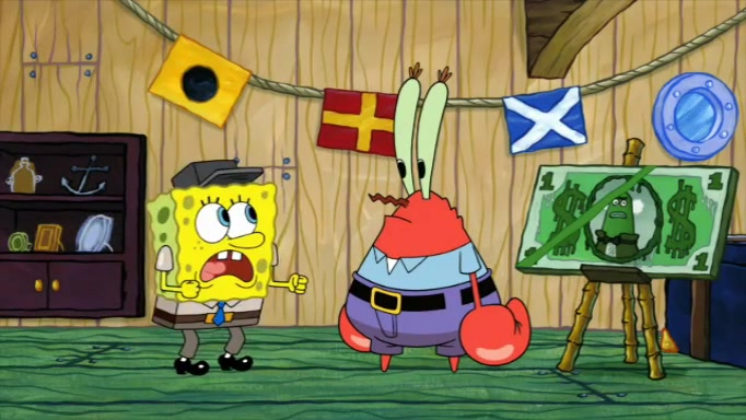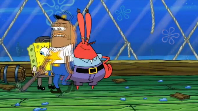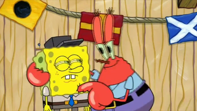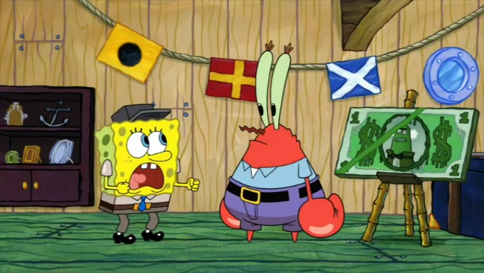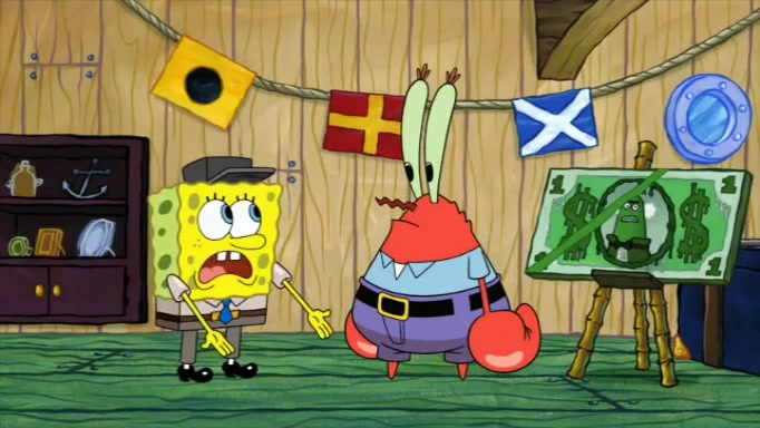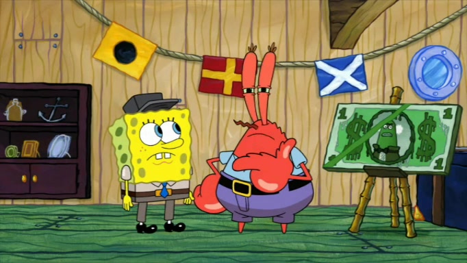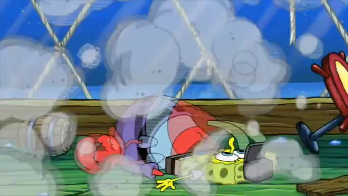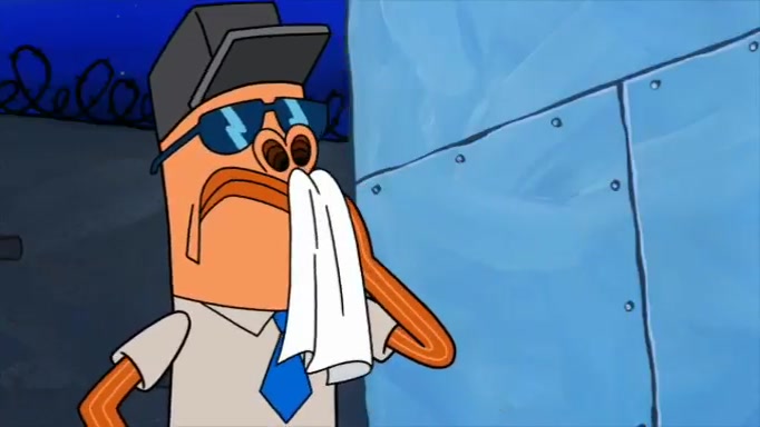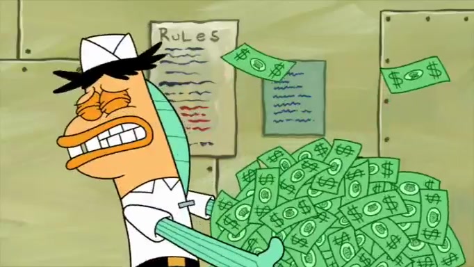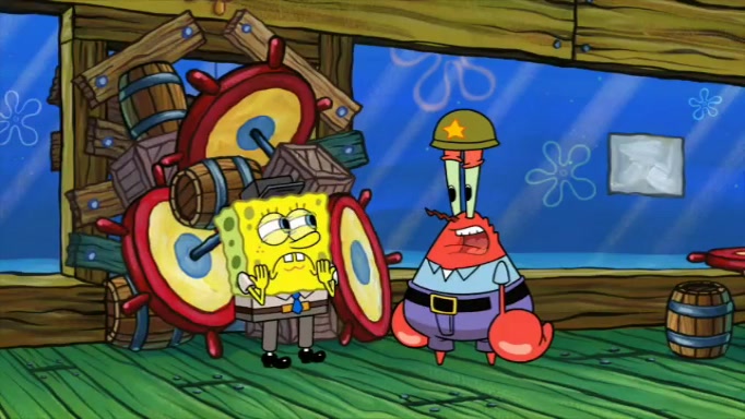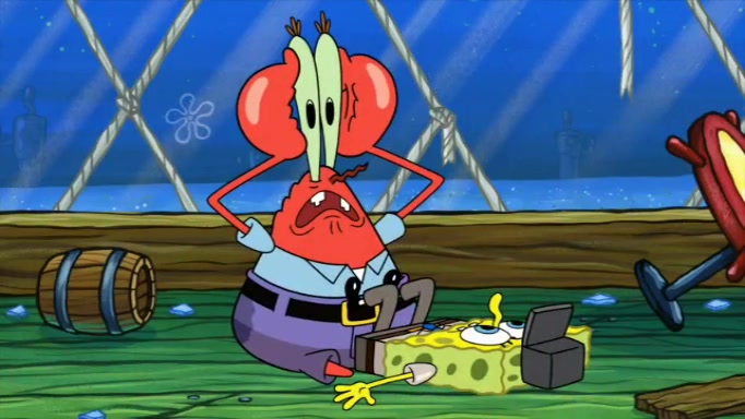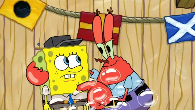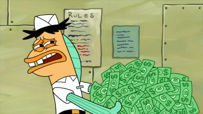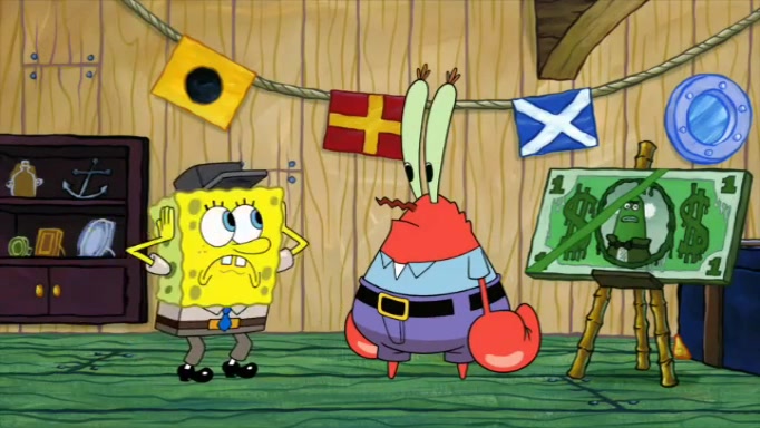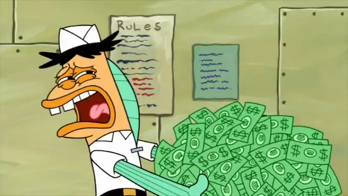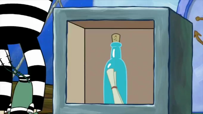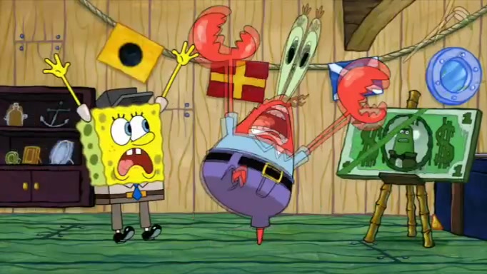 Outside, Plankton is explaining to his Cellmates how to escape from the Bikini Bottom Jail. The Cellmates have ideas but Plankton tells them they need better ones. The Whale Cellmate says they could break out only if they had chum and the other Cellmates agree. Plankton is surprised with the Cellmates saying how chum is great for committing crimes. Plankton asks if chum is great for eating but the Cellmates don't think so. Plankton then agrees to make chum for the Cellmates and they all cheer. Inside Plankton's jail cell, Plankton and his Cellmates are creating chum using different kinds of items. They successfully make the chum. SpongeBob overhears them and runs to the Krusty Krab to warn Mr. Krabs. At the Krusty Krab, SpongeBob tells Mr. Krabs that Plankton is planning to break into the Krusty Krab with his Cellmates. Mr. Krabs insures SpongeBob that he will handle the problem.