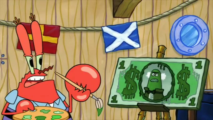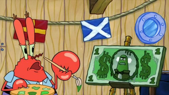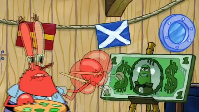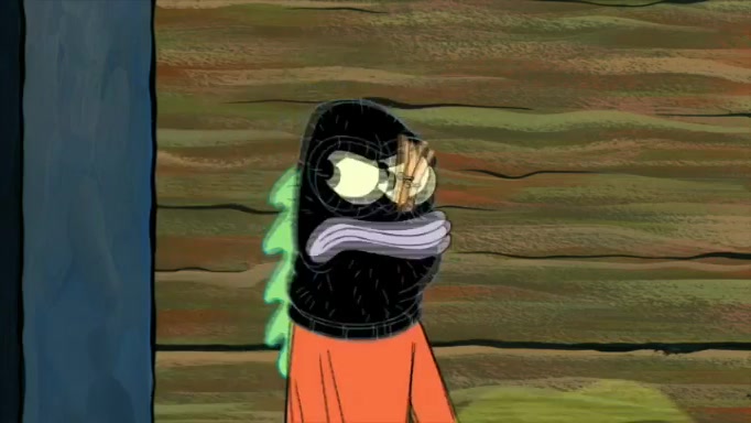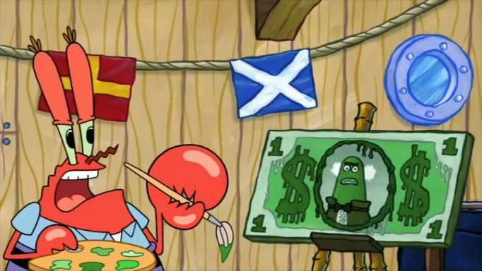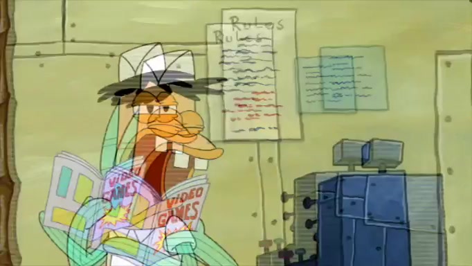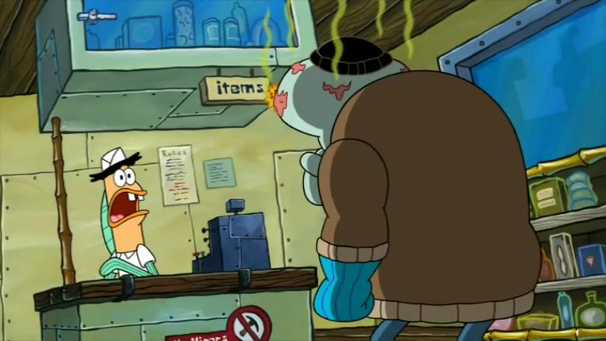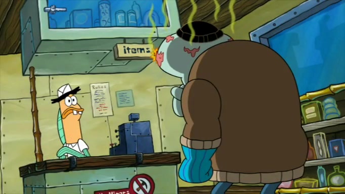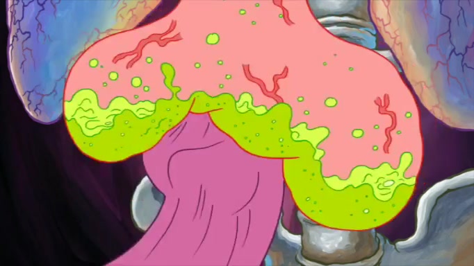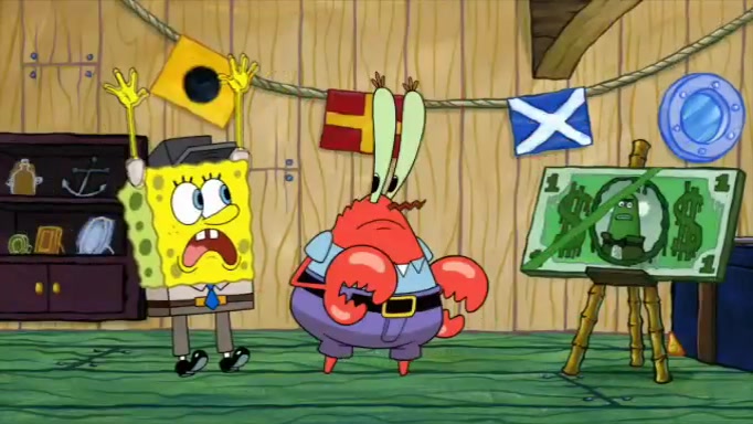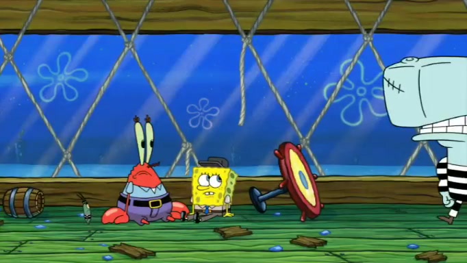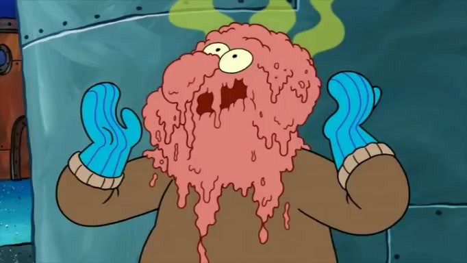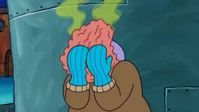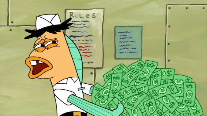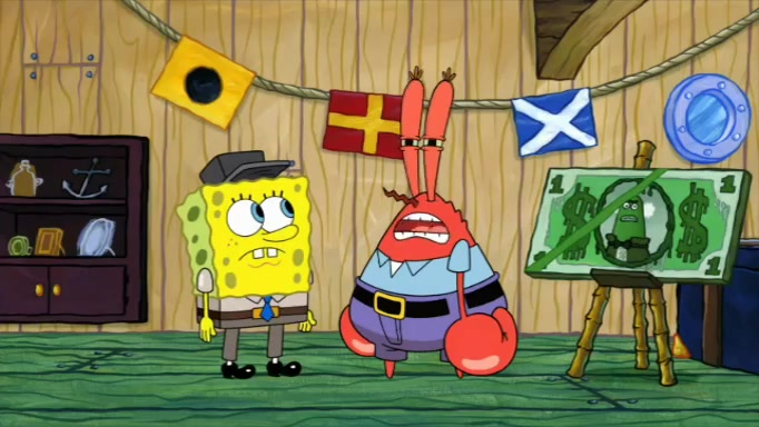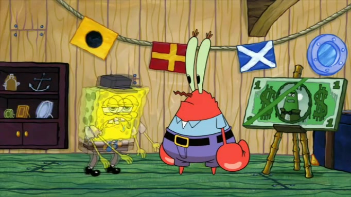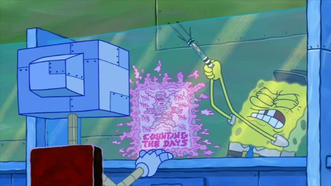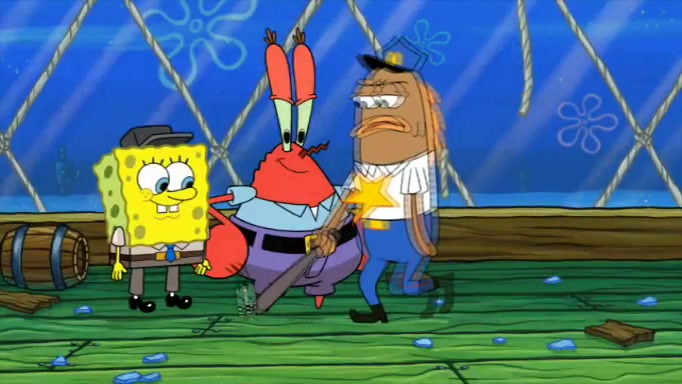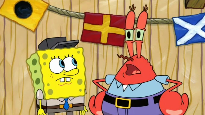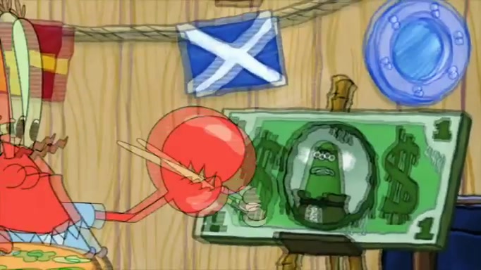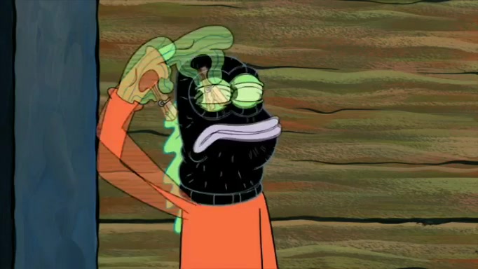 Outside, Plankton is explaining to his Cellmates how to escape from the Bikini Bottom Jail. The Cellmates have ideas but Plankton tells them they need better ones. The Whale Cellmate says they could break out only if they had chum and the other Cellmates agree. Plankton is surprised with the Cellmates saying how chum is great for committing crimes. Plankton asks if chum is great for eating but the Cellmates don't think so. Plankton then agrees to make chum for the Cellmates and they all cheer. Inside Plankton's jail cell, Plankton and his Cellmates are creating chum using different kinds of items. They successfully make the chum. SpongeBob overhears them and runs to the Krusty Krab to warn Mr. Krabs. At the Krusty Krab, SpongeBob tells Mr. Krabs that Plankton is planning to break into the Krusty Krab with his Cellmates. Mr. Krabs insures SpongeBob that he will handle the problem.