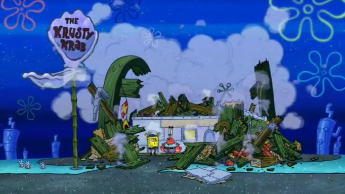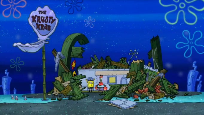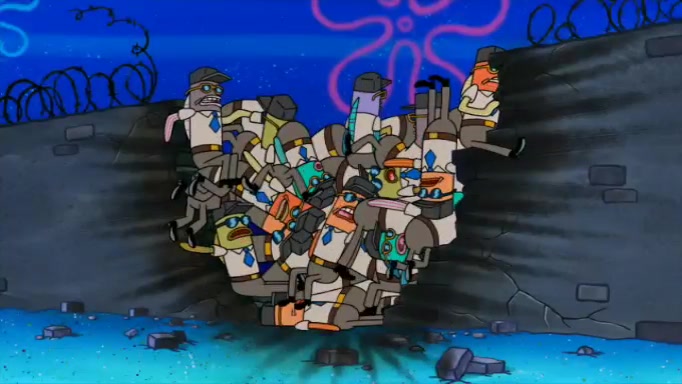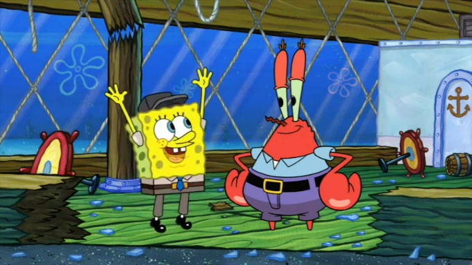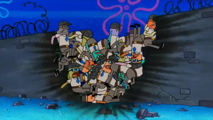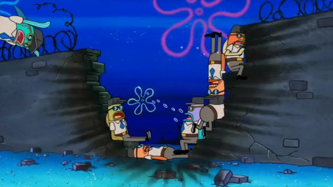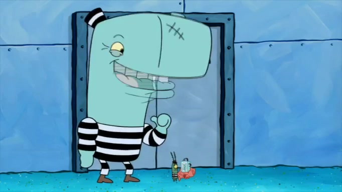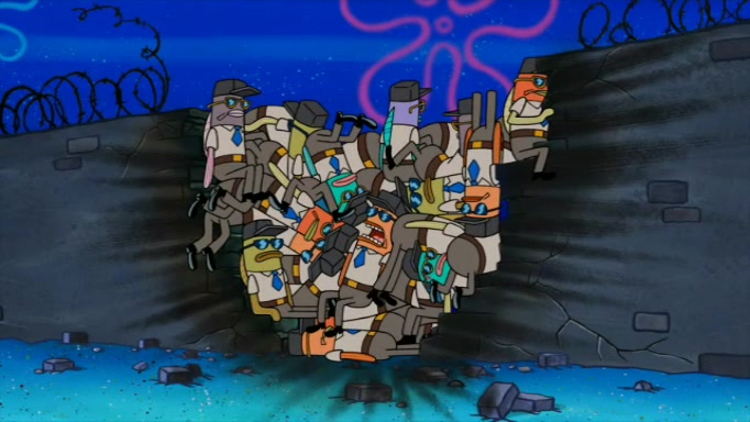 Back at Bikini Bottom Jail, a Prison Warden is talking to two of Plankton's Cellmates saying why they are out of their cells. The Purple Cellmate says that the Green Cellmate said the napkin smells like kelp berries. The Prison Warden smells the napkin and falls down, unconscious. The Purple and Green Cellmates bring the Prison Warden inside while Plankton arms himself with chum and a bomb. The Whale Cellmate then launches Plankton to the other side of the prison and Plankton plants the bomb on the wall. Plankton gets spotted but the bomb goes off and blows a giant hole in the wall. However, the Prison Wardens then start filling up the wall, making it impossible for Plankton to get though. However, they get stuck and Plankton uses the opportunity to lead all of his Cellmates out through the front door. At the Krusty Krab, SpongeBob notices Plankton and all of his Cellmates preparing to invade the Krusty Krab. Mr. Krabs says that they are ready for them while Plankton yells out to his Cellmates to bring him the formula. Plankton's Cellmates begin breaking down the door using the Whale Cellmate as a battering ram and they successfully break in. The Whale Prisoner then opens the safe with Mr. Krabs urging Plankton not to get it but Plankton doesn't listen. As Plankton heads toward the "formula," the curtain rises and the entire Bikini Bottom Police Force emerge from it. Mr. Krabs revealed that he knew of Plankton's attempted break in and had enough time to hide the entire Police Force in his safe. The Police Force then take Plankton and the rest of his Cellmates back to jail. SpongeBob congratulates Mr. Krabs on how he always wins, but then the entire Krusty Krab falls apart. The episode ends when Mr. Krabs replies " Yep, I'm a winner."