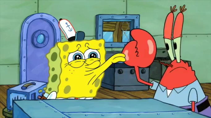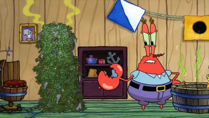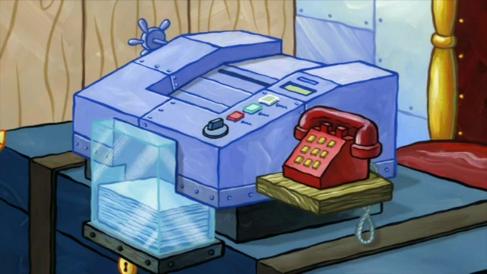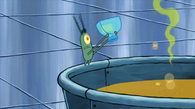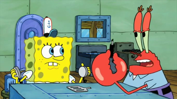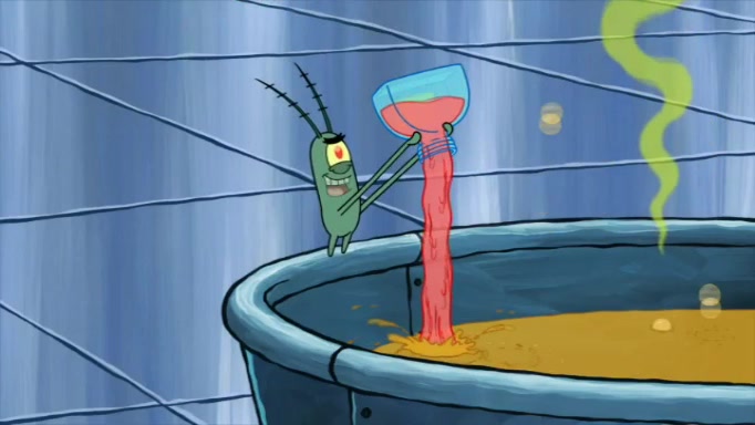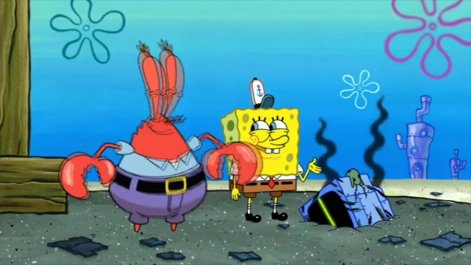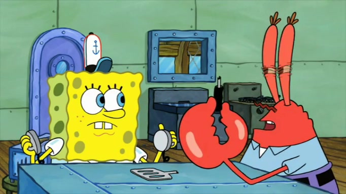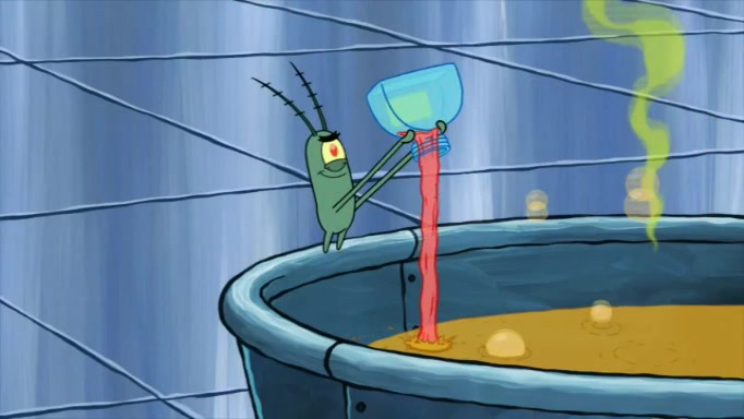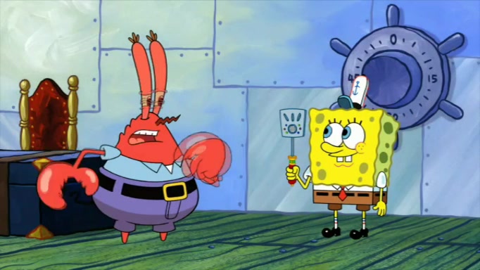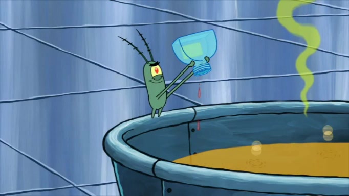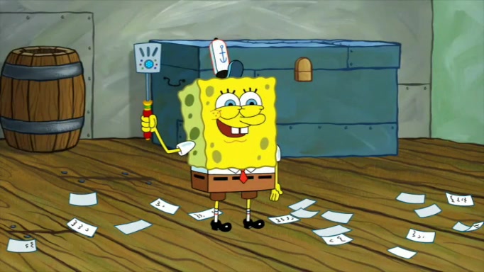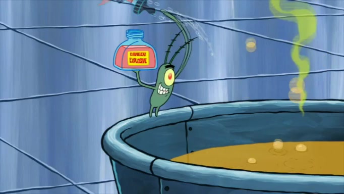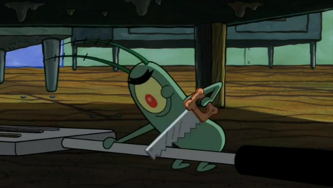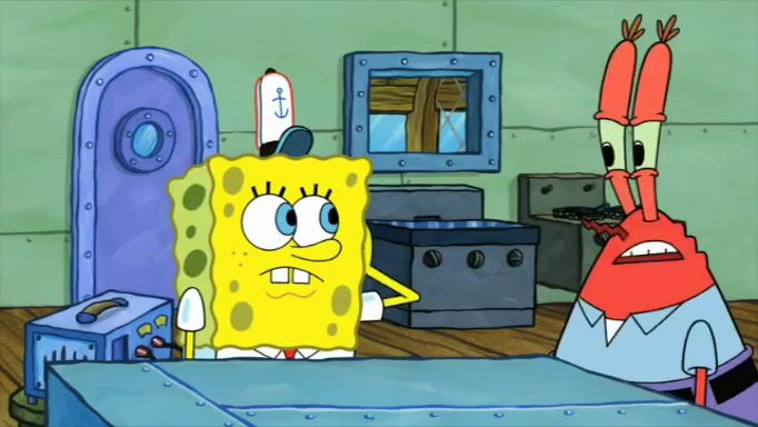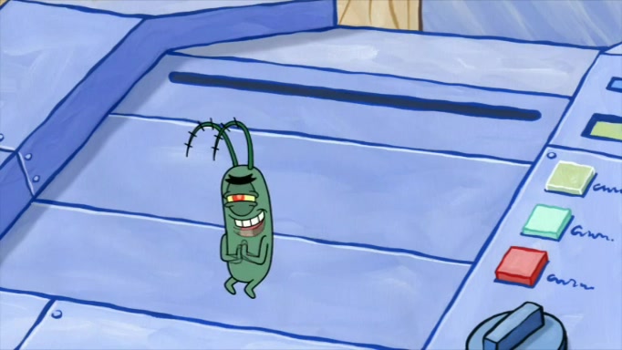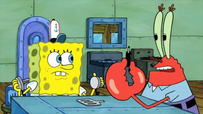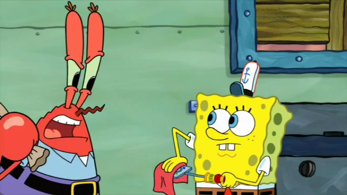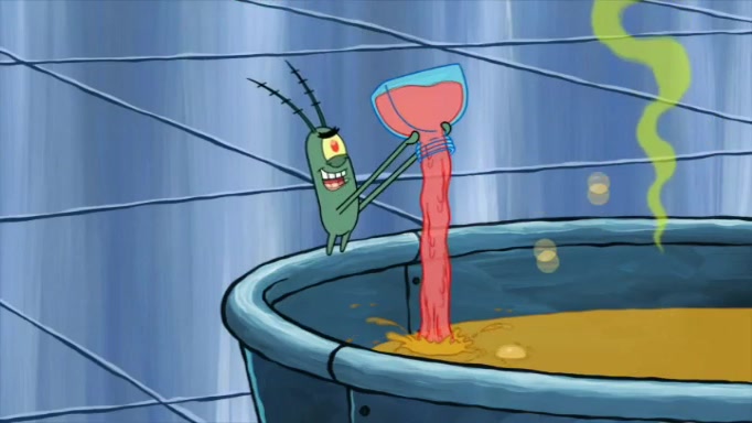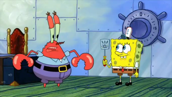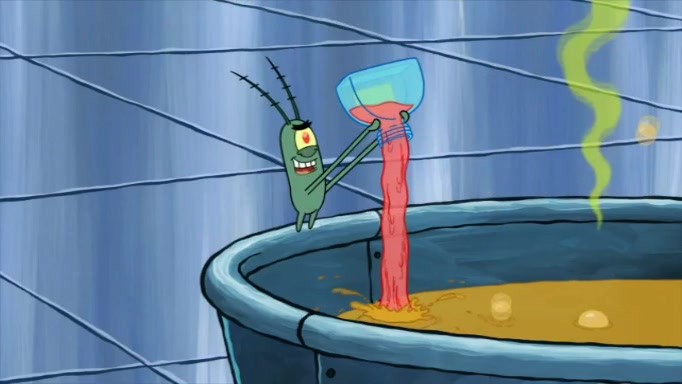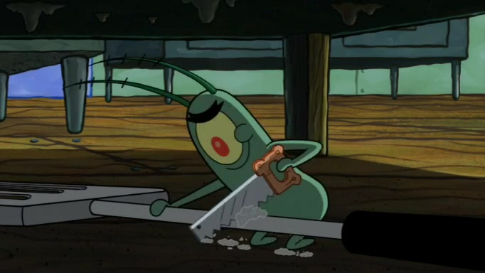 Mr. Krabs and SpongeBob are cleaning out their customers' money. SpongeBob and Mr. Krabs create a formula designed to clean the dirty money they receive. Unfortunately, SpongeBob uses too much of an explosive ingredient, which causes their faces to be blown off. SpongeBob notices a fax coming but Mr. Krabs says they will get it later. It is none other than Plankton who faxed himself into the Krusty Krab saying the first phase of his plan is complete. Plankton then starts "Phase 2" by sawing a bit of SpongeBob's spatula then places it beside the grill. SpongeBob then comes along and tries to flip a Krabby Patty but his spatula breaks in half. He tries everything to fix it but Mr. Krabs just tells SpongeBob to get a new spatula and he leaves.