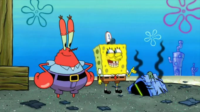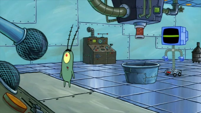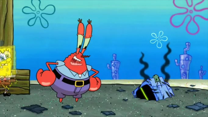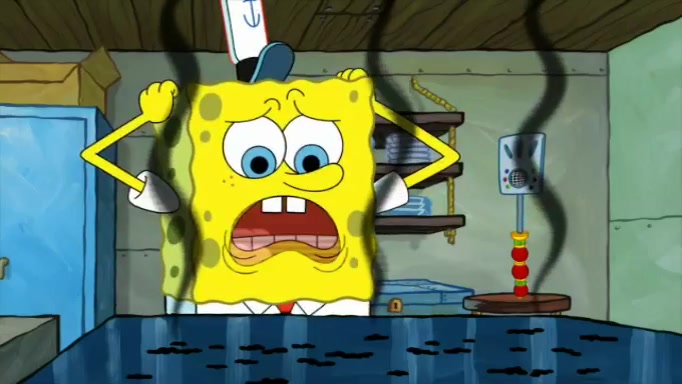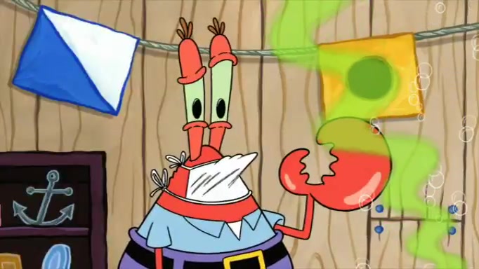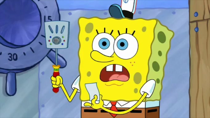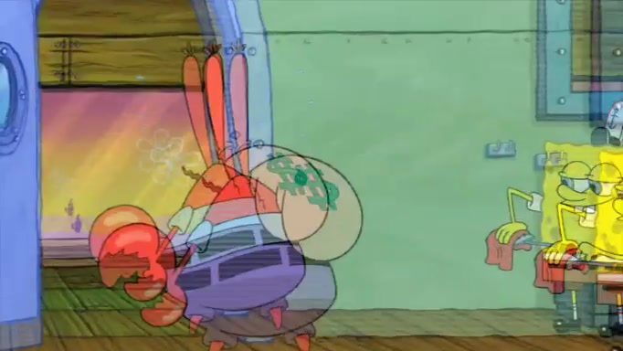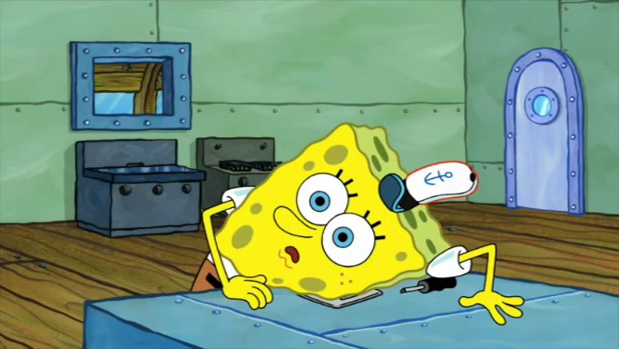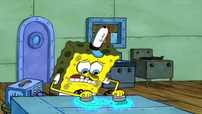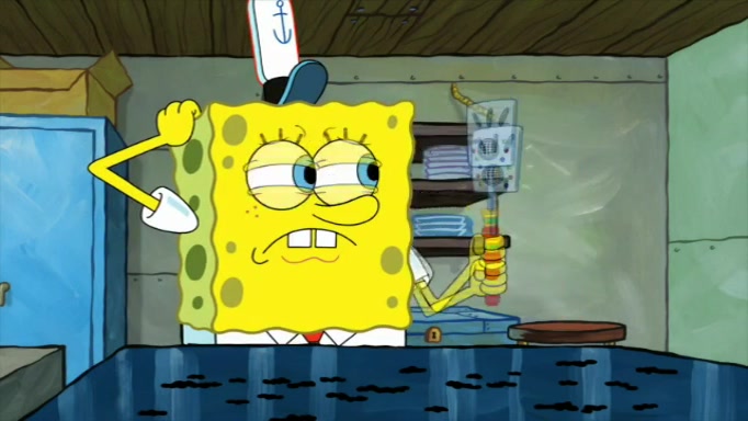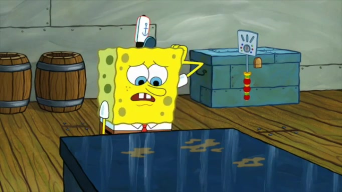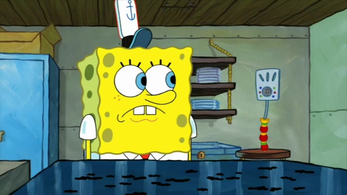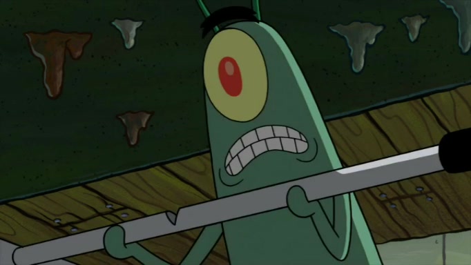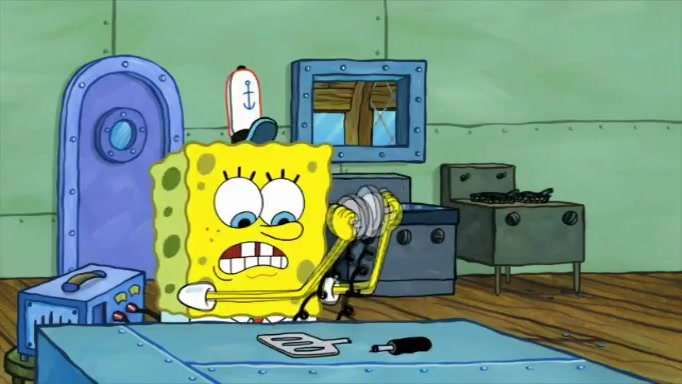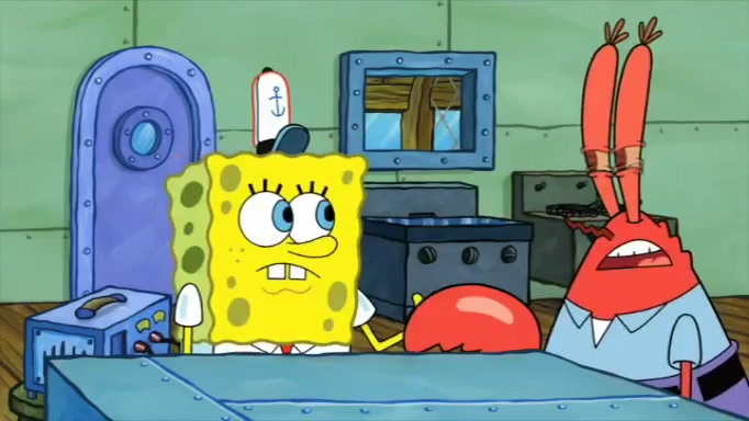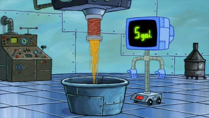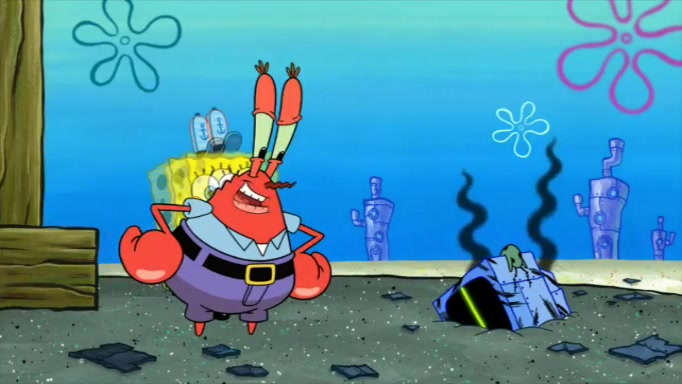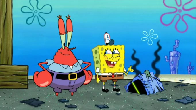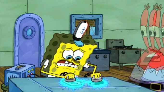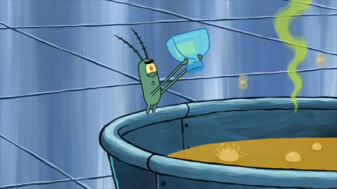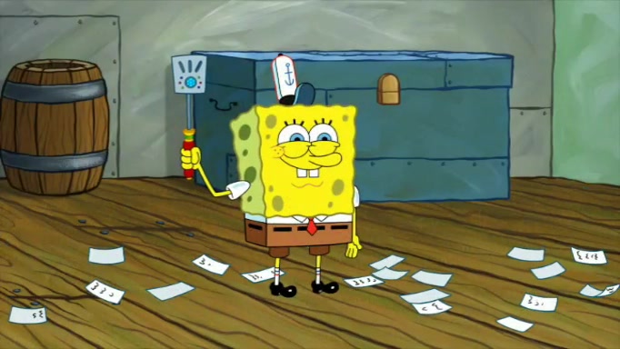 Mr. Krabs and SpongeBob are cleaning out their customers' money. SpongeBob and Mr. Krabs create a formula designed to clean the dirty money they receive. Unfortunately, SpongeBob uses too much of an explosive ingredient, which causes their faces to be blown off. SpongeBob notices a fax coming but Mr. Krabs says they will get it later. It is none other than Plankton who faxed himself into the Krusty Krab saying the first phase of his plan is complete. Plankton then starts "Phase 2" by sawing a bit of SpongeBob's spatula then places it beside the grill. SpongeBob then comes along and tries to flip a Krabby Patty but his spatula breaks in half. He tries everything to fix it but Mr. Krabs just tells SpongeBob to get a new spatula and he leaves.