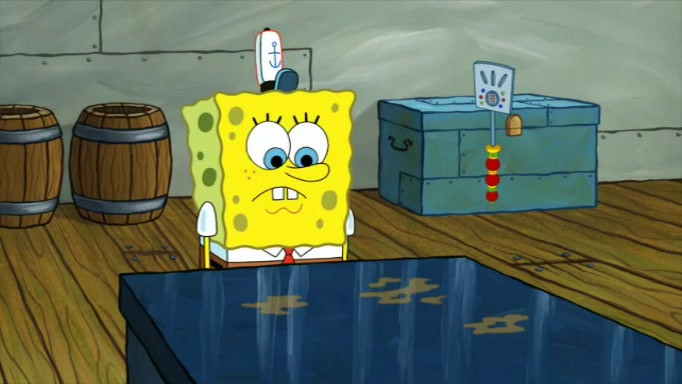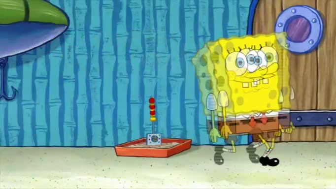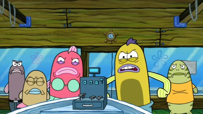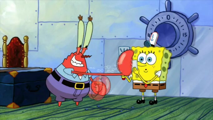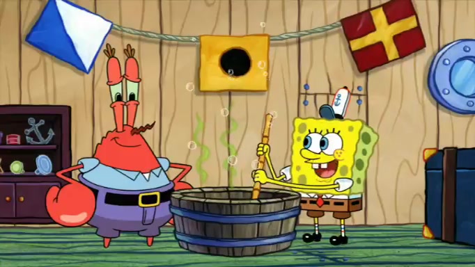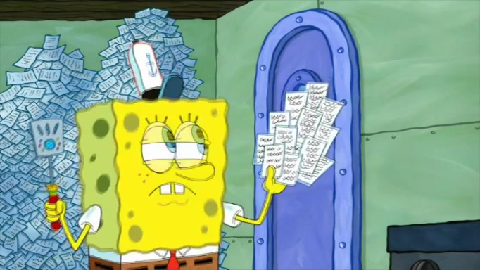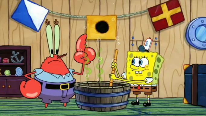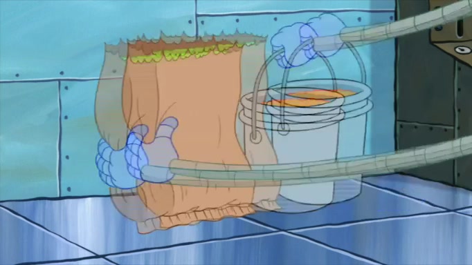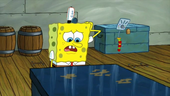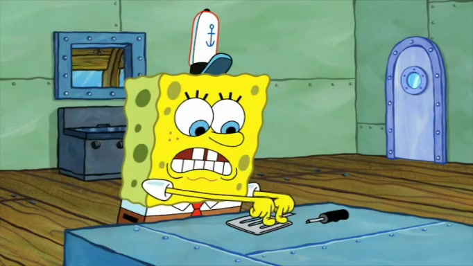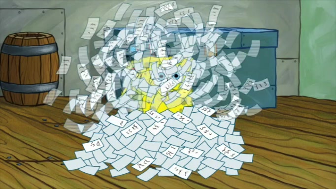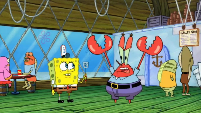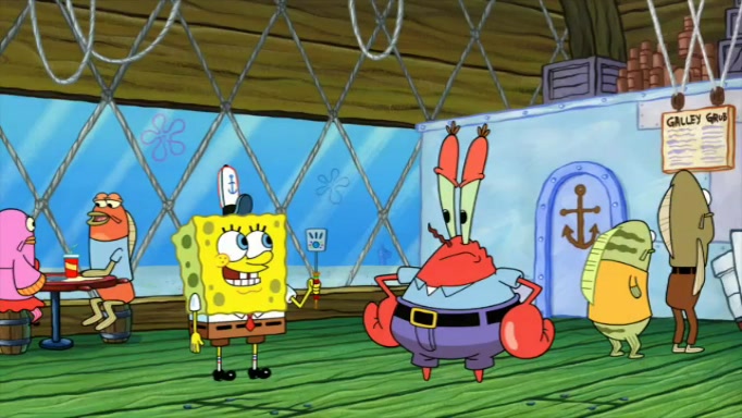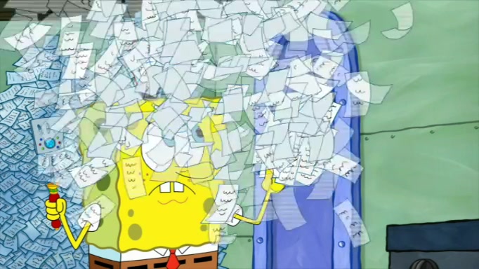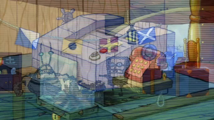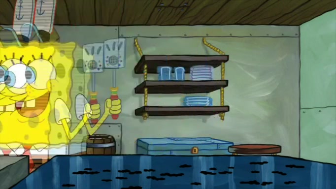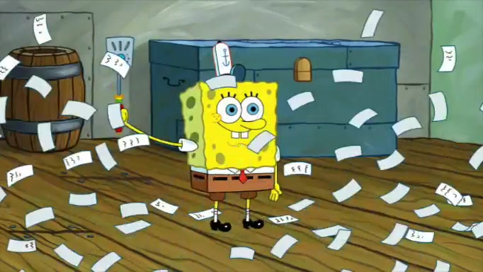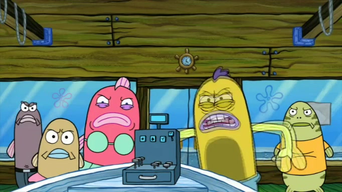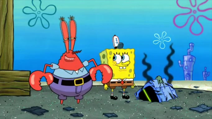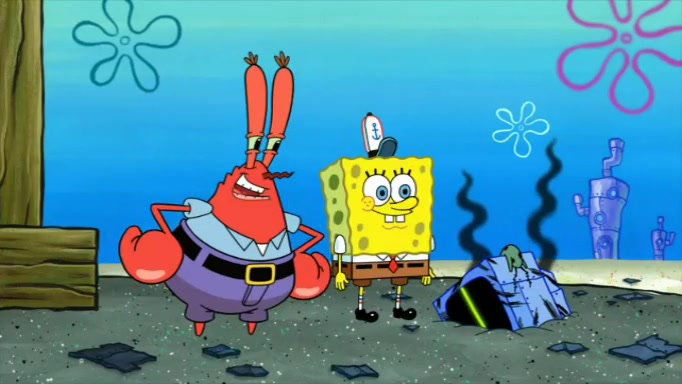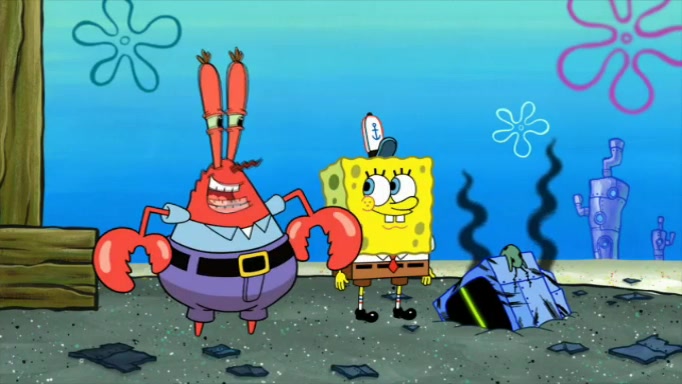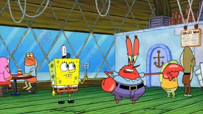 Mr. Krabs and SpongeBob are cleaning out their customers' money. SpongeBob and Mr. Krabs create a formula designed to clean the dirty money they receive. Unfortunately, SpongeBob uses too much of an explosive ingredient, which causes their faces to be blown off. SpongeBob notices a fax coming but Mr. Krabs says they will get it later. It is none other than Plankton who faxed himself into the Krusty Krab saying the first phase of his plan is complete. Plankton then starts "Phase 2" by sawing a bit of SpongeBob's spatula then places it beside the grill. SpongeBob then comes along and tries to flip a Krabby Patty but his spatula breaks in half. He tries everything to fix it but Mr. Krabs just tells SpongeBob to get a new spatula and he leaves.
