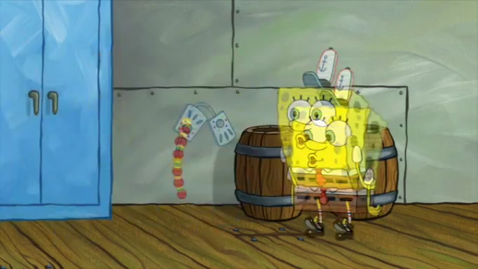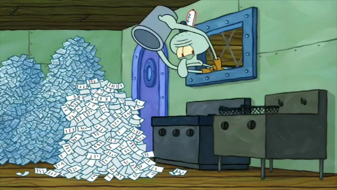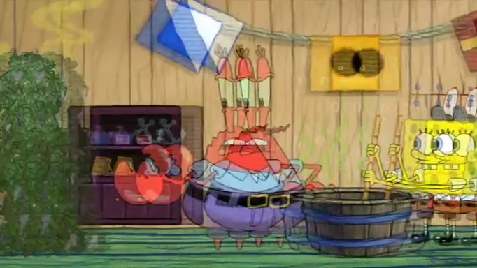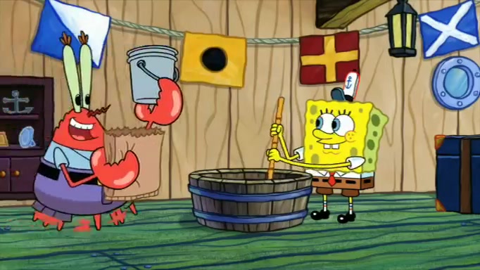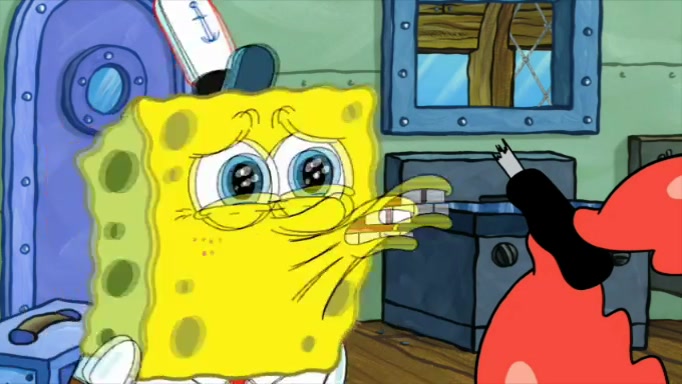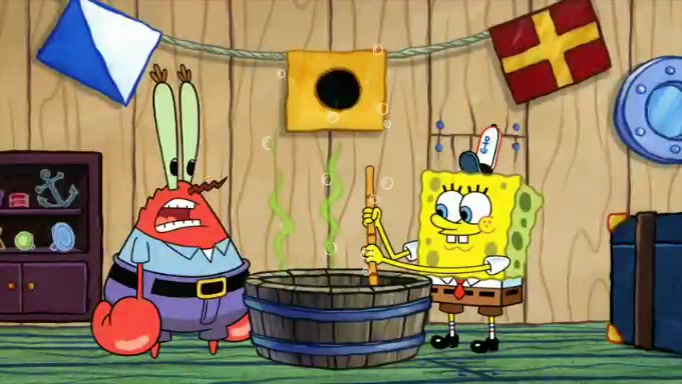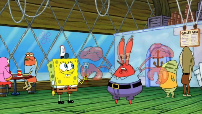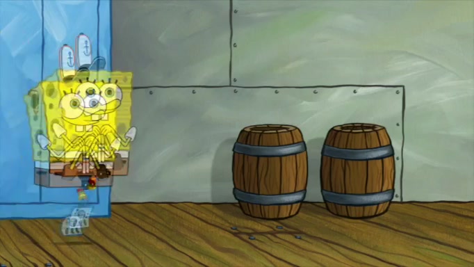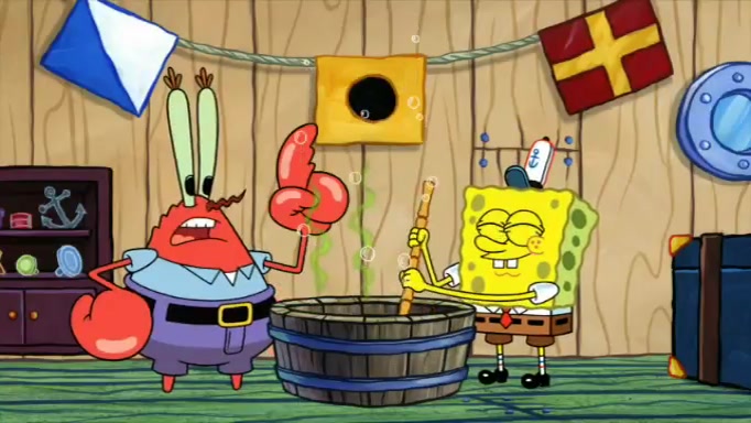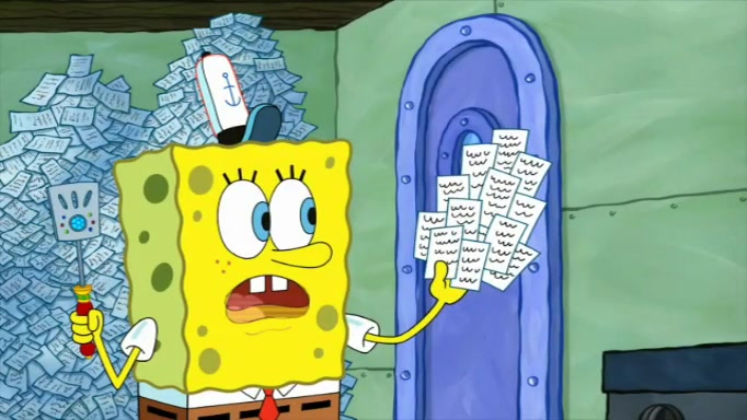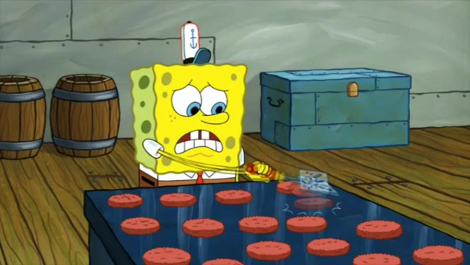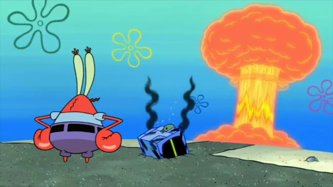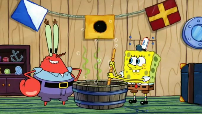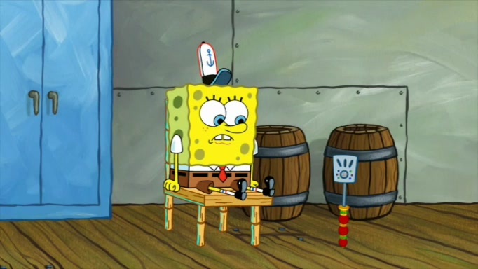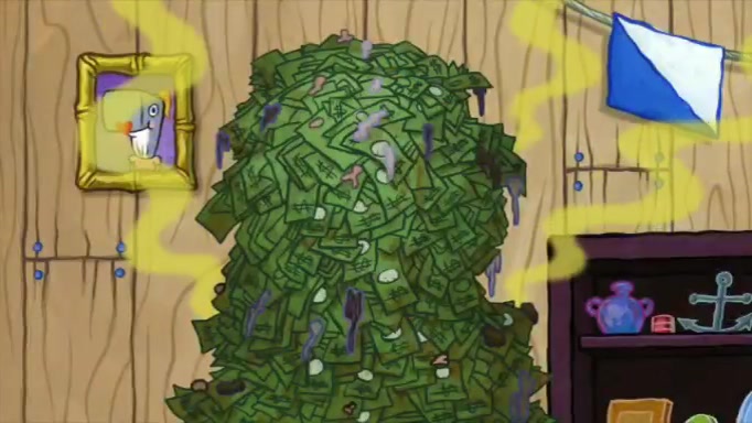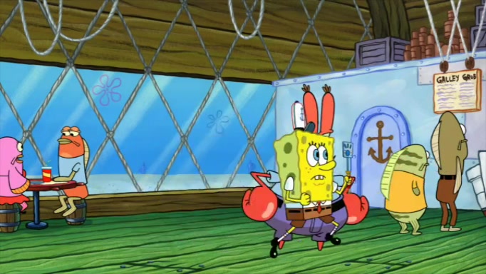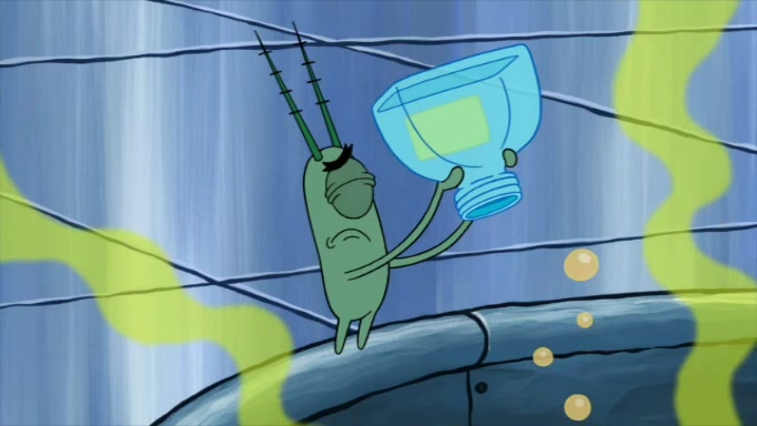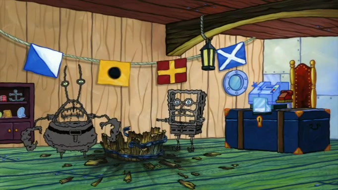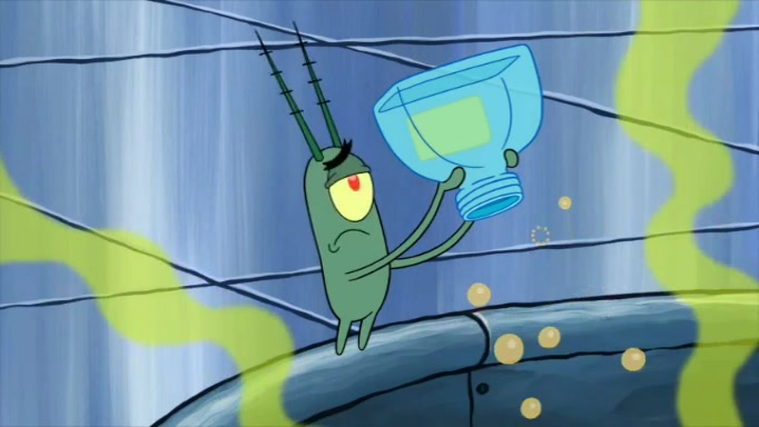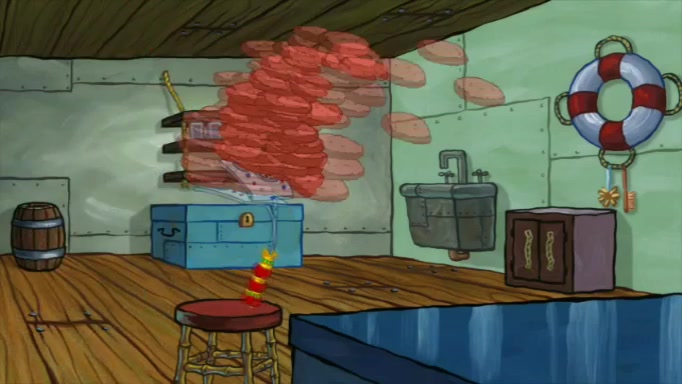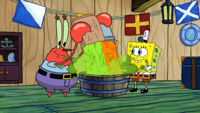 Mr. Krabs and SpongeBob are cleaning out their customers' money. SpongeBob and Mr. Krabs create a formula designed to clean the dirty money they receive. Unfortunately, SpongeBob uses too much of an explosive ingredient, which causes their faces to be blown off. SpongeBob notices a fax coming but Mr. Krabs says they will get it later. It is none other than Plankton who faxed himself into the Krusty Krab saying the first phase of his plan is complete. Plankton then starts "Phase 2" by sawing a bit of SpongeBob's spatula then places it beside the grill. SpongeBob then comes along and tries to flip a Krabby Patty but his spatula breaks in half. He tries everything to fix it but Mr. Krabs just tells SpongeBob to get a new spatula and he leaves.