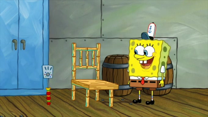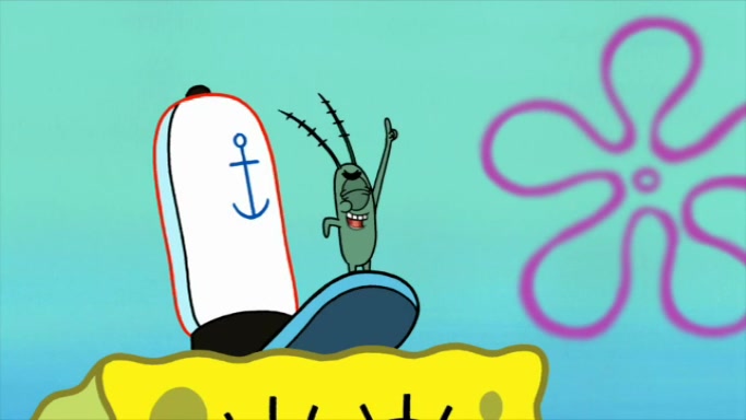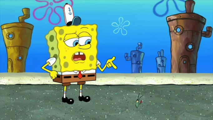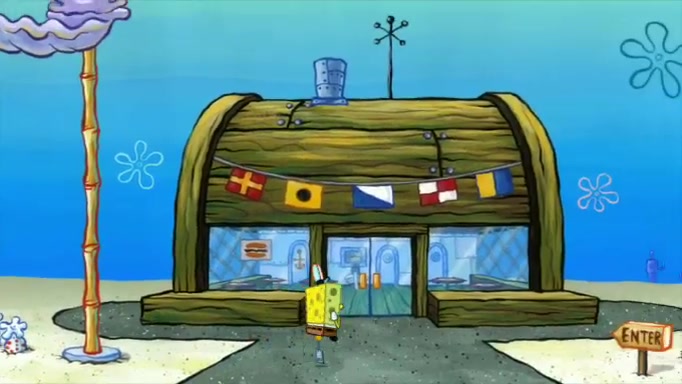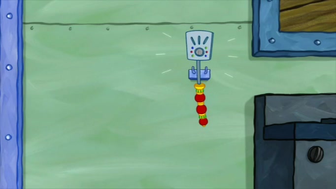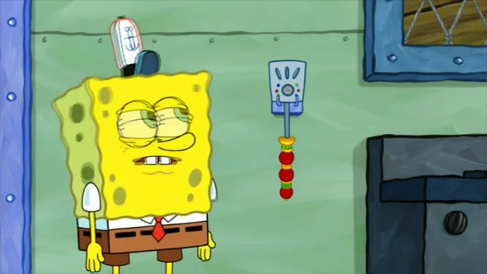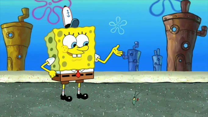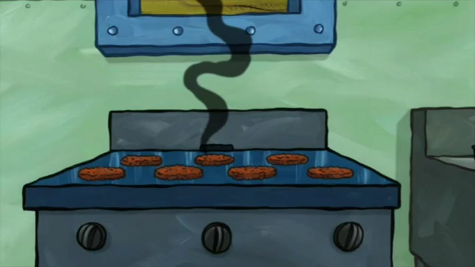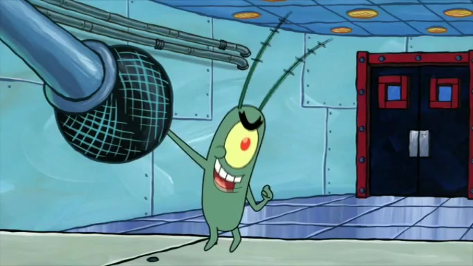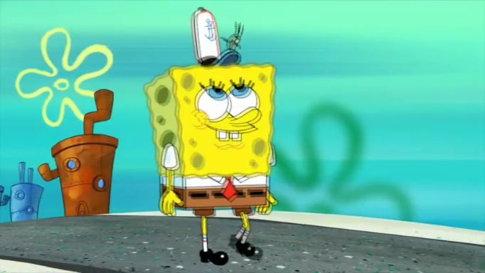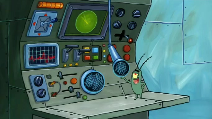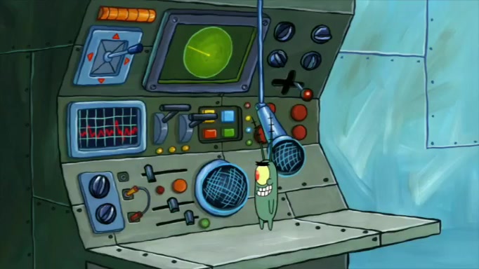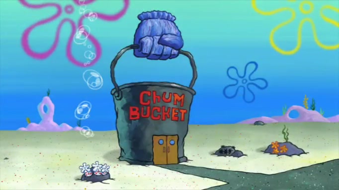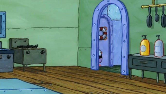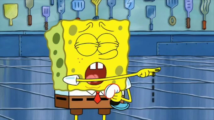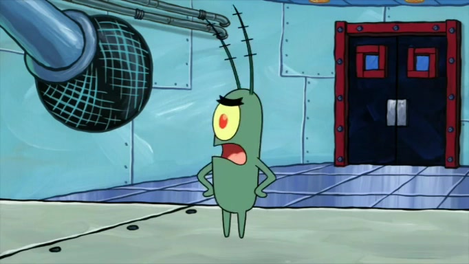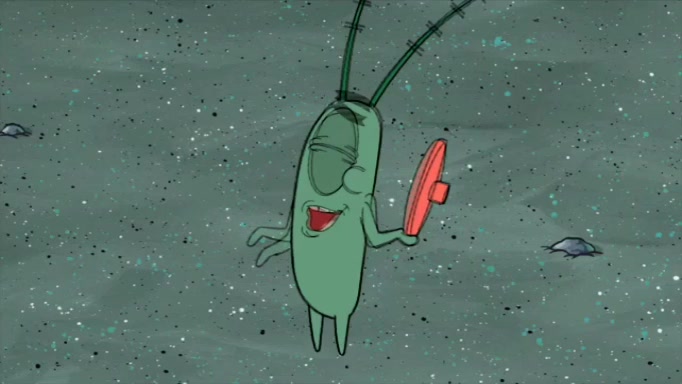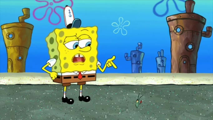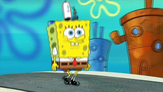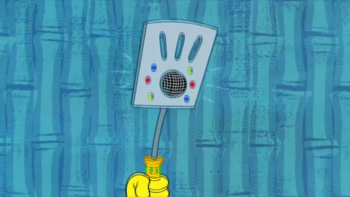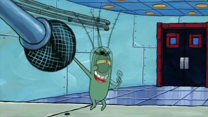 The scene changes to Harvey's Spatula Emporium where Plankton awaits SpongeBob's arrival. He then begins "Phase 3" by flying out of the store with his jetpack and flies into SpongeBob. SpongeBob wants to know what is Plankton doing at the Emporium and Plankton responds to holding an object saying SpongeBob doesn't know what it is. SpongeBob successfully identifies the part as a handle cap for a vintage spatula and Plankton is amazed. Plankton then offers SpongeBob his special own spatula with "magical powers" which SpongeBob quickly agrees. They arrive at the Chum Bucket where Plankton shows off a room full of spatulas and introduces SpongeBob to the Majestic Sizzlemaster. SpongeBob is excited and takes his new spatula out of the Chum Bucket. Plankton starts "Phase 4" with Karen questioning on how many phases he has in his plan. Plankton then heads into the control room with Karen saying that it's enough to gain SpongeBob's trust and steal the Krabby Patty Secret Formula. Plankton then turns on the spatula and the scene changes to SpongeBob showing off the Majestic Sizzlemaster to Mr. Krabs. Mr. Krabs just tells SpongeBob to get back to work and SpongeBob heads into the kitchen with the Sizzlemaster. SpongeBob is about to handle all of the orders coming in and the Sizzlemaster soon starts talking not knowing it's Plankton talking through the other end. SpongeBob is confused trying not to believe the Sizzlemaster is talking but Squidward shouts out to him saying the customers are getting upset. SpongeBob starts to flip the Krabby Patties but the Sizzlemaster tells SpongeBob that there is a faster way in doing that and it extends it's head flipping four Patties at the same time. SpongeBob is amazed but still says that they are a long way from completing all of the orders and starts alternating between putting condiments on the buns and flipping the Krabby Patties. The Sizzlemaster (Plankton) tells SpongeBob that it will flip the patties while he handles the condiments. SpongeBob agrees but says he will handle the grill saying he doesn't trust anybody with it.