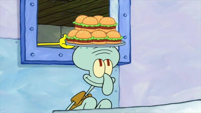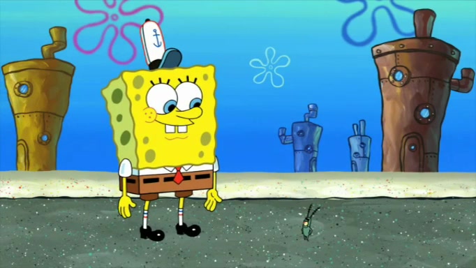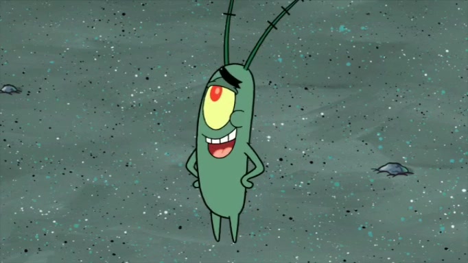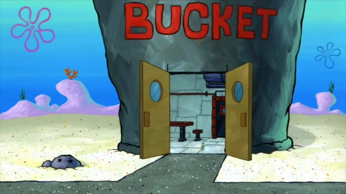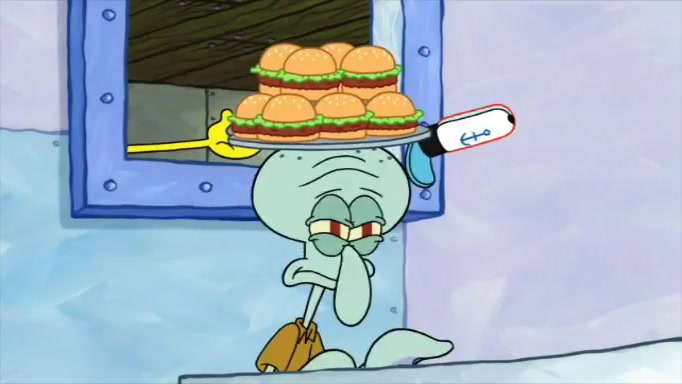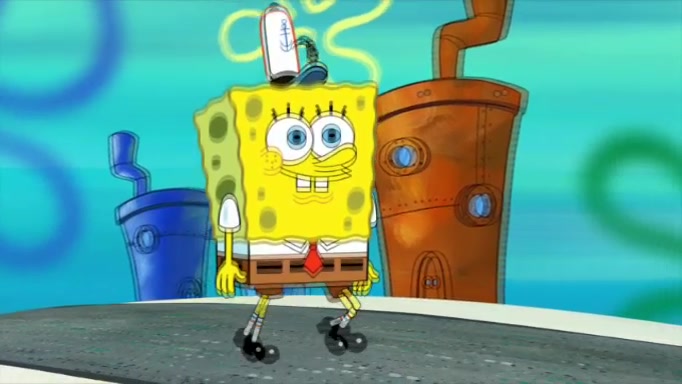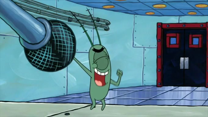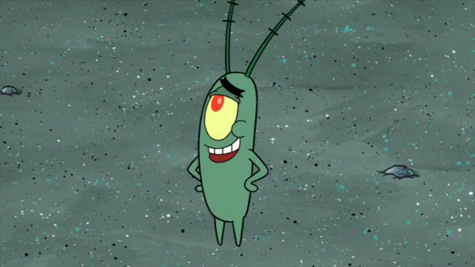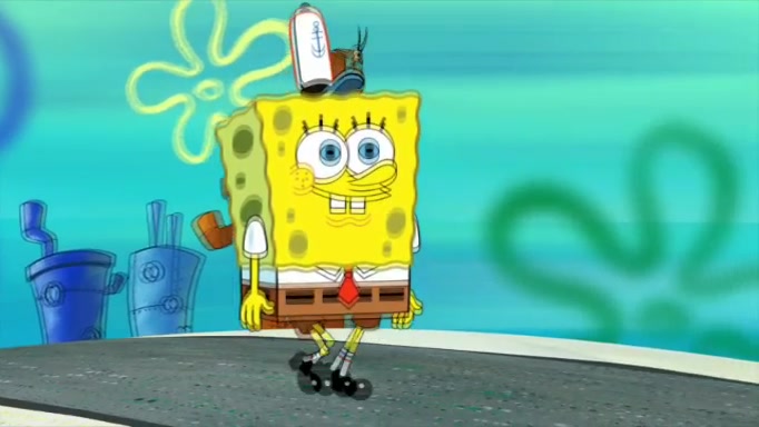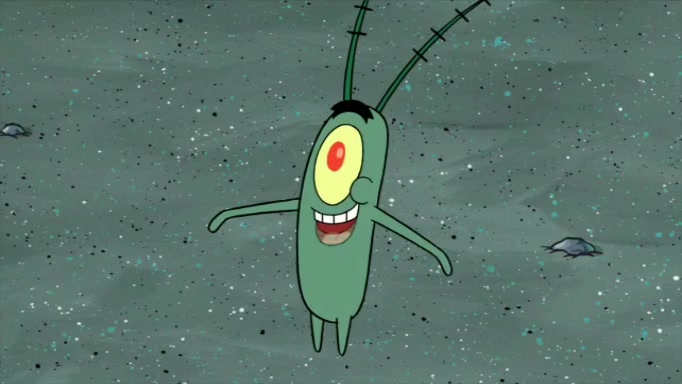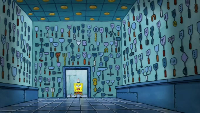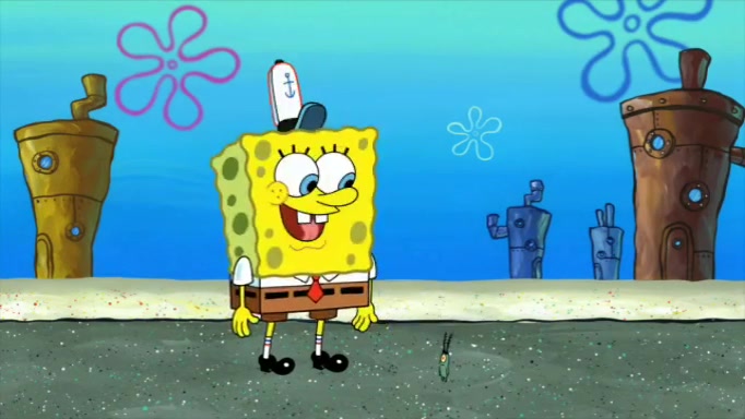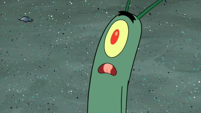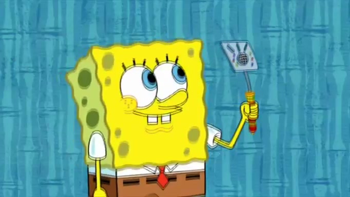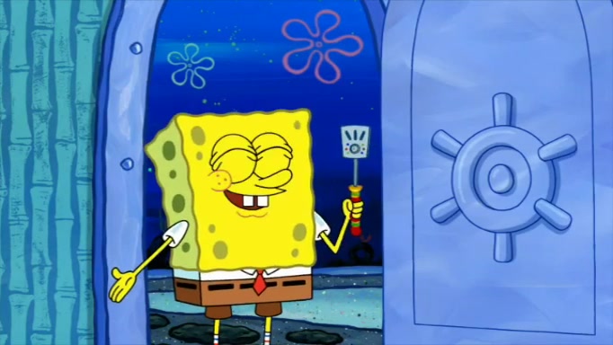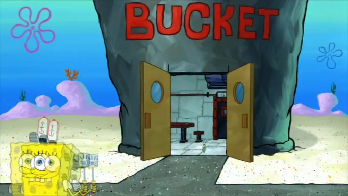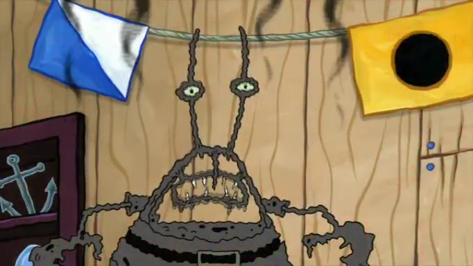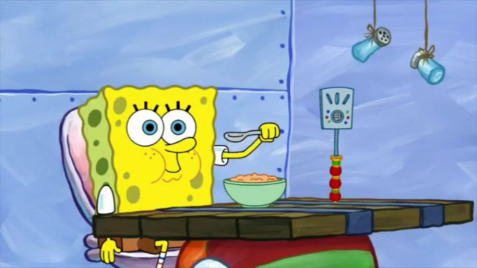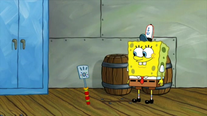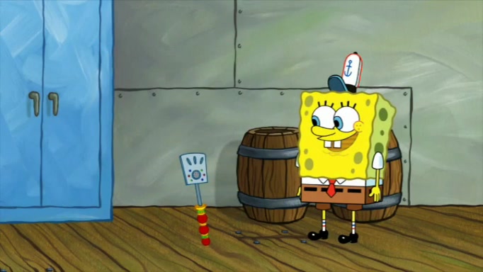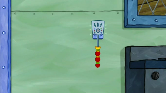 The scene changes to Harvey's Spatula Emporium where Plankton awaits SpongeBob's arrival. He then begins "Phase 3" by flying out of the store with his jetpack and flies into SpongeBob. SpongeBob wants to know what is Plankton doing at the Emporium and Plankton responds to holding an object saying SpongeBob doesn't know what it is. SpongeBob successfully identifies the part as a handle cap for a vintage spatula and Plankton is amazed. Plankton then offers SpongeBob his special own spatula with "magical powers" which SpongeBob quickly agrees. They arrive at the Chum Bucket where Plankton shows off a room full of spatulas and introduces SpongeBob to the Majestic Sizzlemaster. SpongeBob is excited and takes his new spatula out of the Chum Bucket. Plankton starts "Phase 4" with Karen questioning on how many phases he has in his plan. Plankton then heads into the control room with Karen saying that it's enough to gain SpongeBob's trust and steal the Krabby Patty Secret Formula. Plankton then turns on the spatula and the scene changes to SpongeBob showing off the Majestic Sizzlemaster to Mr. Krabs. Mr. Krabs just tells SpongeBob to get back to work and SpongeBob heads into the kitchen with the Sizzlemaster. SpongeBob is about to handle all of the orders coming in and the Sizzlemaster soon starts talking not knowing it's Plankton talking through the other end. SpongeBob is confused trying not to believe the Sizzlemaster is talking but Squidward shouts out to him saying the customers are getting upset. SpongeBob starts to flip the Krabby Patties but the Sizzlemaster tells SpongeBob that there is a faster way in doing that and it extends it's head flipping four Patties at the same time. SpongeBob is amazed but still says that they are a long way from completing all of the orders and starts alternating between putting condiments on the buns and flipping the Krabby Patties. The Sizzlemaster (Plankton) tells SpongeBob that it will flip the patties while he handles the condiments. SpongeBob agrees but says he will handle the grill saying he doesn't trust anybody with it.