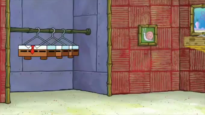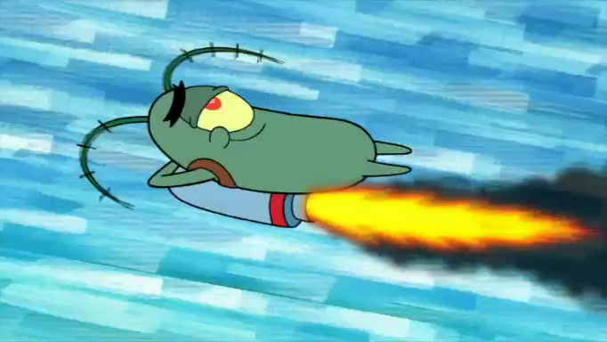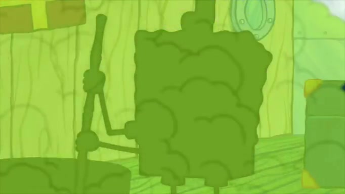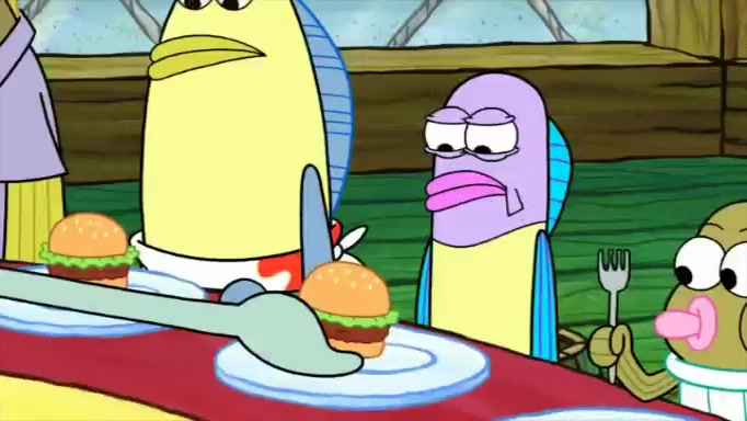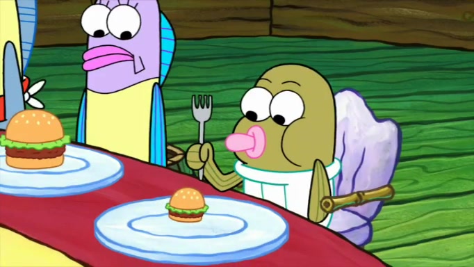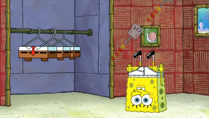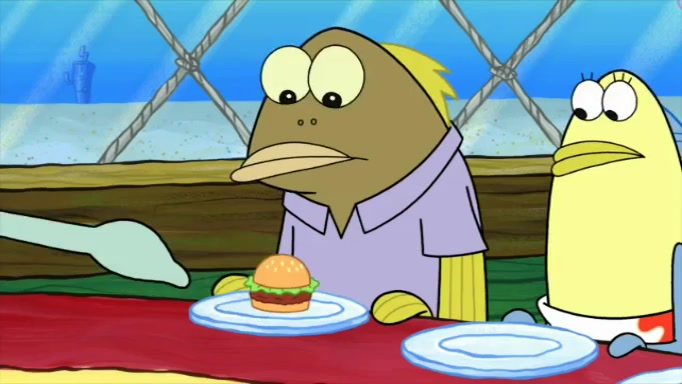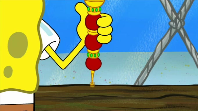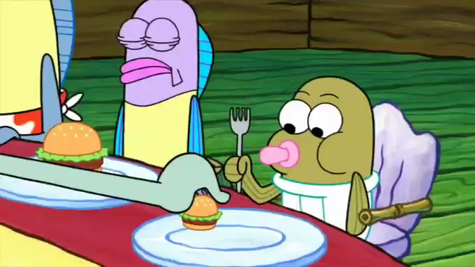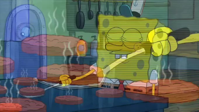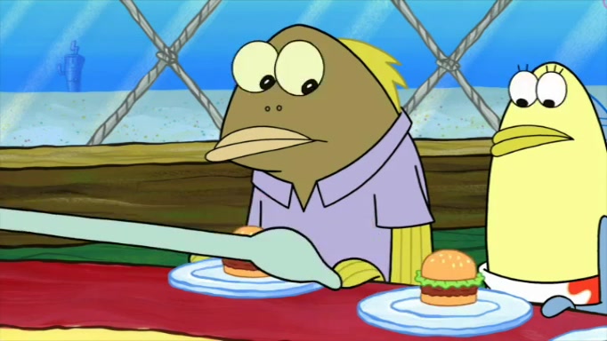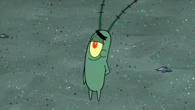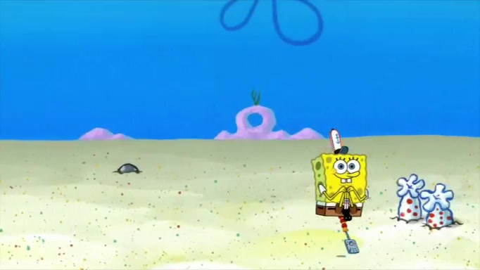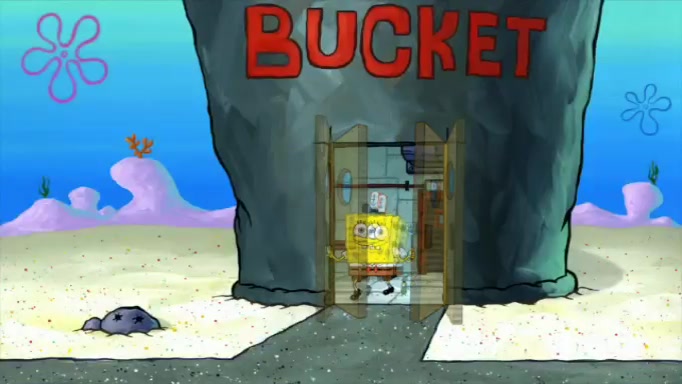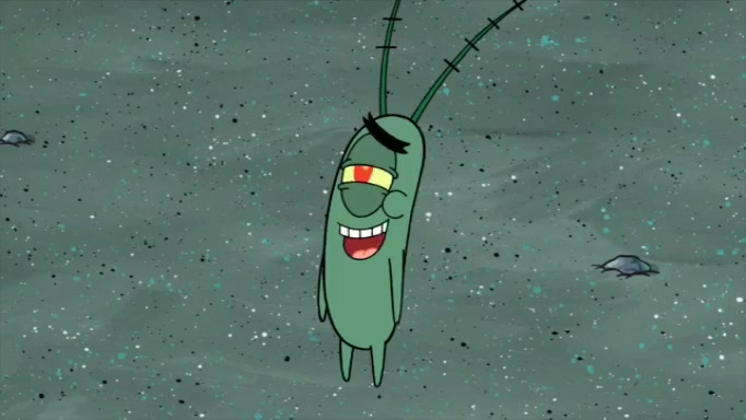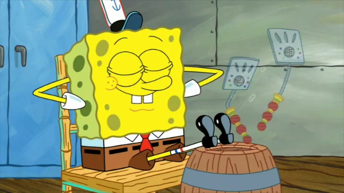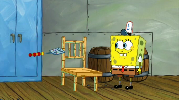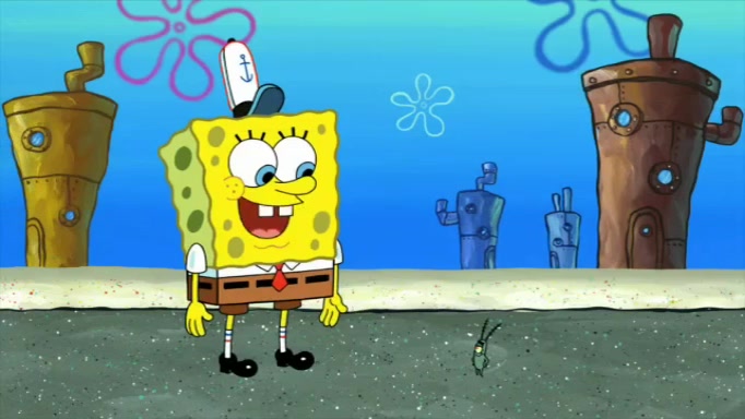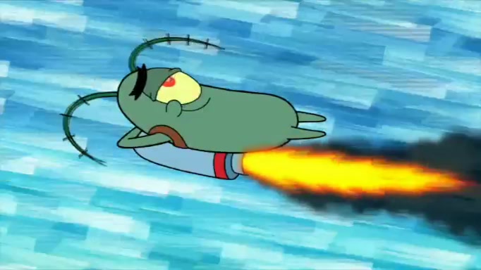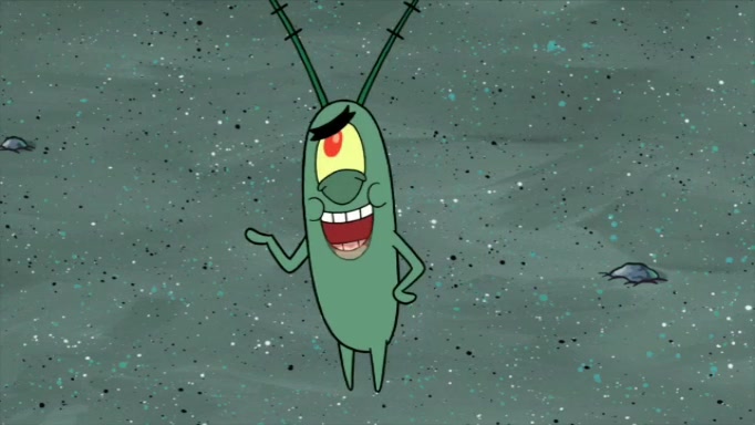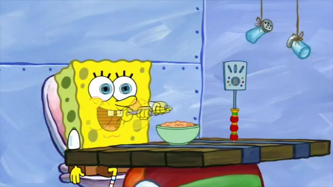 The scene changes to Harvey's Spatula Emporium where Plankton awaits SpongeBob's arrival. He then begins "Phase 3" by flying out of the store with his jetpack and flies into SpongeBob. SpongeBob wants to know what is Plankton doing at the Emporium and Plankton responds to holding an object saying SpongeBob doesn't know what it is. SpongeBob successfully identifies the part as a handle cap for a vintage spatula and Plankton is amazed. Plankton then offers SpongeBob his special own spatula with "magical powers" which SpongeBob quickly agrees. They arrive at the Chum Bucket where Plankton shows off a room full of spatulas and introduces SpongeBob to the Majestic Sizzlemaster. SpongeBob is excited and takes his new spatula out of the Chum Bucket. Plankton starts "Phase 4" with Karen questioning on how many phases he has in his plan. Plankton then heads into the control room with Karen saying that it's enough to gain SpongeBob's trust and steal the Krabby Patty Secret Formula. Plankton then turns on the spatula and the scene changes to SpongeBob showing off the Majestic Sizzlemaster to Mr. Krabs. Mr. Krabs just tells SpongeBob to get back to work and SpongeBob heads into the kitchen with the Sizzlemaster. SpongeBob is about to handle all of the orders coming in and the Sizzlemaster soon starts talking not knowing it's Plankton talking through the other end. SpongeBob is confused trying not to believe the Sizzlemaster is talking but Squidward shouts out to him saying the customers are getting upset. SpongeBob starts to flip the Krabby Patties but the Sizzlemaster tells SpongeBob that there is a faster way in doing that and it extends it's head flipping four Patties at the same time. SpongeBob is amazed but still says that they are a long way from completing all of the orders and starts alternating between putting condiments on the buns and flipping the Krabby Patties. The Sizzlemaster (Plankton) tells SpongeBob that it will flip the patties while he handles the condiments. SpongeBob agrees but says he will handle the grill saying he doesn't trust anybody with it.