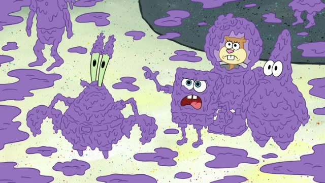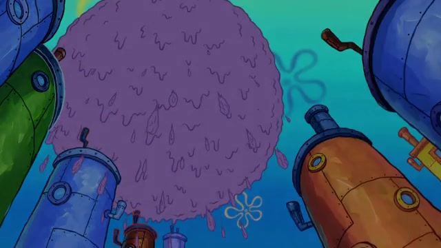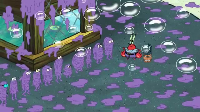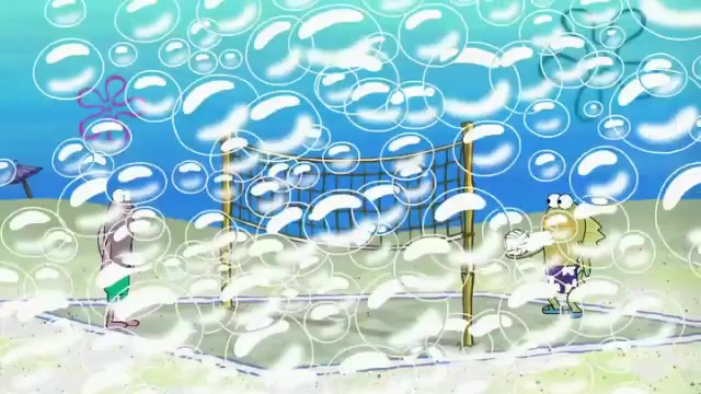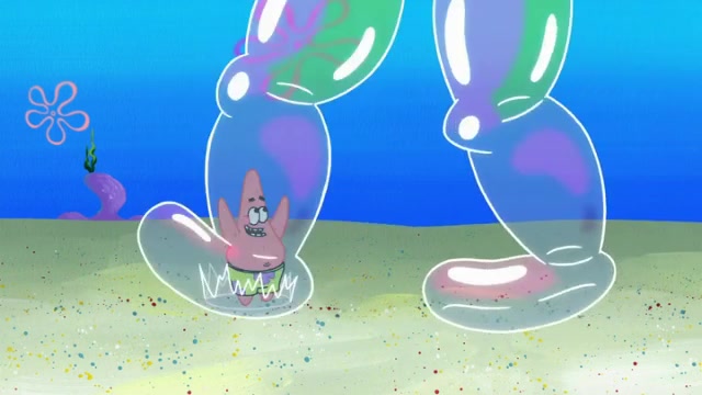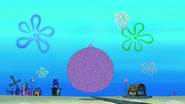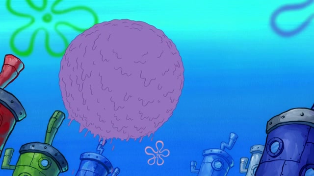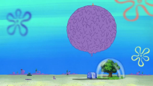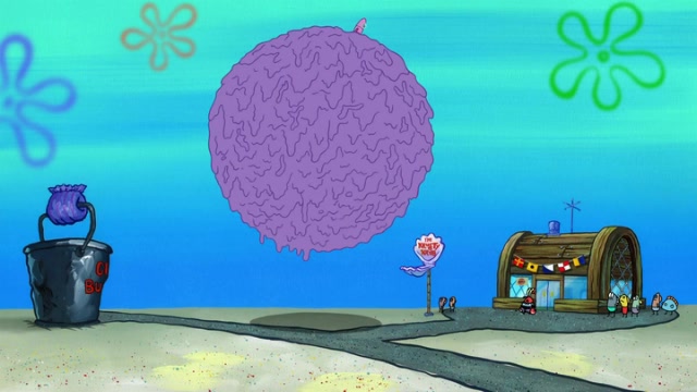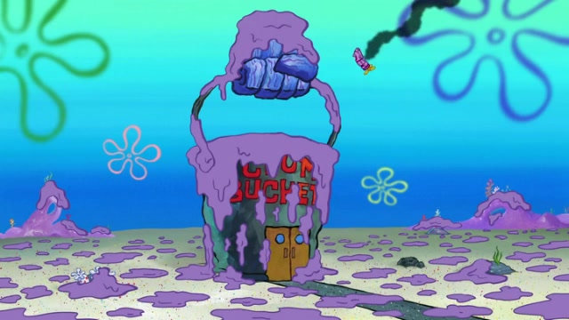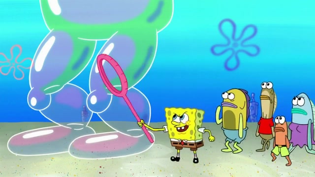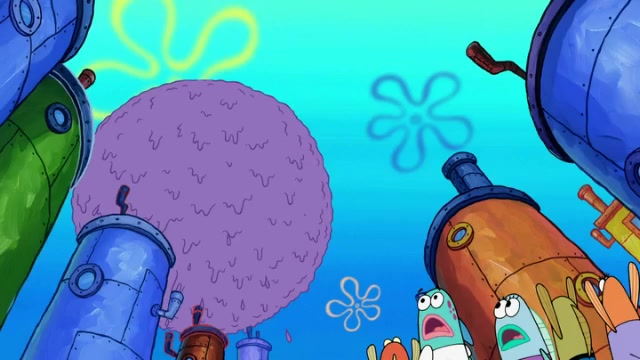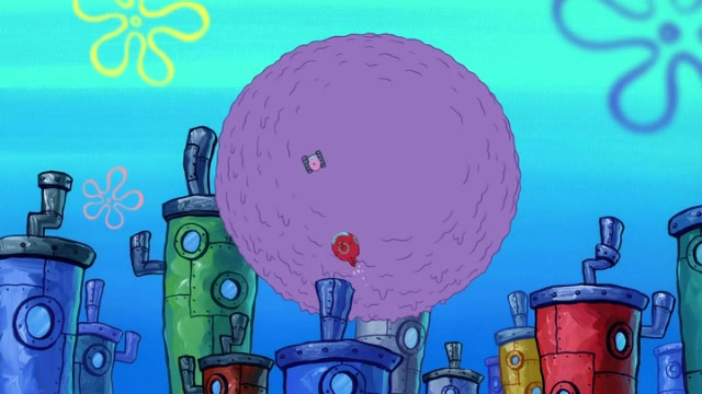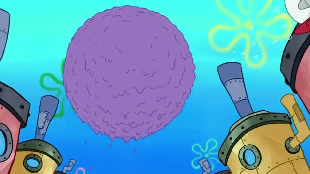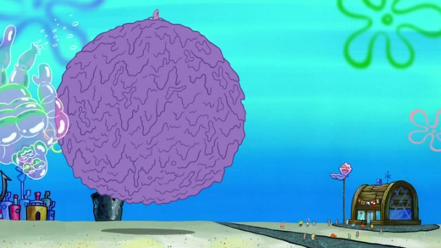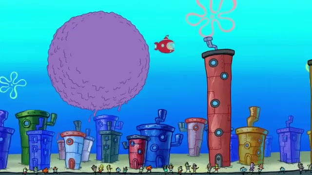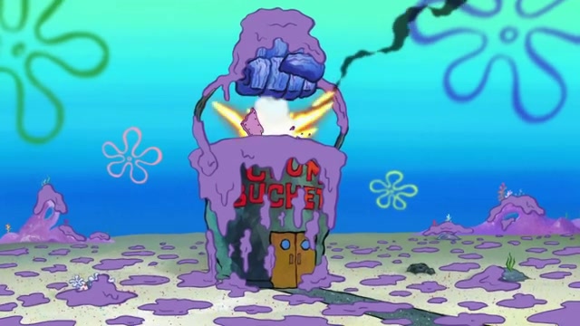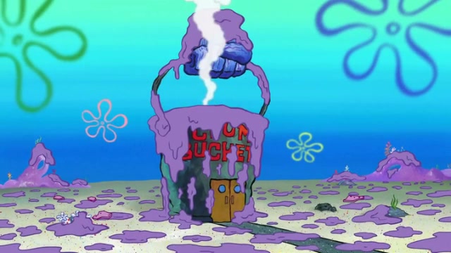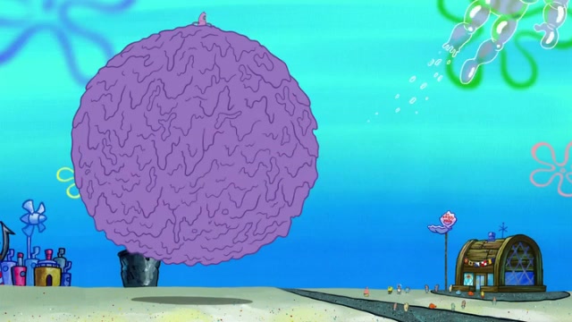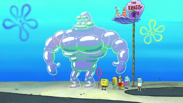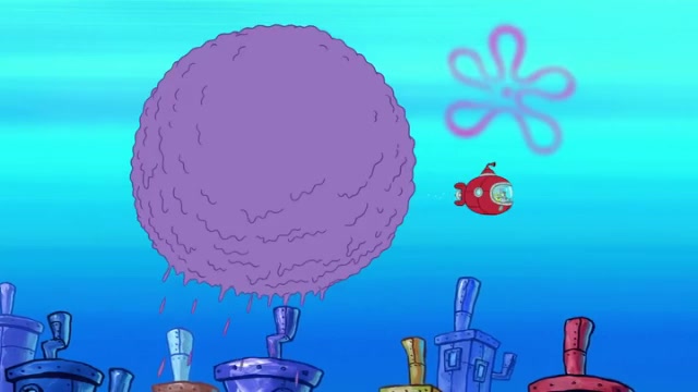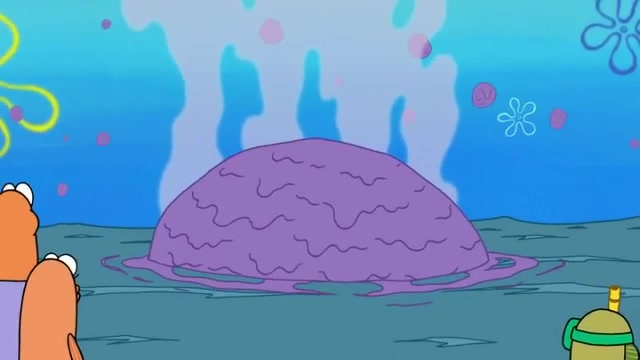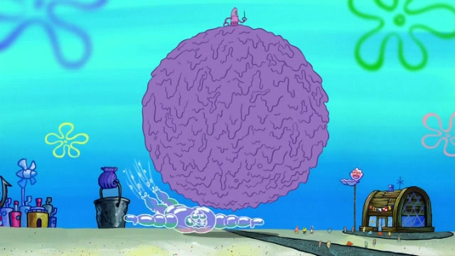 It is a typical day at Goo Lagoon and SpongeBob SquarePants and Patrick Star are having fun. Suddenly, large purple volcanic Mucus Bubbles, also known as "Super Bubbles" arise out of the lagoon. They came out of a crack at the bottom of the lagoon. Two bubbles approach SpongeBob and Patrick while they are about to drown at sea. They bounce the goo bubbles like a ball on seawater, accidentally hitting fish swimming with a floater, a surfer, and a cheerleading-style posed fishes. Meanwhile, Sheldon (Plankton) tries to sell his chum from a wheelbarrow when Squidward smashes him with an umbrella. SpongeBob and Patrick use their Mucus Bubbles to likewise bounce and smash Squidward Tentacles and his belongings.Plankton thinks that it is Karma and he notices that SpongeBob and Patrick are bouncing the goo bubble like a ball. He doesn't know what it is and tries to ask Squidward but Squidward leaves him and angrily scolds SpongeBob and Patrick.Just as SpongeBob and Patrick were going to use the goo bubbles to bounce like a ball, Sandy approaches them. Sandy Cheeks tries to explain to SpongeBob, Patrick, Squidward, the Bikini Bottomites, and Plankton, that the bubbles are dangerous. She says that they are safe when stable, but if unstable, it can coat all of Bikini Bottom in a poisonous goo. Plankton hears this and builds a machine to find a bubble large enough to destroy the entire city, as most are rather small. Then he goes under the water in a ship to find the crack where the bubbles are coming from.
