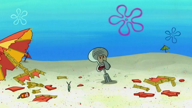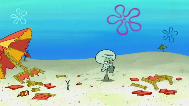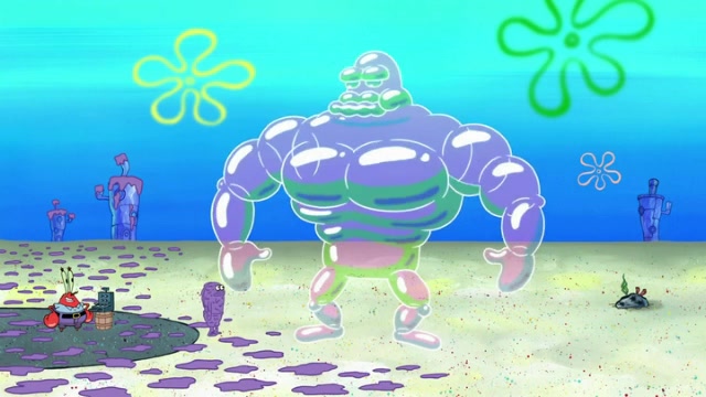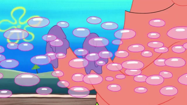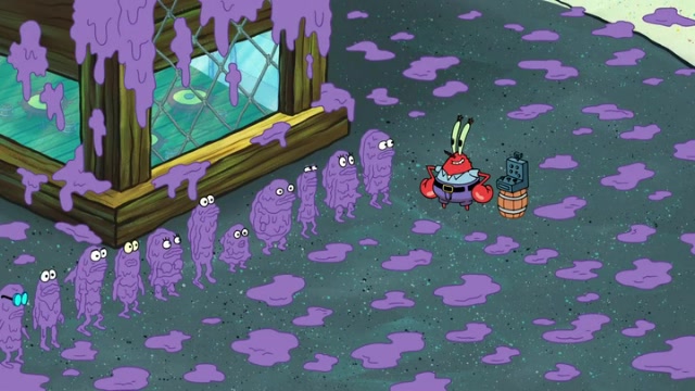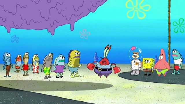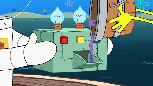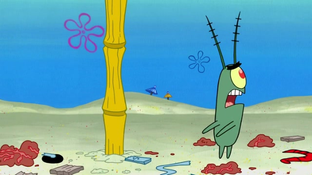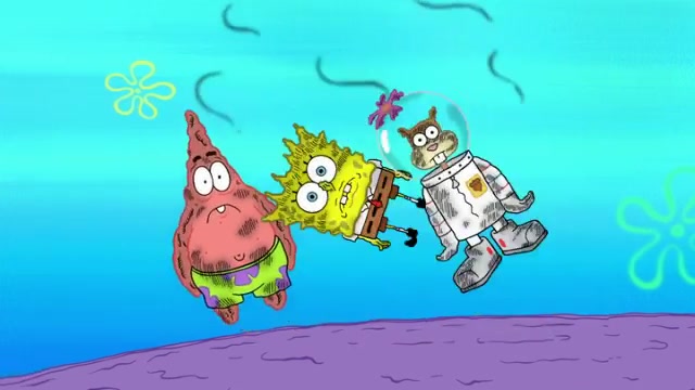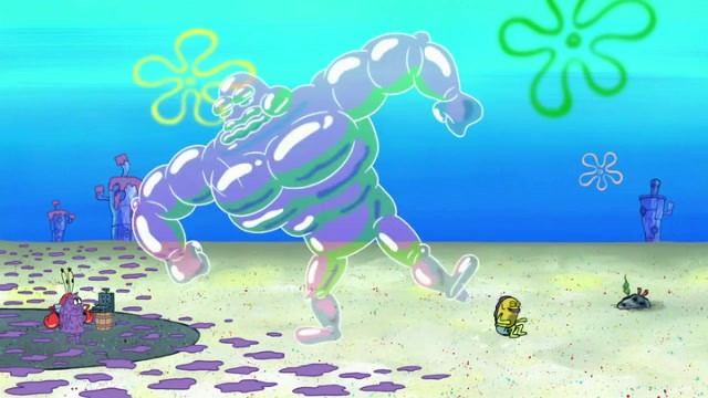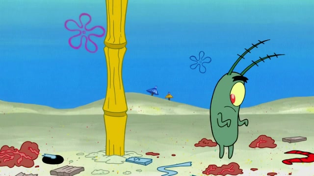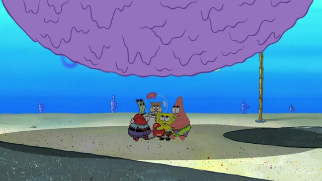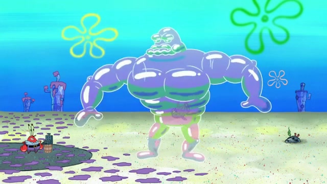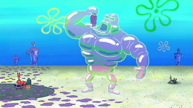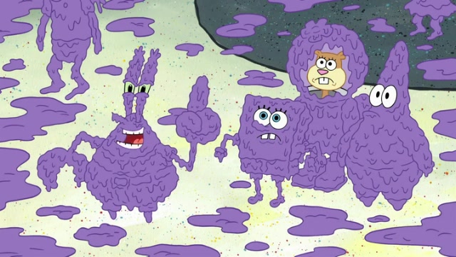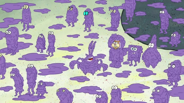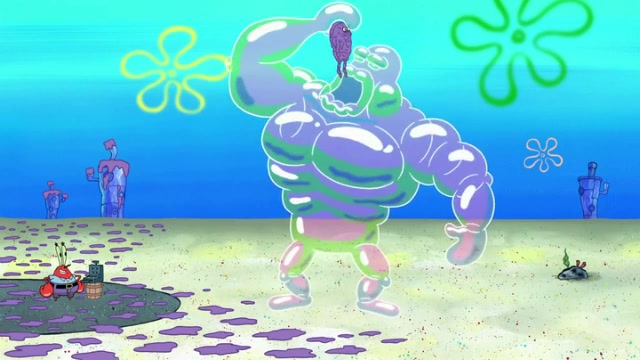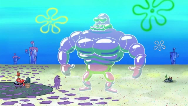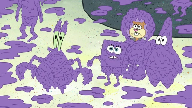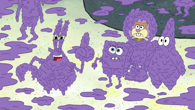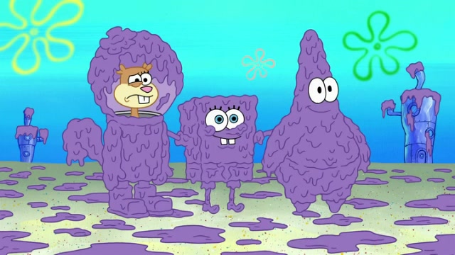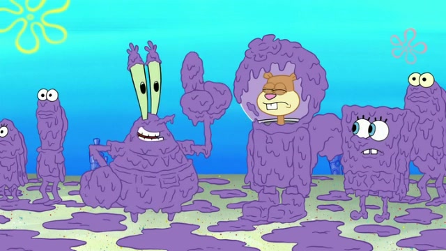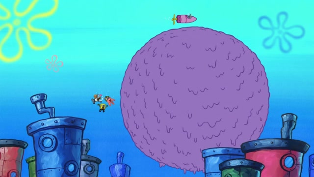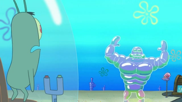 It is a typical day at Goo Lagoon and SpongeBob SquarePants and Patrick Star are having fun. Suddenly, large purple volcanic Mucus Bubbles, also known as "Super Bubbles" arise out of the lagoon. They came out of a crack at the bottom of the lagoon. Two bubbles approach SpongeBob and Patrick while they are about to drown at sea. They bounce the goo bubbles like a ball on seawater, accidentally hitting fish swimming with a floater, a surfer, and a cheerleading-style posed fishes. Meanwhile, Sheldon (Plankton) tries to sell his chum from a wheelbarrow when Squidward smashes him with an umbrella. SpongeBob and Patrick use their Mucus Bubbles to likewise bounce and smash Squidward Tentacles and his belongings.Plankton thinks that it is Karma and he notices that SpongeBob and Patrick are bouncing the goo bubble like a ball. He doesn't know what it is and tries to ask Squidward but Squidward leaves him and angrily scolds SpongeBob and Patrick.Just as SpongeBob and Patrick were going to use the goo bubbles to bounce like a ball, Sandy approaches them. Sandy Cheeks tries to explain to SpongeBob, Patrick, Squidward, the Bikini Bottomites, and Plankton, that the bubbles are dangerous. She says that they are safe when stable, but if unstable, it can coat all of Bikini Bottom in a poisonous goo. Plankton hears this and builds a machine to find a bubble large enough to destroy the entire city, as most are rather small. Then he goes under the water in a ship to find the crack where the bubbles are coming from.